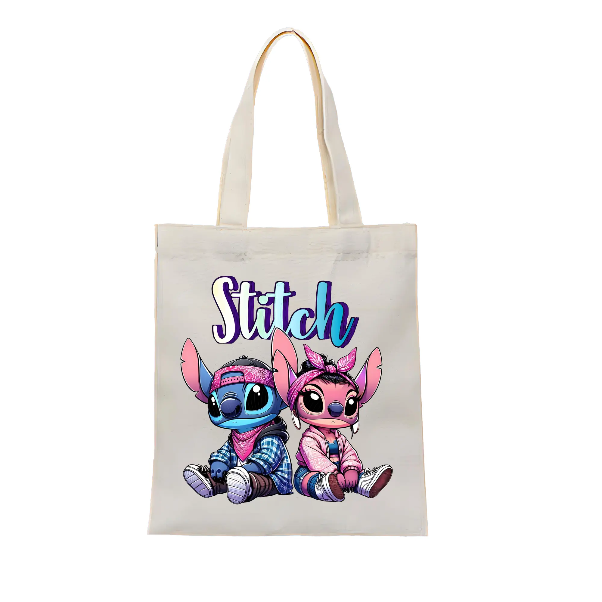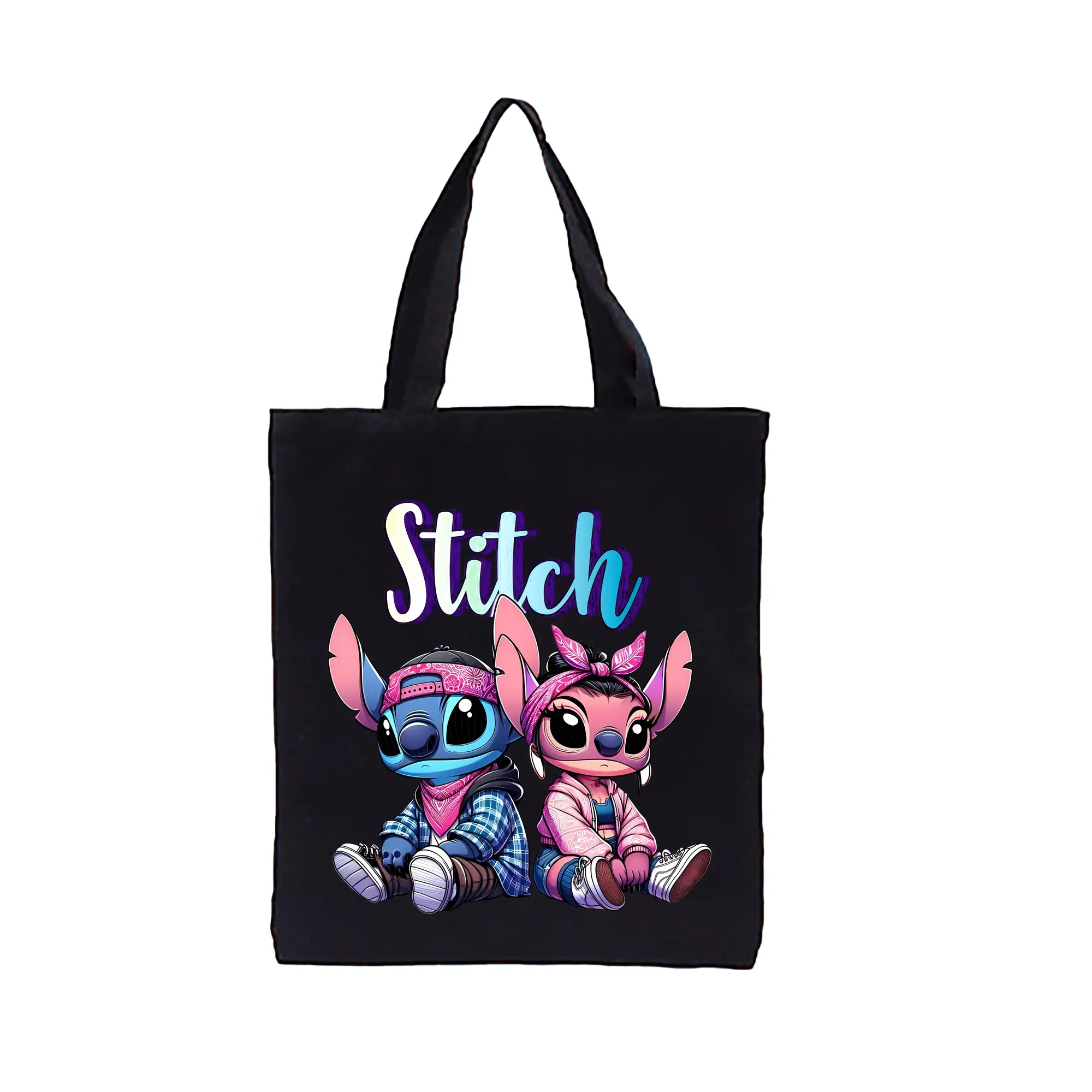 リロ&スティッチ グッズ エンジェル - 縦型キャンバス手提げバッグ(トートバッグ) ・ キャンバス素材 ・ ショッピング用 ・ 軽量 丈夫 お手入れ簡単