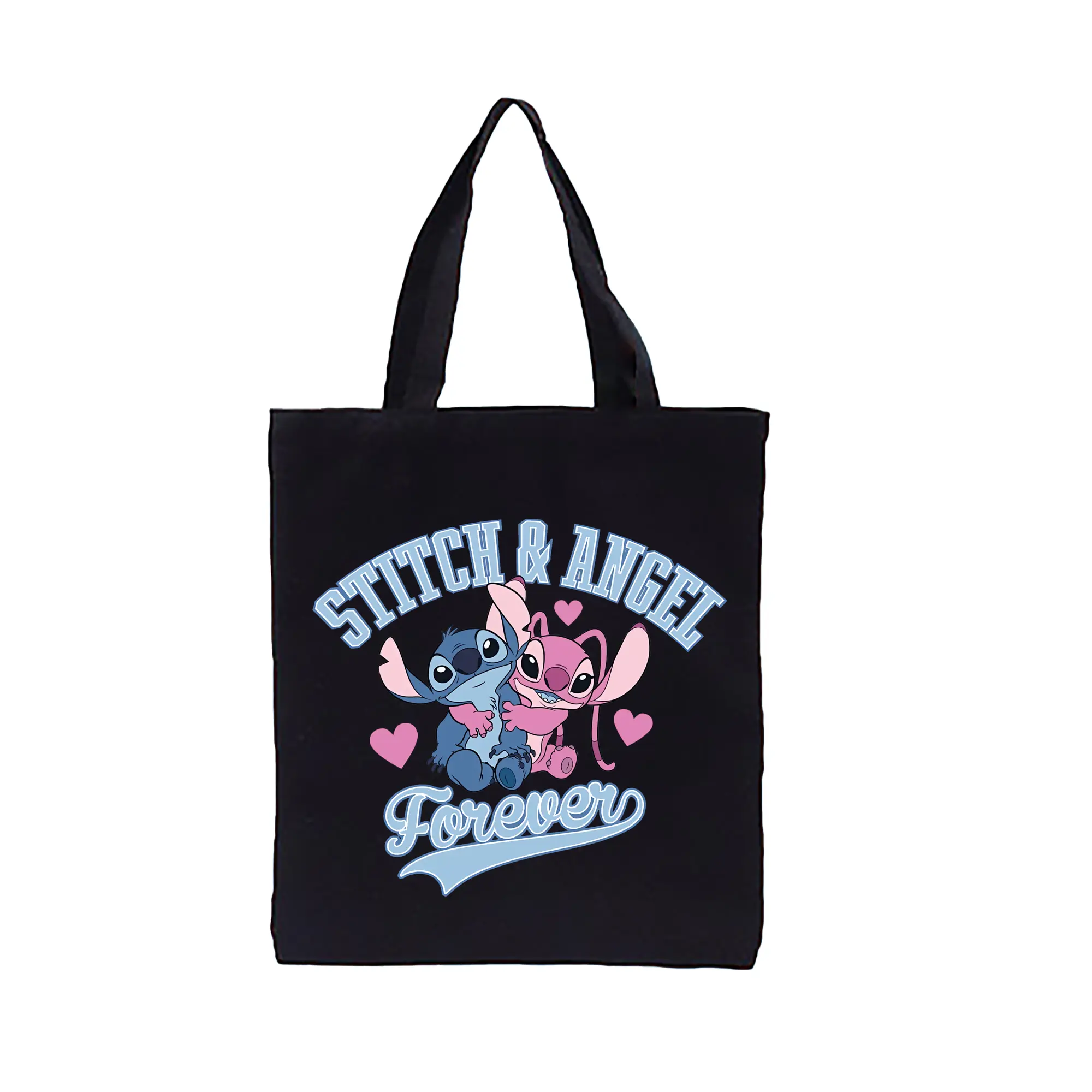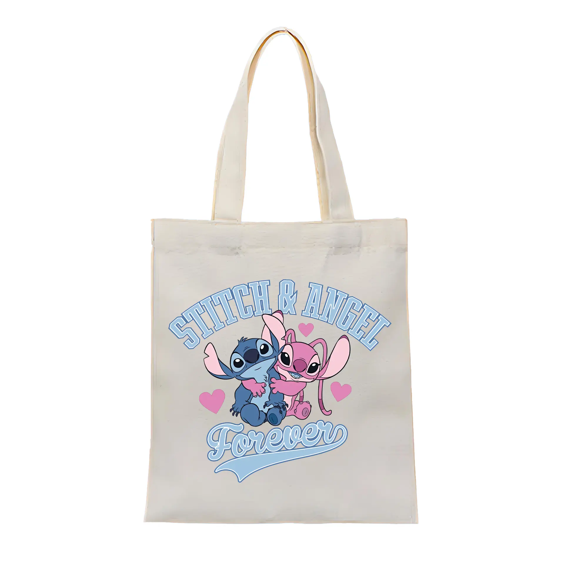 リロ&スティッチ グッズ エンジェル - 縦型キャンバス手提げバッグ(トートバッグ) ・ キャンバス素材 ・ ショッピング用 ・ 軽量 丈夫 お手入れ簡単