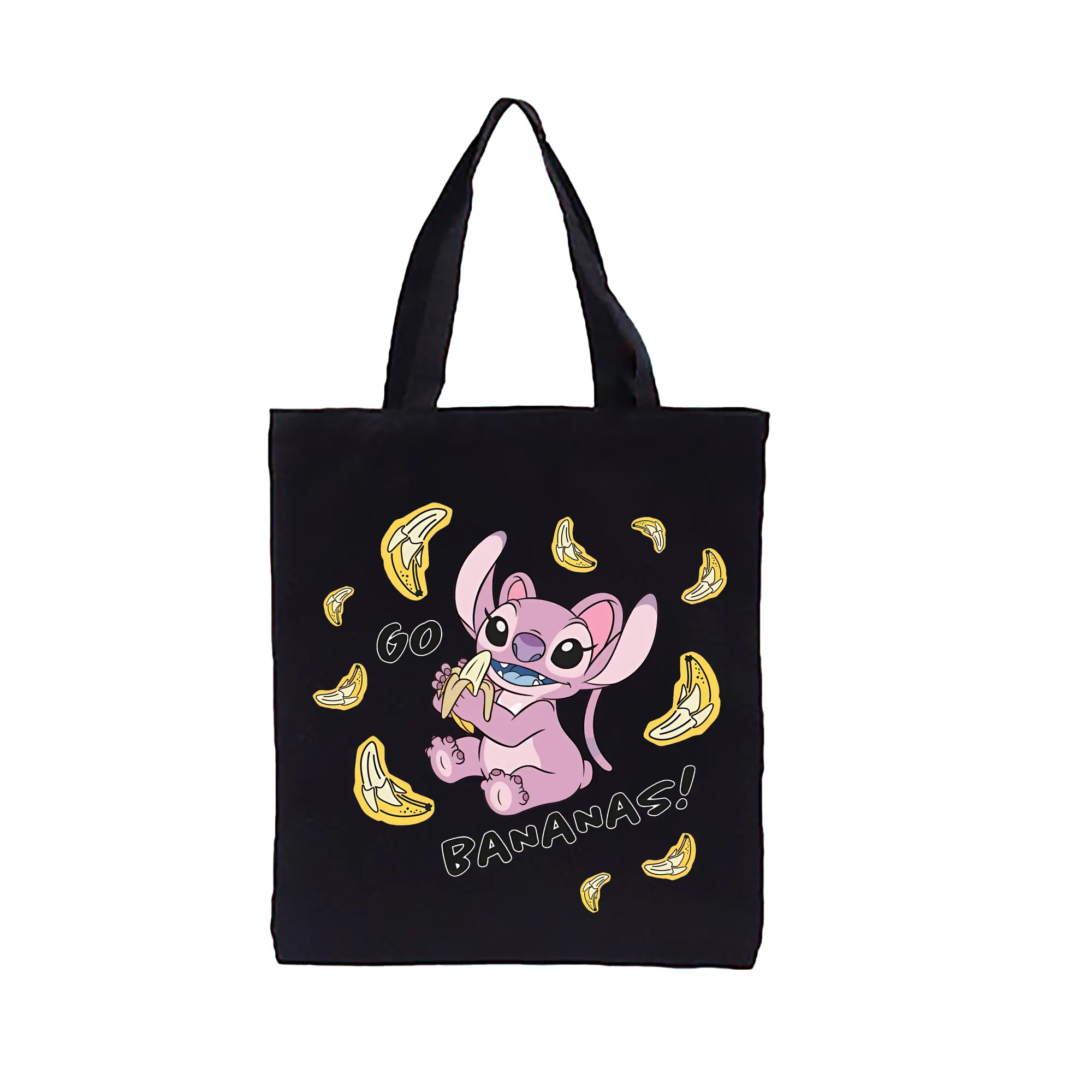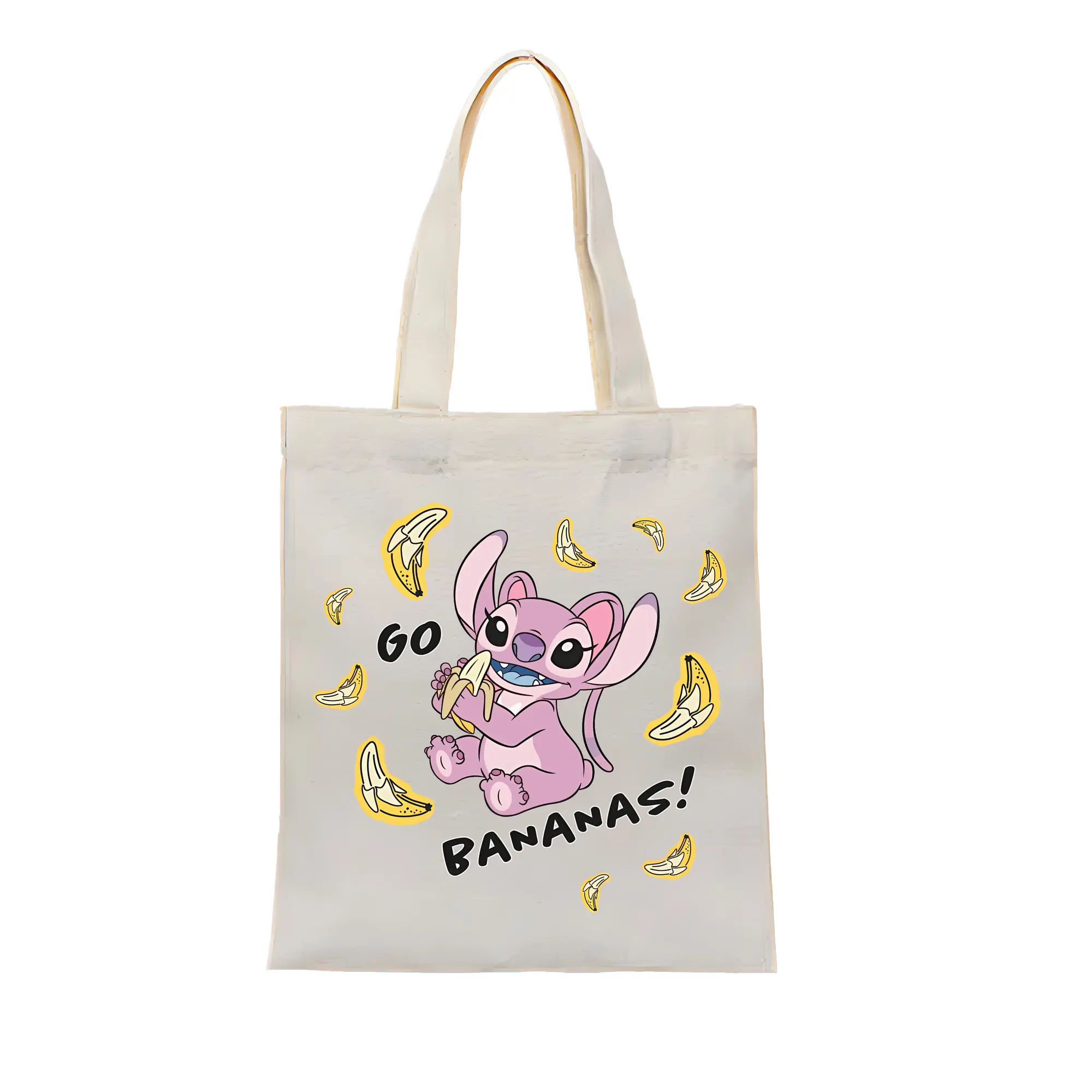 リロ&スティッチ グッズ エンジェル - 縦型キャンバス手提げバッグ(トートバッグ) ・ キャンバス素材 ・ ショッピング用 ・ 軽量 丈夫 お手入れ簡単