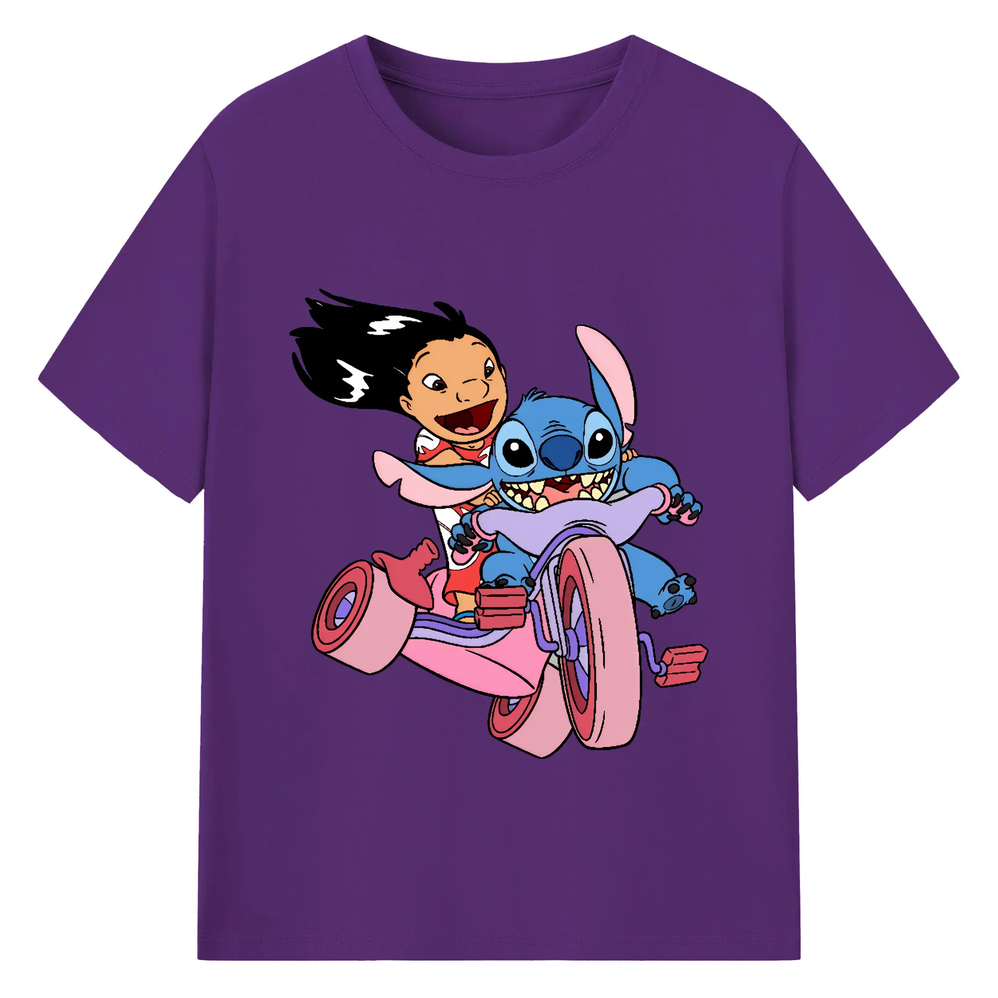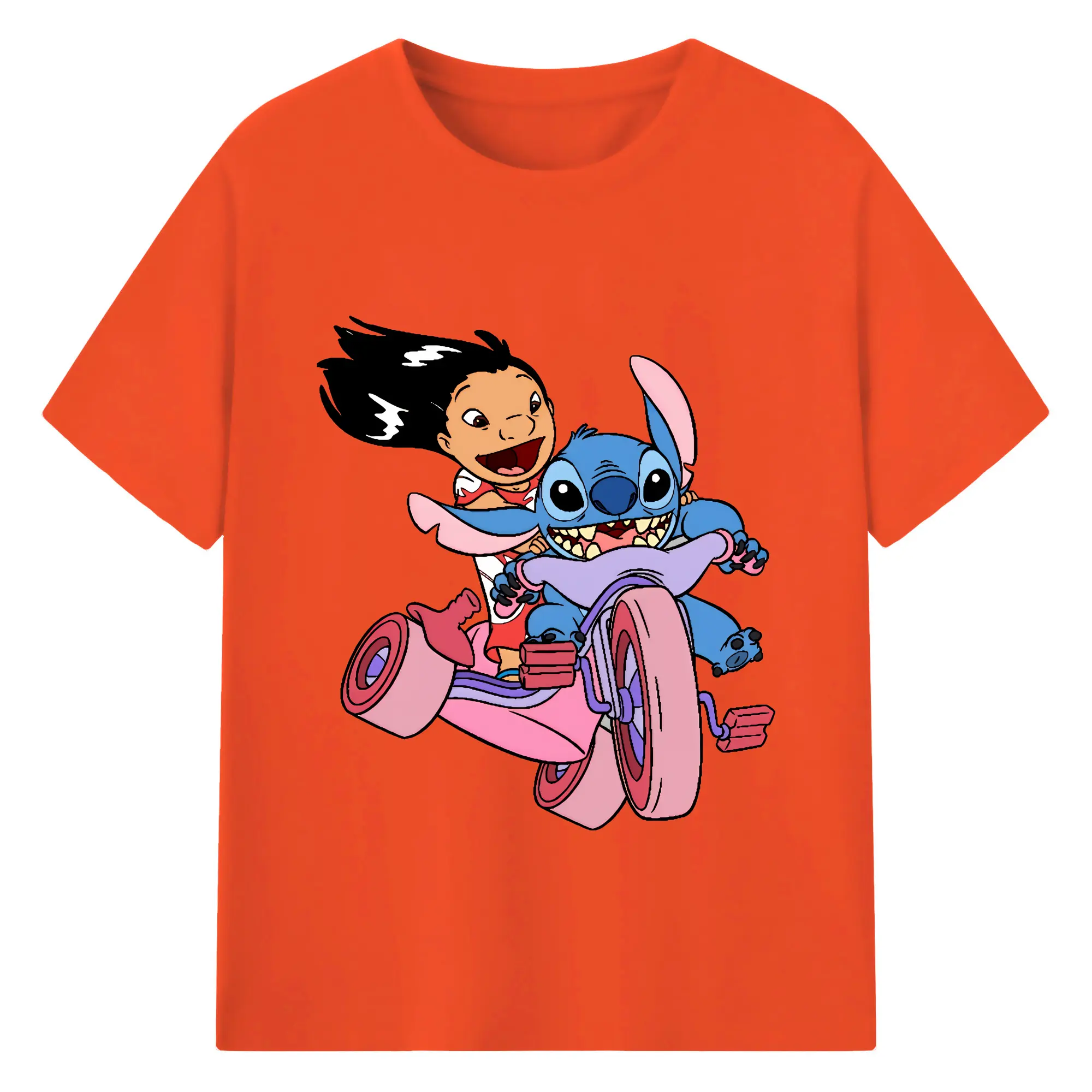 リロ&スティッチ グッズ リロ - 綿100% 半袖Tシャツ ・ バックプリント ・ 快適 通気性 ・ 日常使い 散歩 スポーツ用