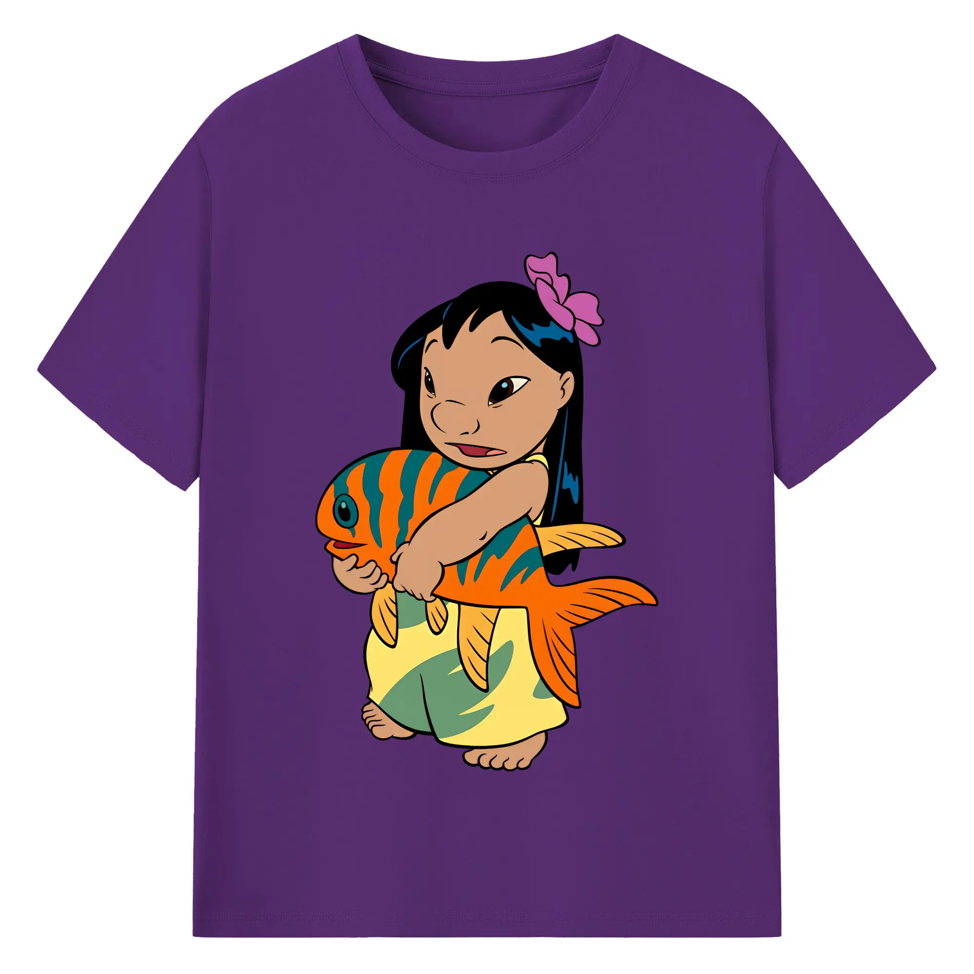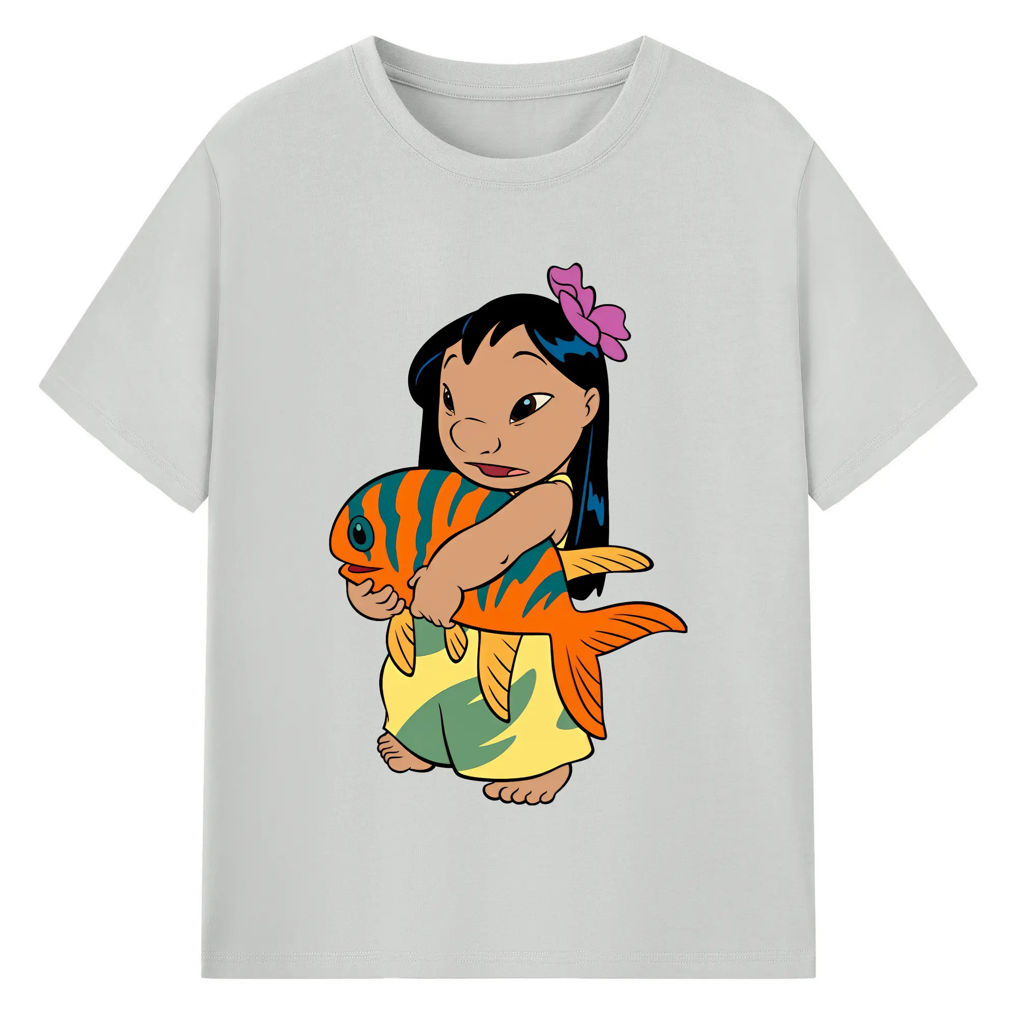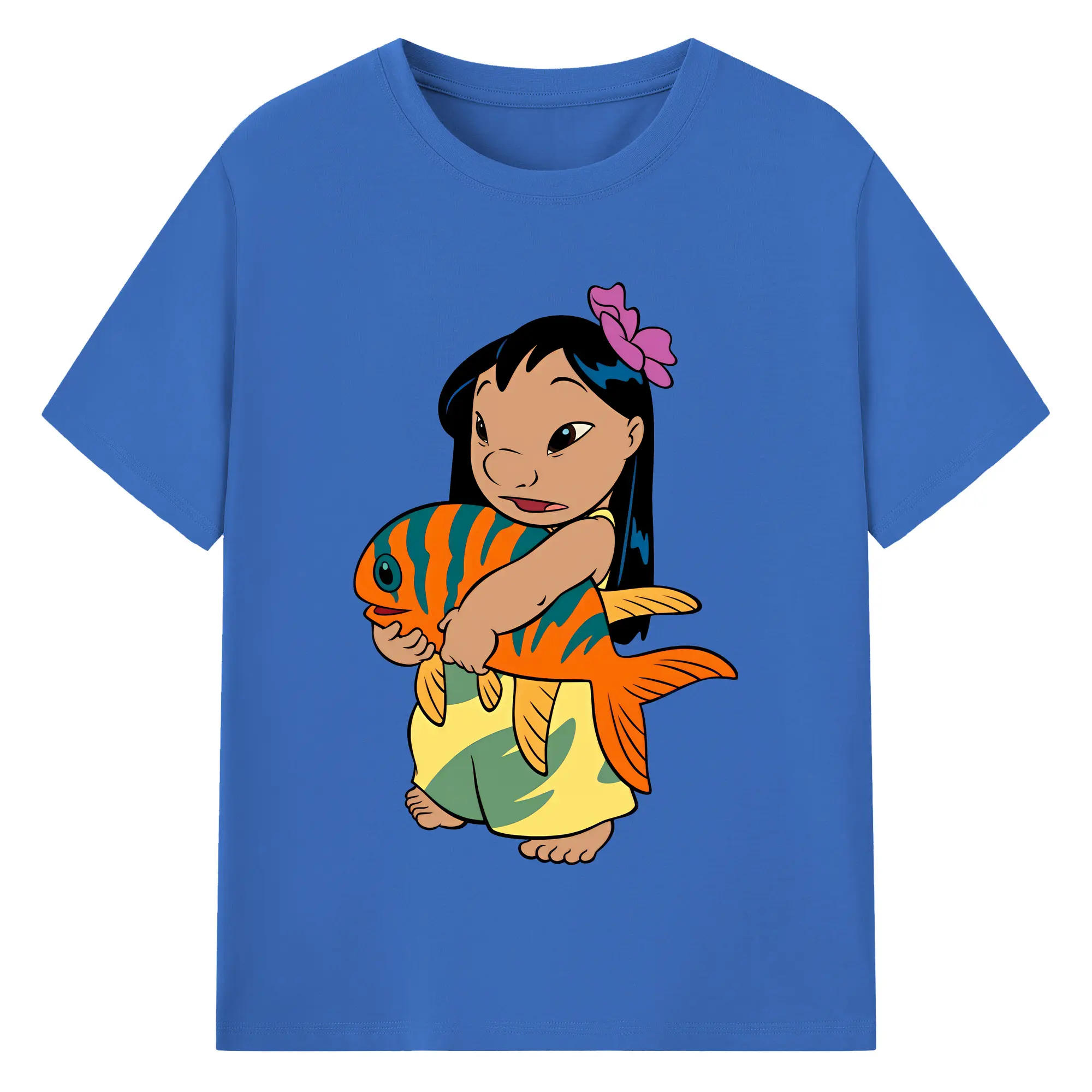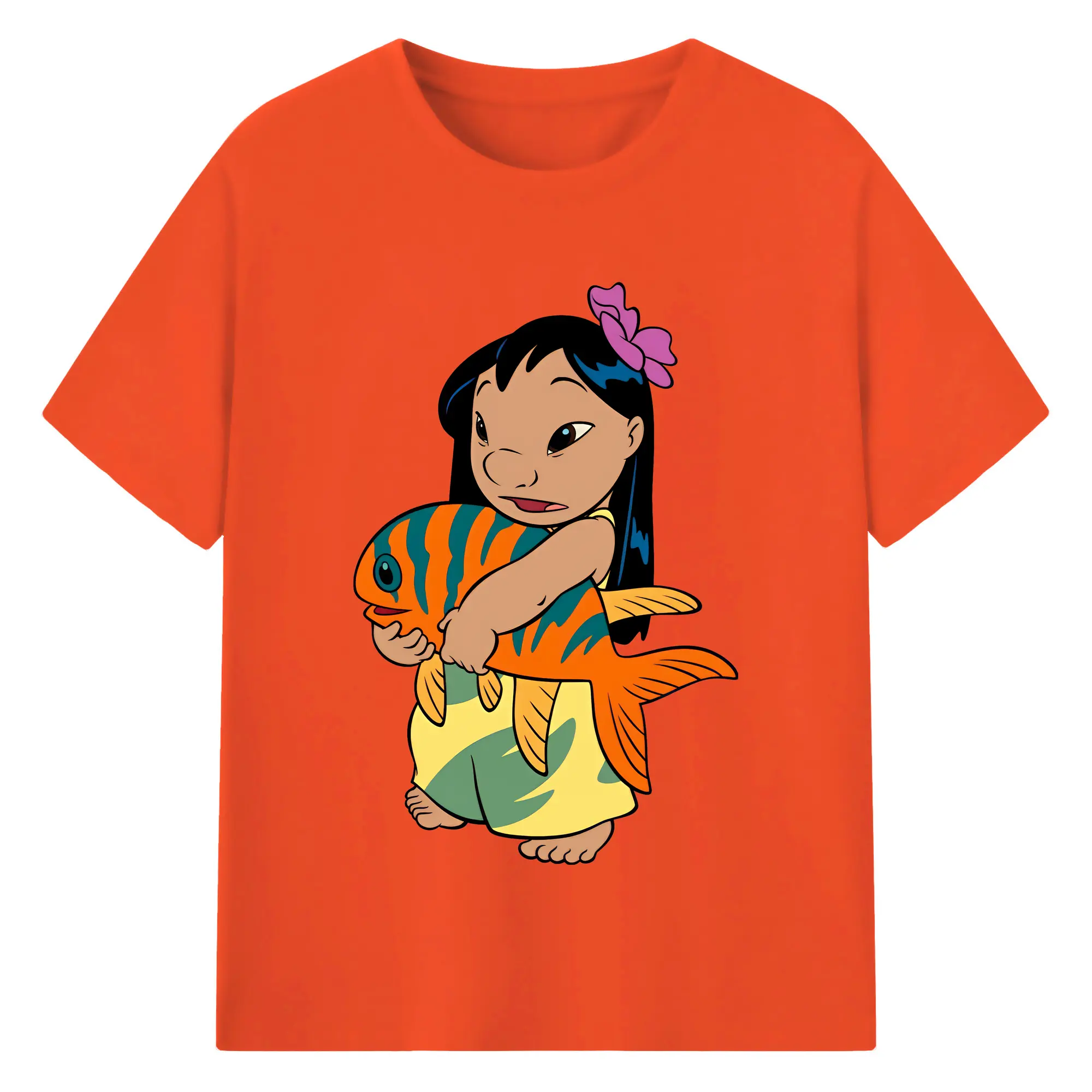 リロ&スティッチ グッズ リロ - 綿100% 半袖Tシャツ ・ バックプリント ・ 快適 通気性 ・ 日常使い 散歩 スポーツ用