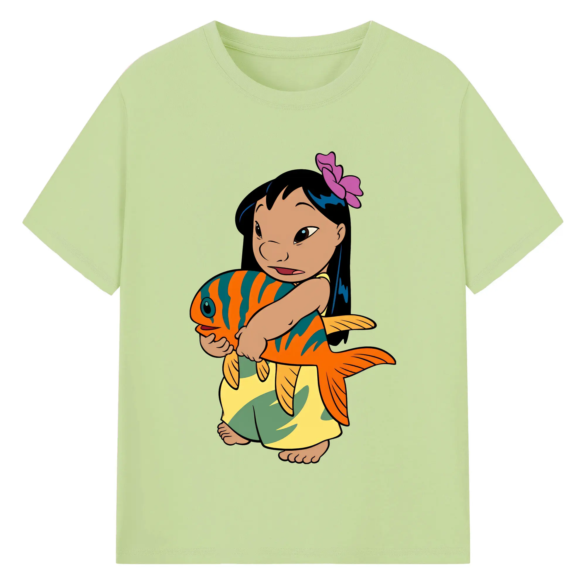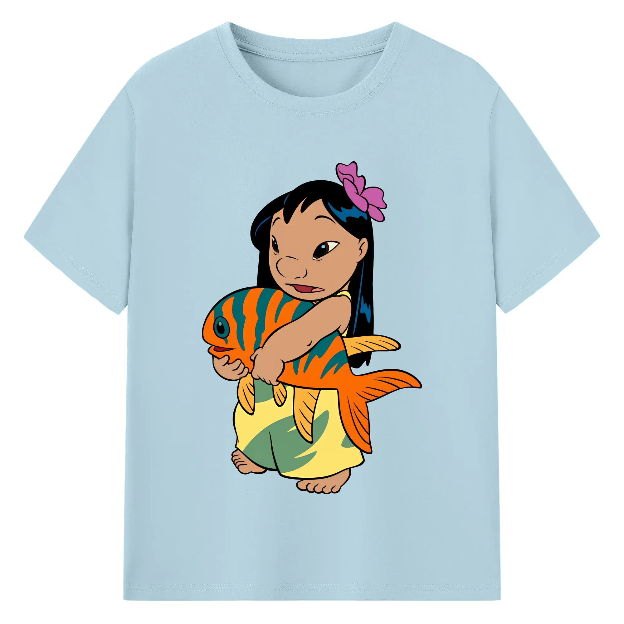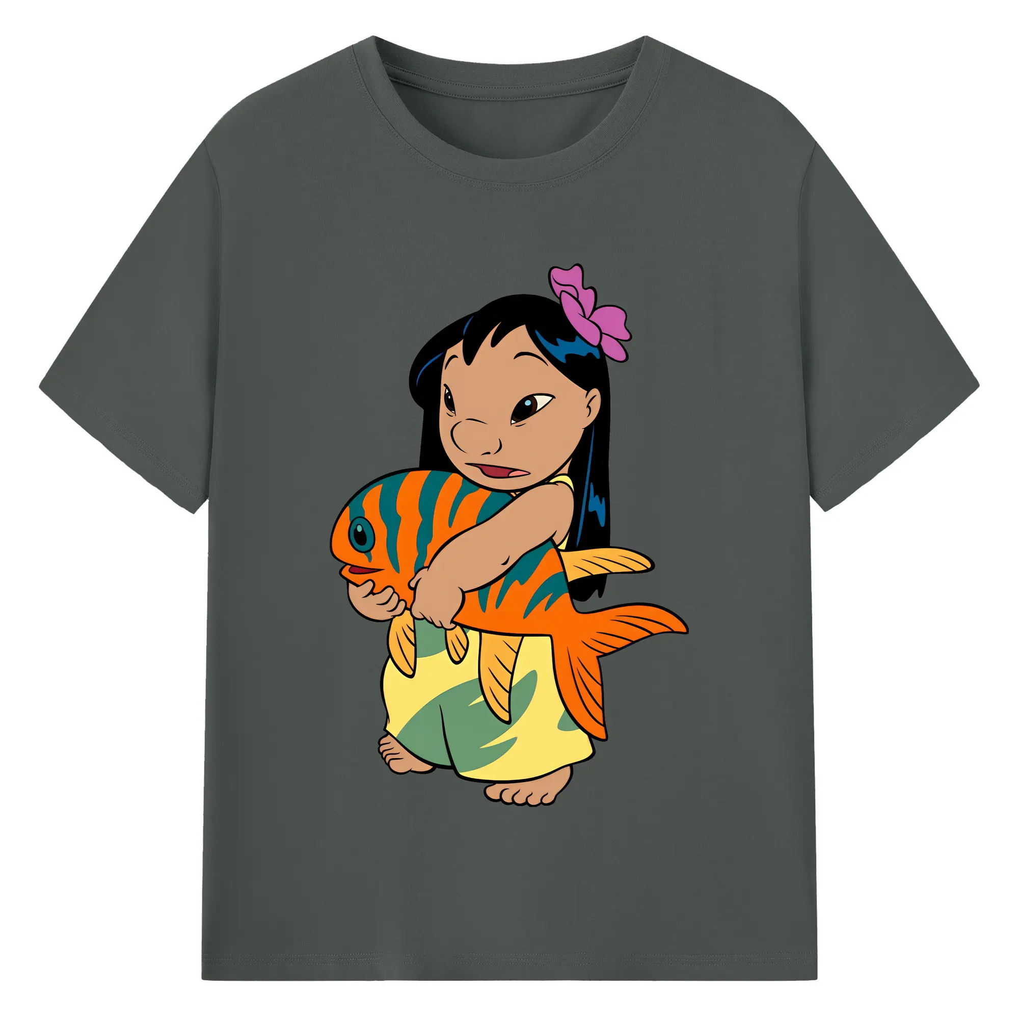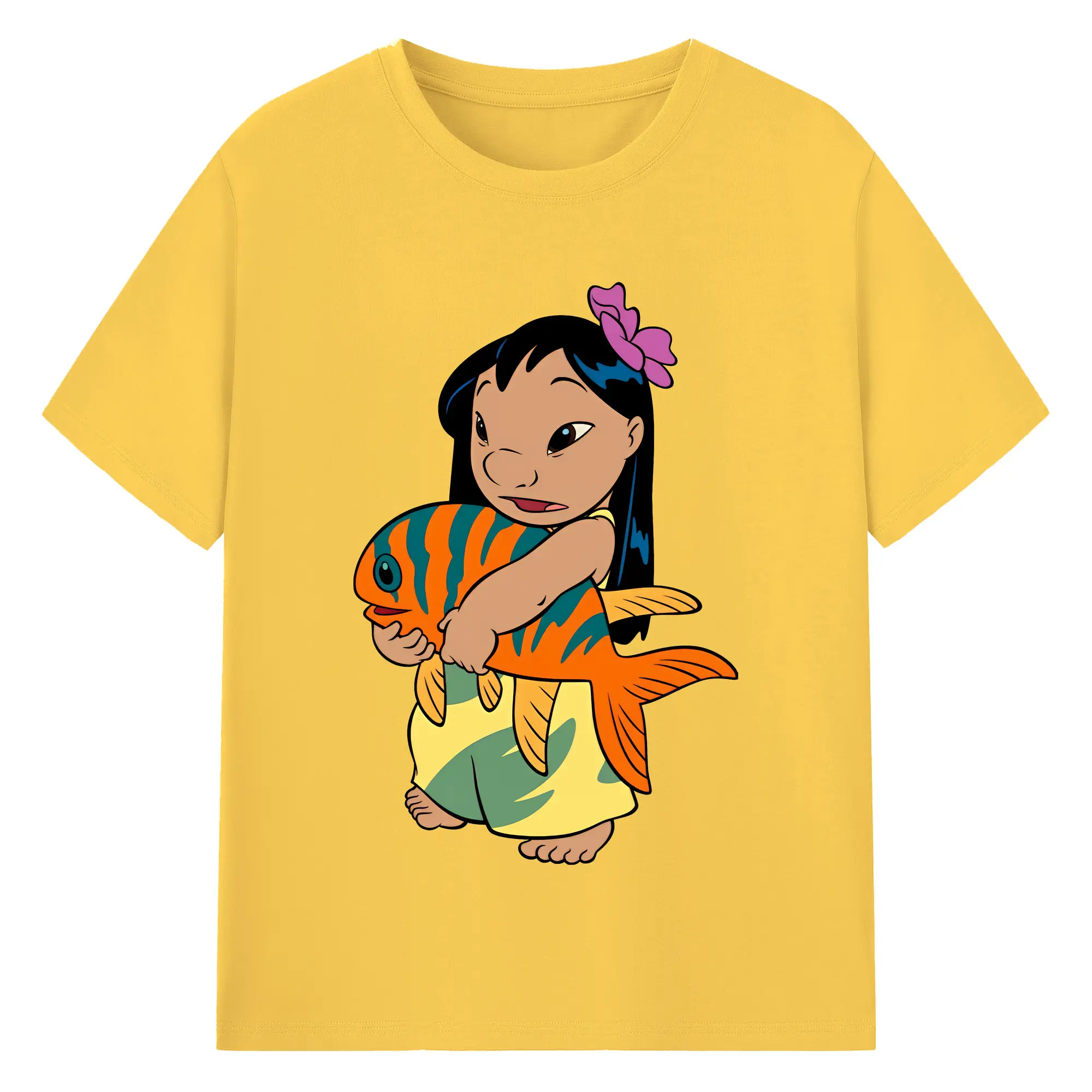 リロ&スティッチ グッズ リロ - 綿100% 半袖Tシャツ ・ バックプリント ・ 快適 通気性 ・ 日常使い 散歩 スポーツ用