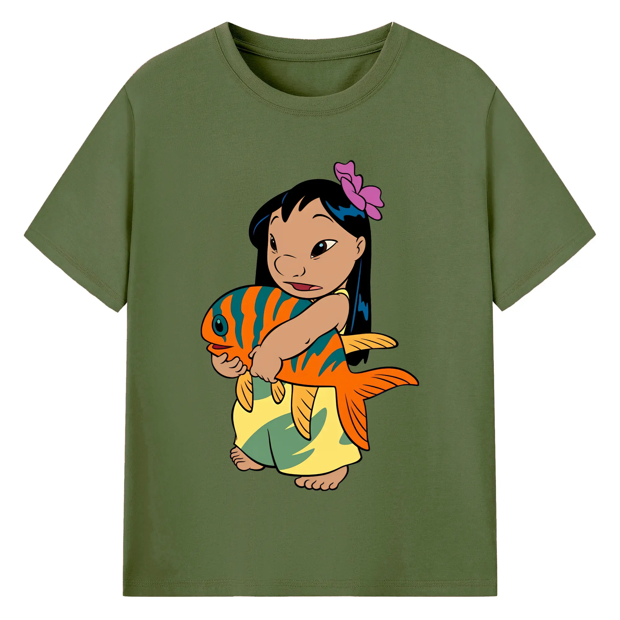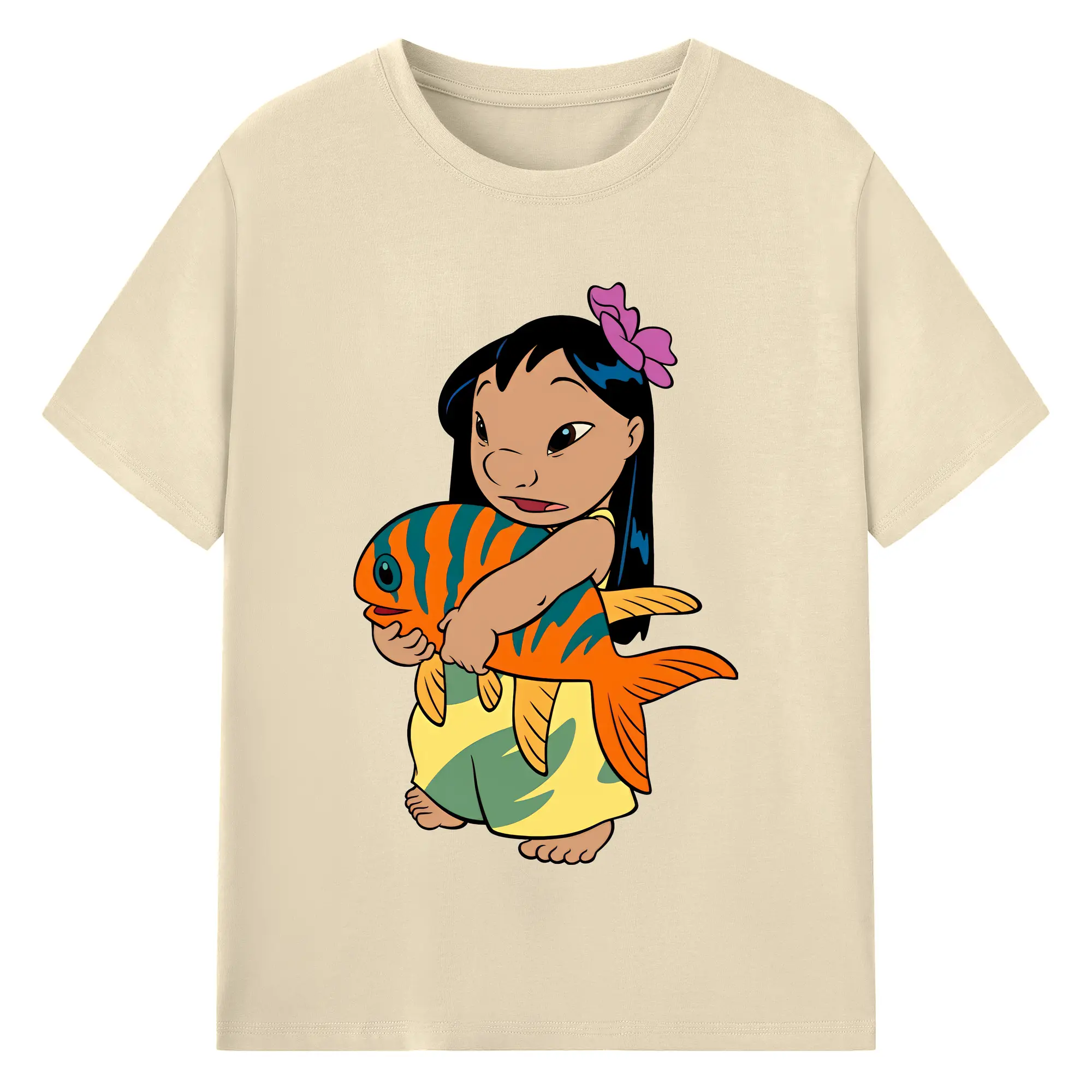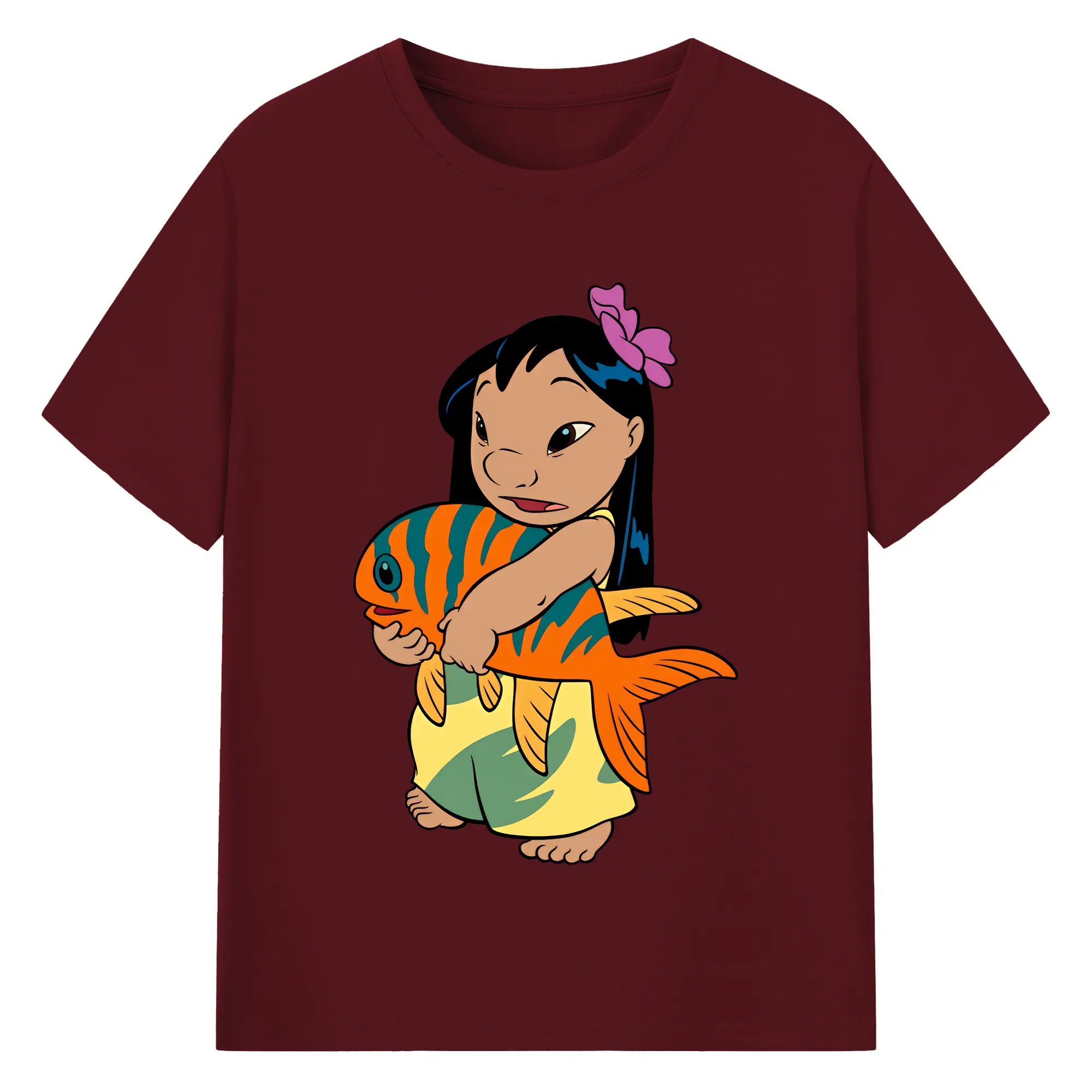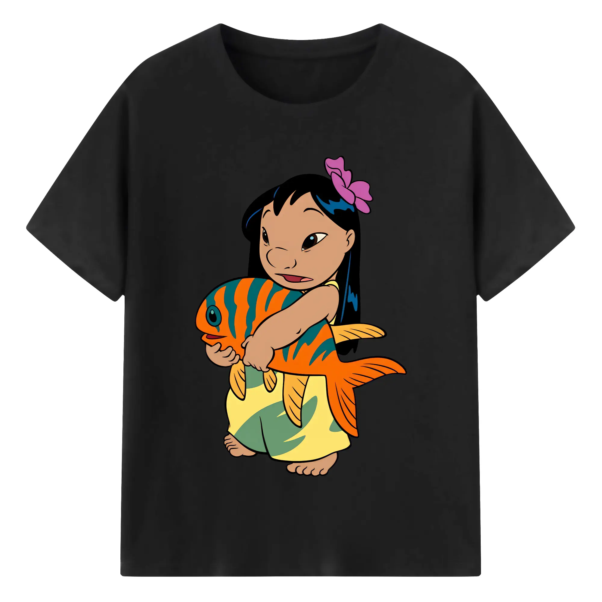 リロ&スティッチ グッズ リロ - 綿100% 半袖Tシャツ ・ バックプリント ・ 快適 通気性 ・ 日常使い 散歩 スポーツ用