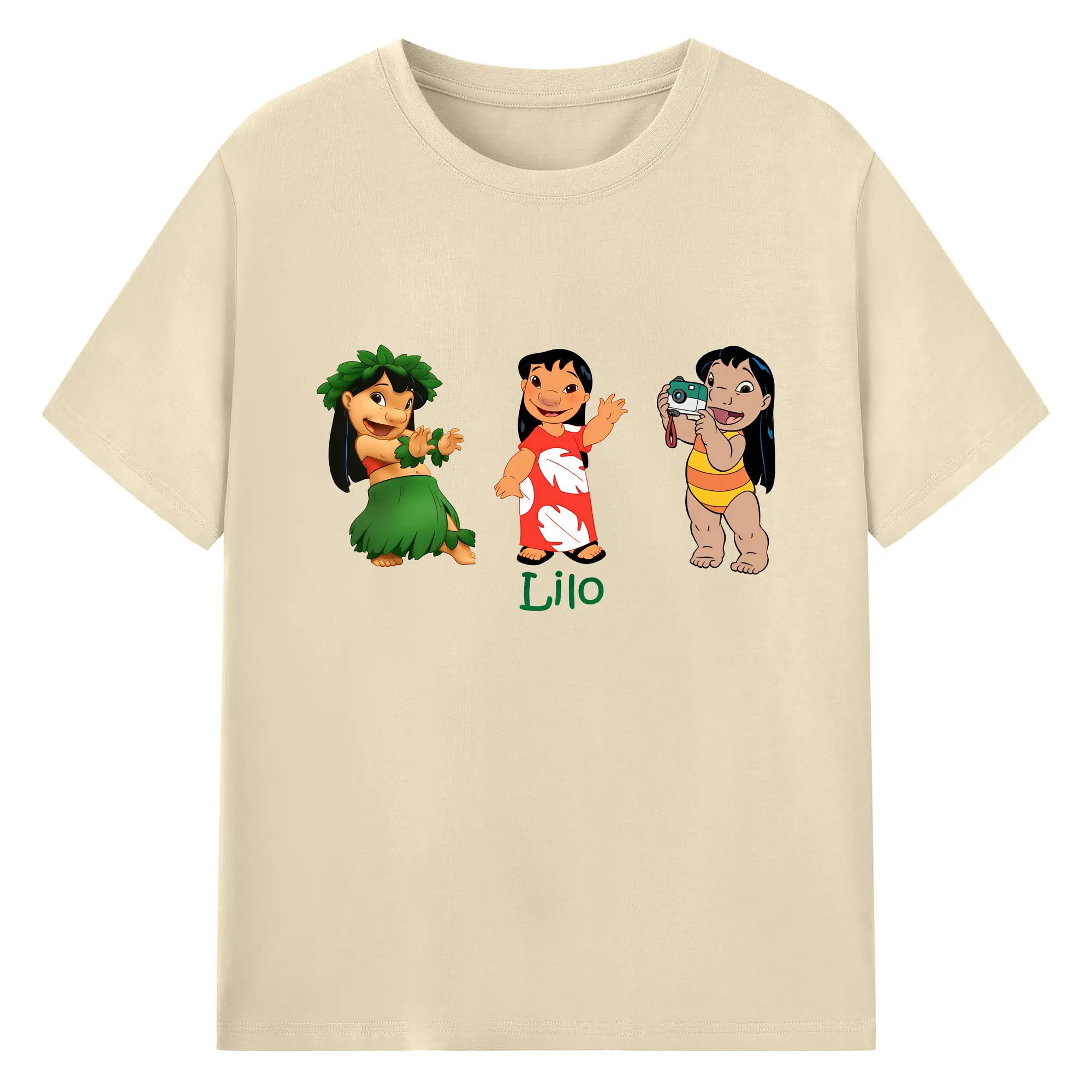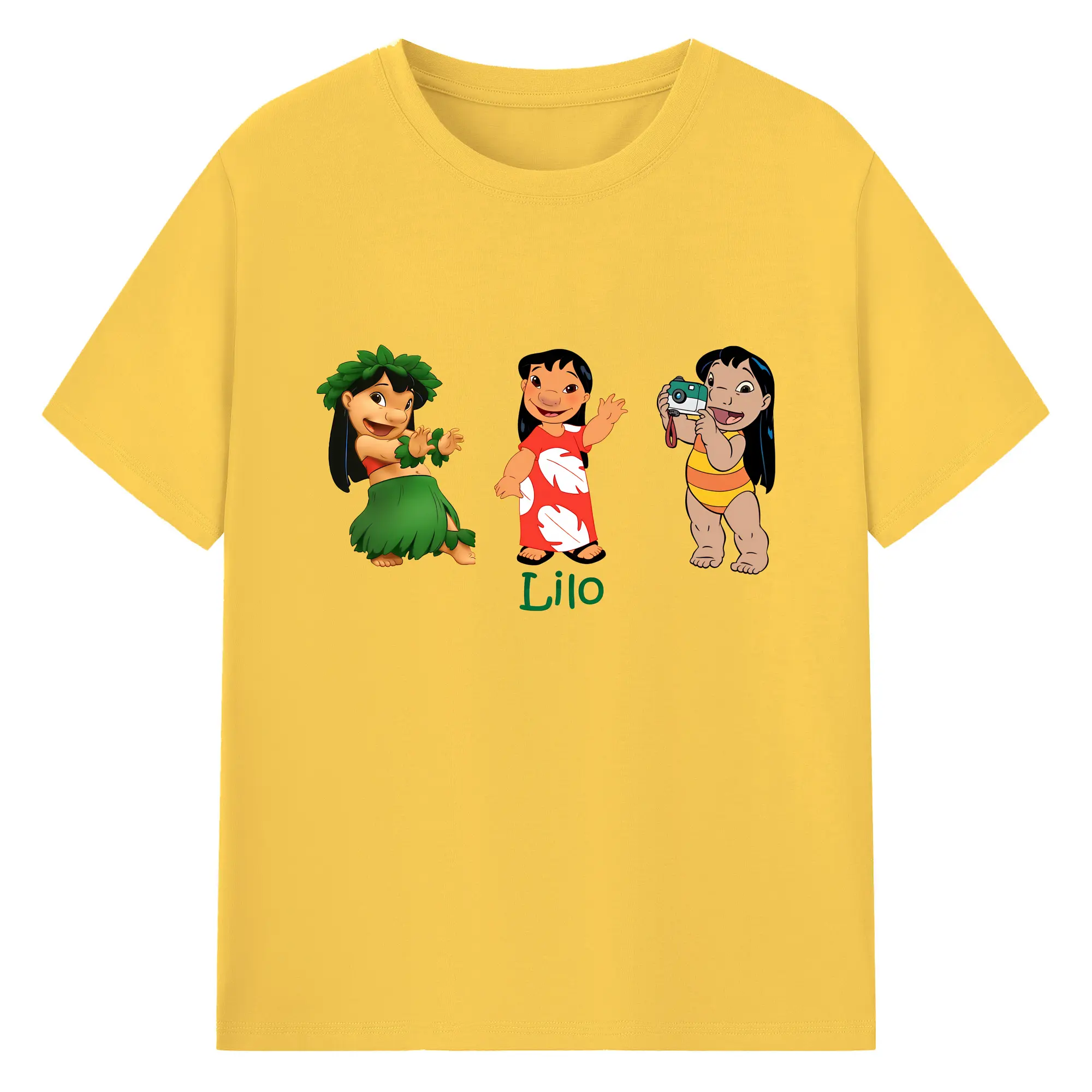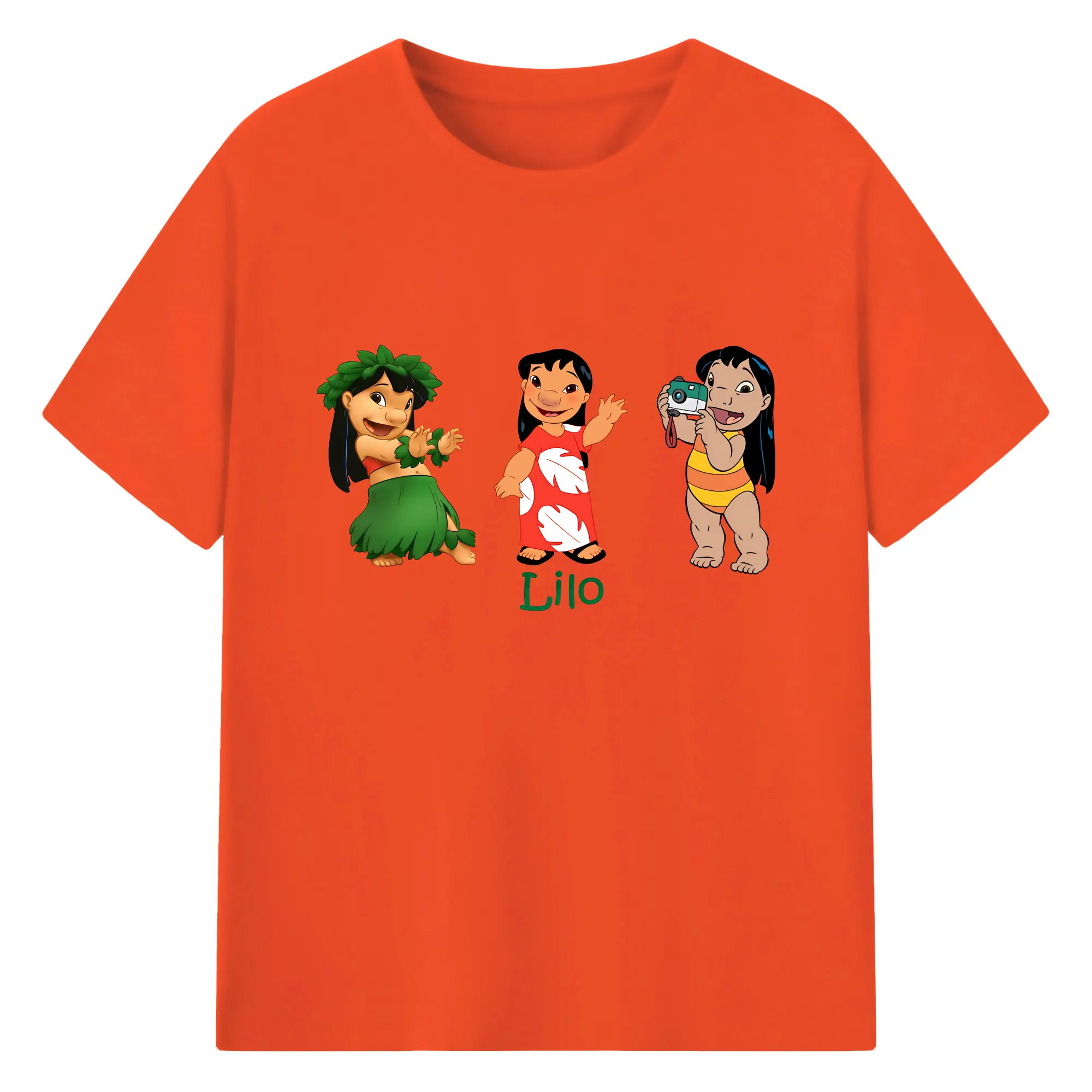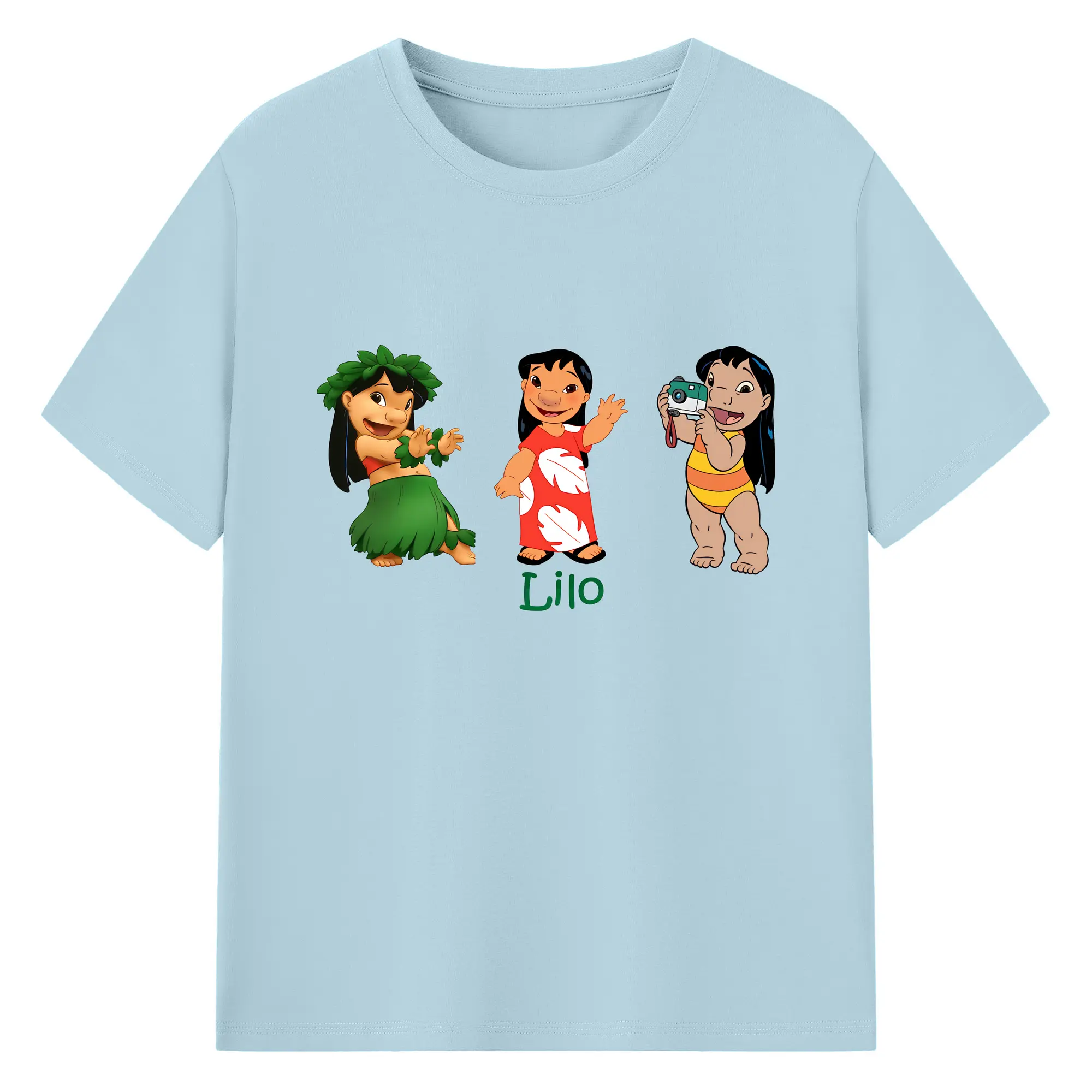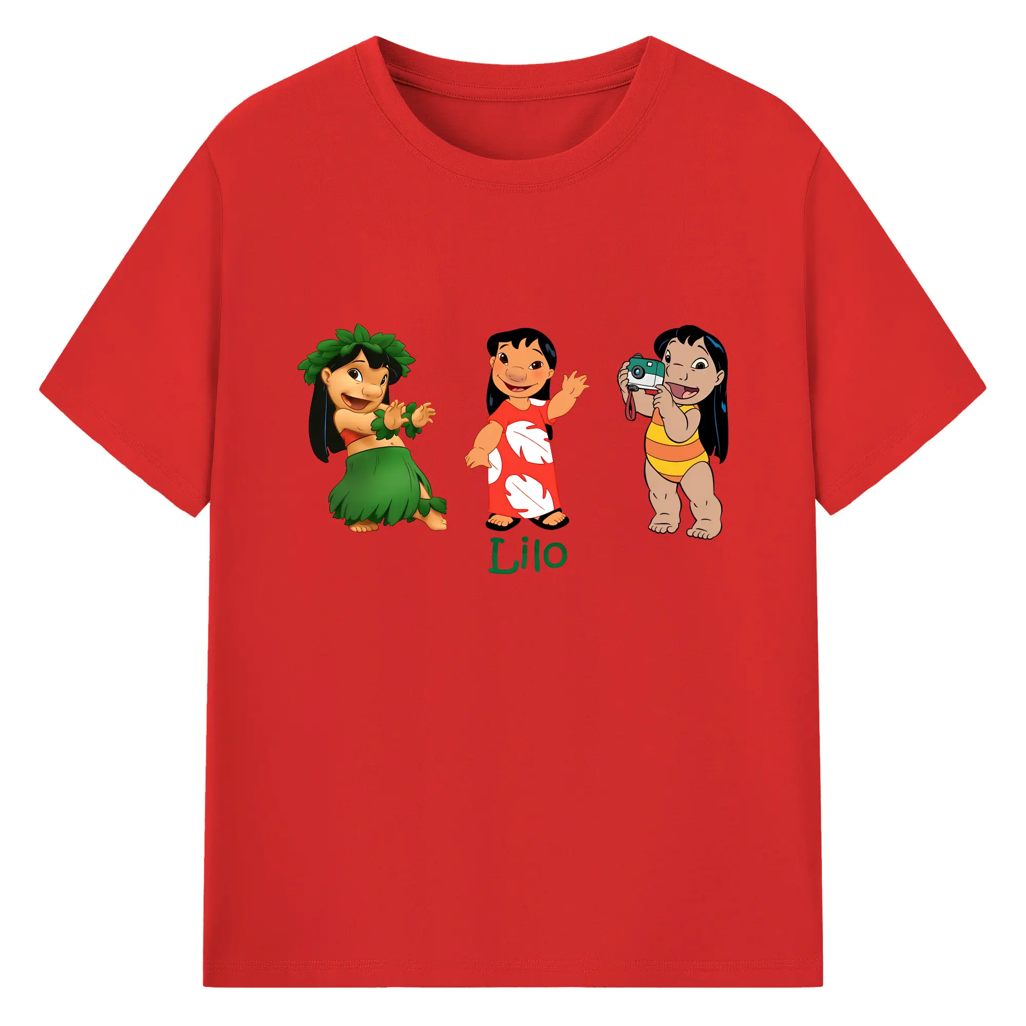 リロ&スティッチ グッズ リロ - 綿100% 半袖Tシャツ ・ バックプリント ・ 快適 通気性 ・ 日常使い 散歩 スポーツ用