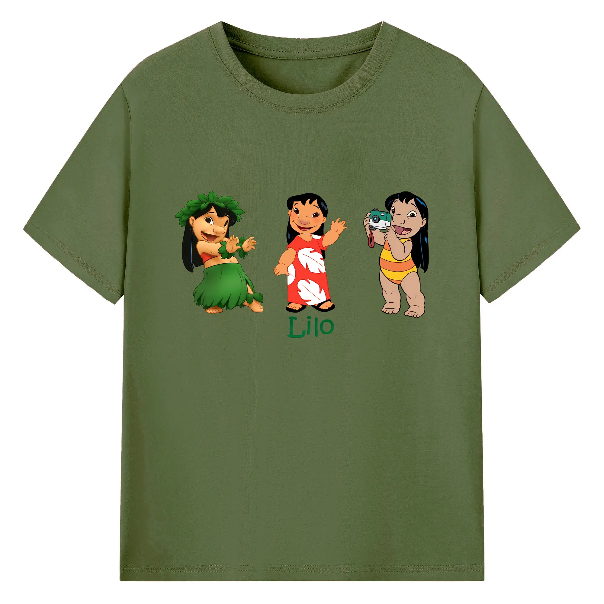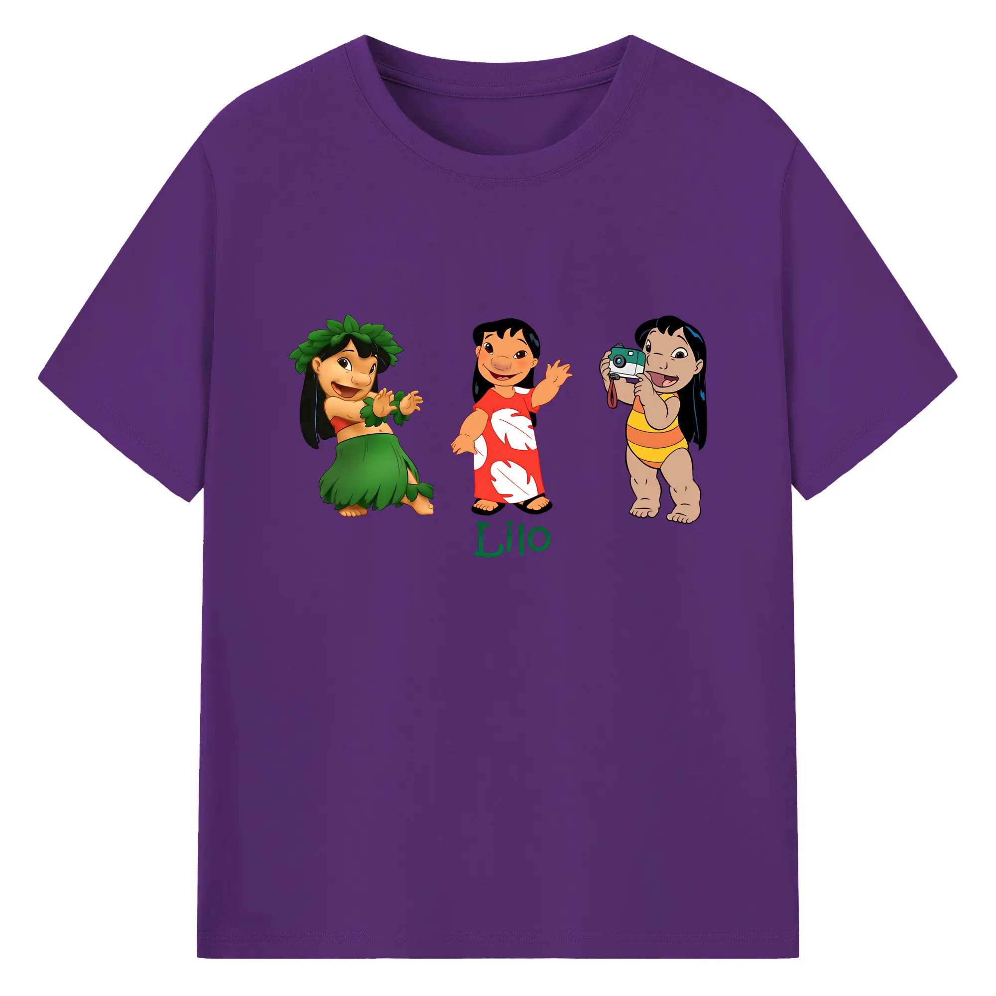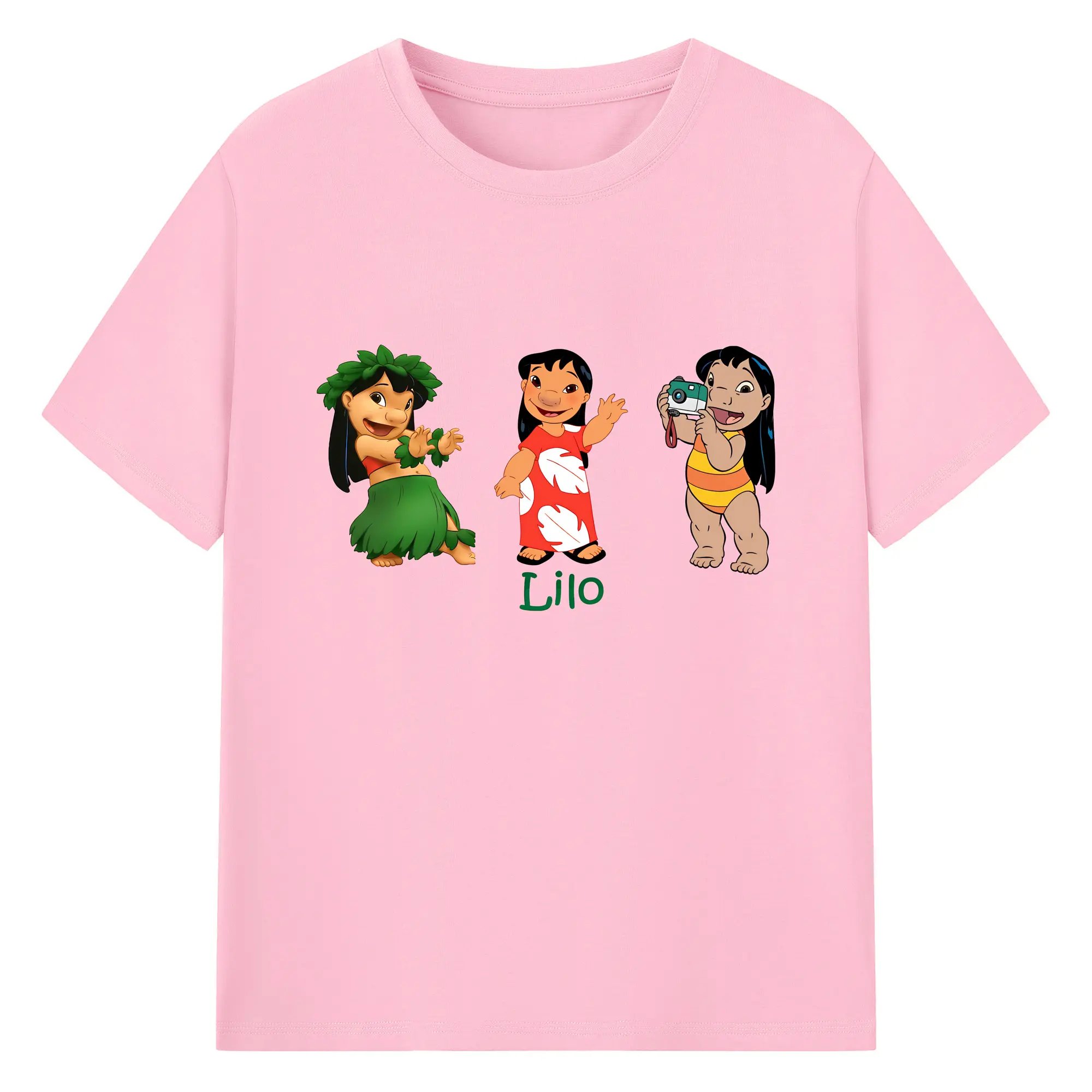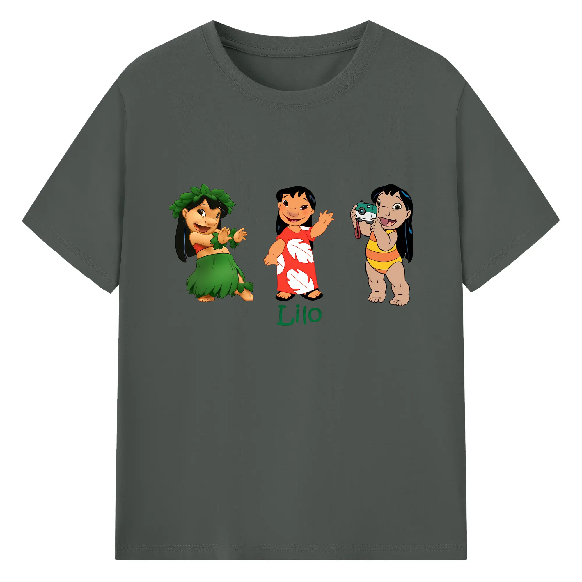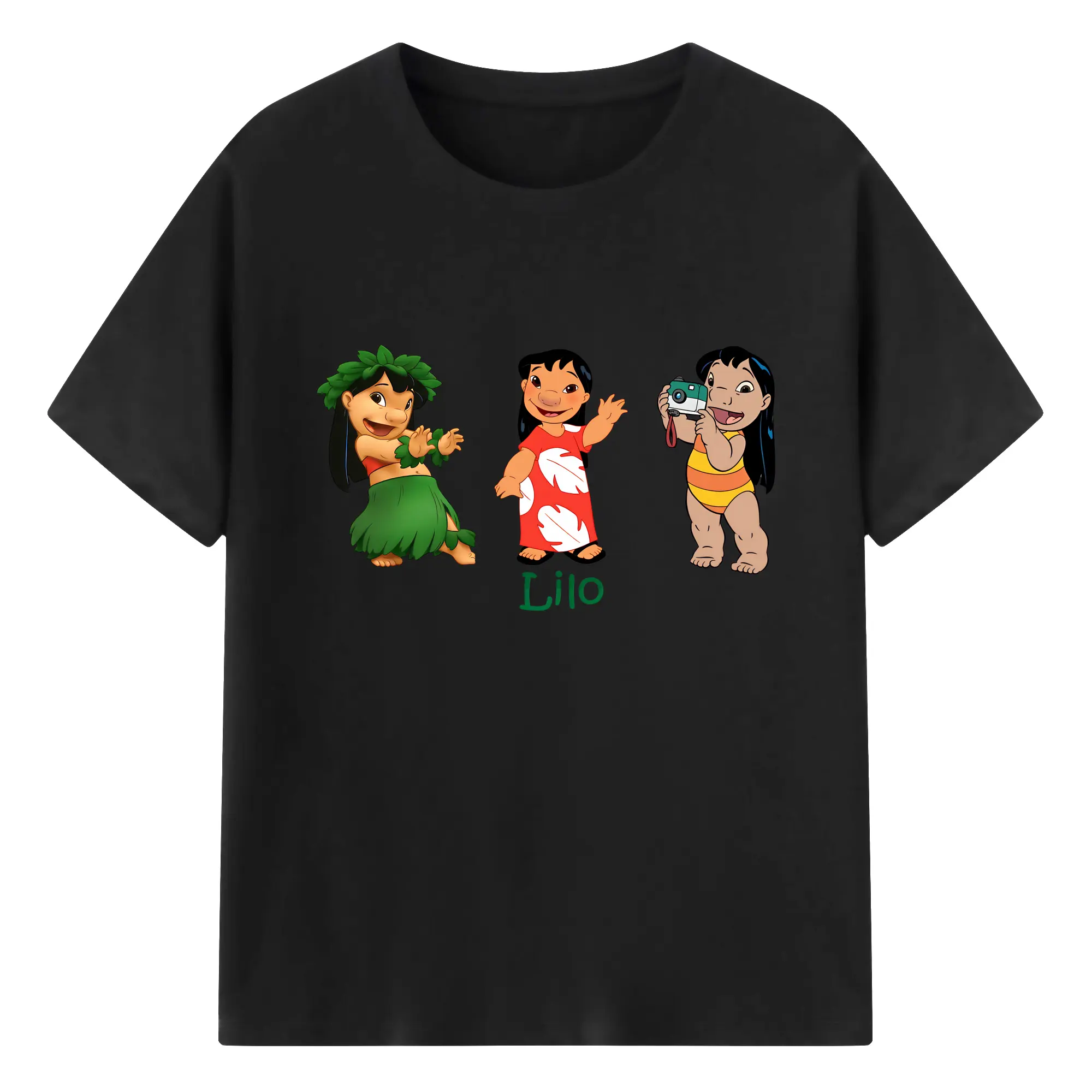 リロ&スティッチ グッズ リロ - 綿100% 半袖Tシャツ ・ バックプリント ・ 快適 通気性 ・ 日常使い 散歩 スポーツ用