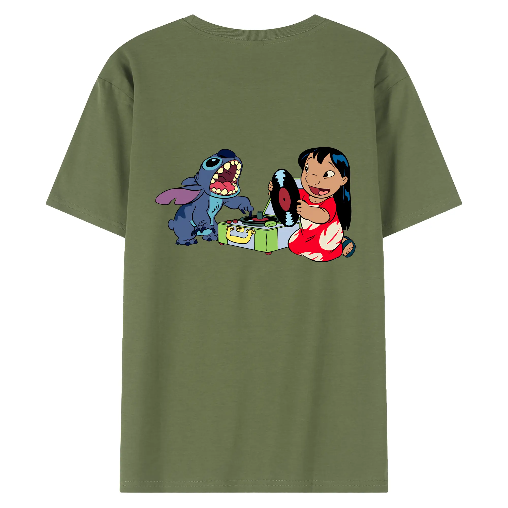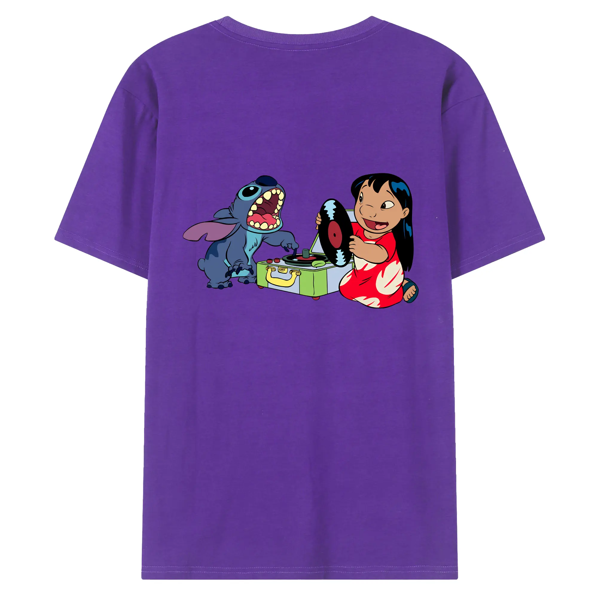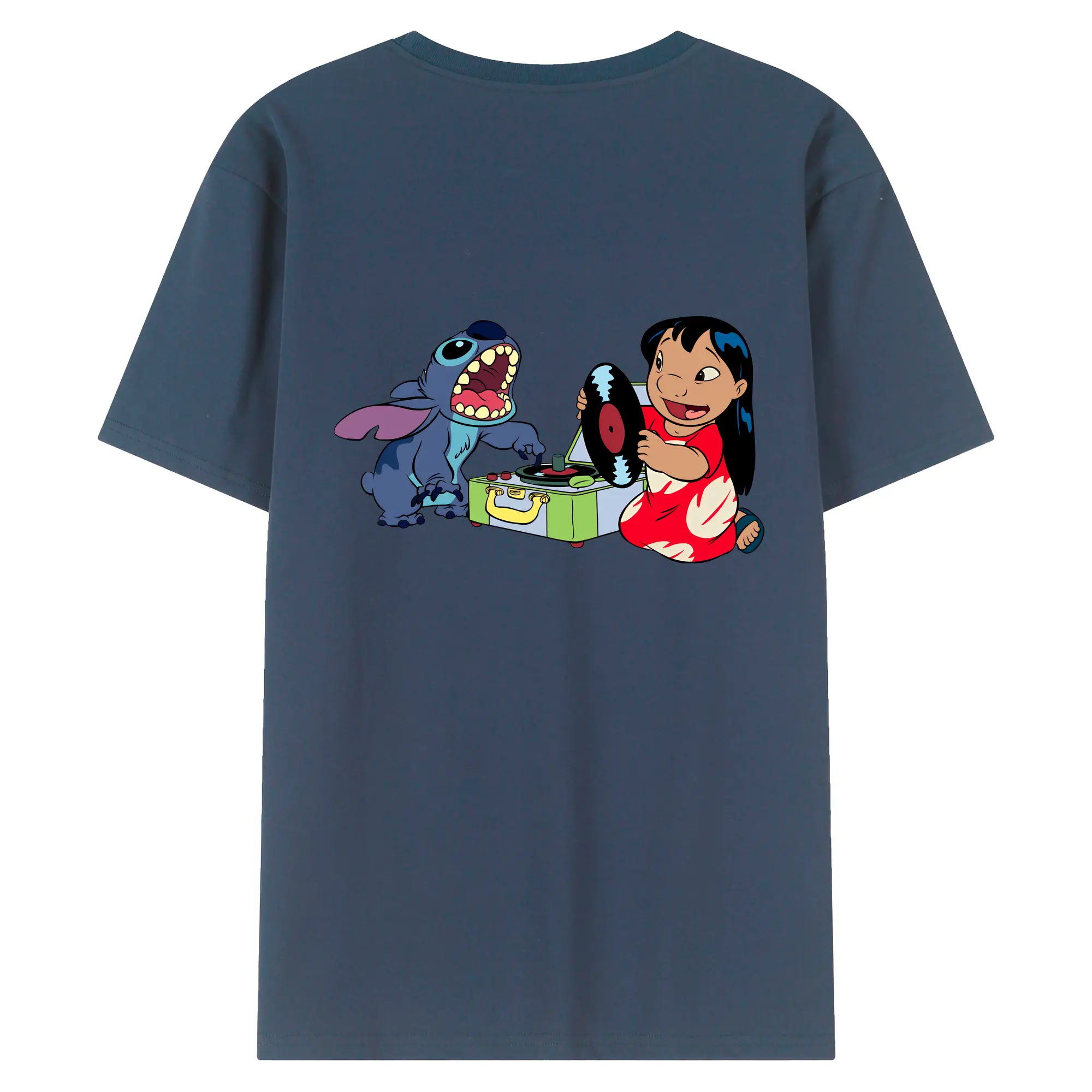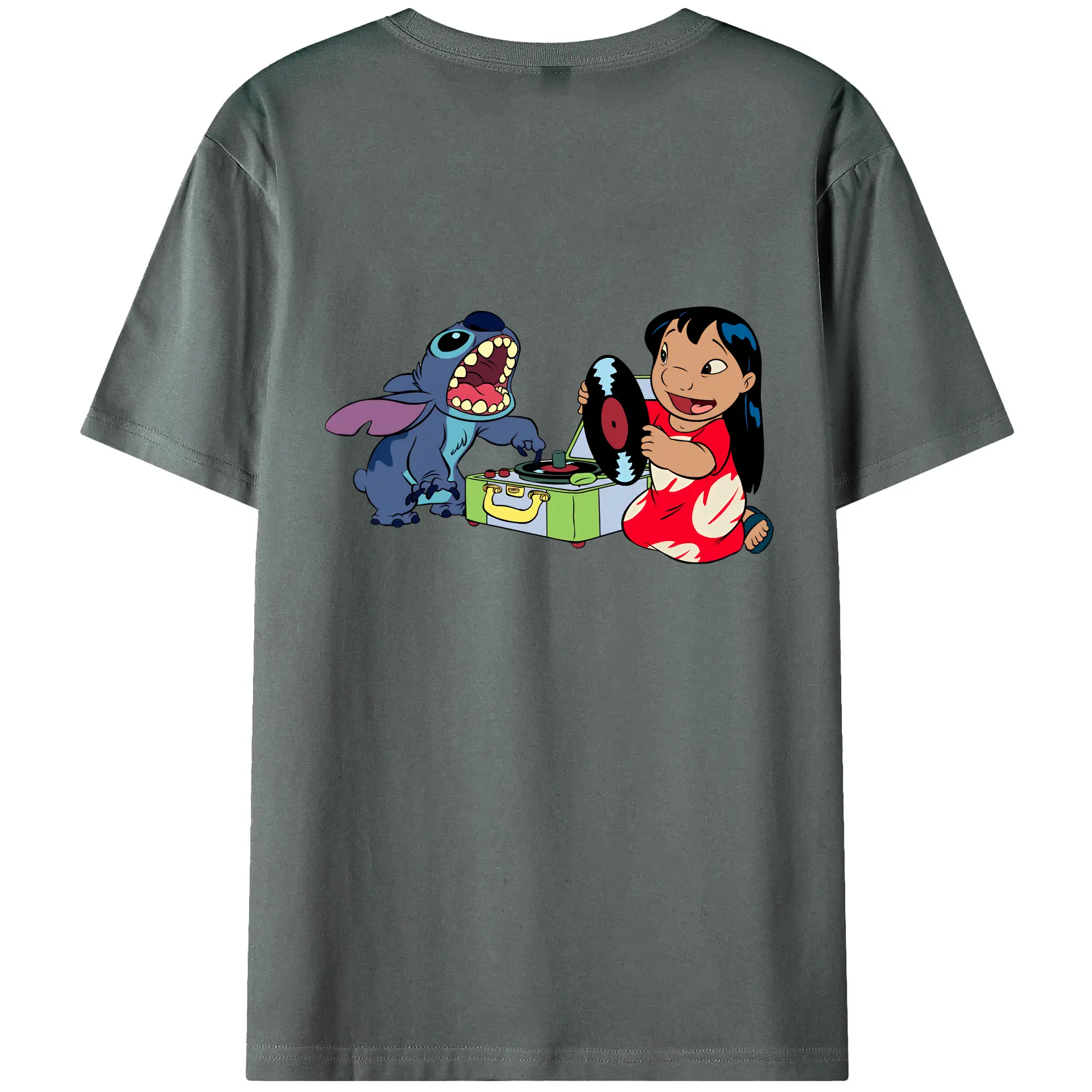 リロ&スティッチ グッズ リロ - 綿100% ヴィンテージ風 半袖Tシャツ ・ 背面プリント ・ 柔らか肌触り ・ 通気性 快適 ・ スポーツ カジュアル 外出用