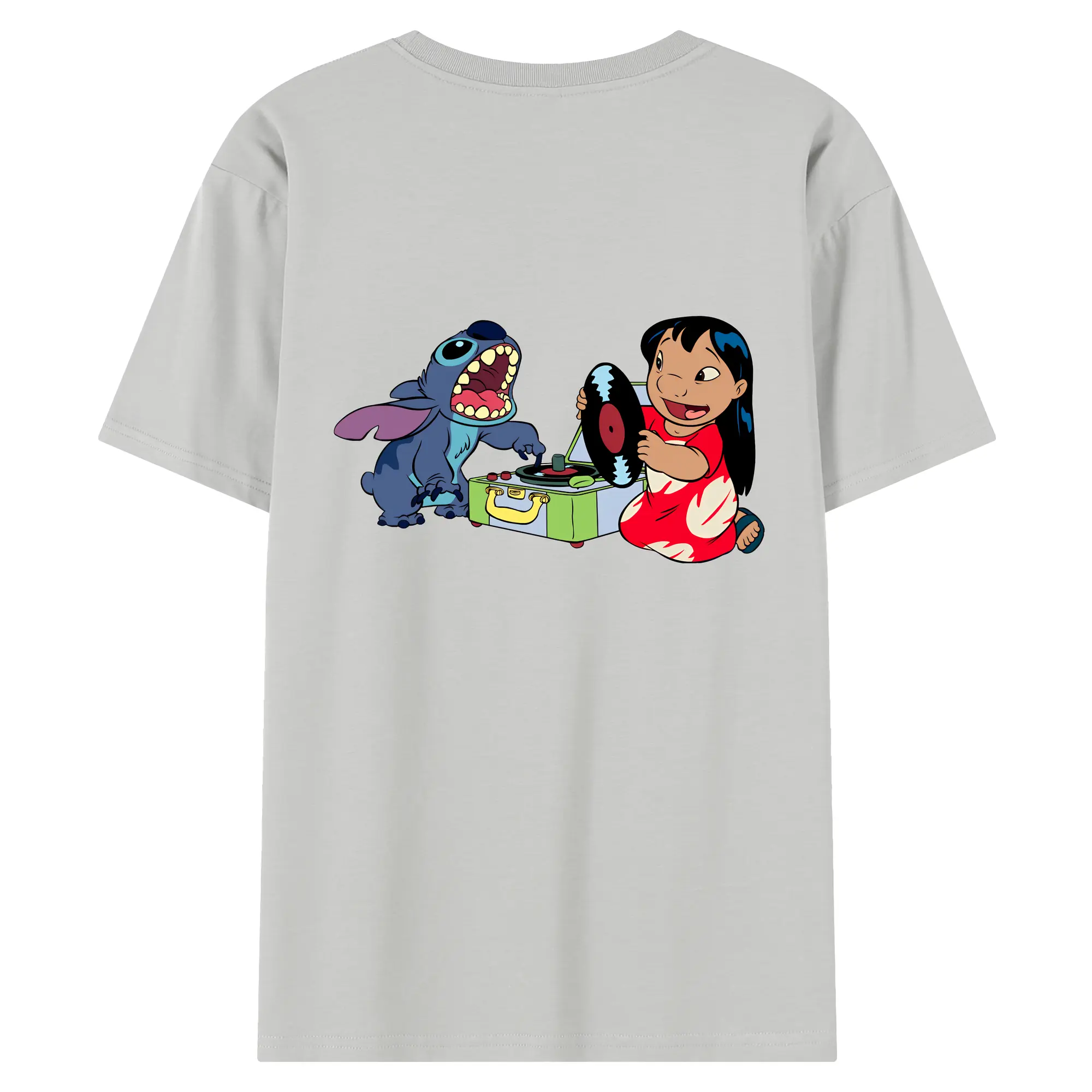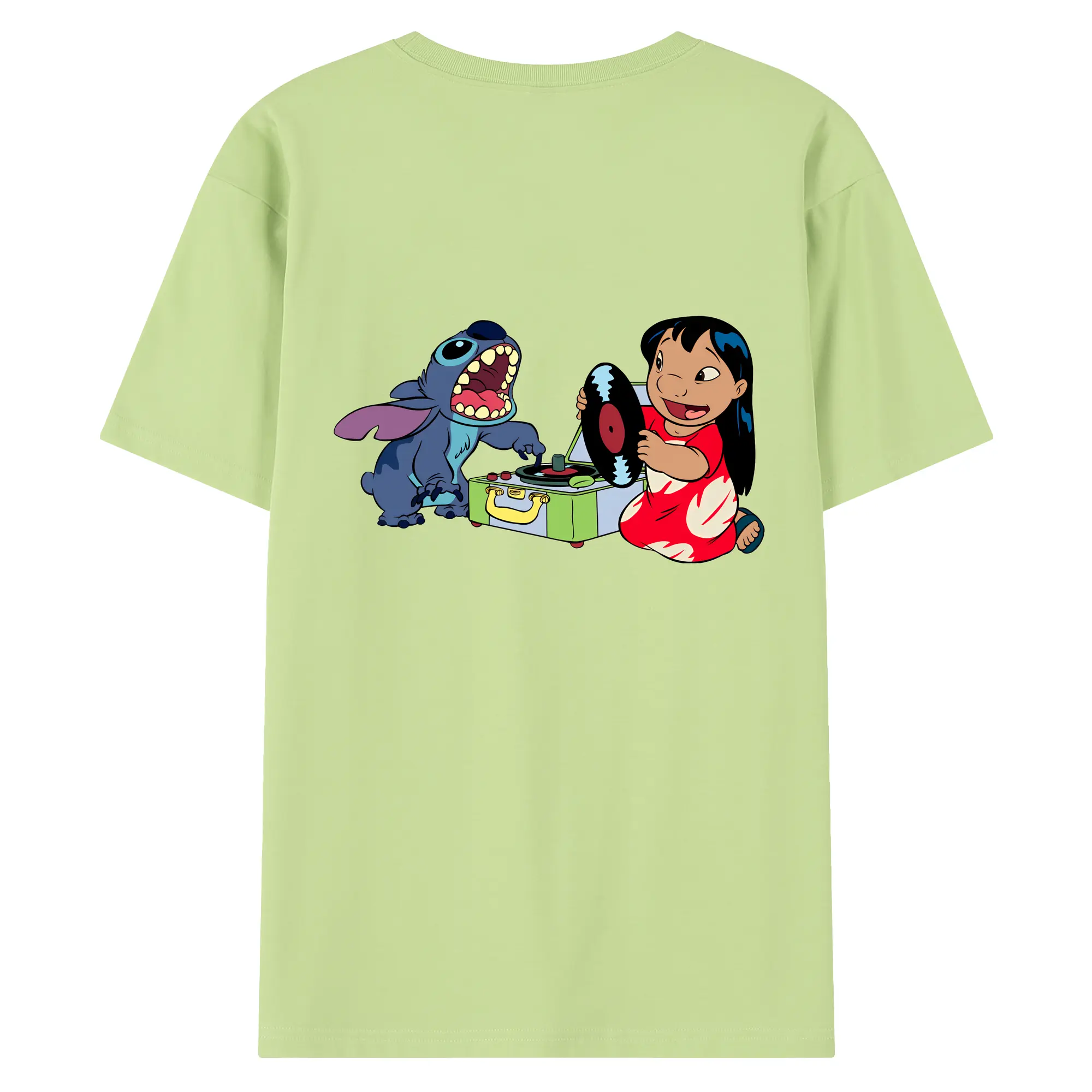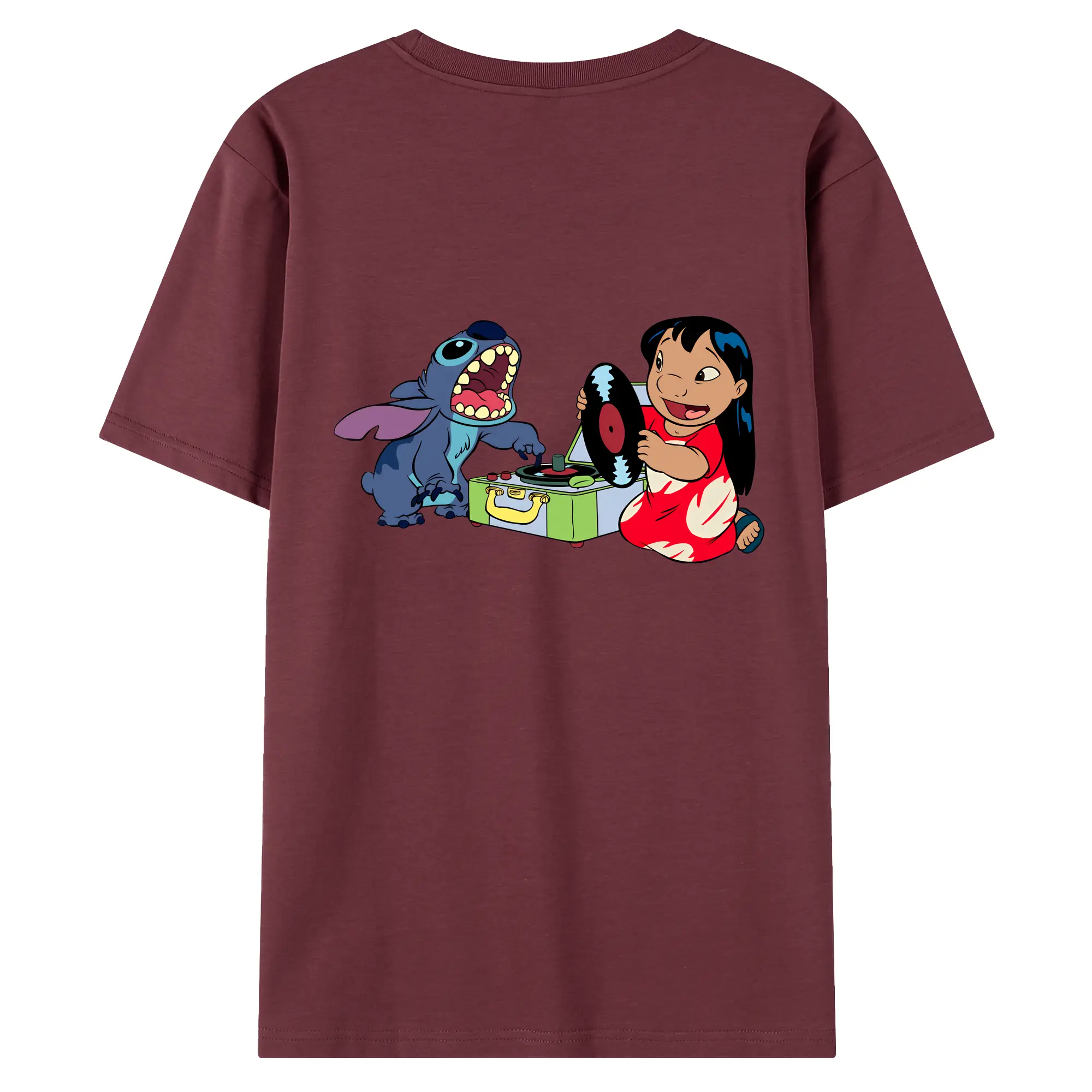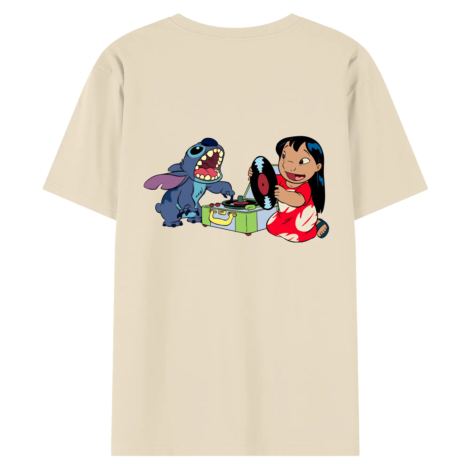 リロ&スティッチ グッズ リロ - 綿100% ヴィンテージ風 半袖Tシャツ ・ 背面プリント ・ 柔らか肌触り ・ 通気性 快適 ・ スポーツ カジュアル 外出用