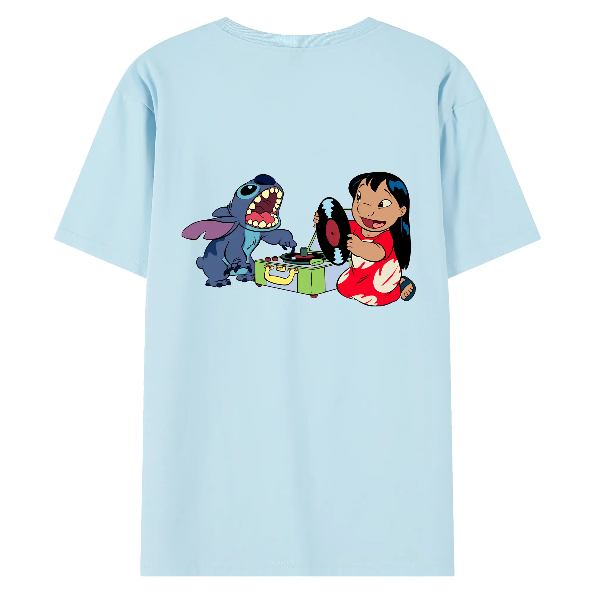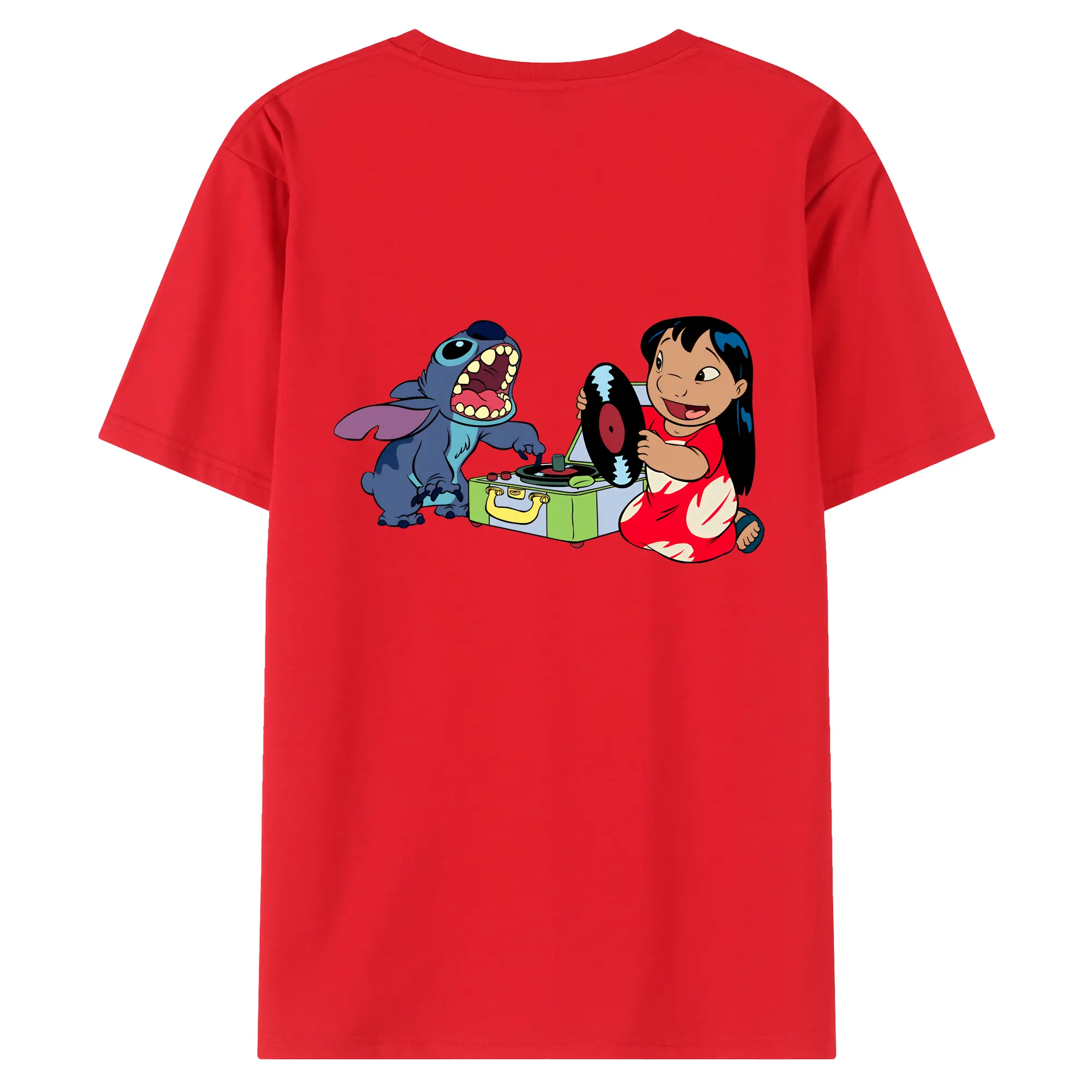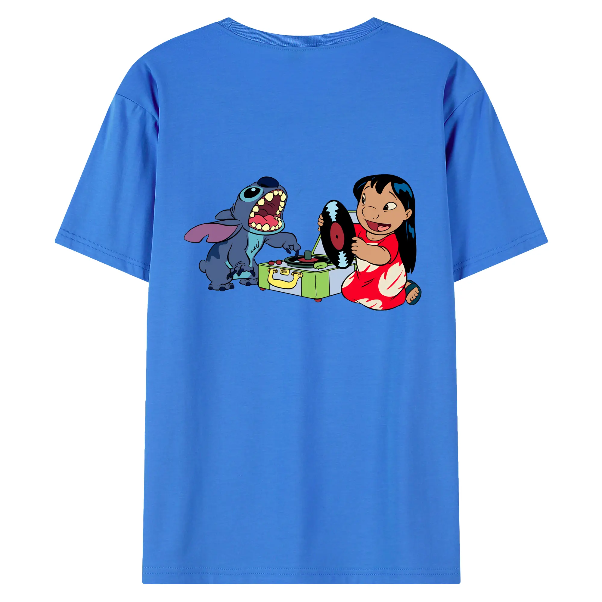 リロ&スティッチ グッズ リロ - 綿100% 半袖Tシャツ ・ フロントプリント ・ 快適 通気性 ・ 日常使い 散歩 スポーツ用