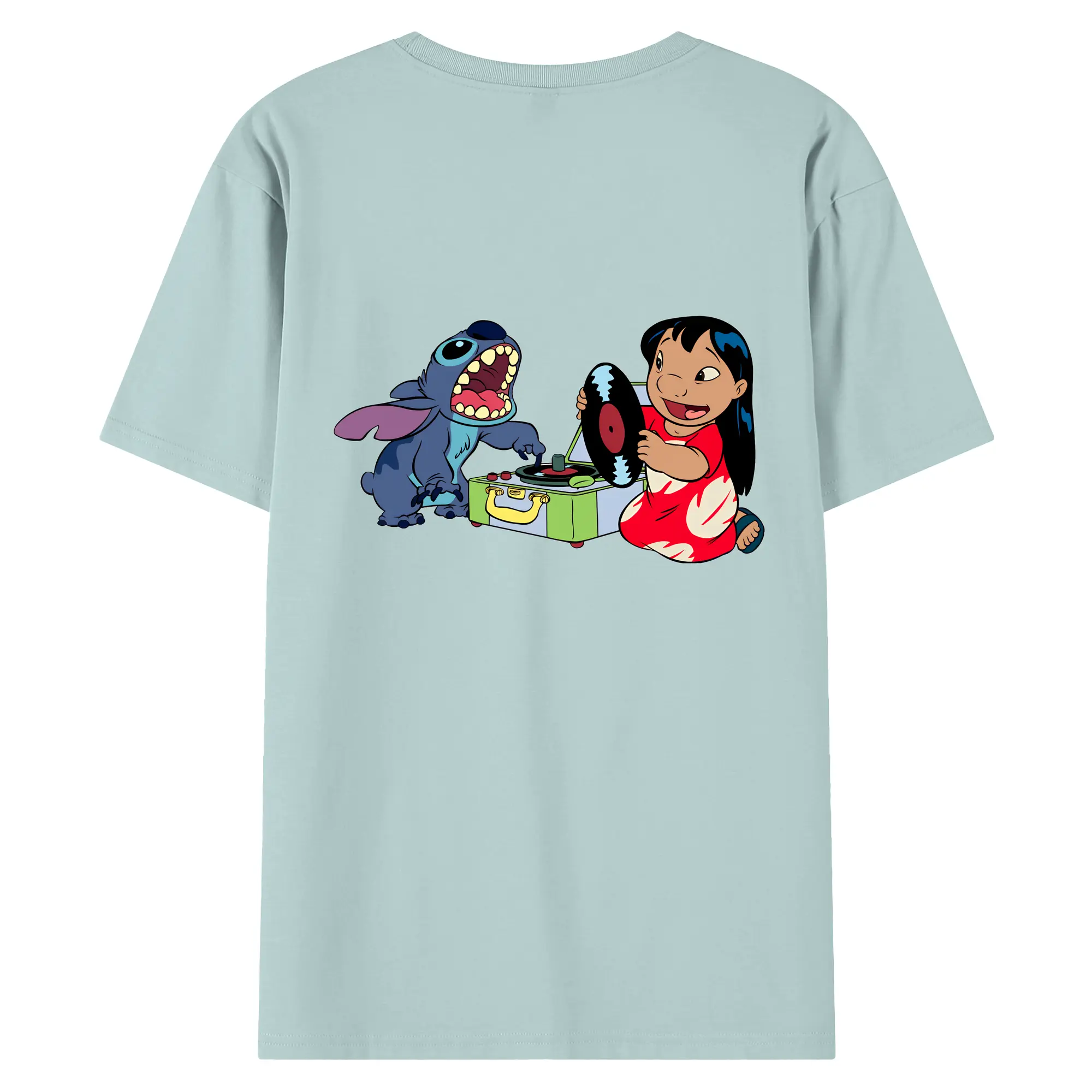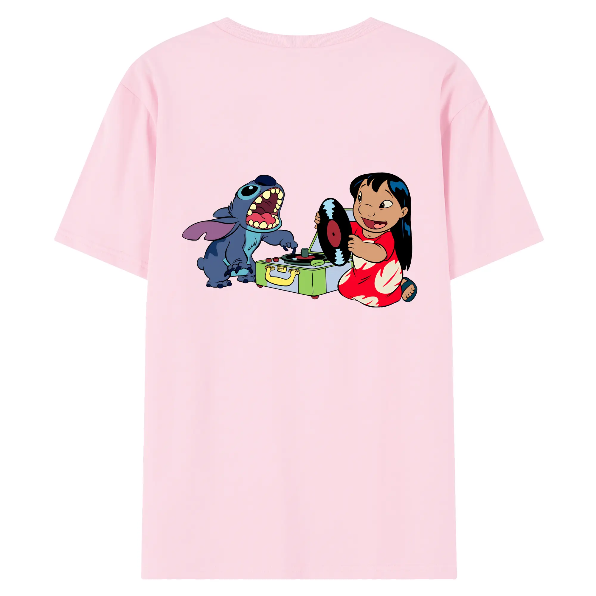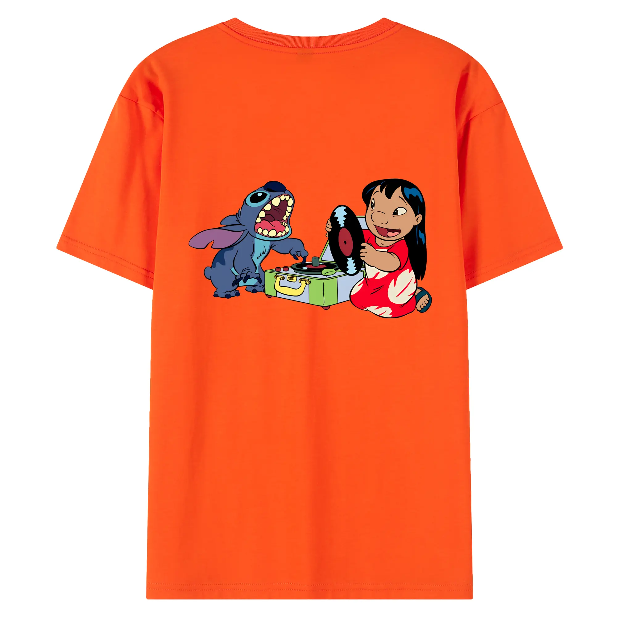 リロ&スティッチ グッズ リロ - 綿100% 半袖Tシャツ ・ フロントプリント ・ 快適 通気性 ・ 日常使い 散歩 スポーツ用