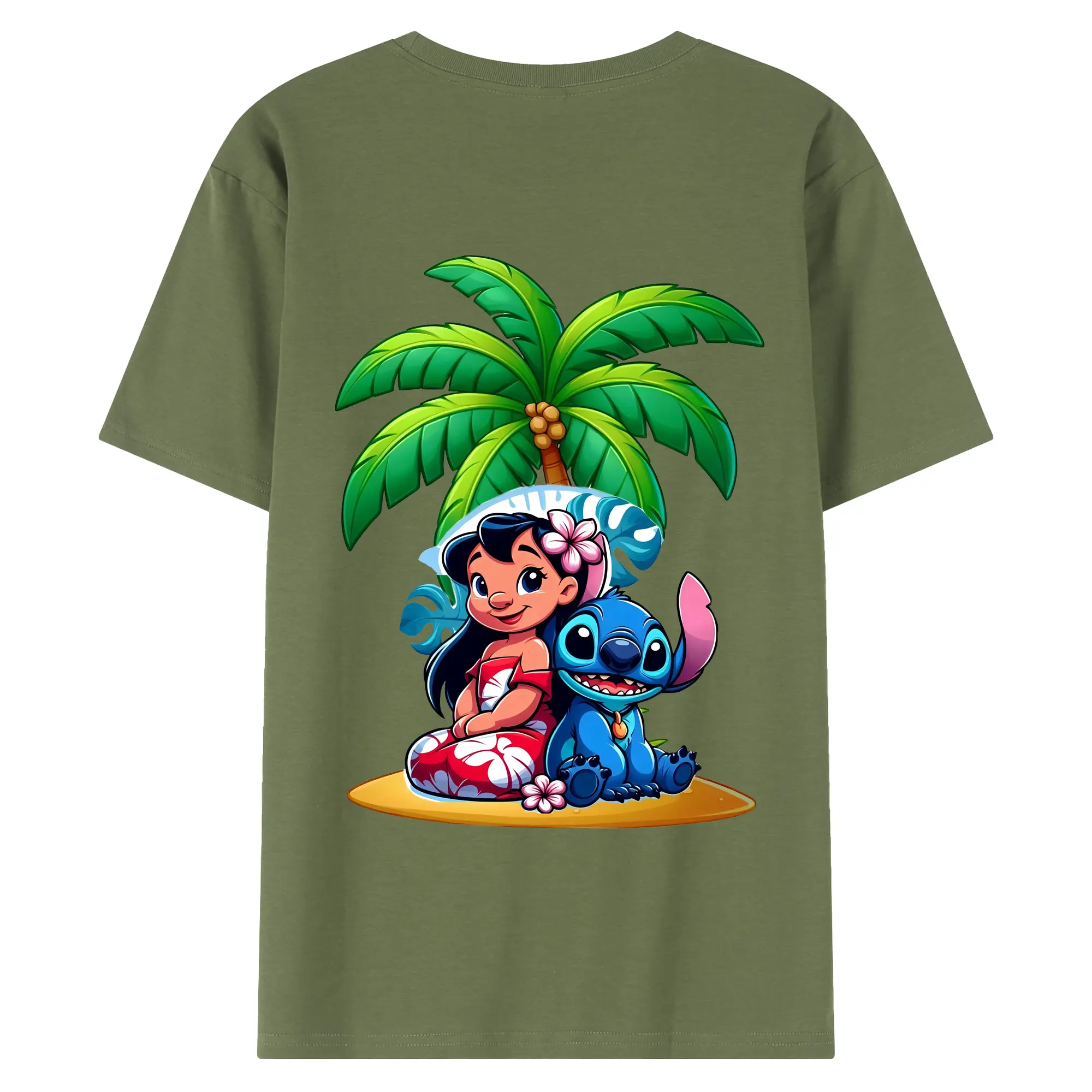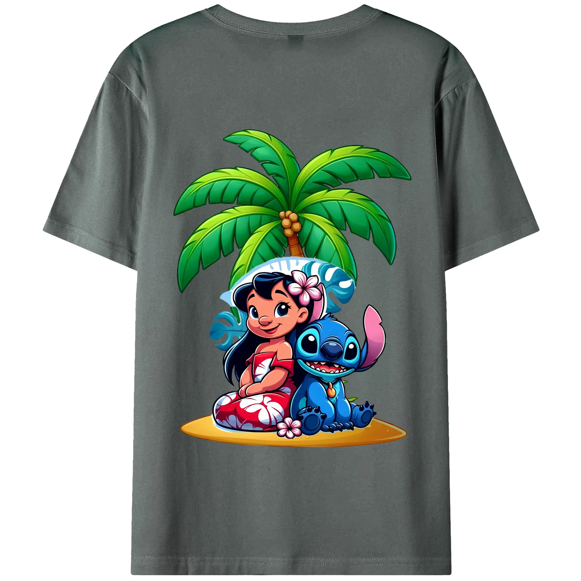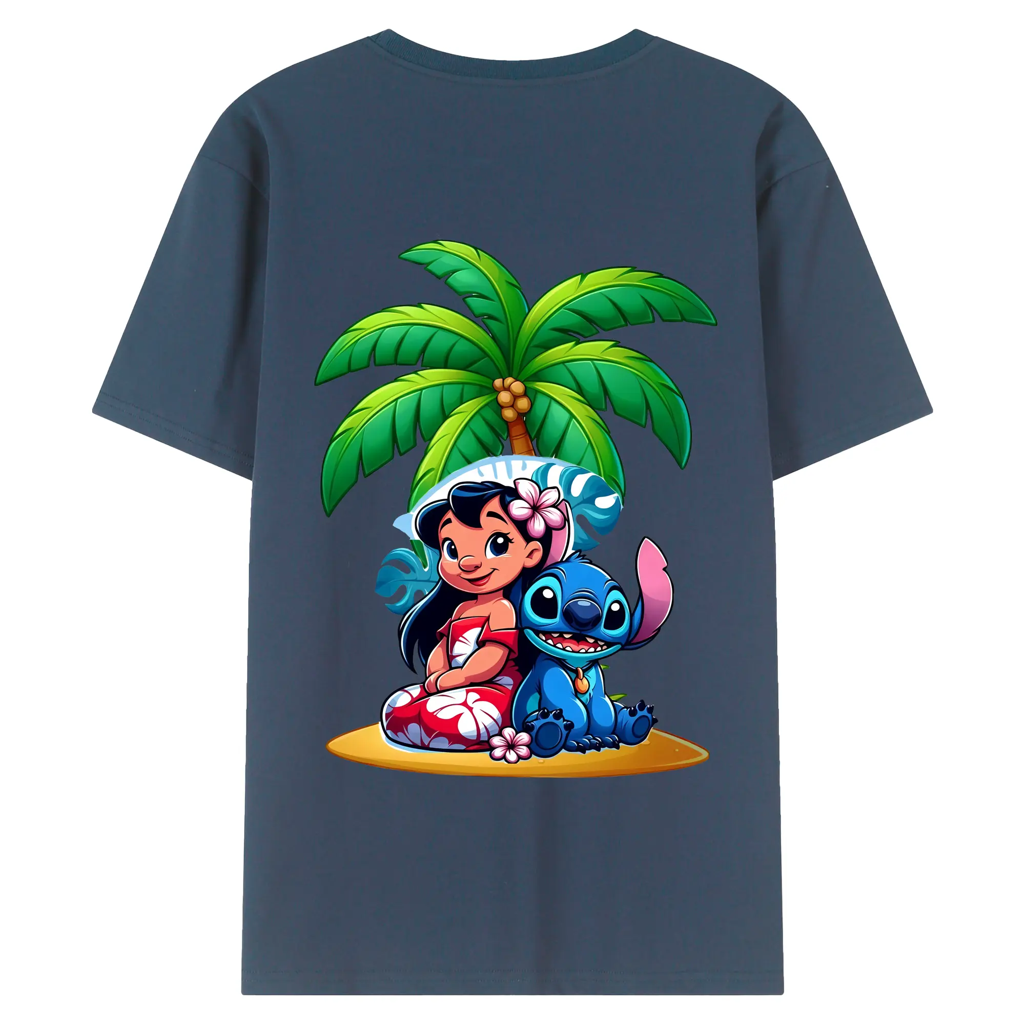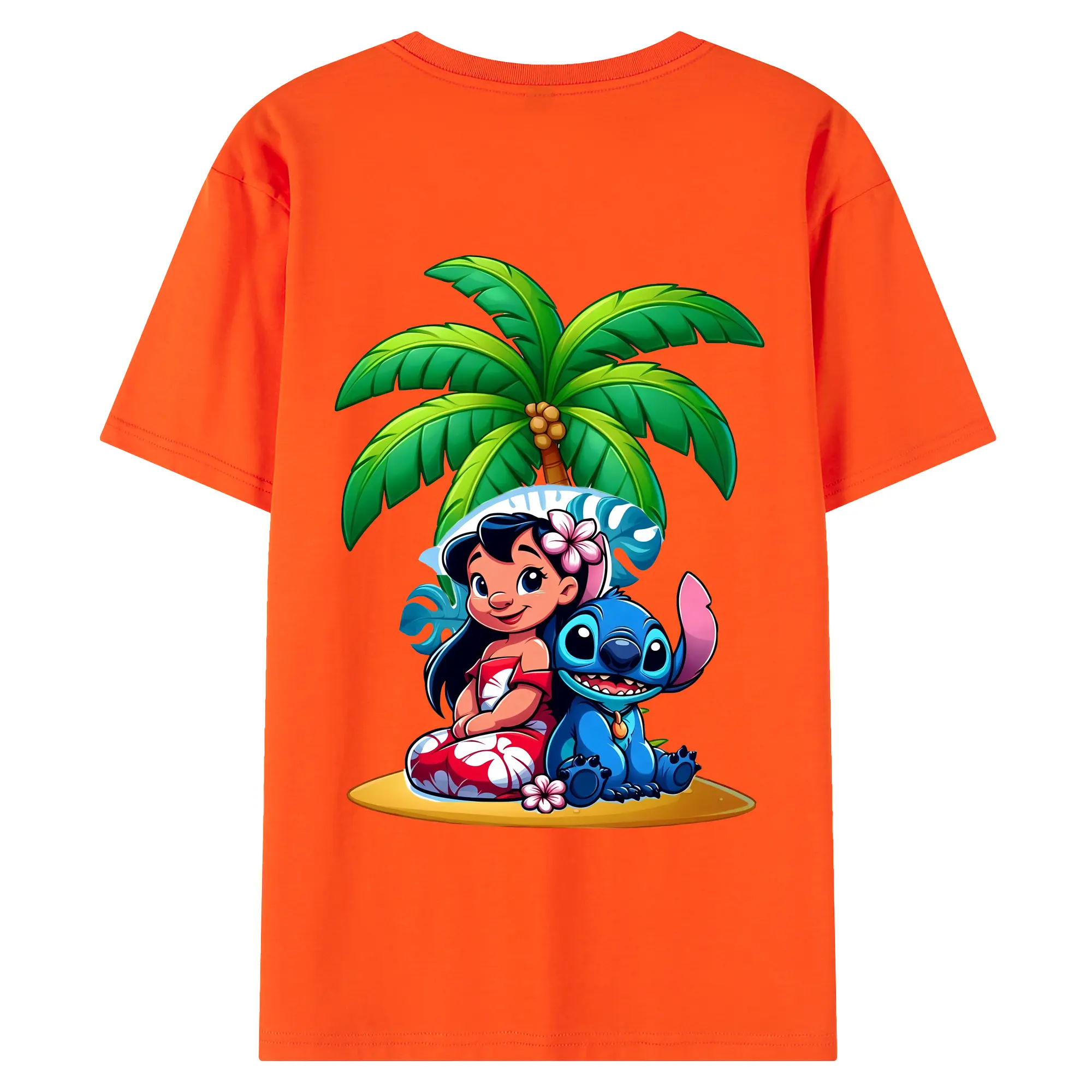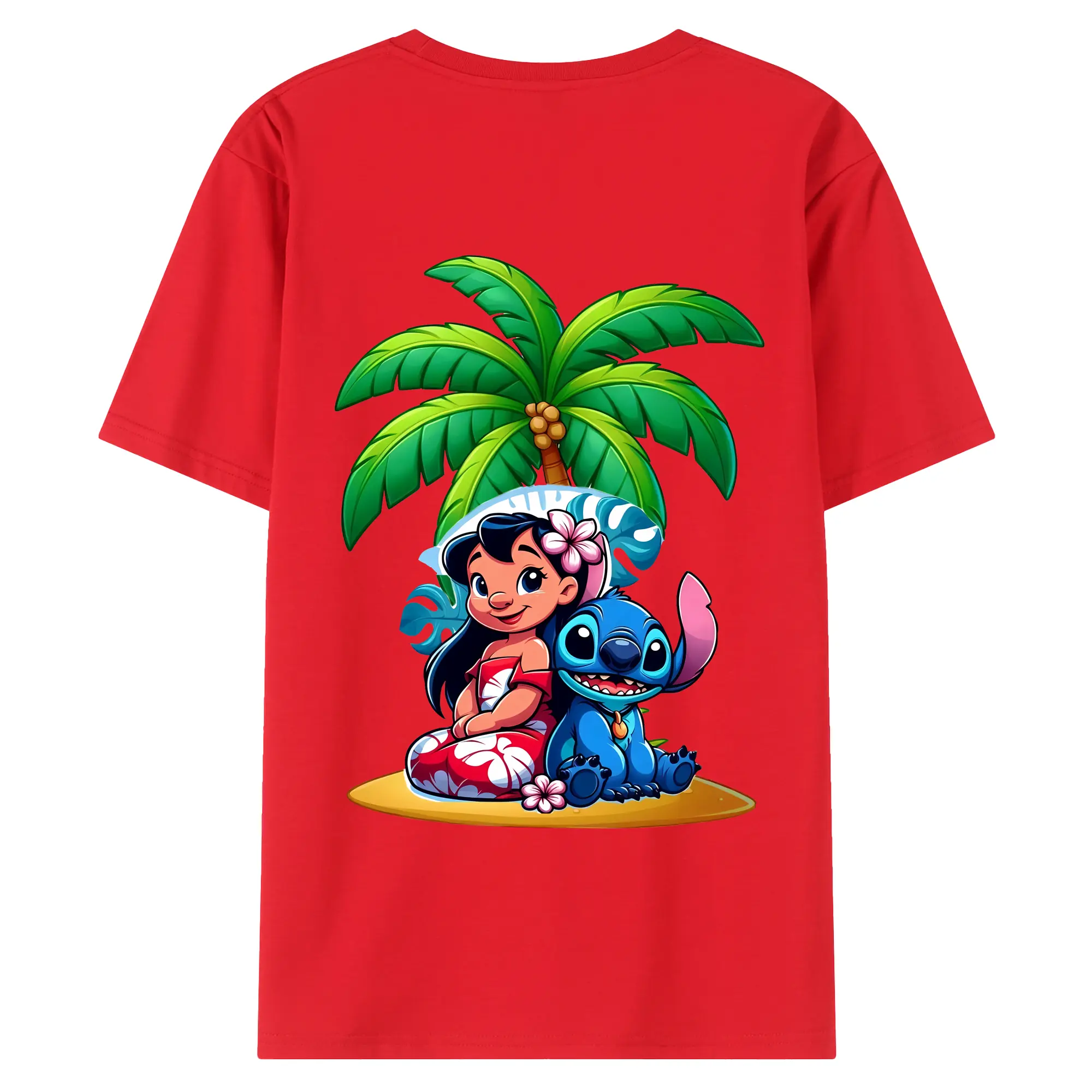 リロ&スティッチ グッズ リロ - 綿100% ヴィンテージ風 半袖Tシャツ ・ 背面プリント ・ 柔らか肌触り ・ 通気性 快適 ・ スポーツ カジュアル 外出用