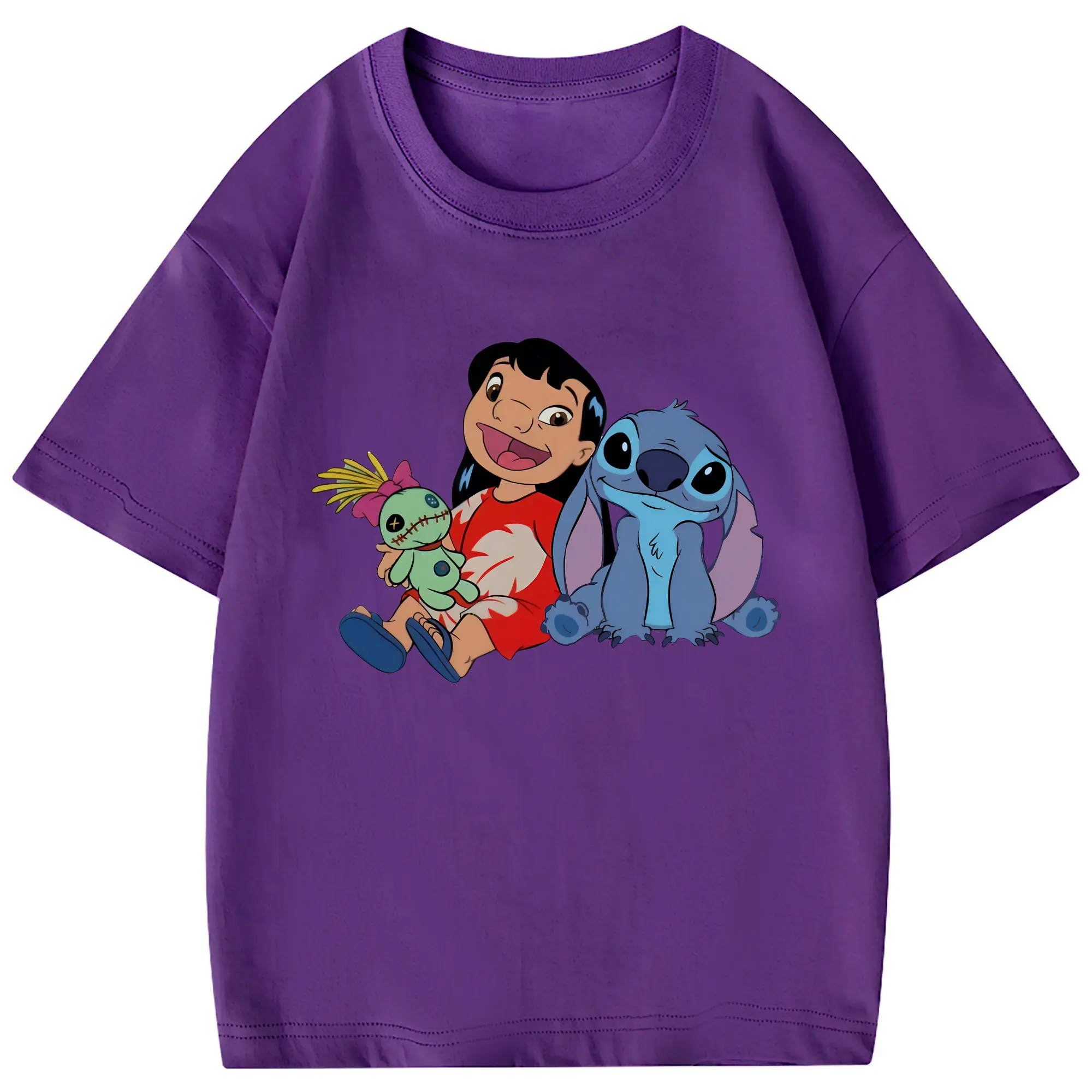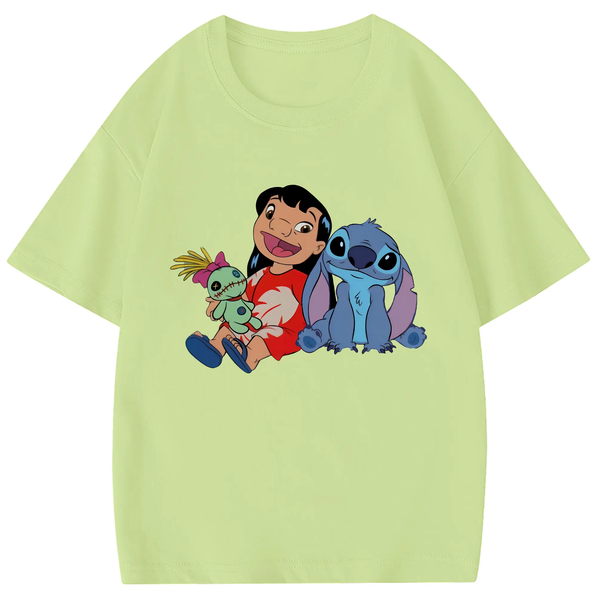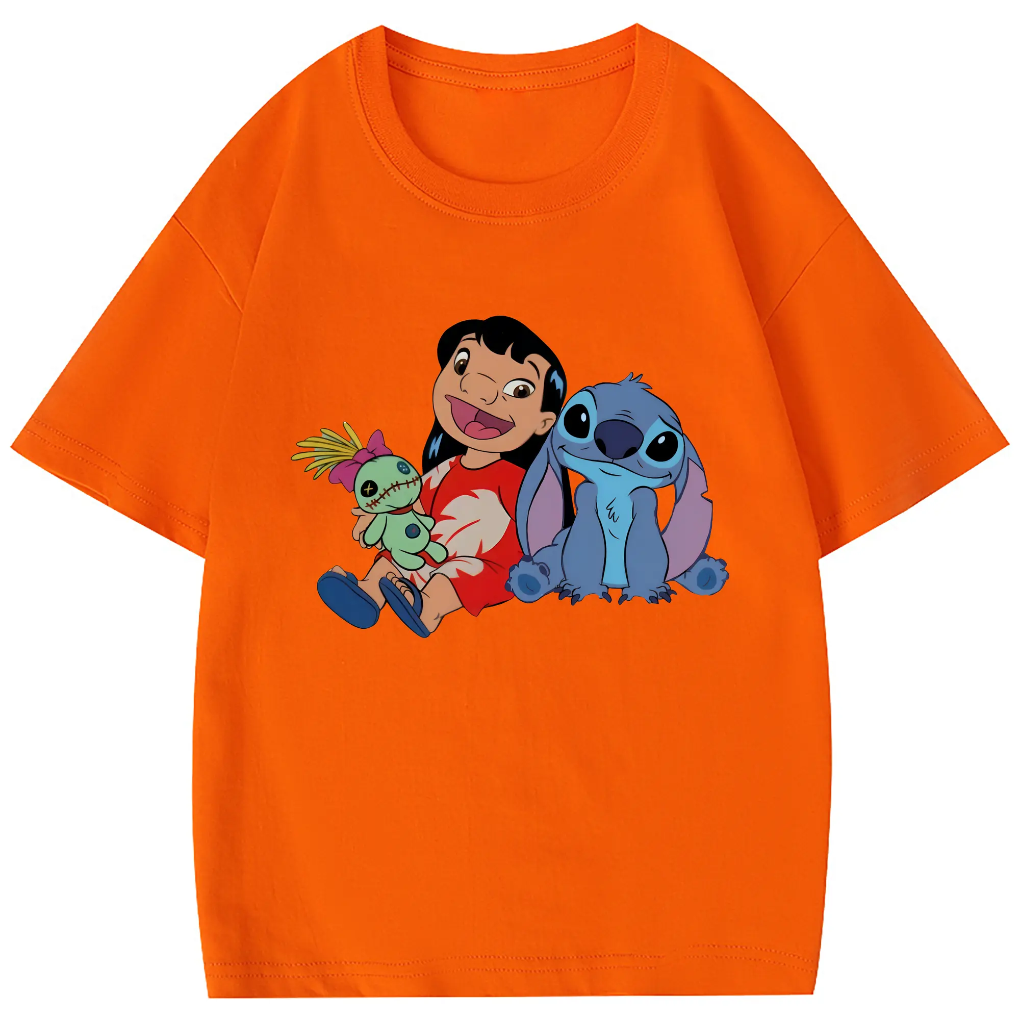 リロ&スティッチ グッズ リロ - 綿100% 半袖Tシャツ ・ バックプリント ・ 快適 通気性 ・ 日常使い 散歩 スポーツ用