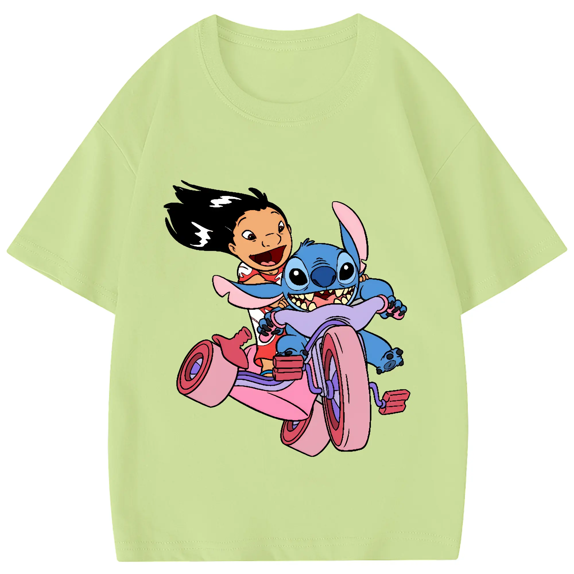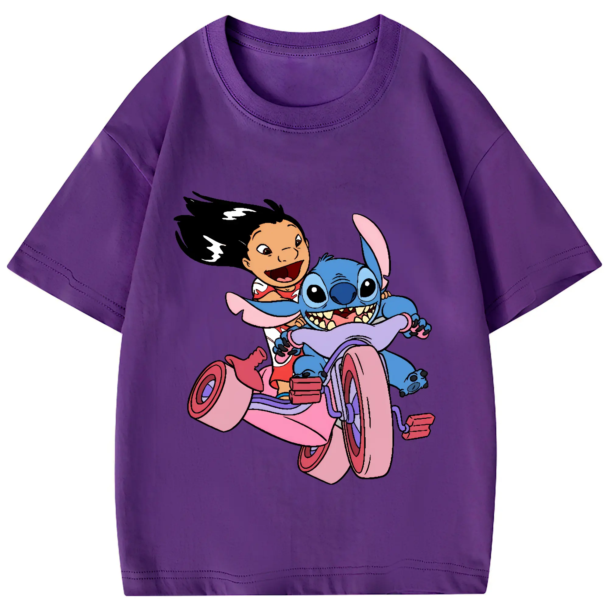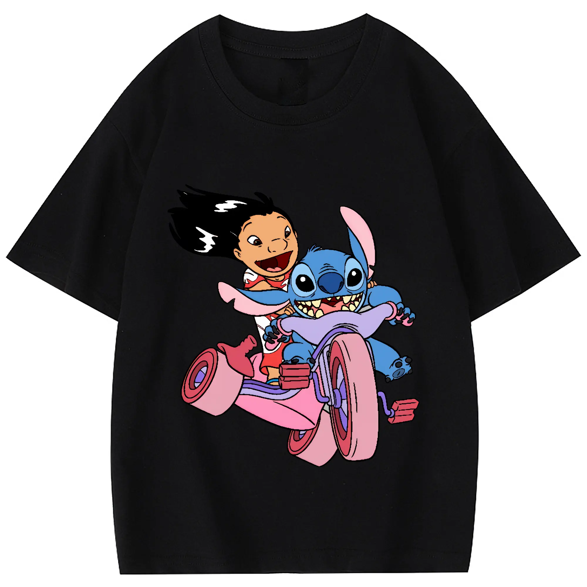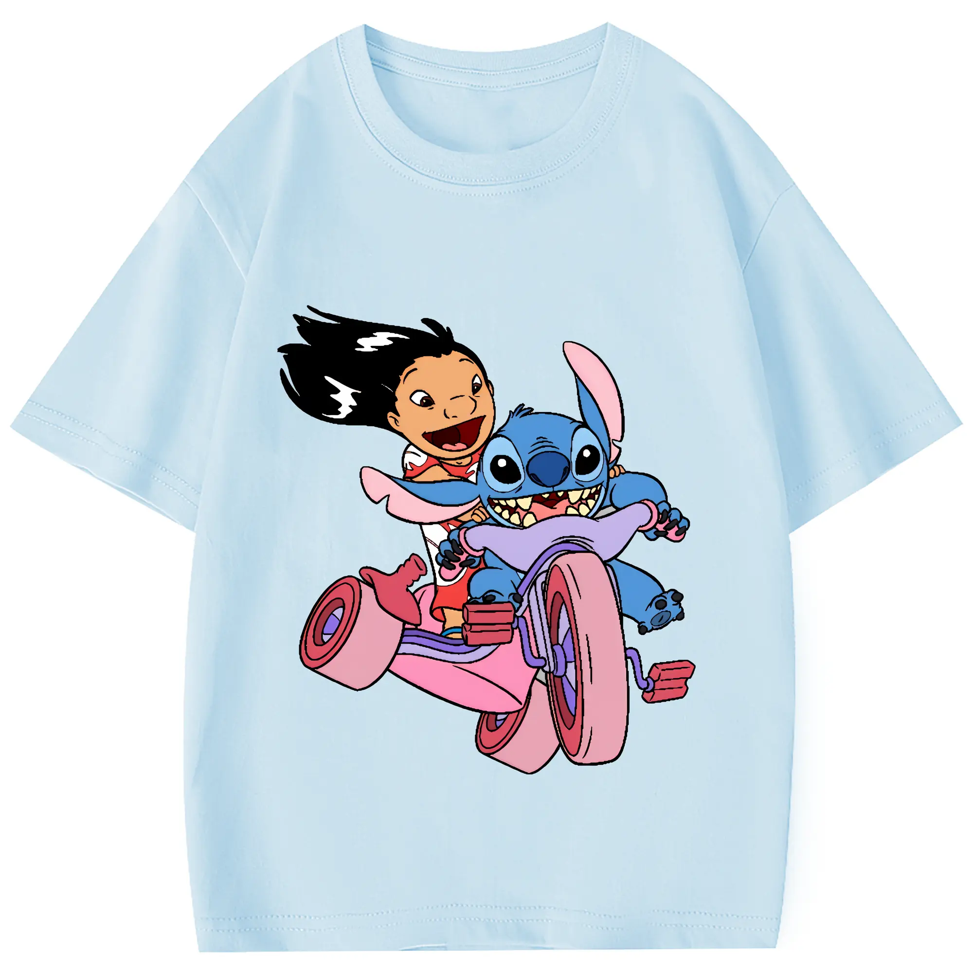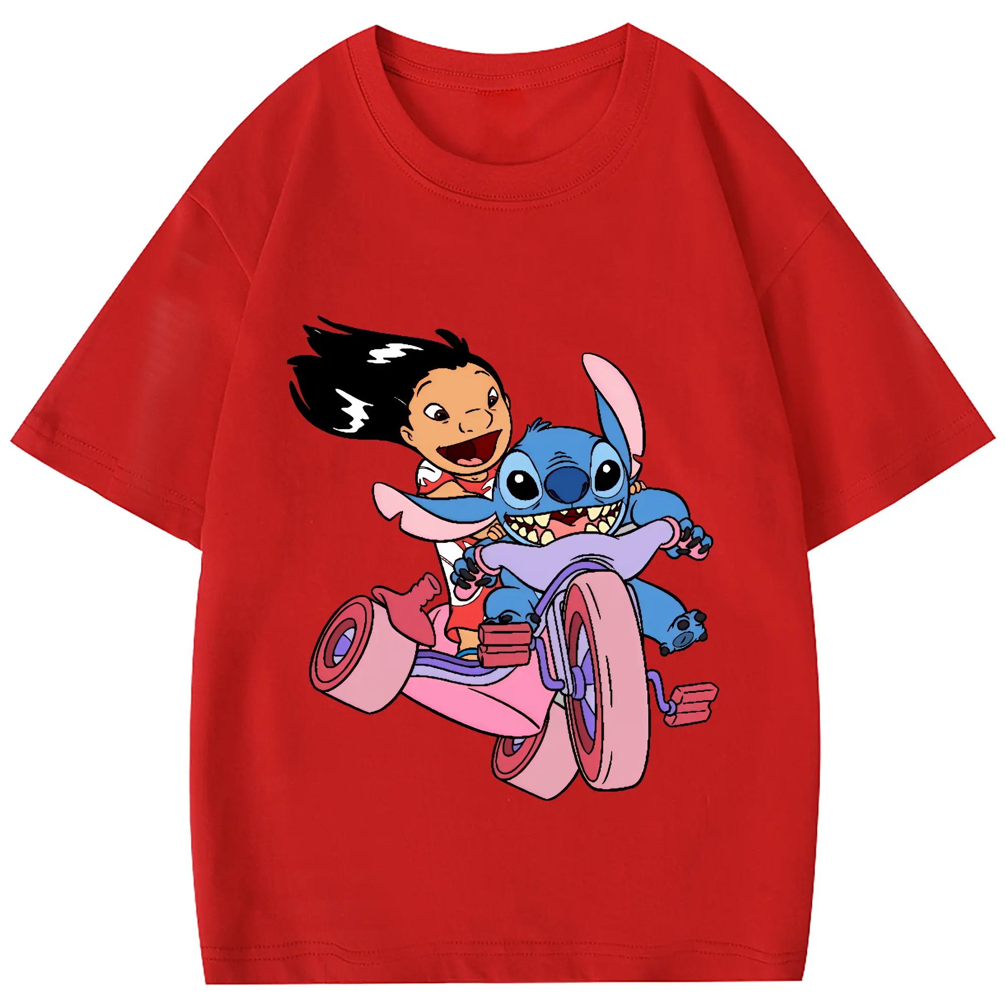 リロ&スティッチ グッズ リロ - 綿100% 半袖Tシャツ ・ バックプリント ・ 快適 通気性 ・ 日常使い 散歩 スポーツ用