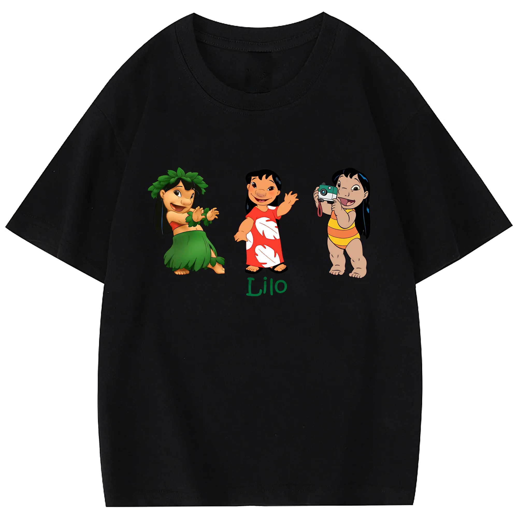 リロ&スティッチ グッズ リロ - 綿100% 半袖Tシャツ ・ バックプリント ・ 快適 通気性 ・ 日常使い 散歩 スポーツ用
