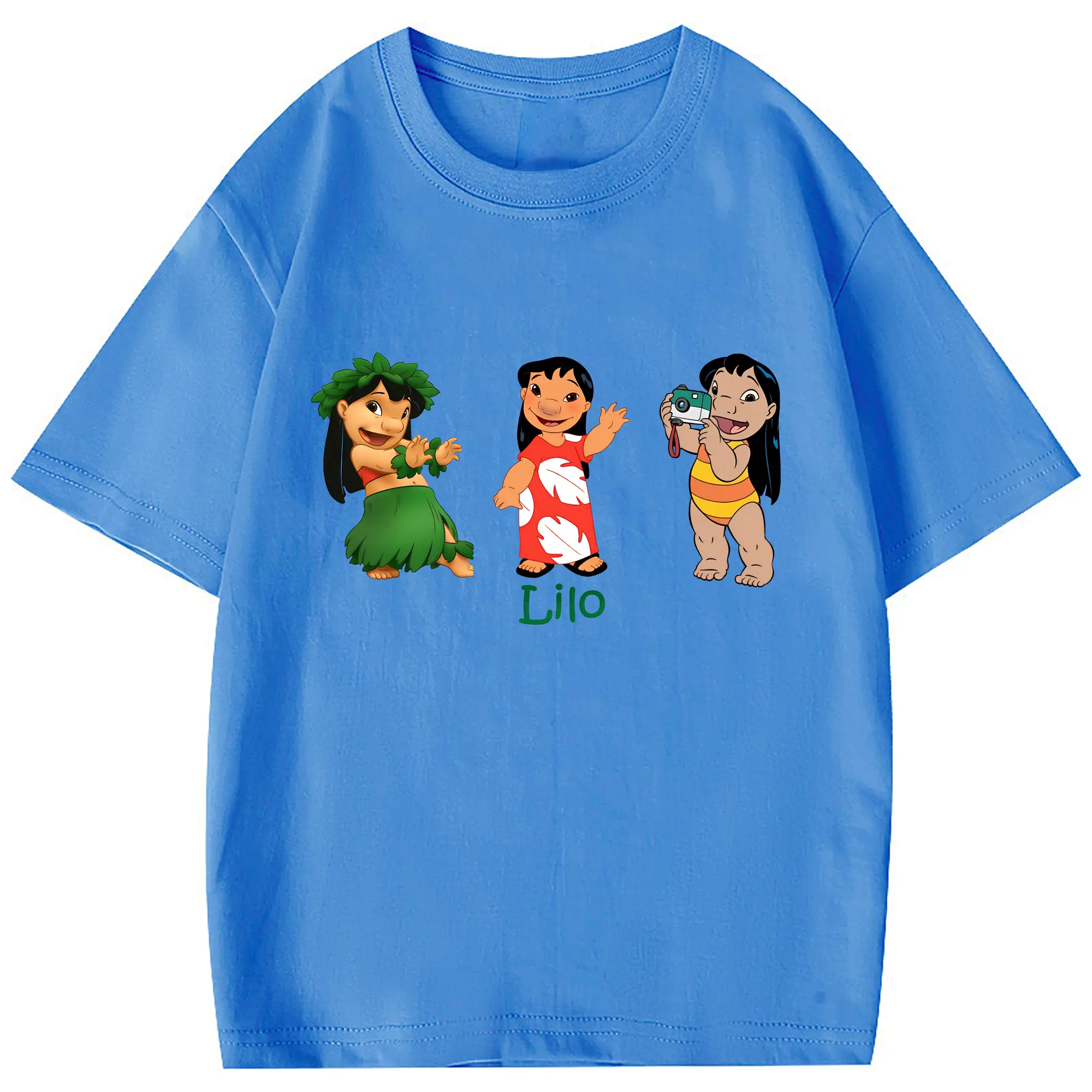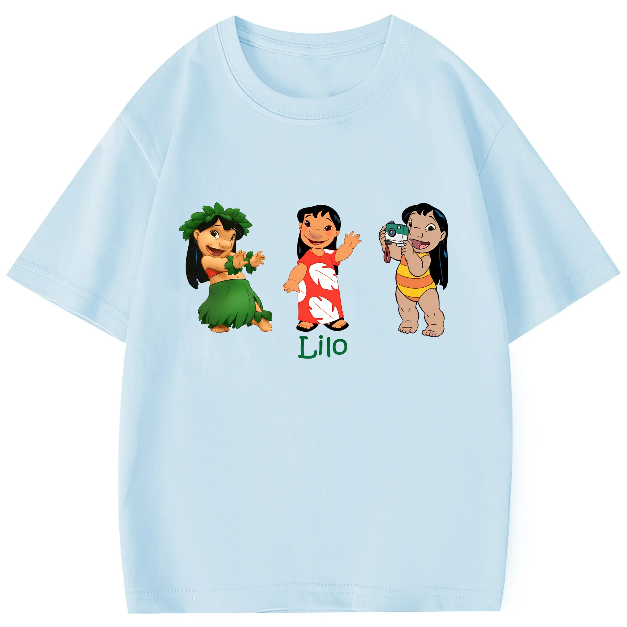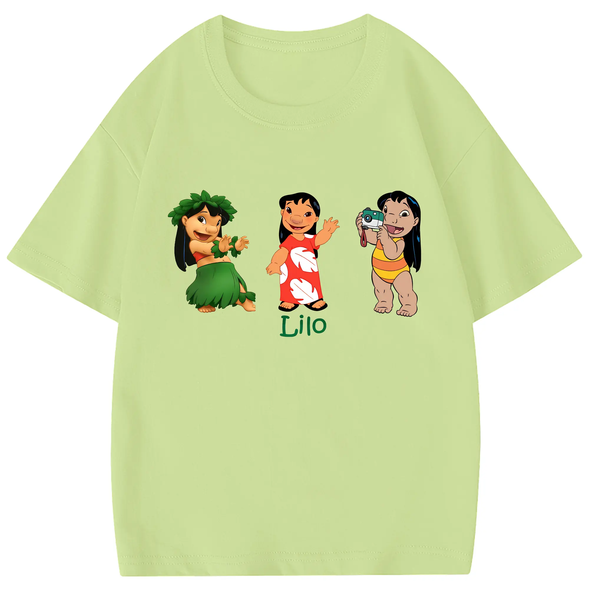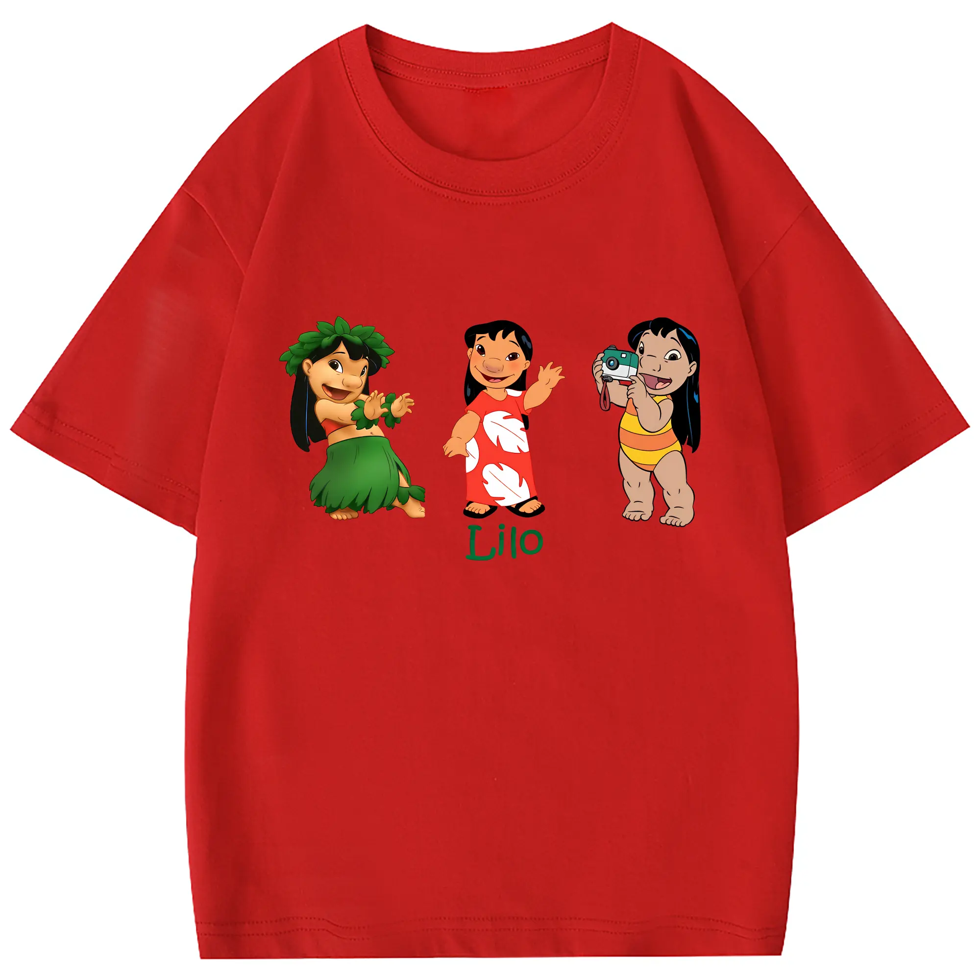 リロ&スティッチ グッズ リロ - 綿100% 半袖Tシャツ ・ フロントプリント ・ 快適 通気性 ・ 日常使い 散歩 スポーツ用