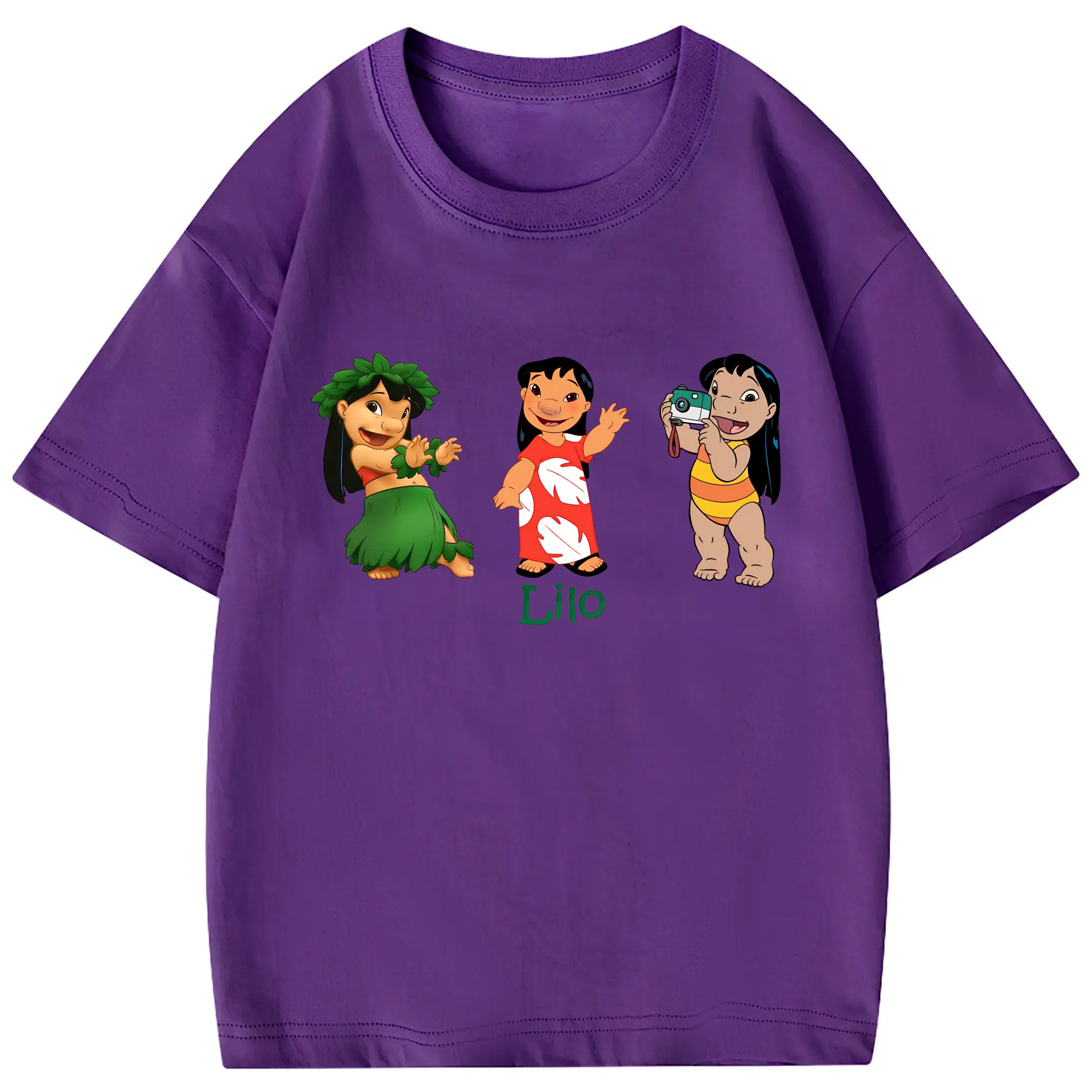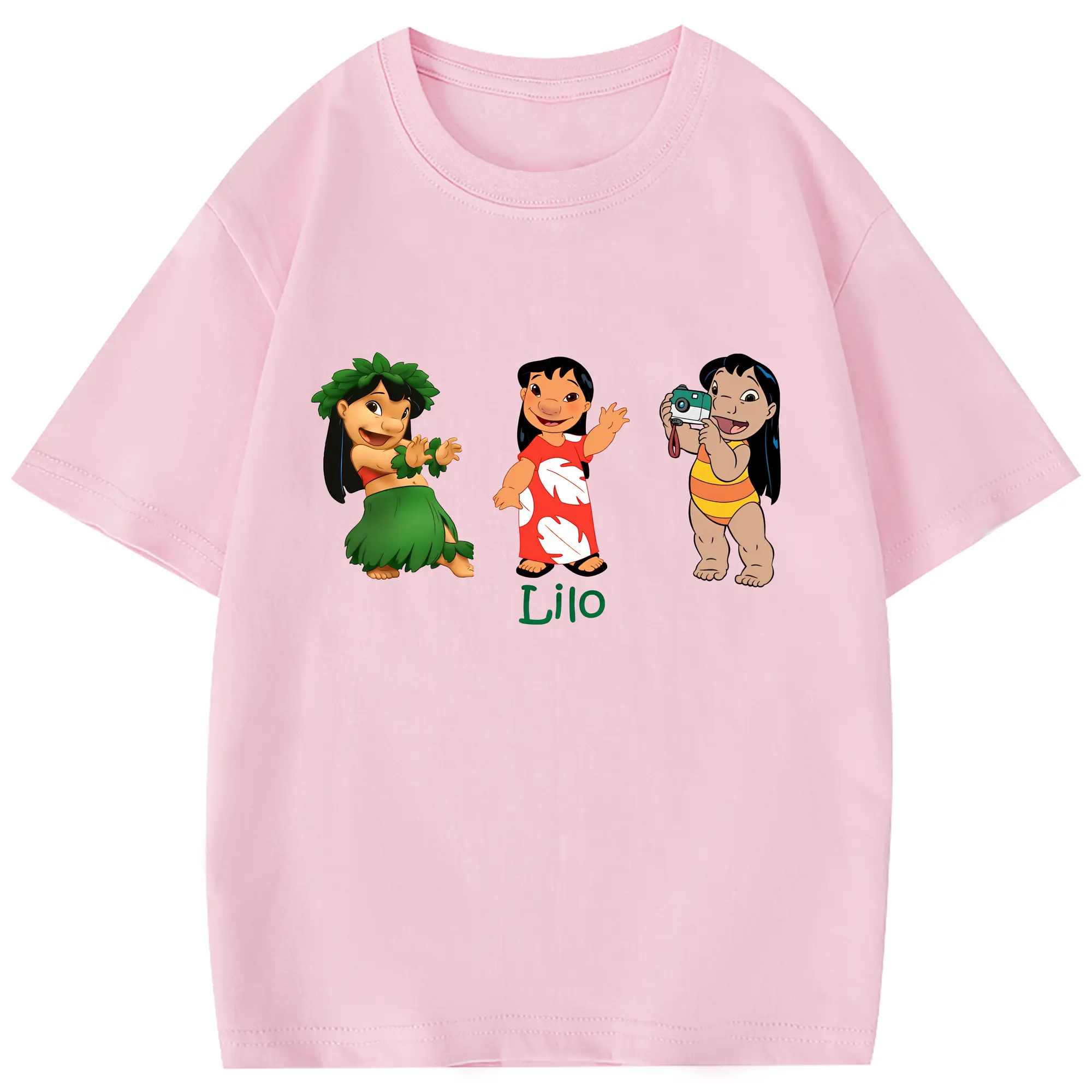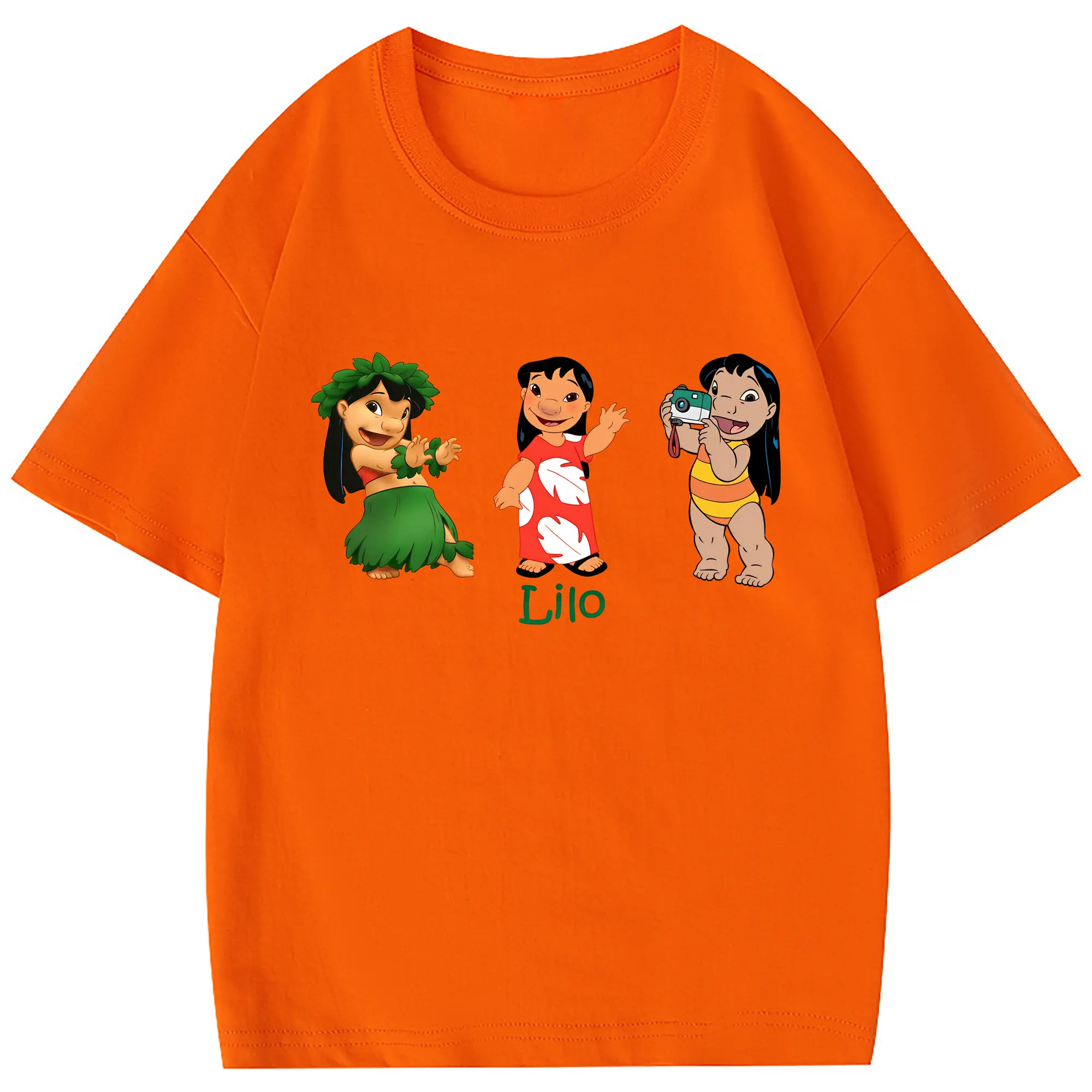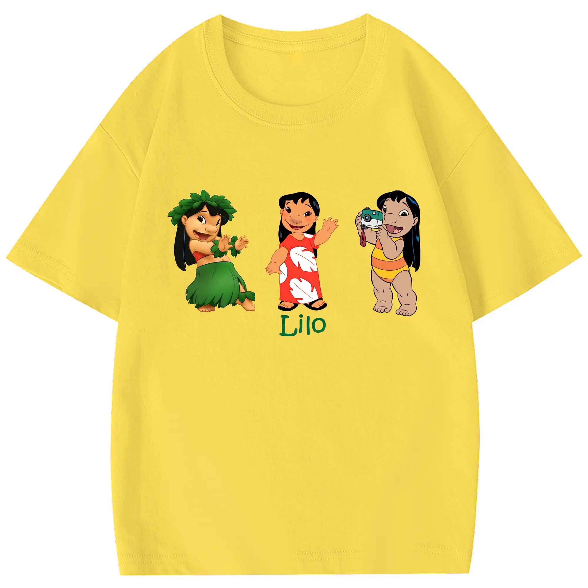 リロ&スティッチ グッズ リロ - 綿100% 半袖Tシャツ ・ フロントプリント ・ 快適 通気性 ・ 日常使い 散歩 スポーツ用