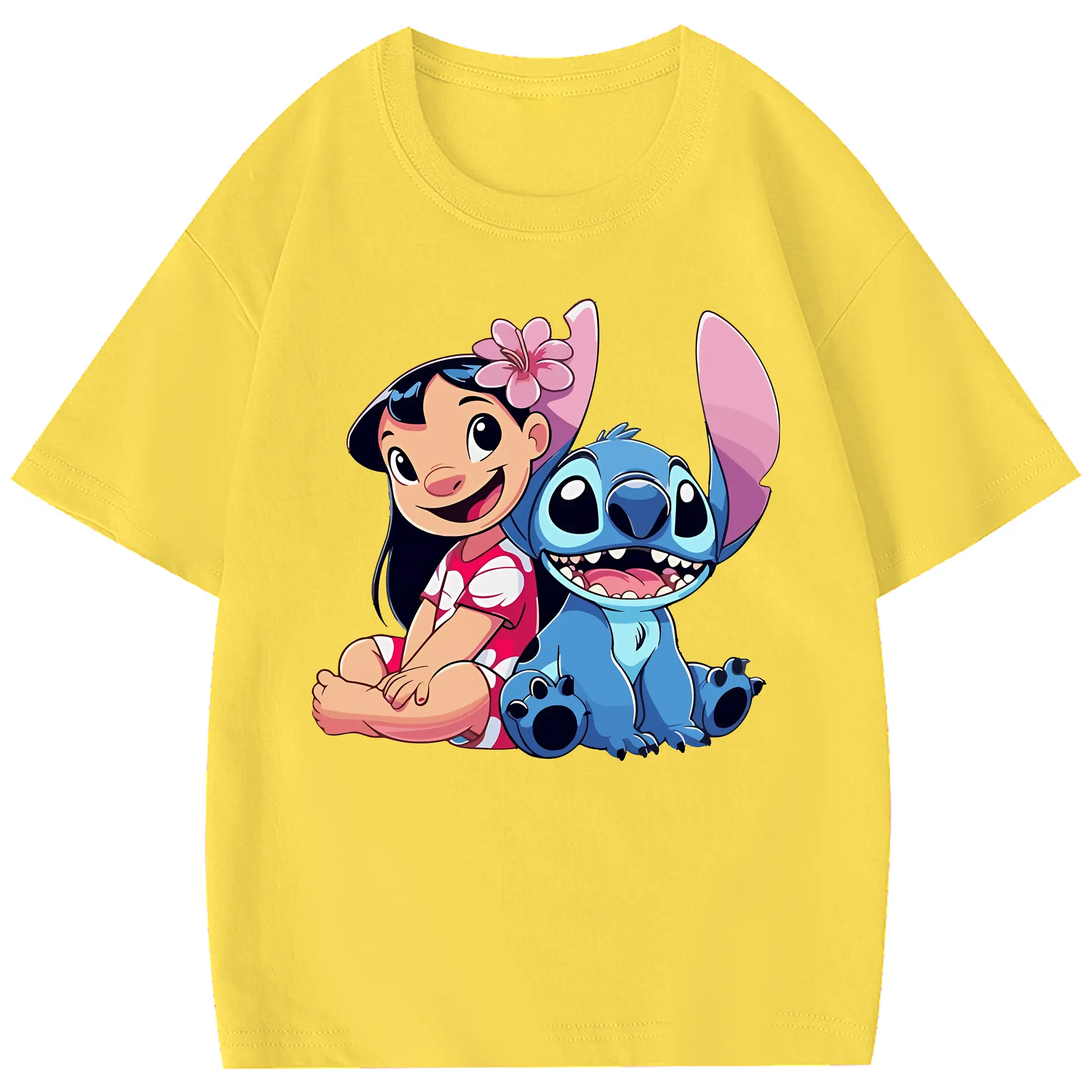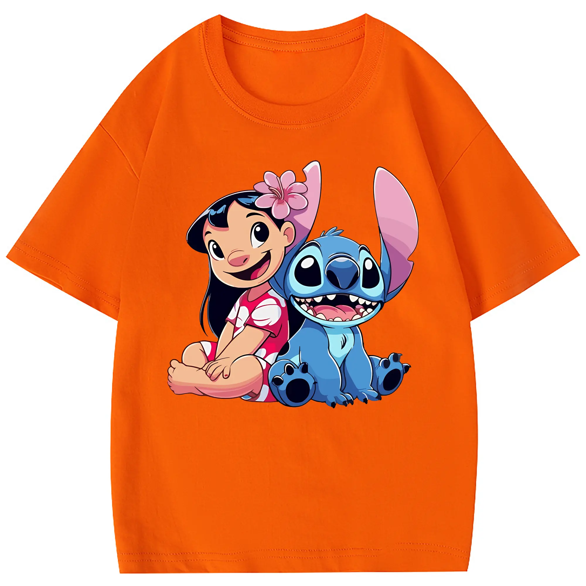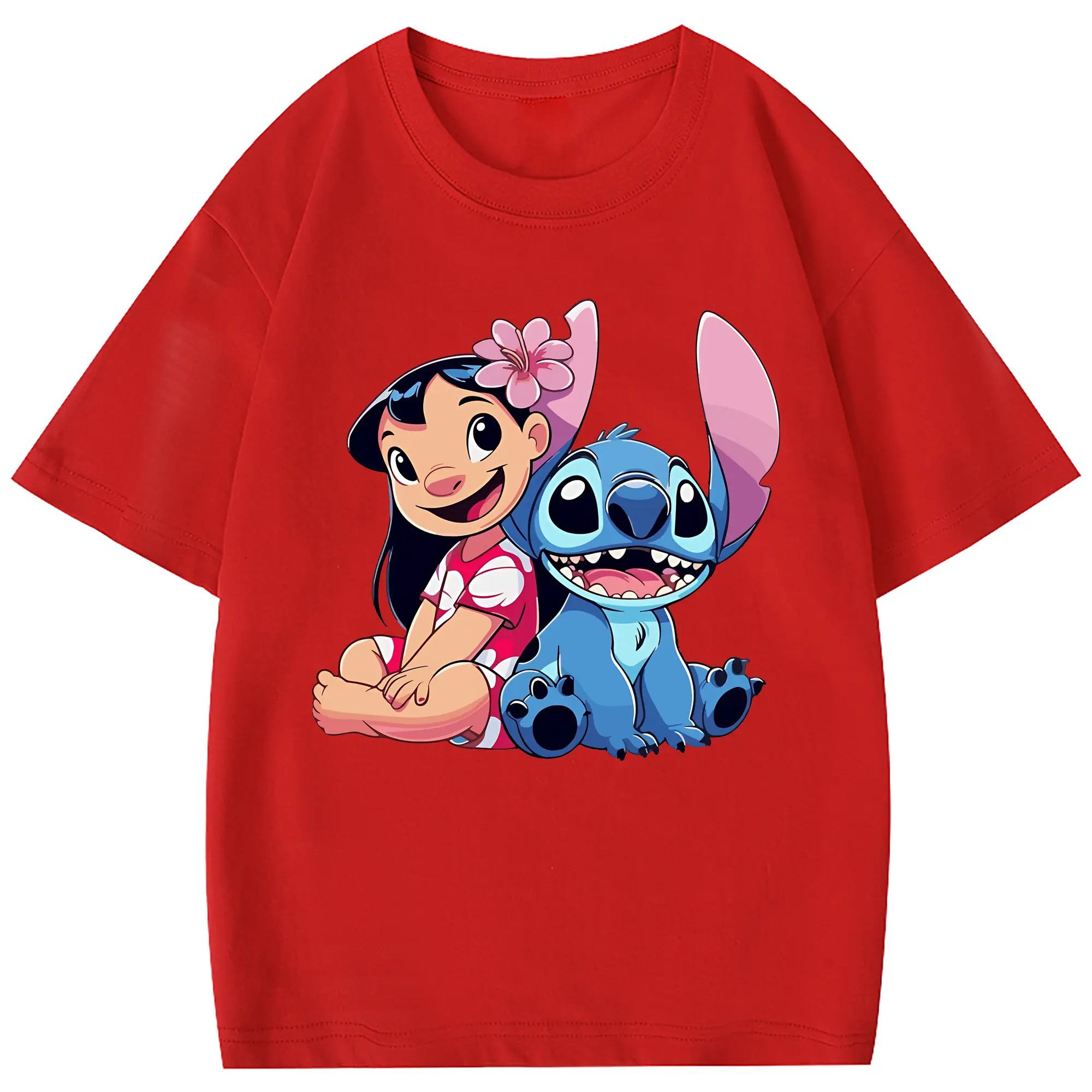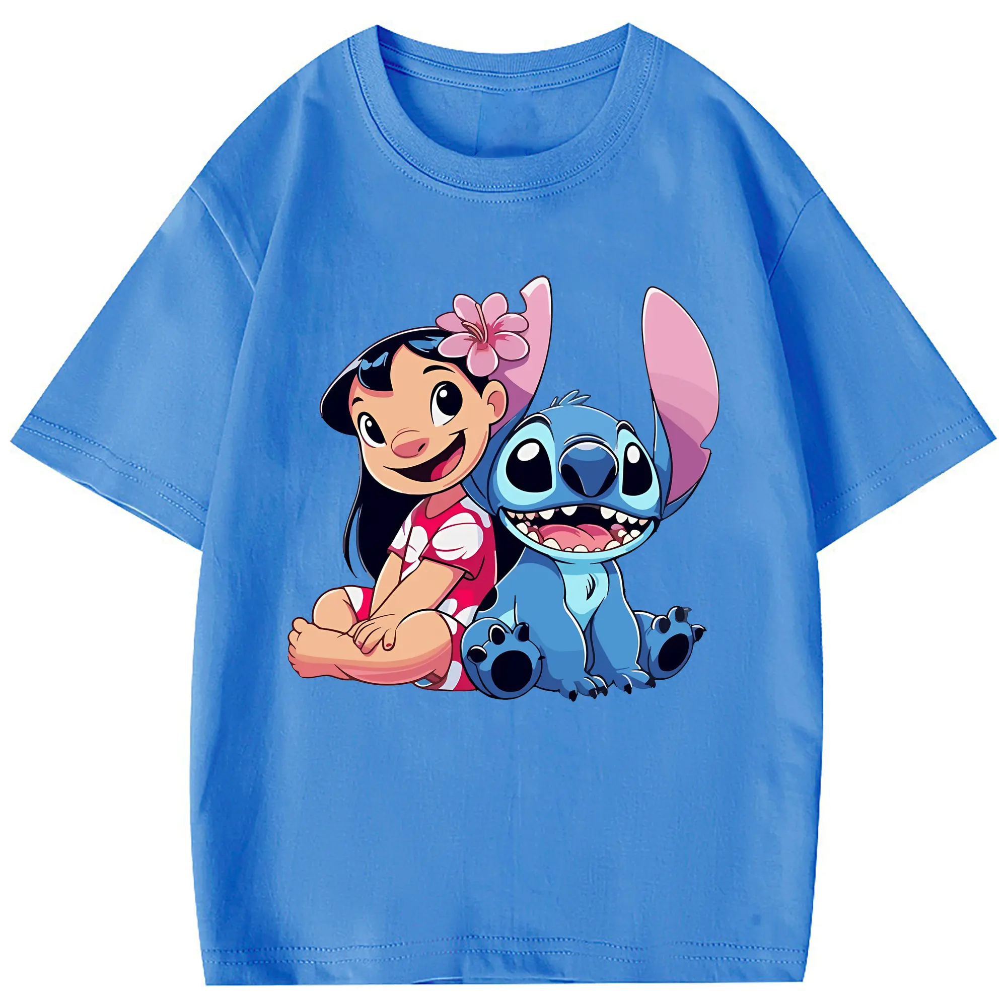 リロ&スティッチ グッズ リロ - 綿100% 半袖Tシャツ ・ バックプリント ・ 快適 通気性 ・ 日常使い 散歩 スポーツ用