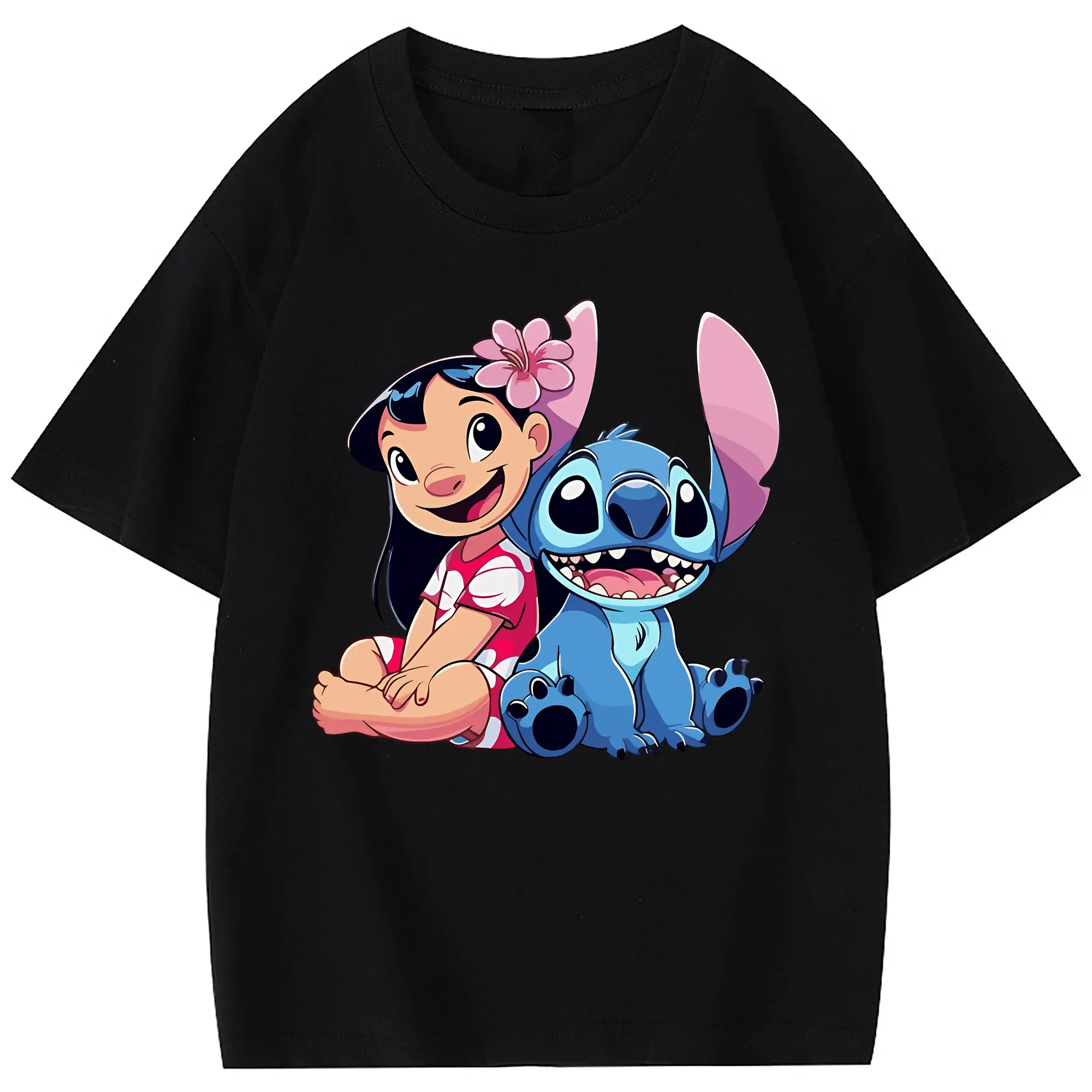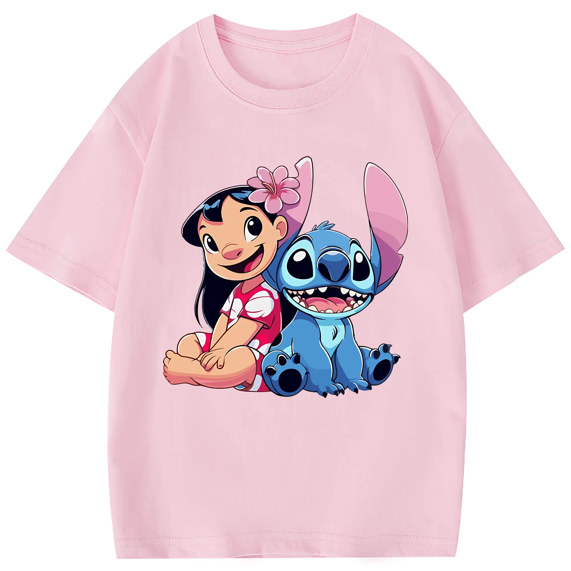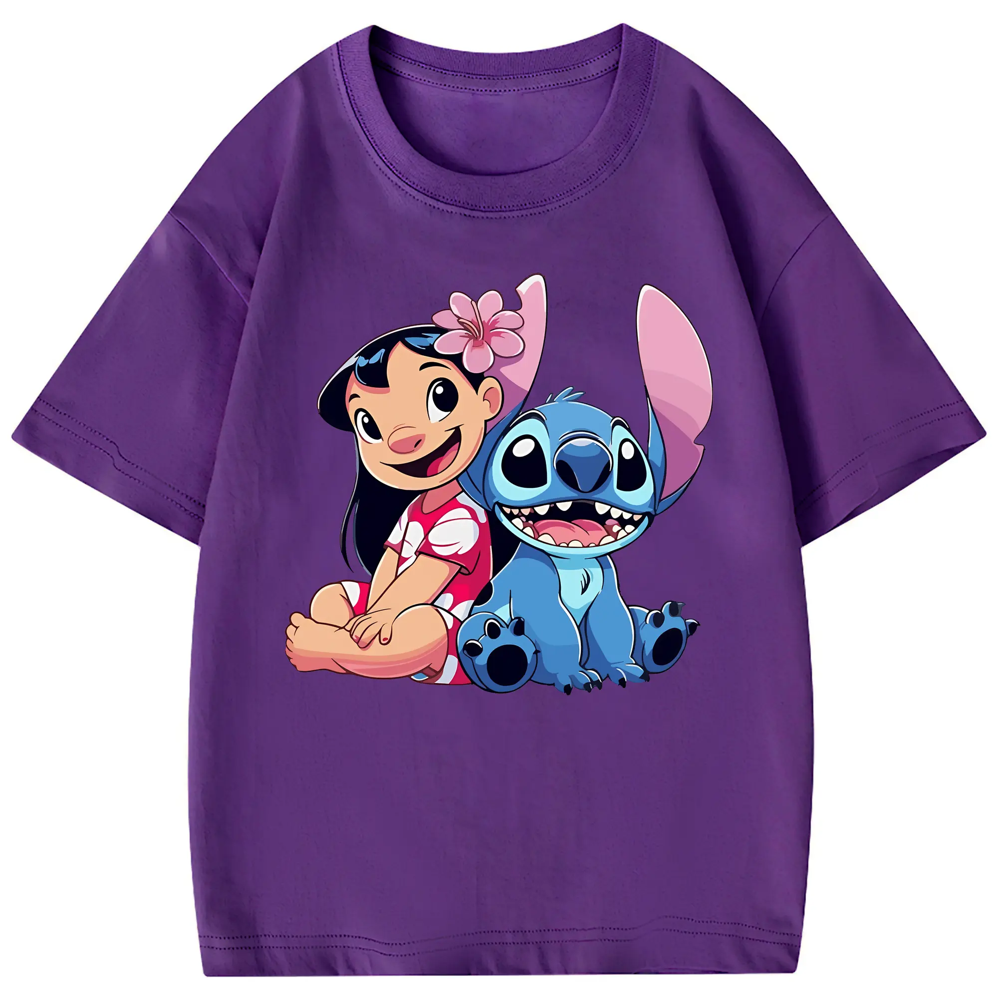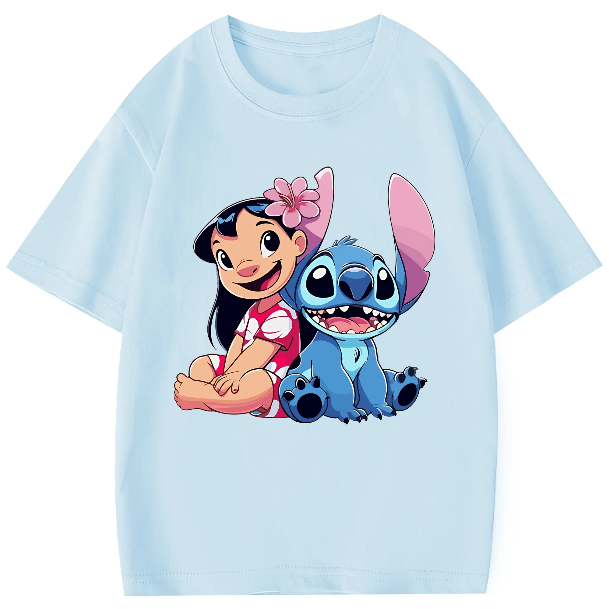 リロ&スティッチ グッズ リロ - 綿100% 半袖Tシャツ ・ バックプリント ・ 快適 通気性 ・ 日常使い 散歩 スポーツ用
