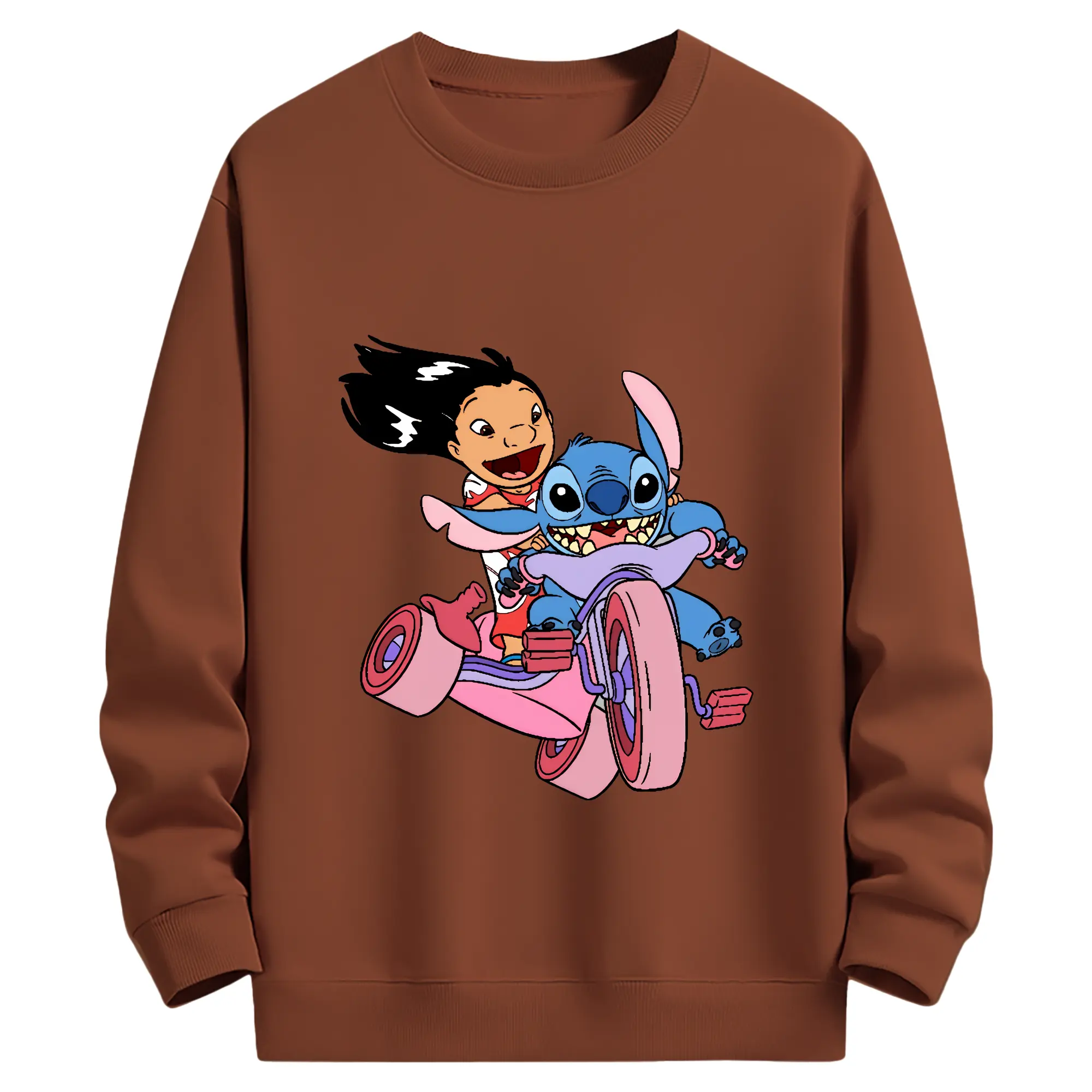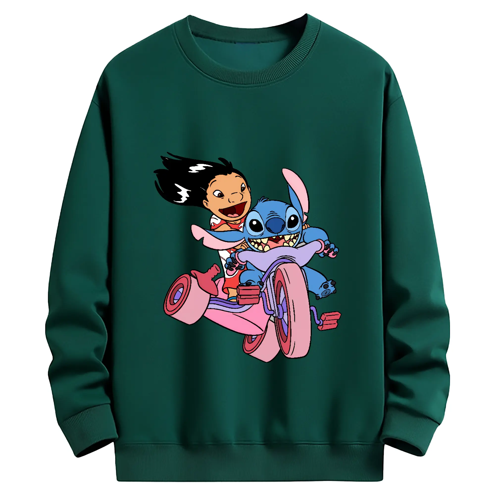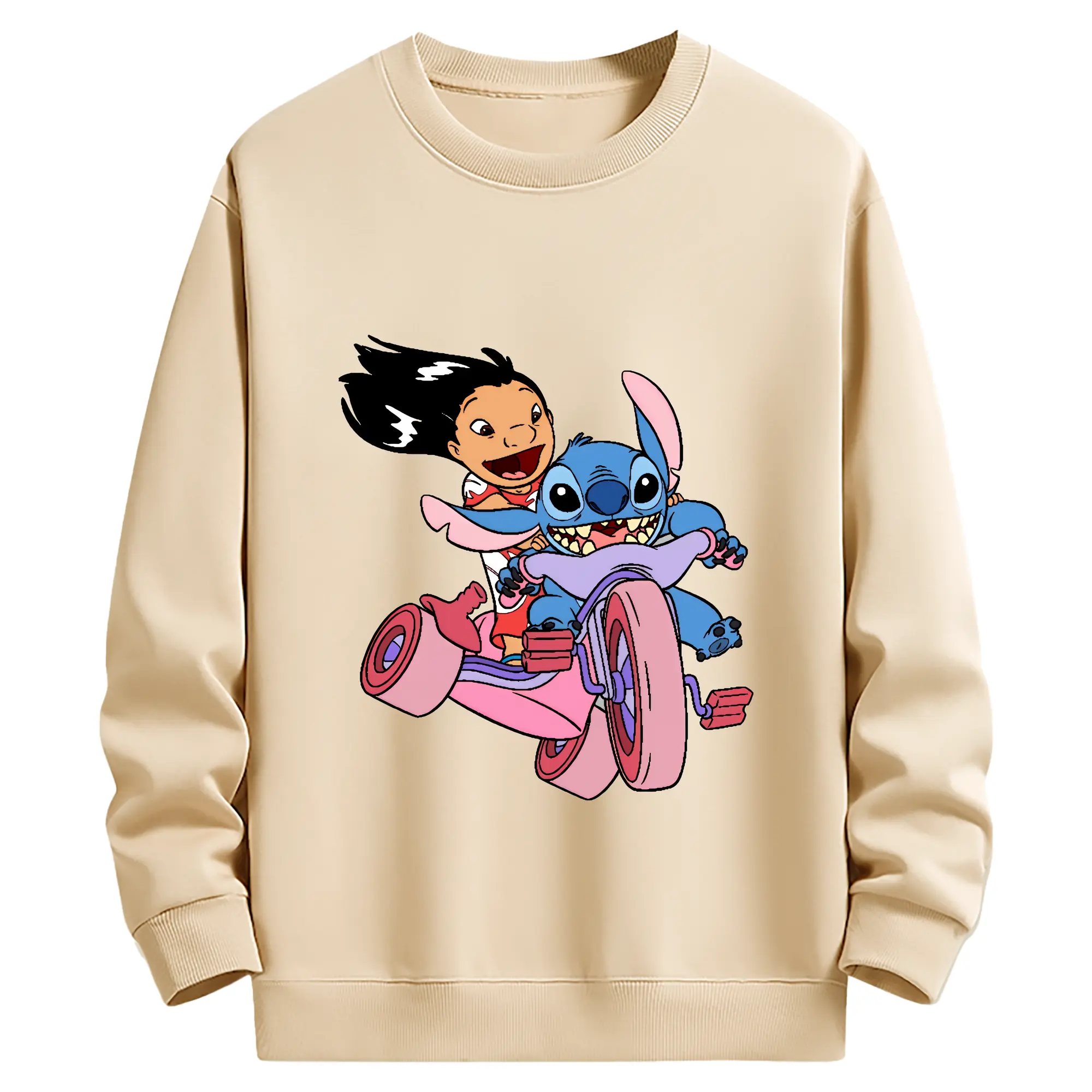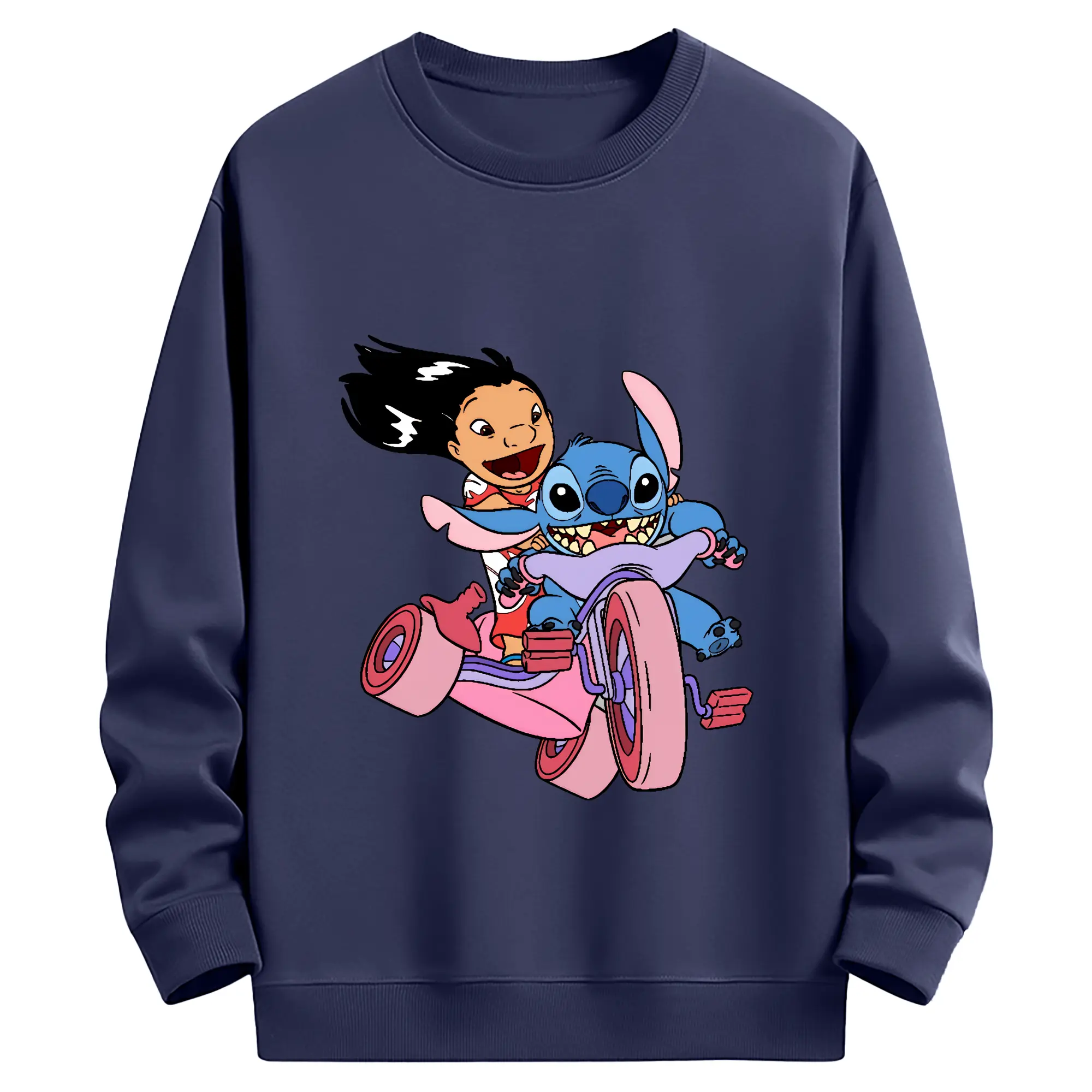 リロ&スティッチ グッズ リロ - 薄手 クルーネック スウェット 裏毛260g · ポリエステル 春秋向け カジュアル 男女兼用 · トレーナー デイリー スポーツ 散歩に最適