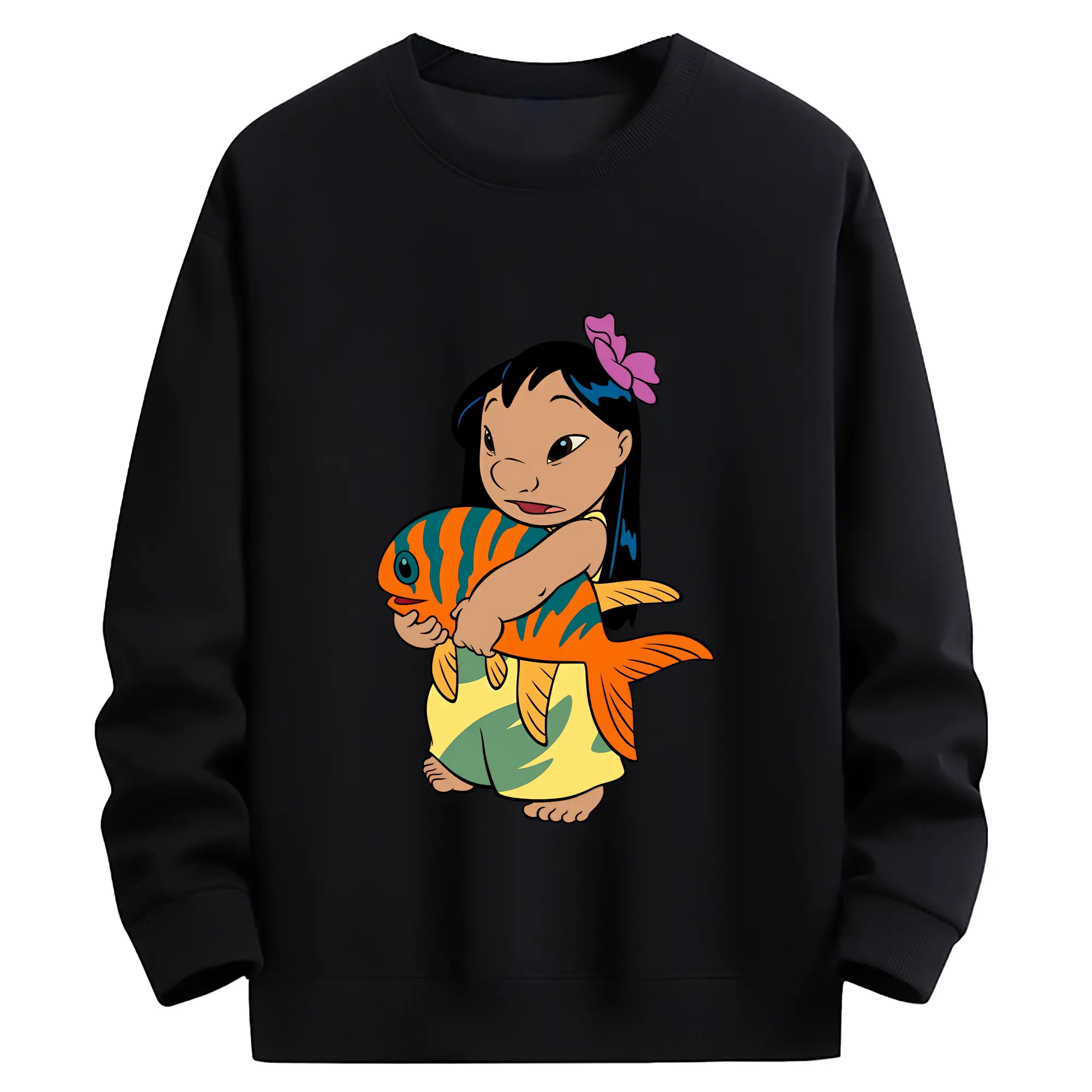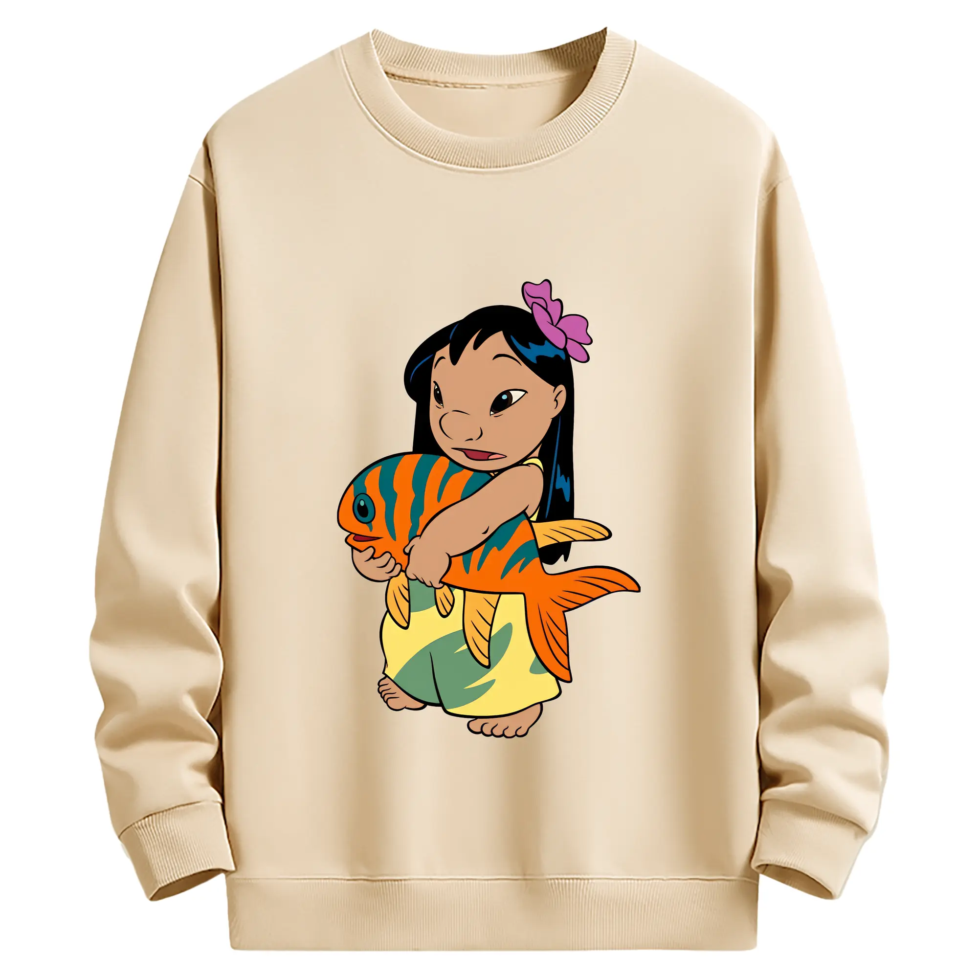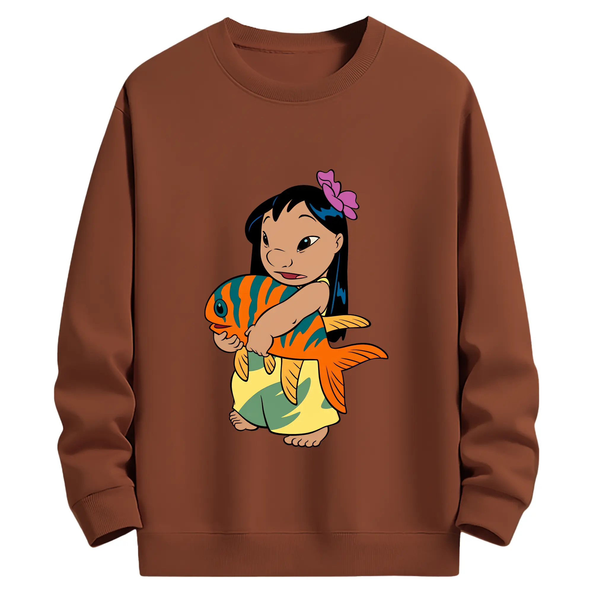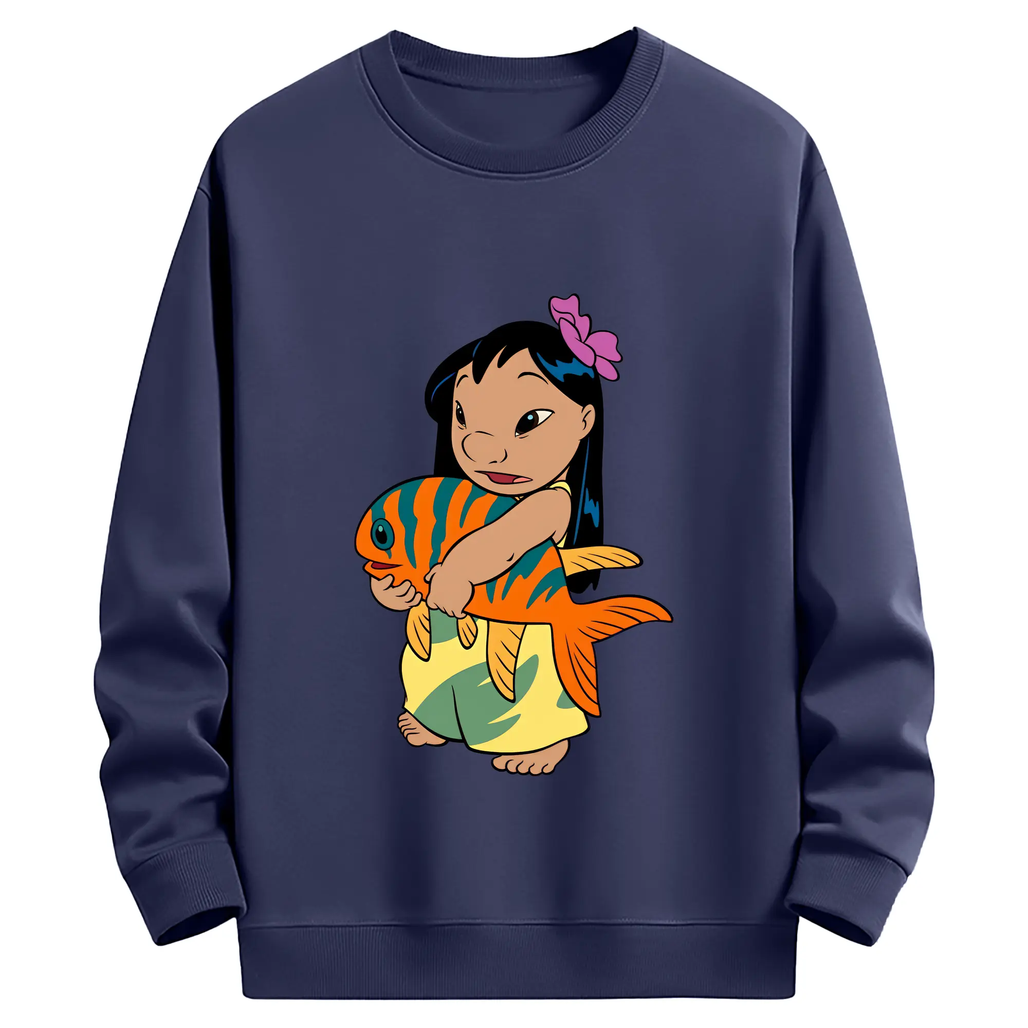 リロ&スティッチ グッズ リロ - 薄手 クルーネック スウェット 裏毛260g · ポリエステル 春秋向け カジュアル 男女兼用 · トレーナー デイリー スポーツ 散歩に最適