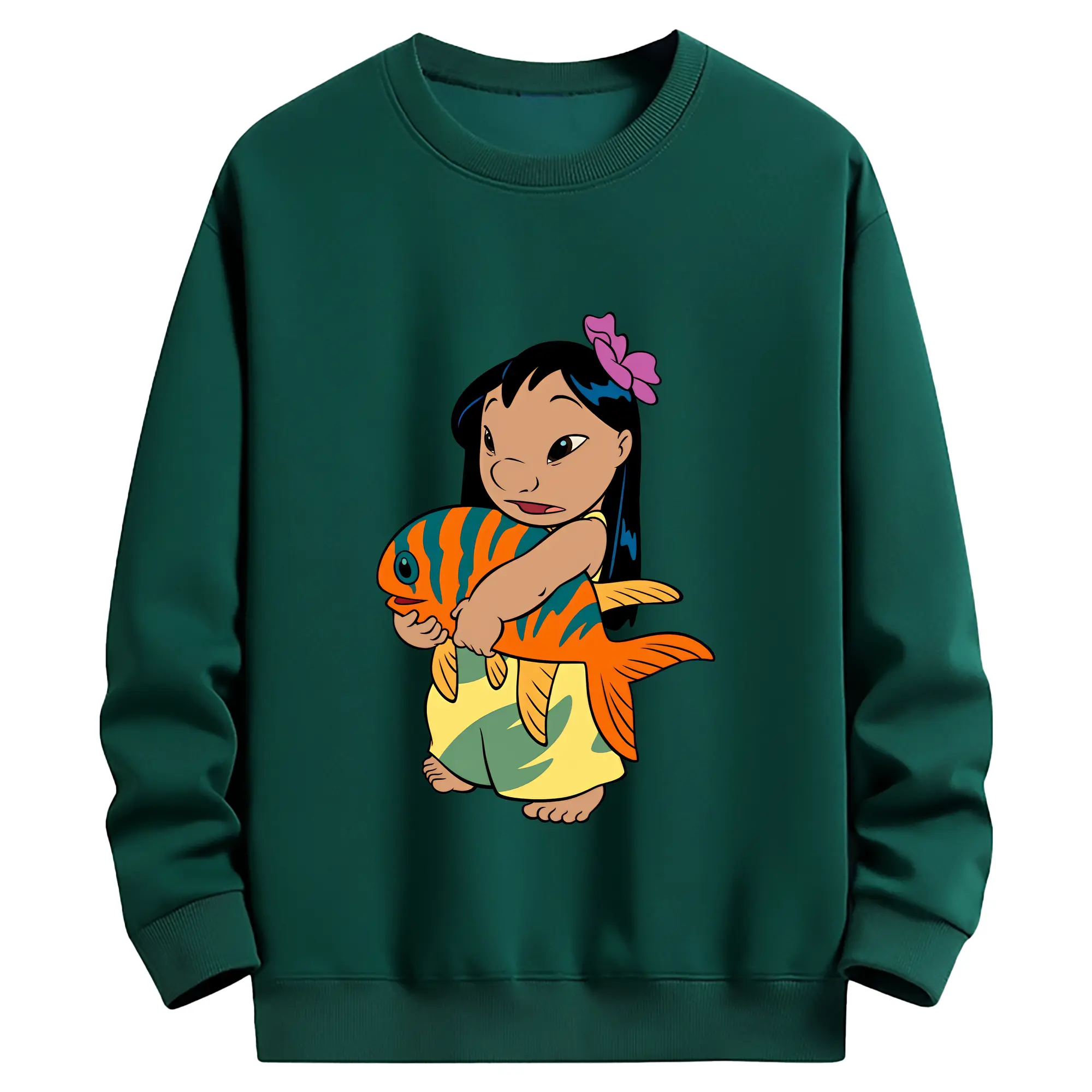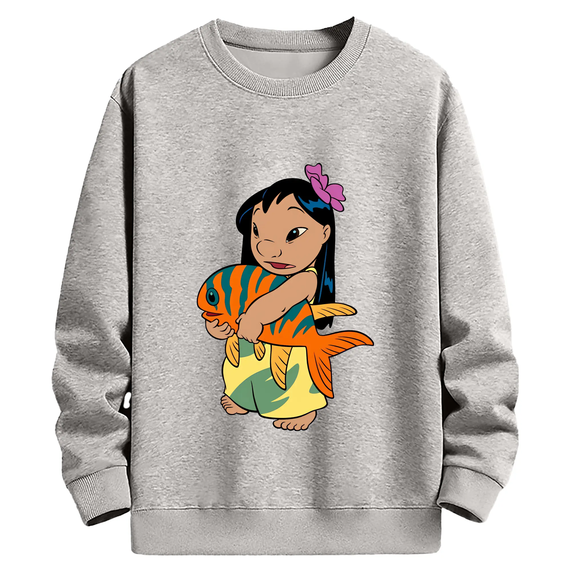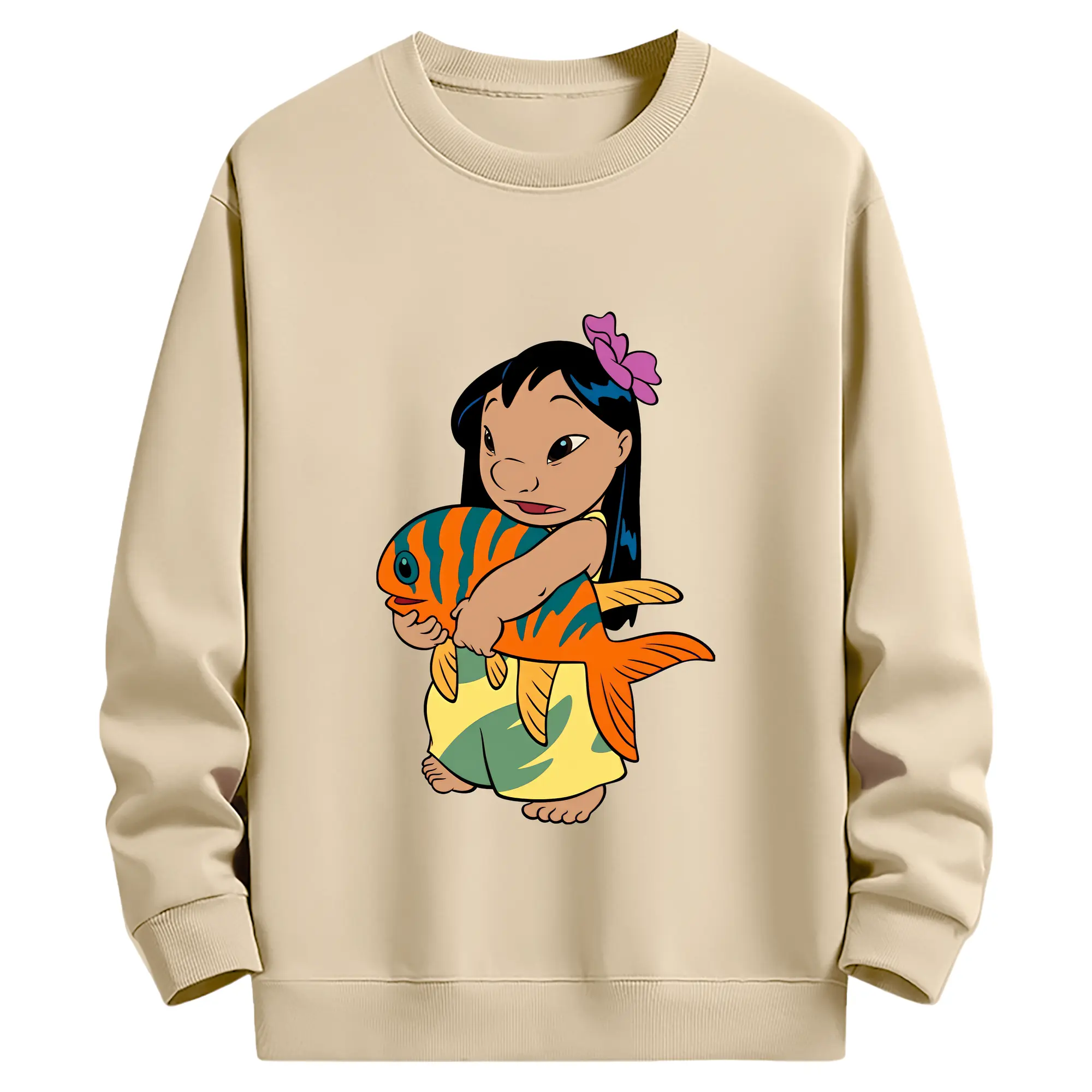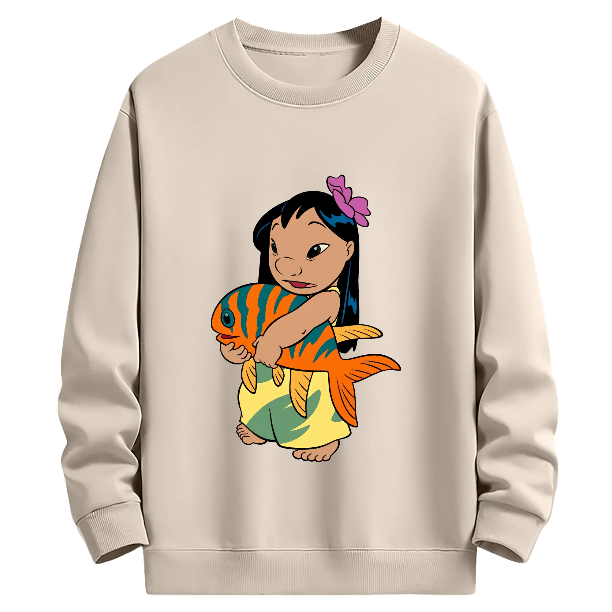 リロ&スティッチ グッズ リロ - 薄手 クルーネック スウェット 裏毛260g · ポリエステル 春秋向け カジュアル 男女兼用 · トレーナー デイリー スポーツ 散歩に最適