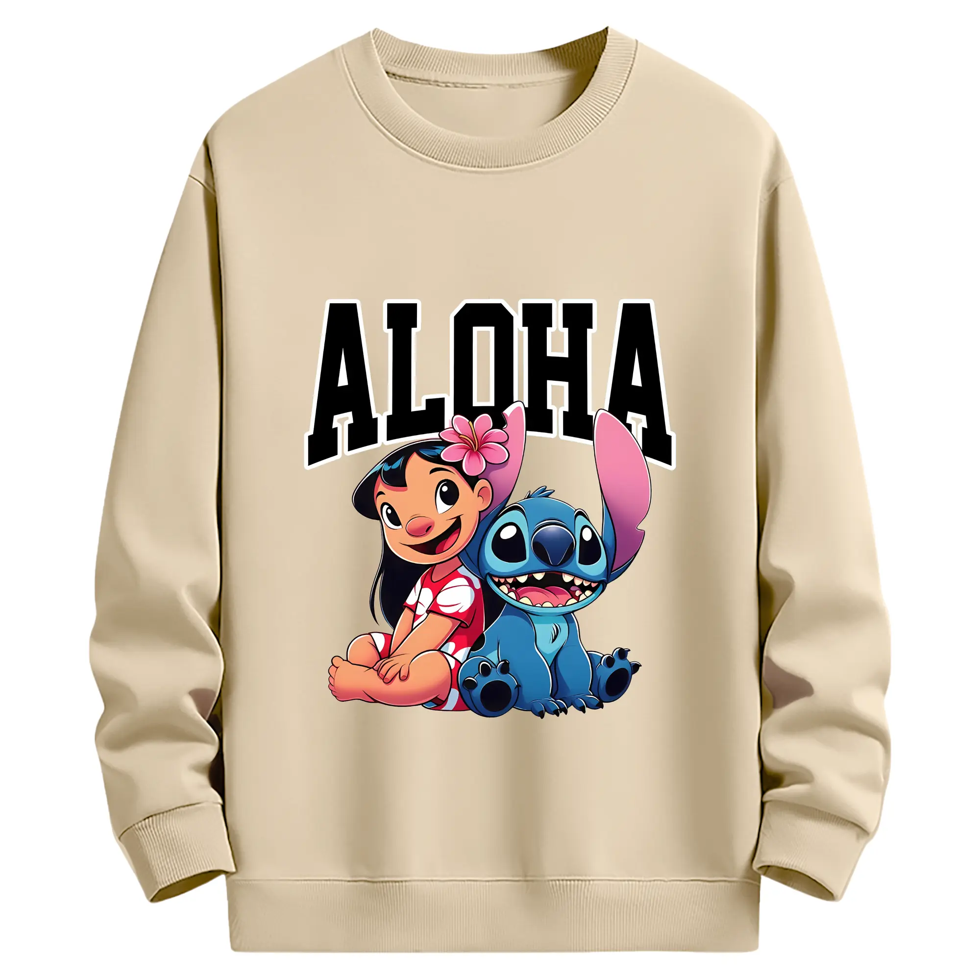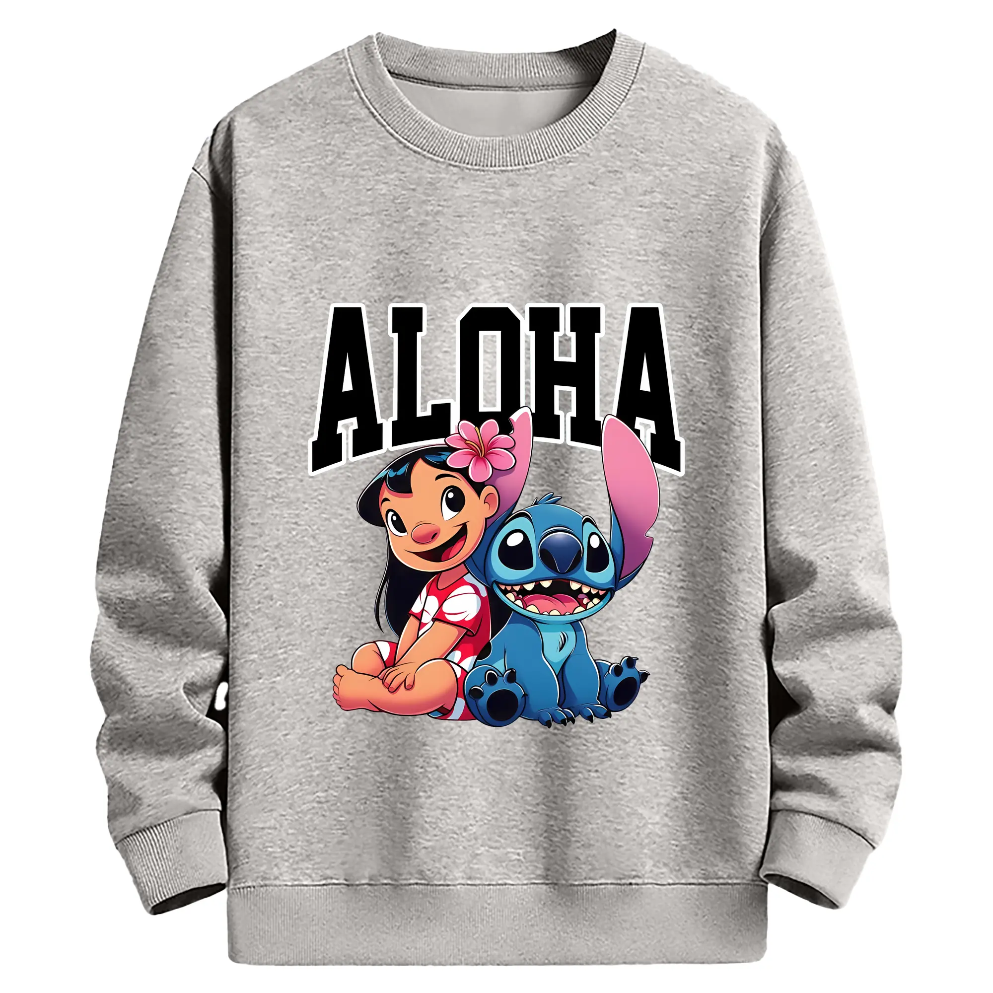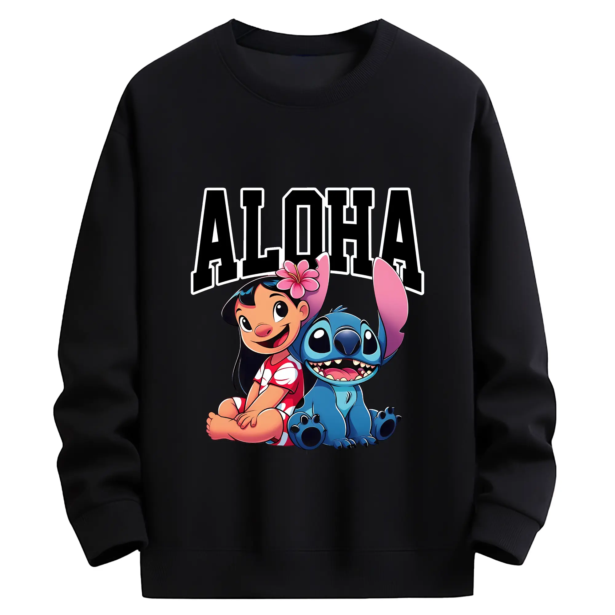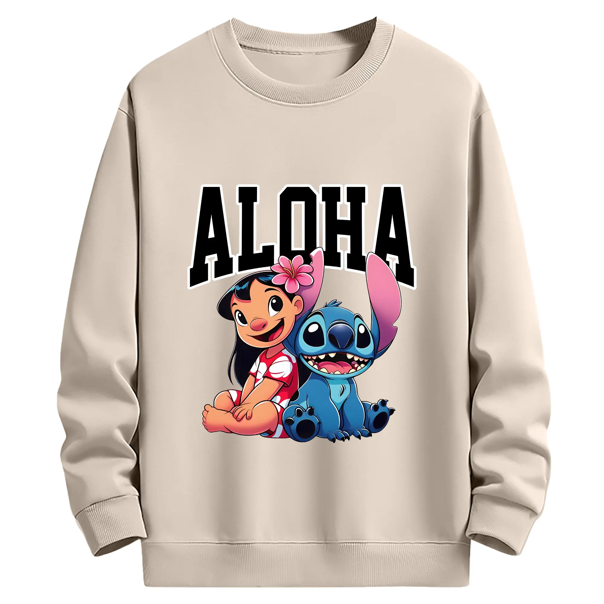 リロ&スティッチ グッズ リロ - 薄手 クルーネック スウェット 裏毛260g · ポリエステル 春秋向け カジュアル 男女兼用 · トレーナー デイリー スポーツ 散歩に最適