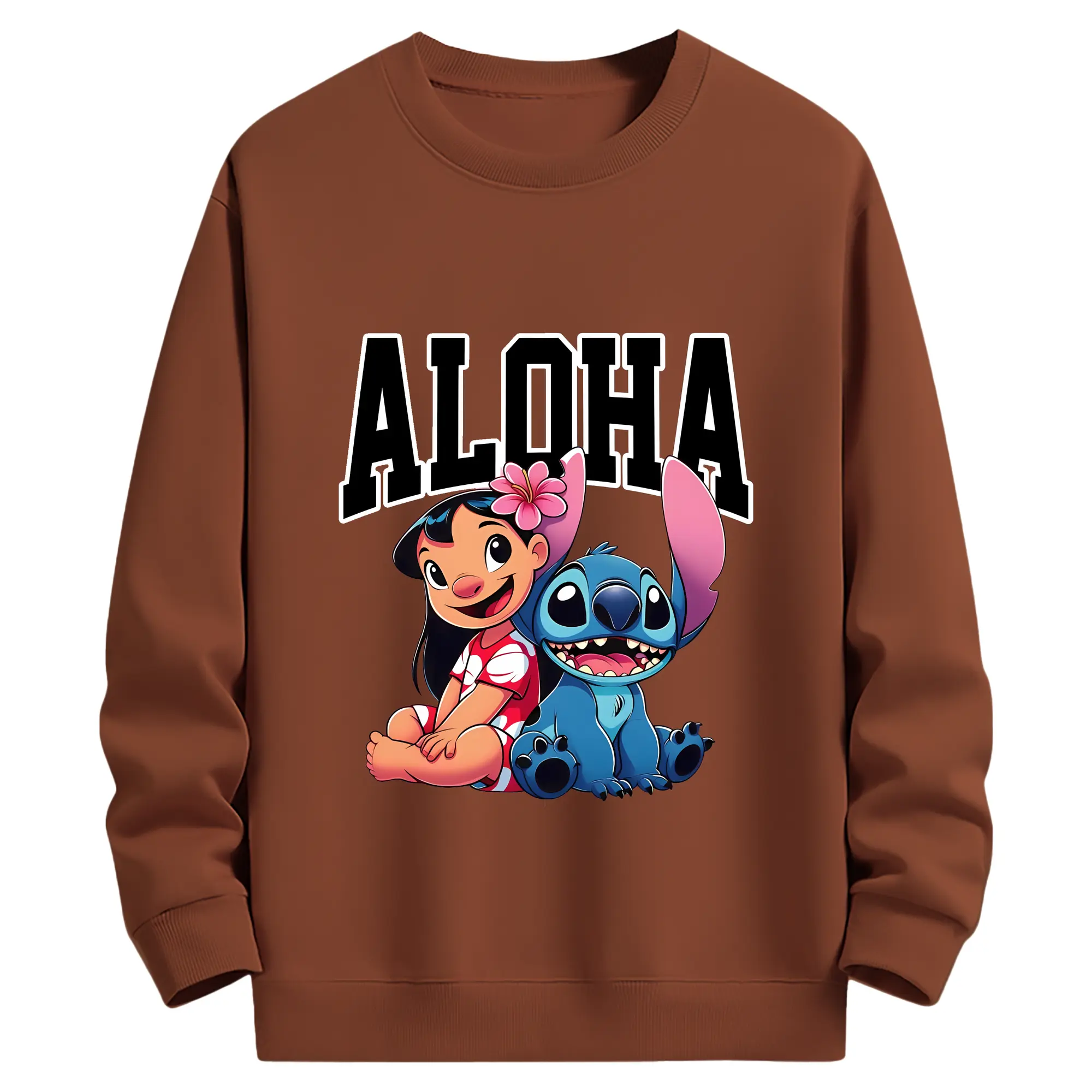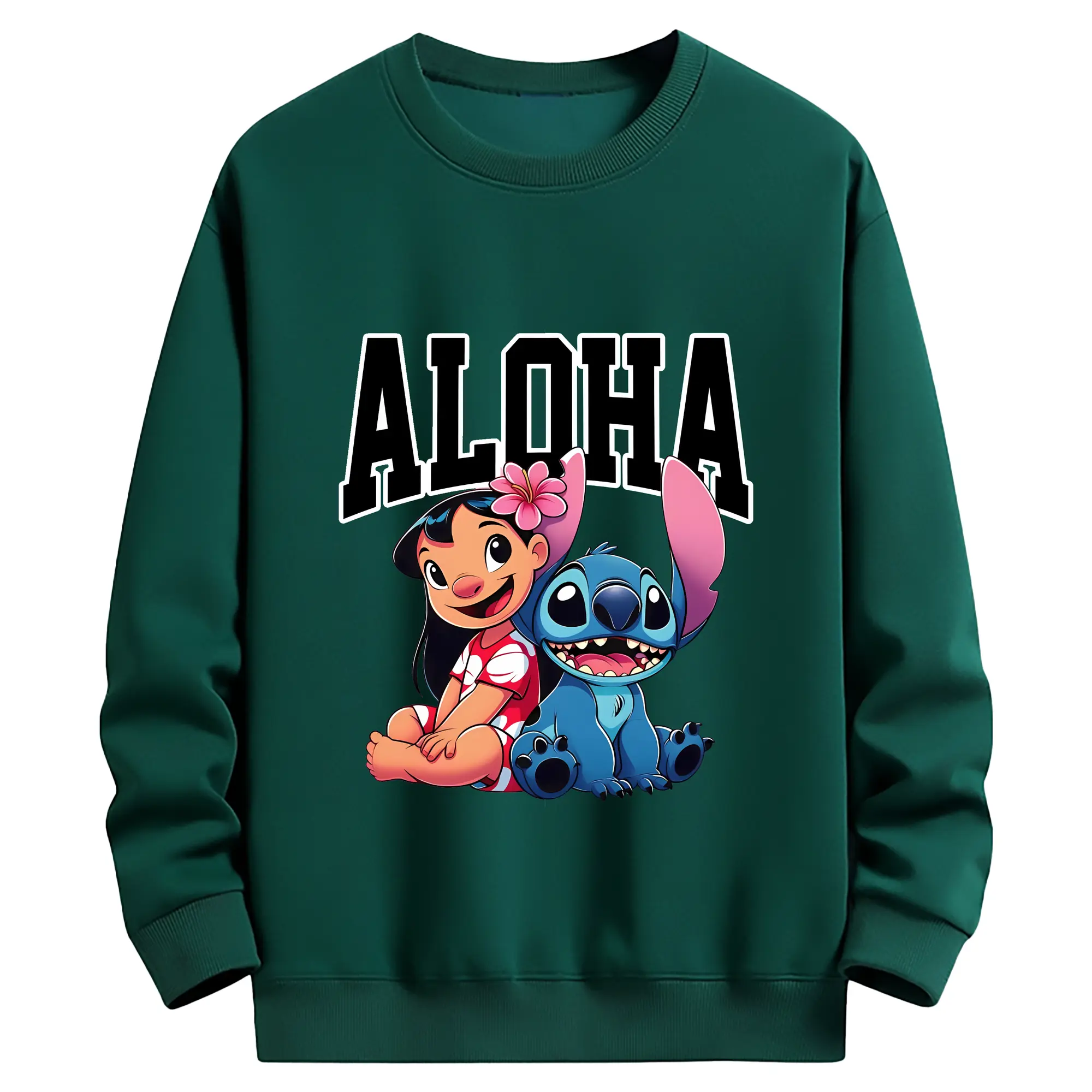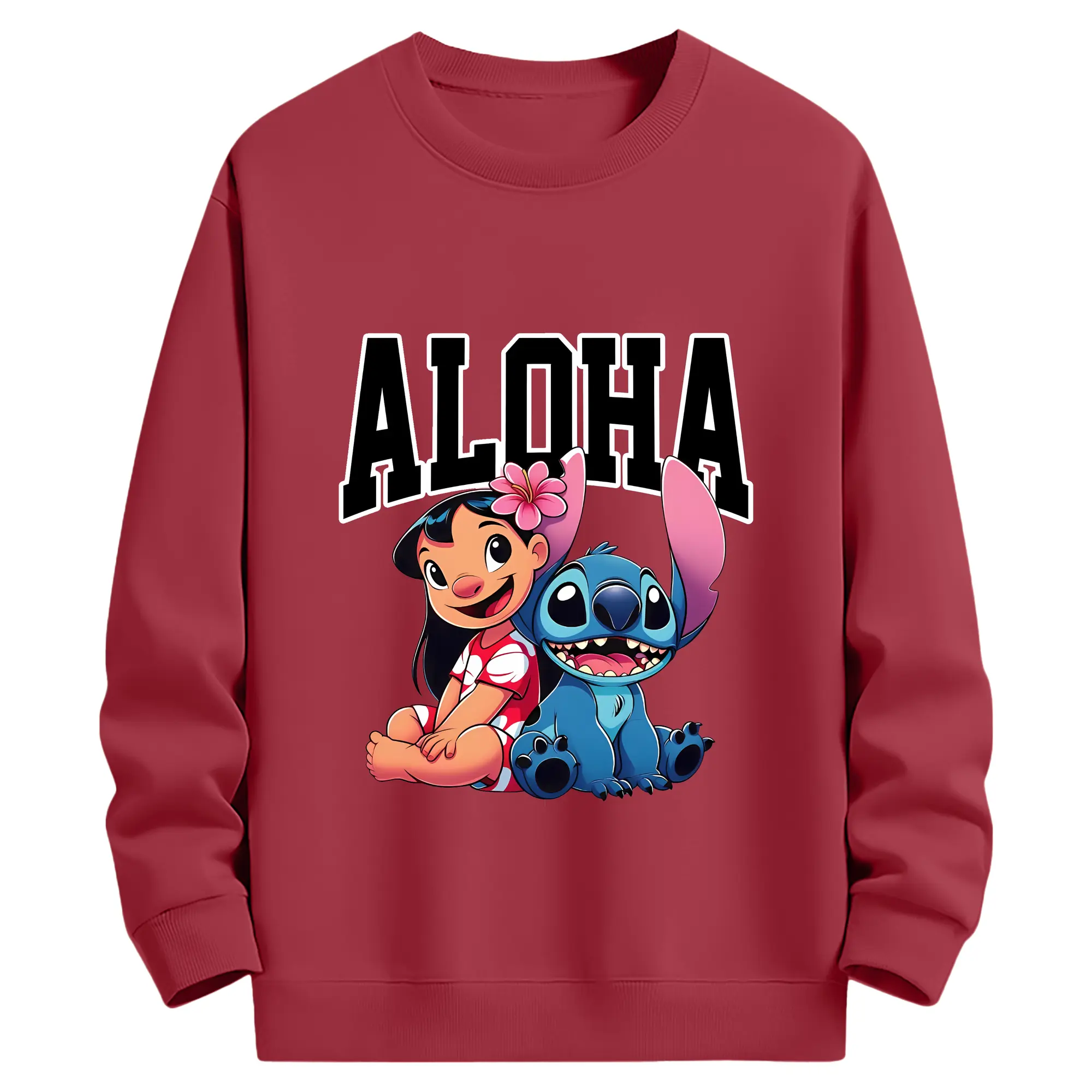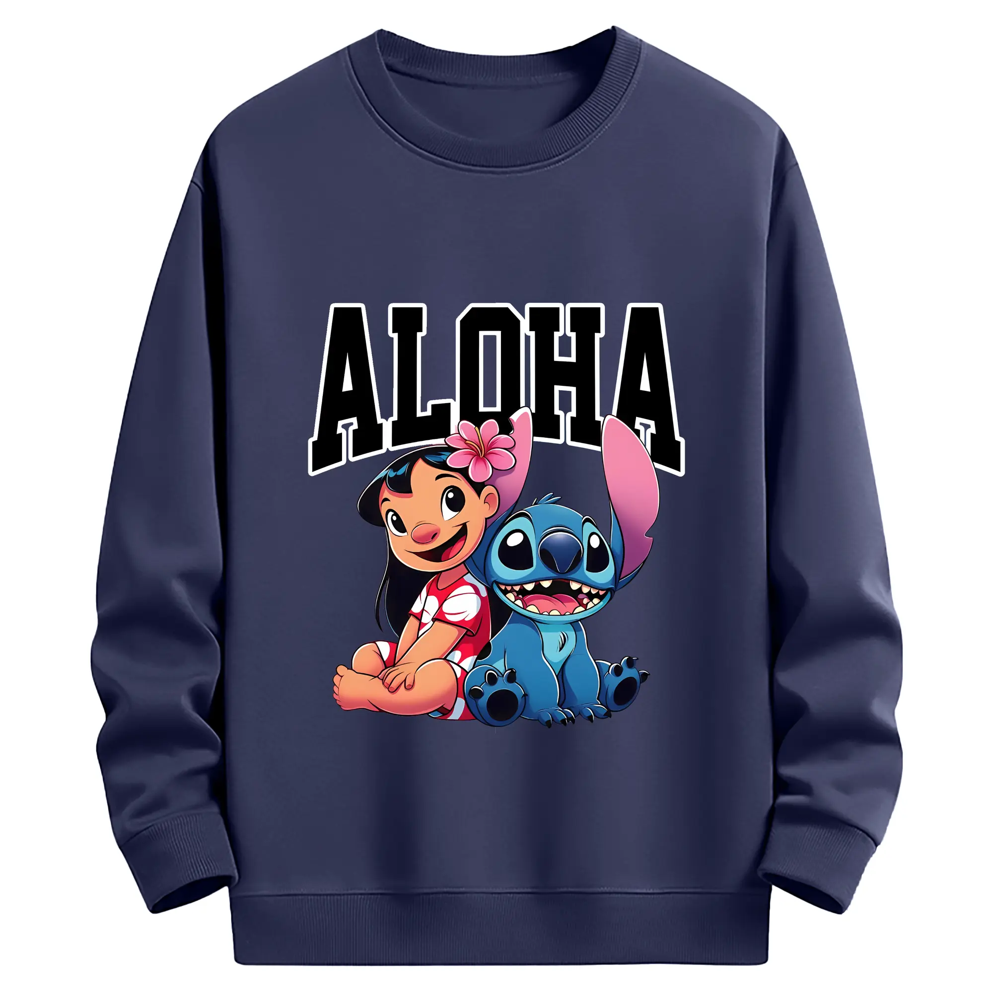 リロ&スティッチ グッズ リロ - 薄手 クルーネック スウェット 裏毛260g · ポリエステル 春秋向け カジュアル 男女兼用 · トレーナー デイリー スポーツ 散歩に最適