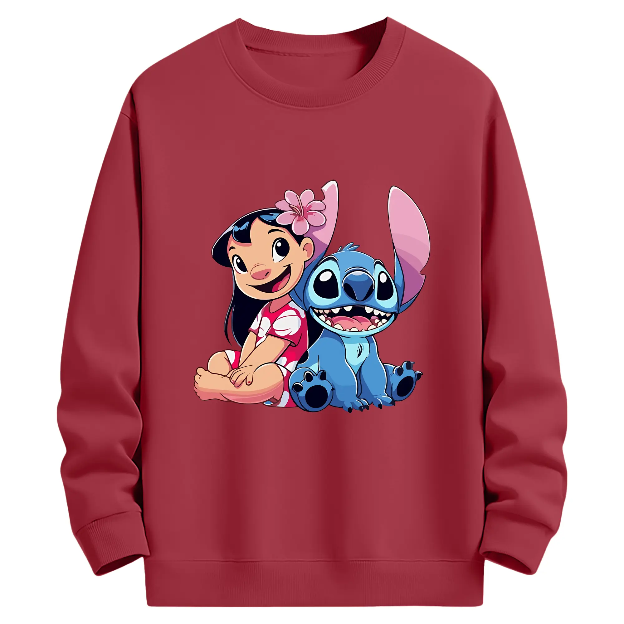 リロ&スティッチ グッズ リロ - 薄手 クルーネック スウェット 裏毛260g · ポリエステル 春秋向け カジュアル 男女兼用 · トレーナー デイリー スポーツ 散歩に最適