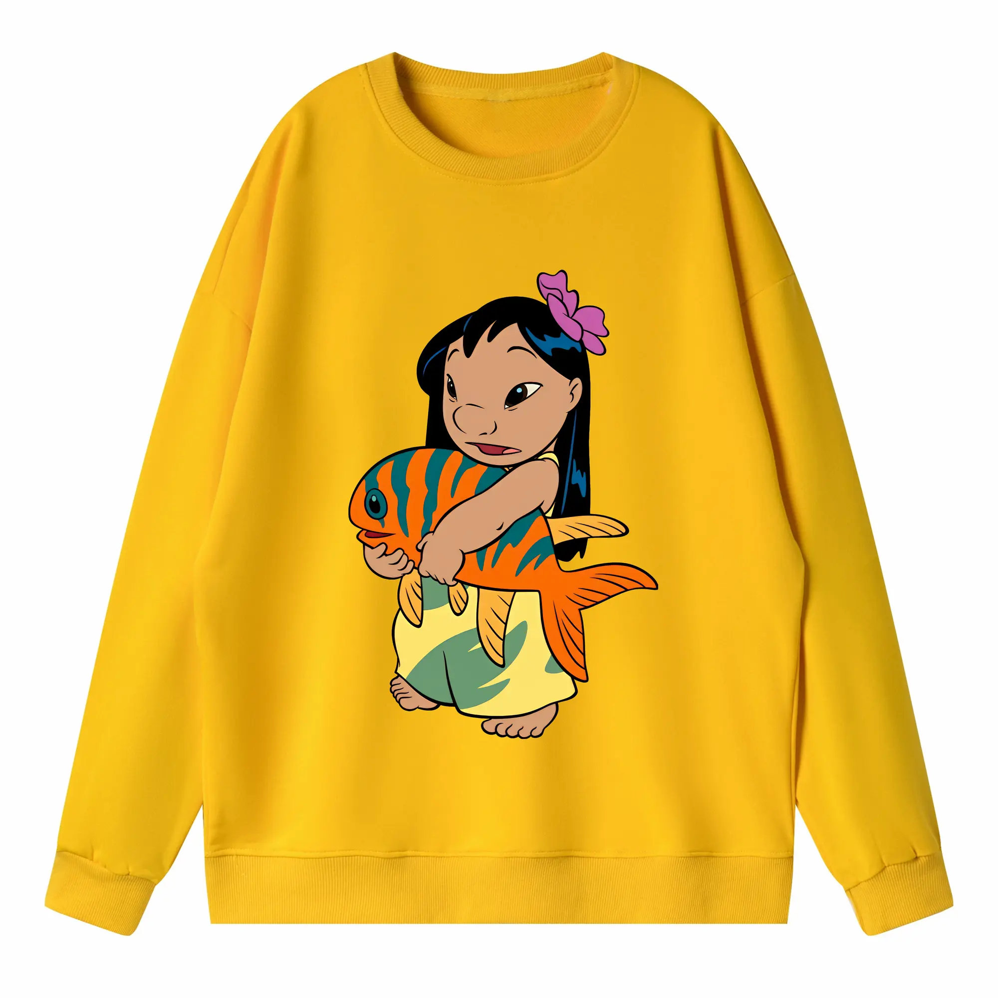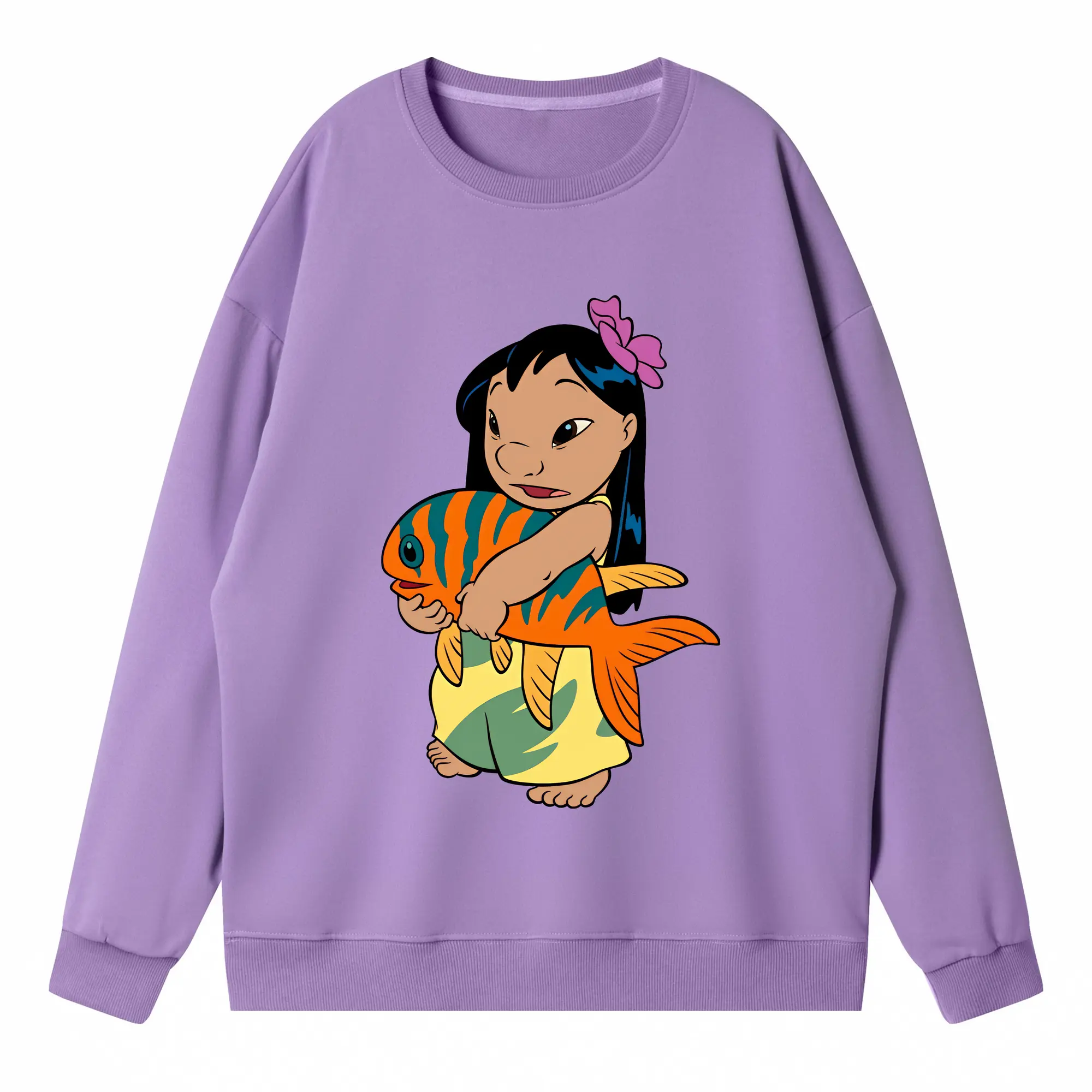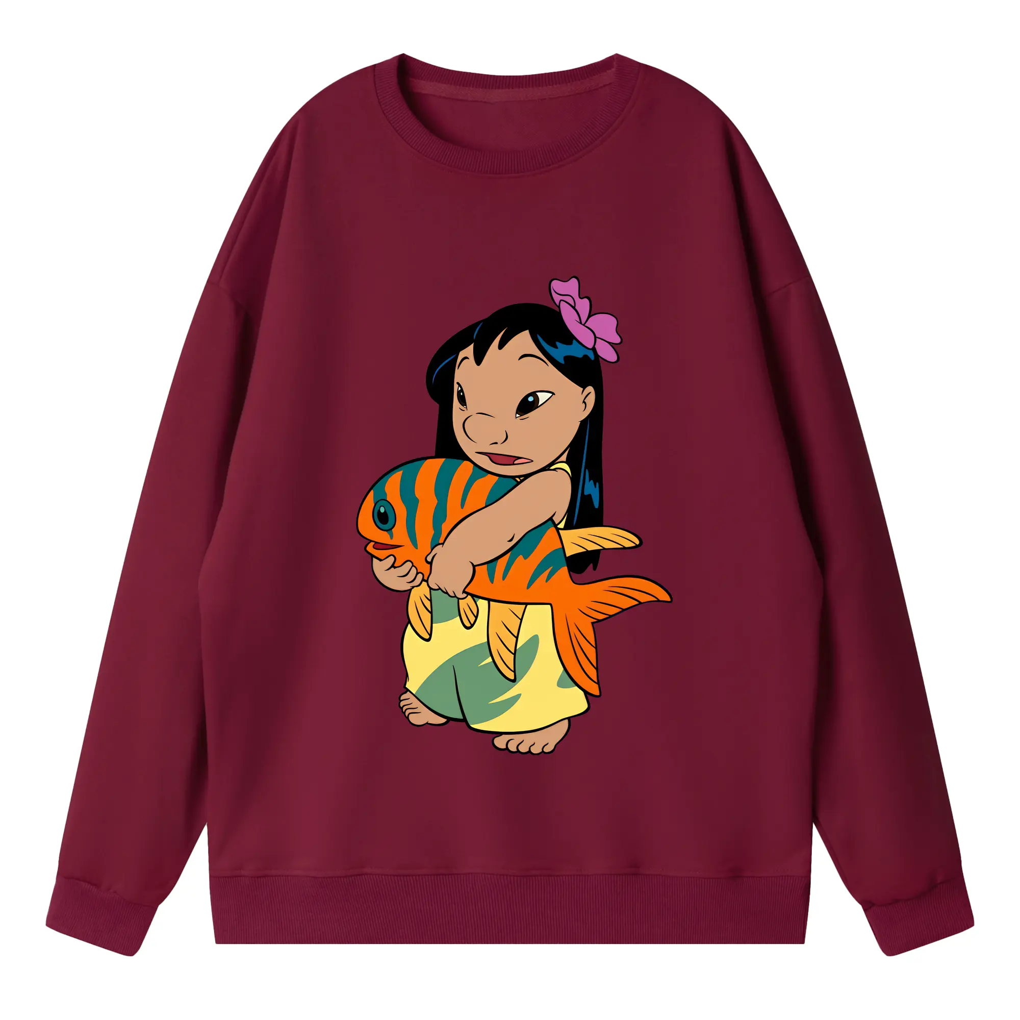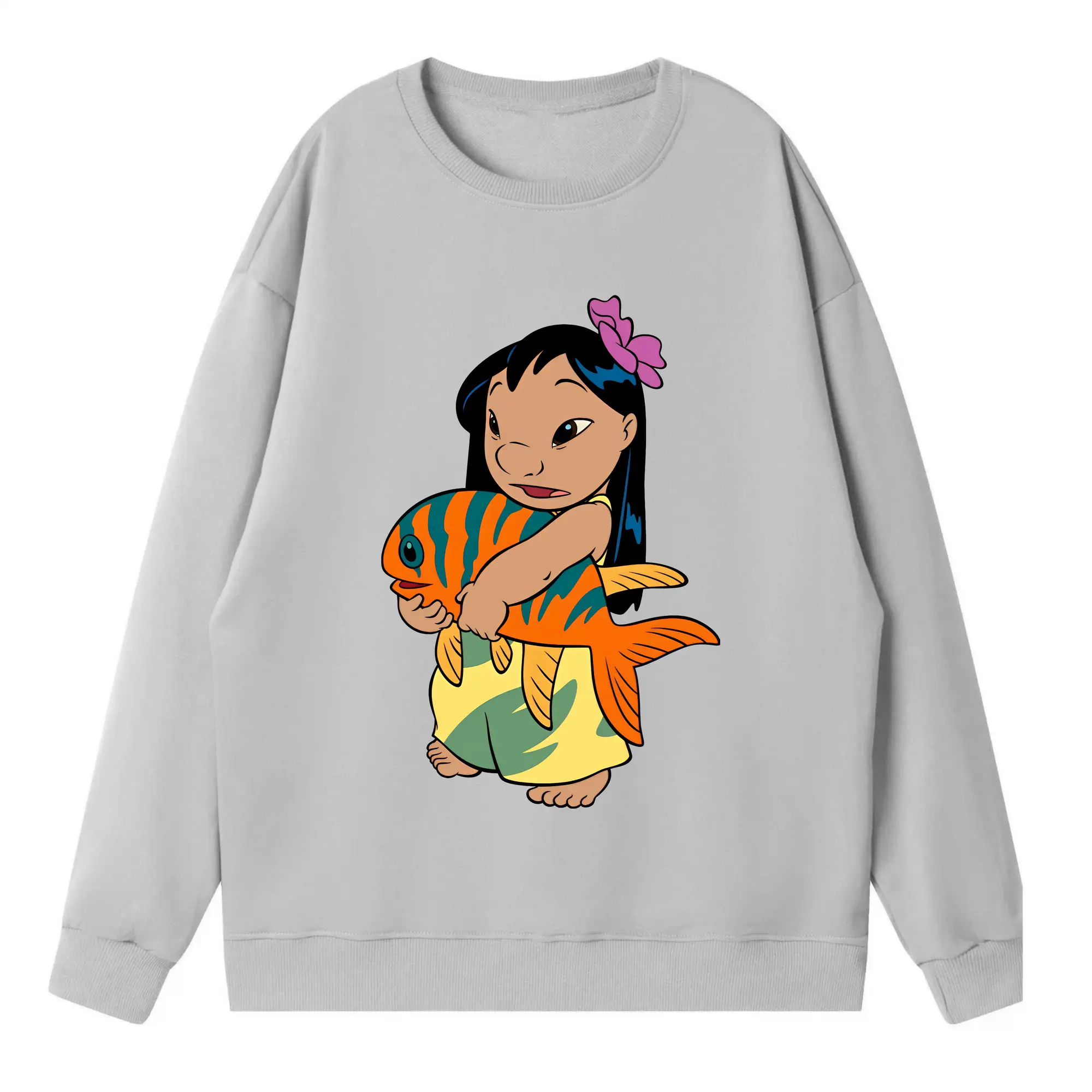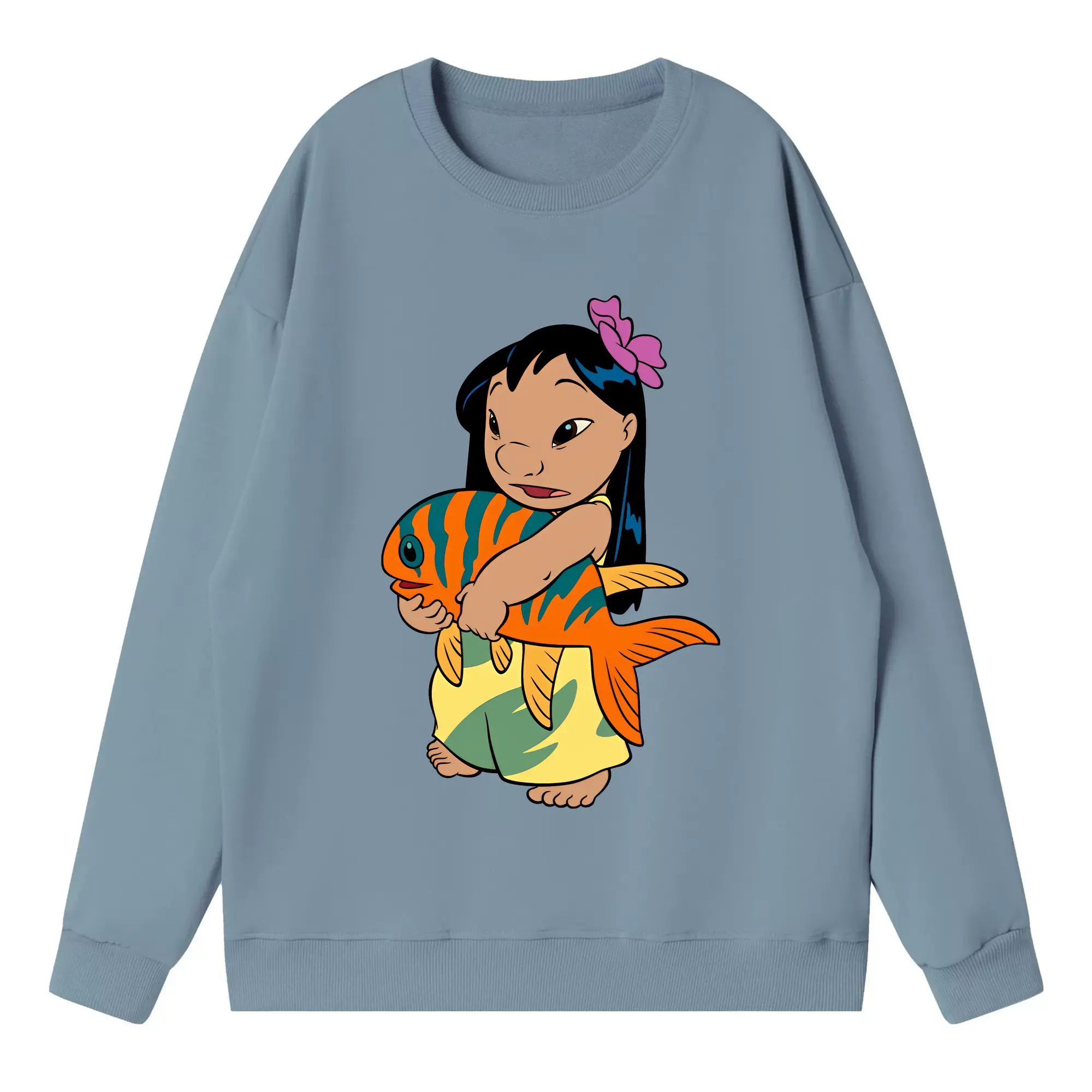 リロ&スティッチ グッズ リロ - 高品質 クルーネック スウェット ・ コットン59% ポリエステル41% ・ ユニセックス 長袖 トレーナー ・ カジュアル デイリー スポーツ 散歩用
