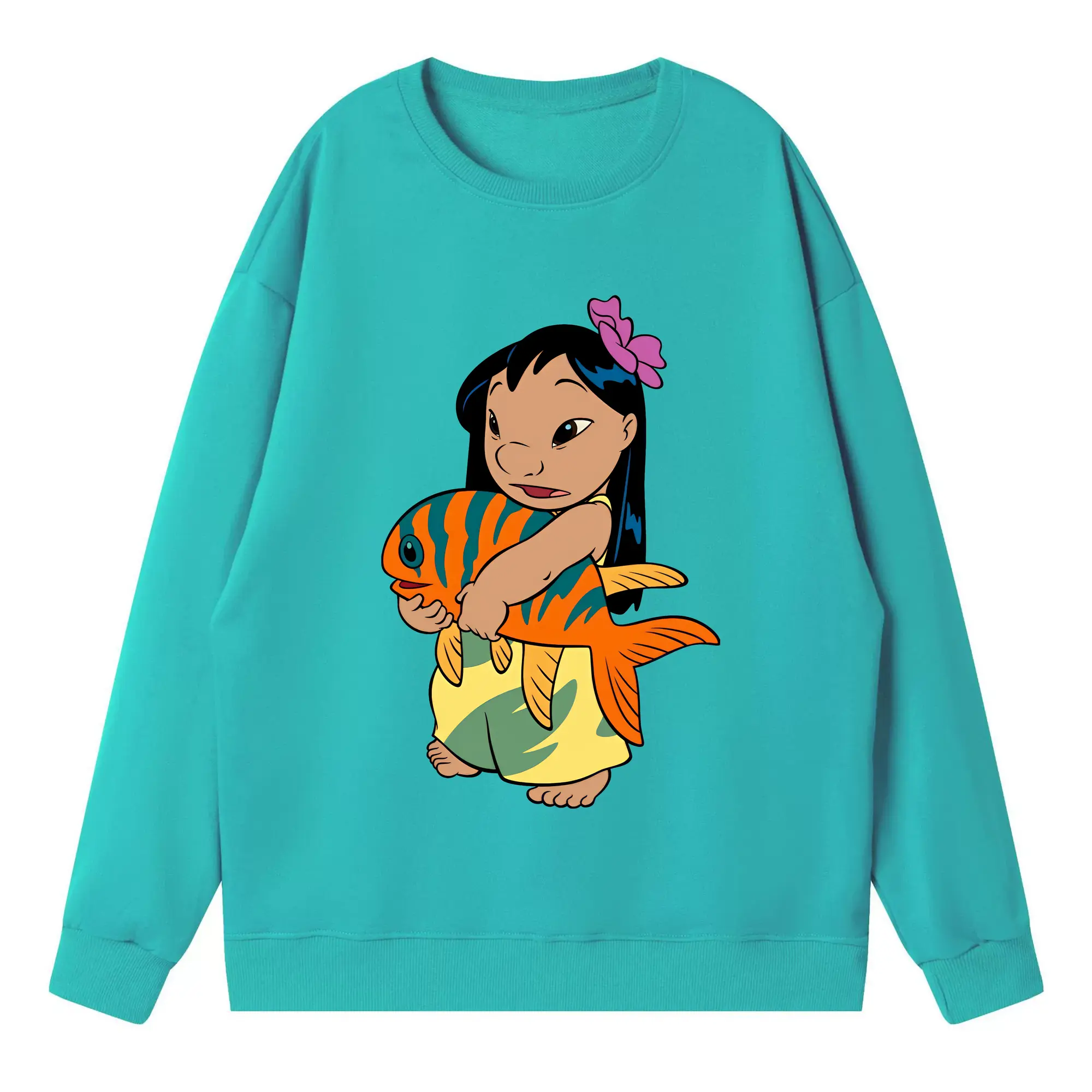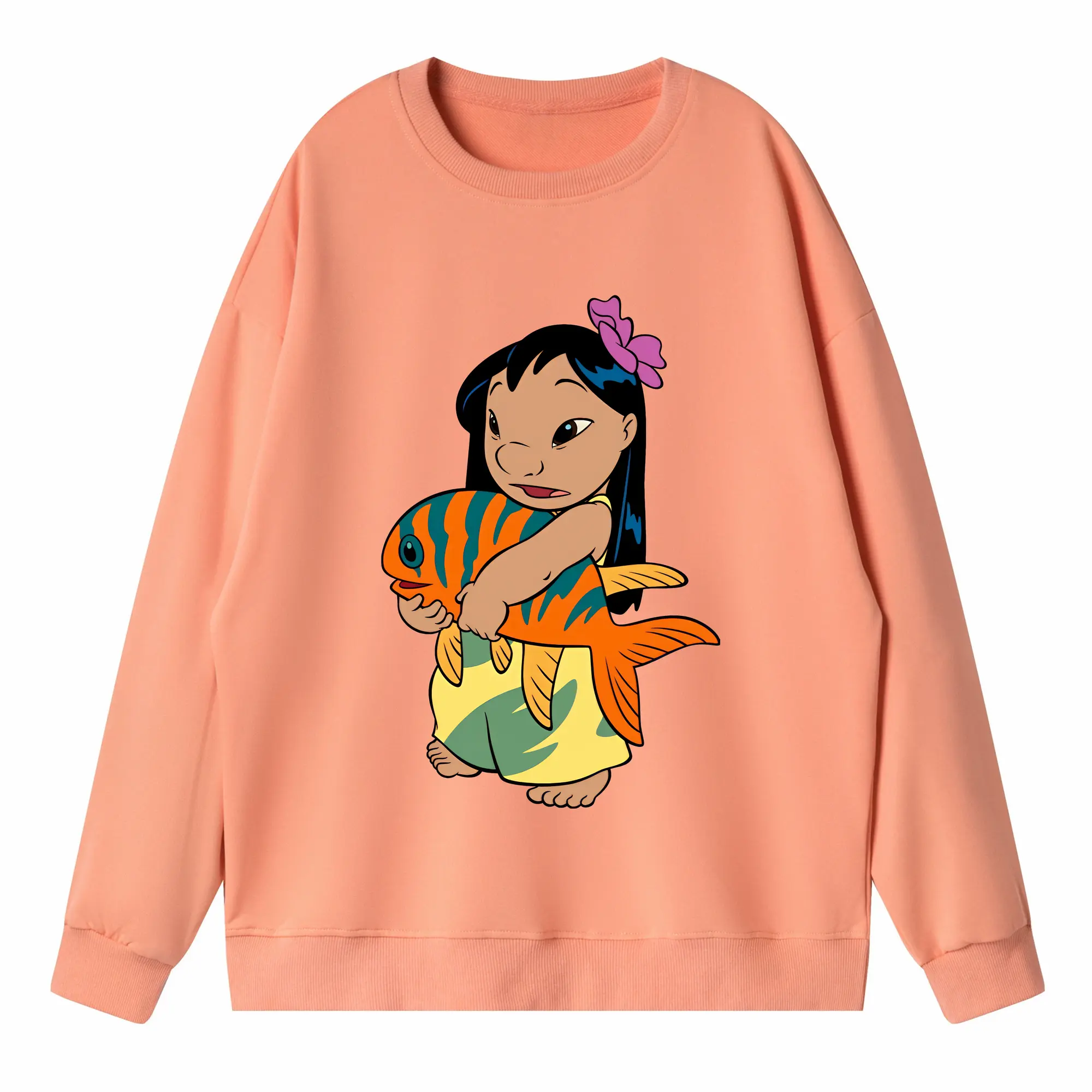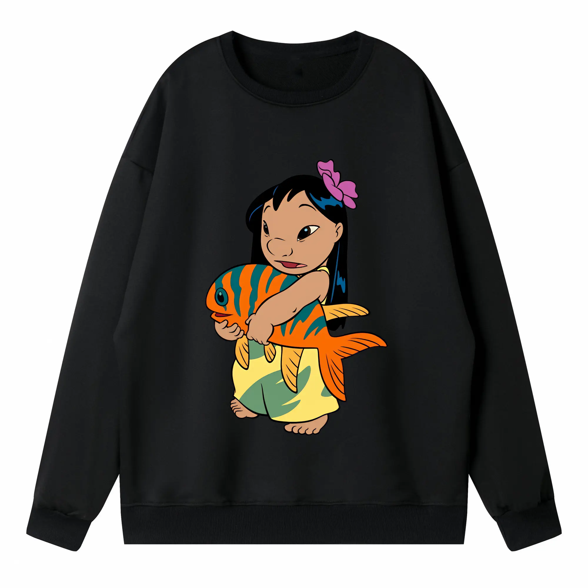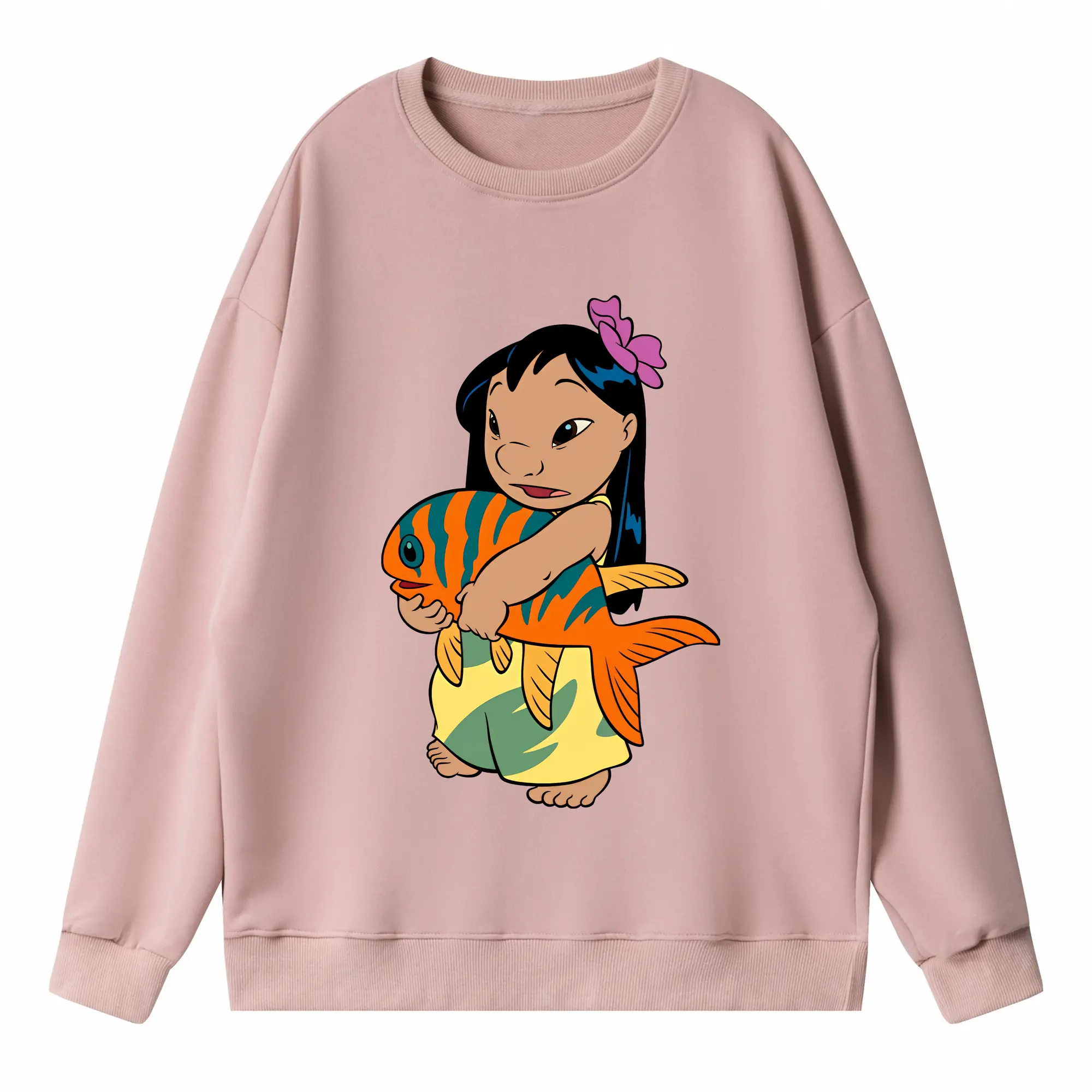 リロ&スティッチ グッズ リロ - 高品質 クルーネック スウェット ・ コットン59% ポリエステル41% ・ ユニセックス 長袖 トレーナー ・ カジュアル デイリー スポーツ 散歩用
