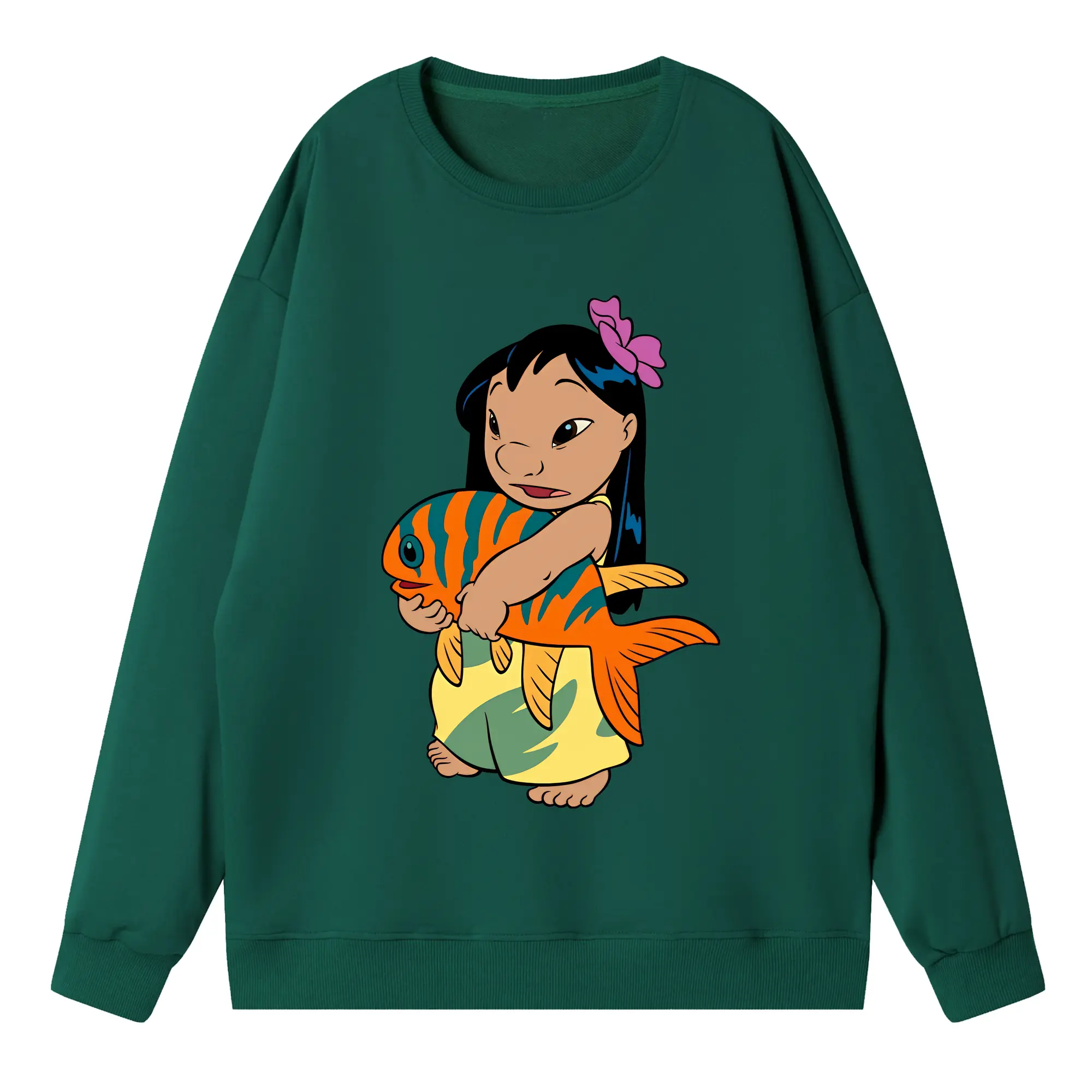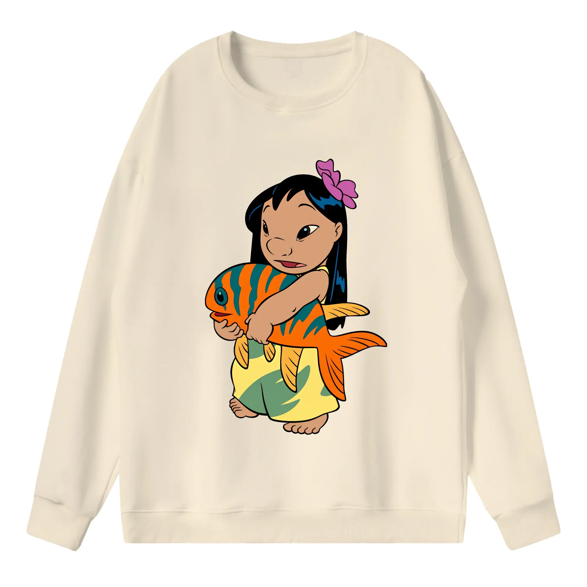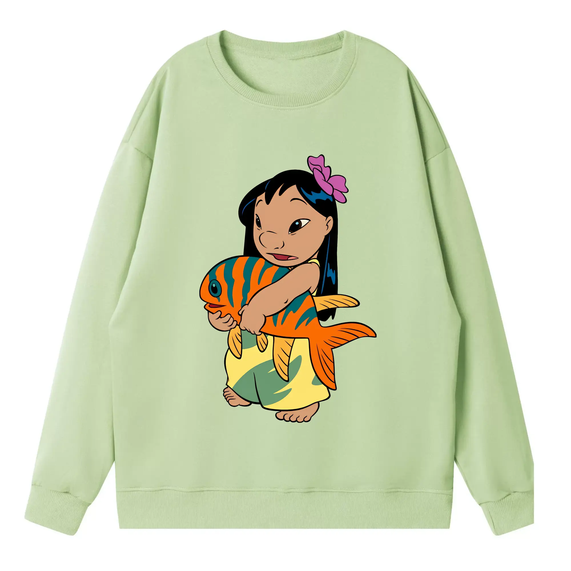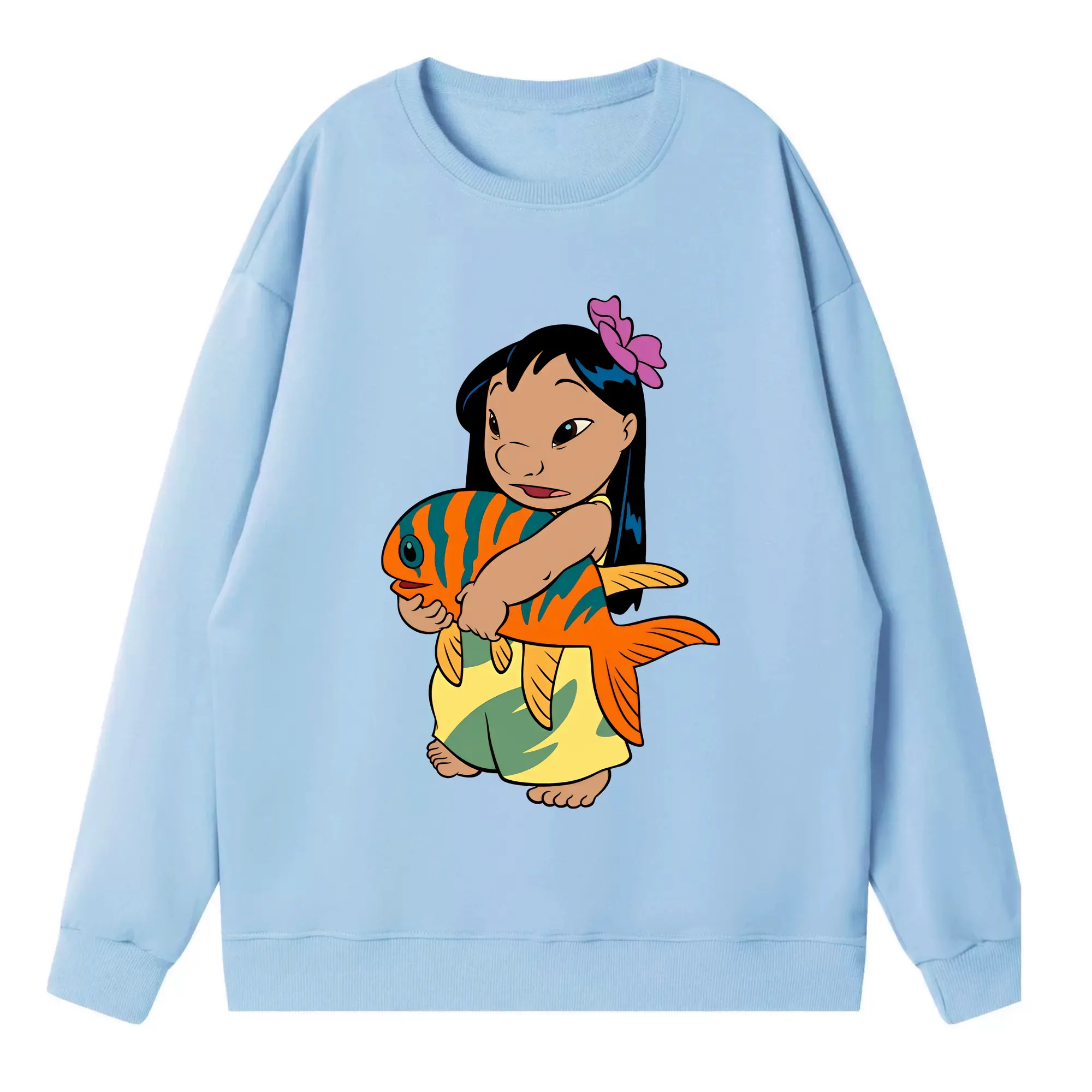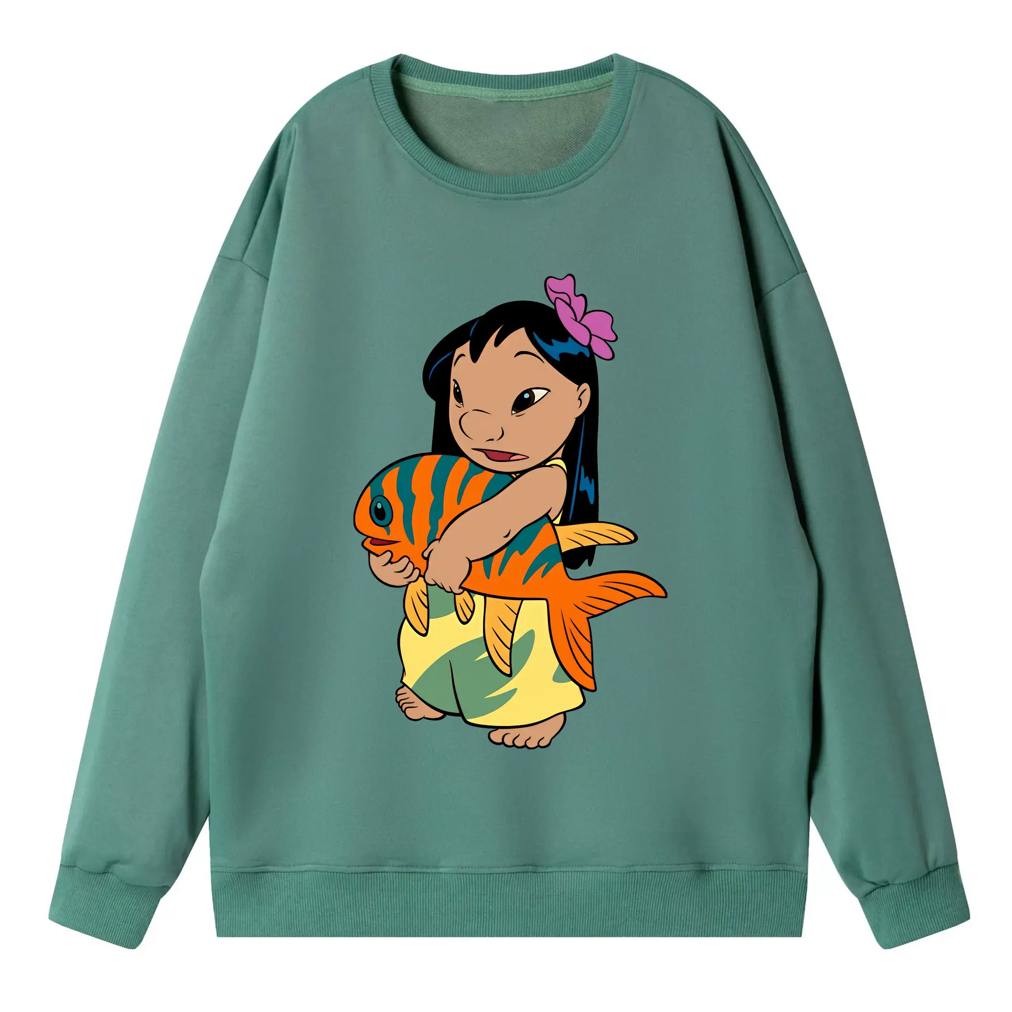 リロ&スティッチ グッズ リロ - 高品質 クルーネック スウェット ・ コットン59% ポリエステル41% ・ ユニセックス 長袖 トレーナー ・ カジュアル デイリー スポーツ 散歩用