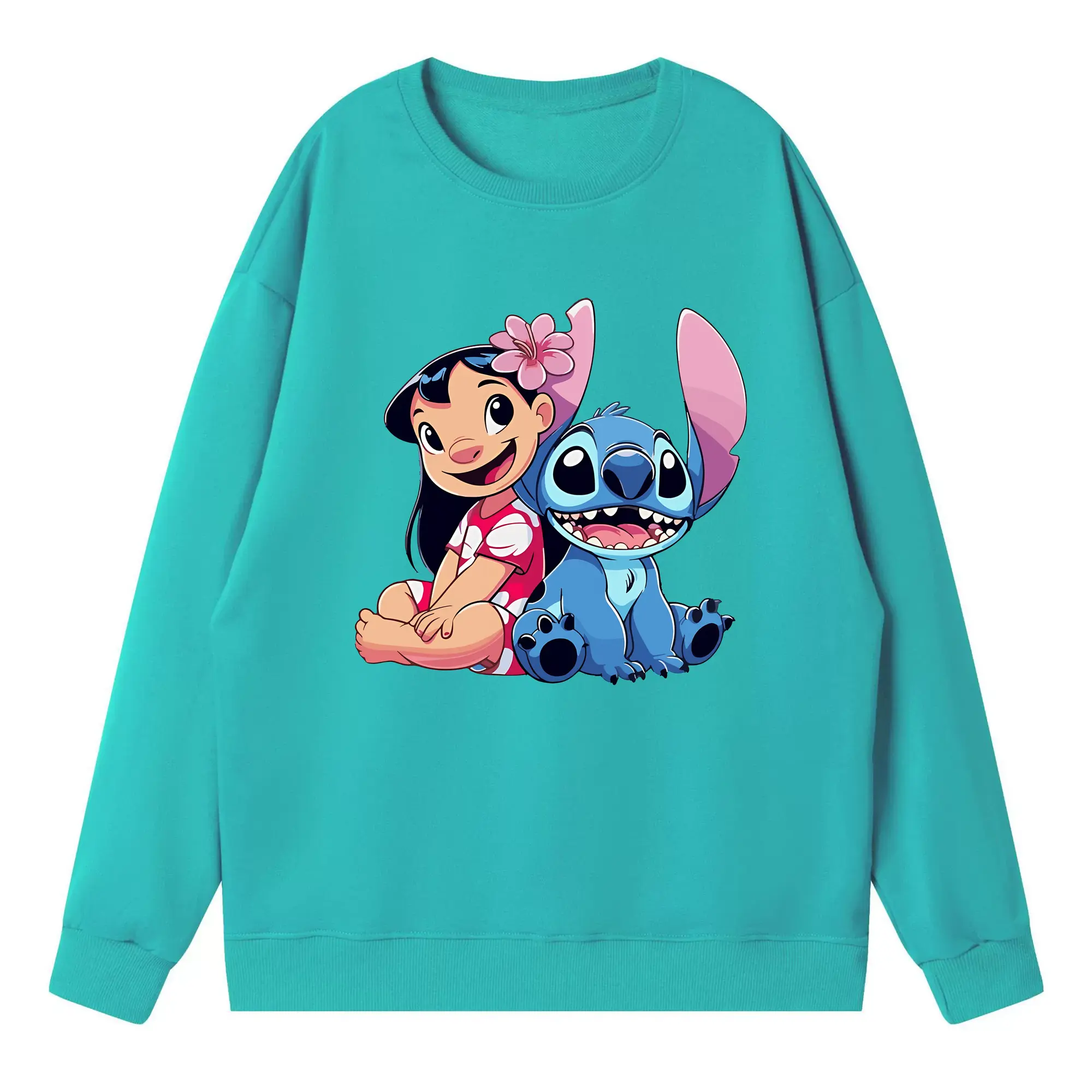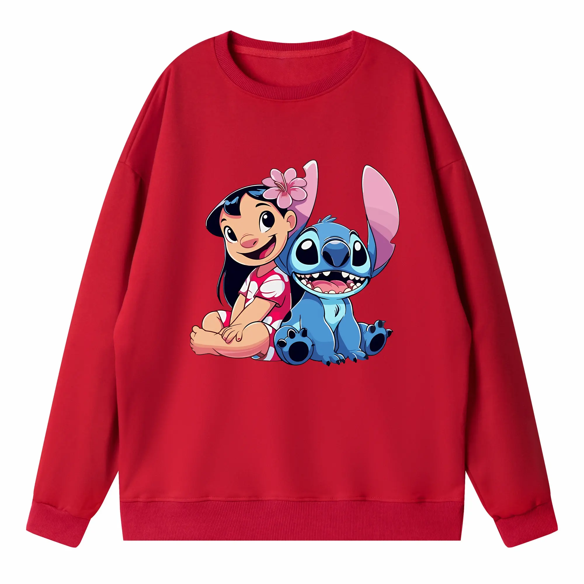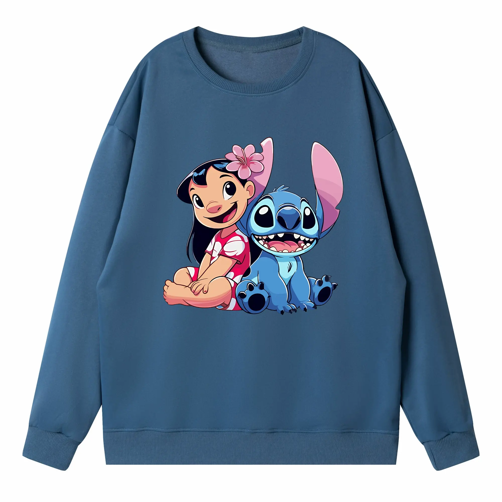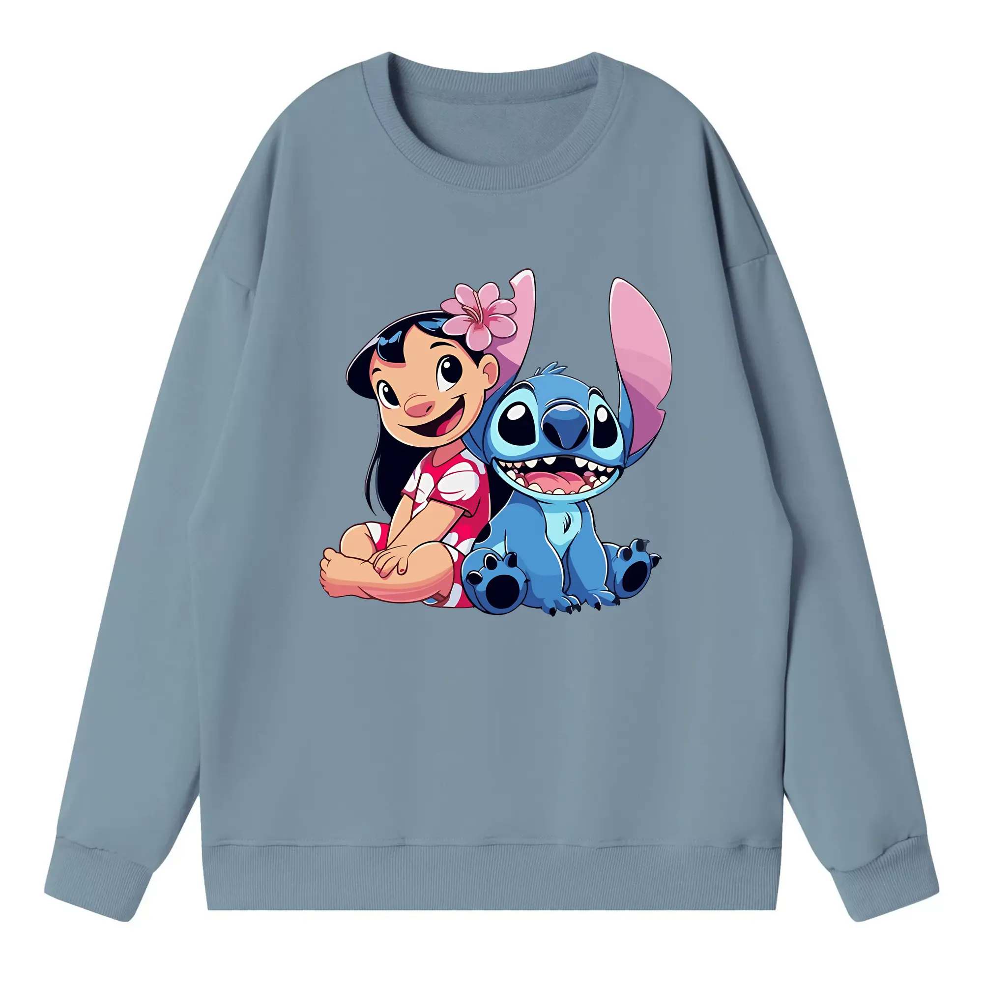リロ&スティッチ グッズ リロ - 高品質 クルーネック スウェット ・ コットン59% ポリエステル41% ・ ユニセックス 長袖 トレーナー ・ カジュアル デイリー スポーツ 散歩用