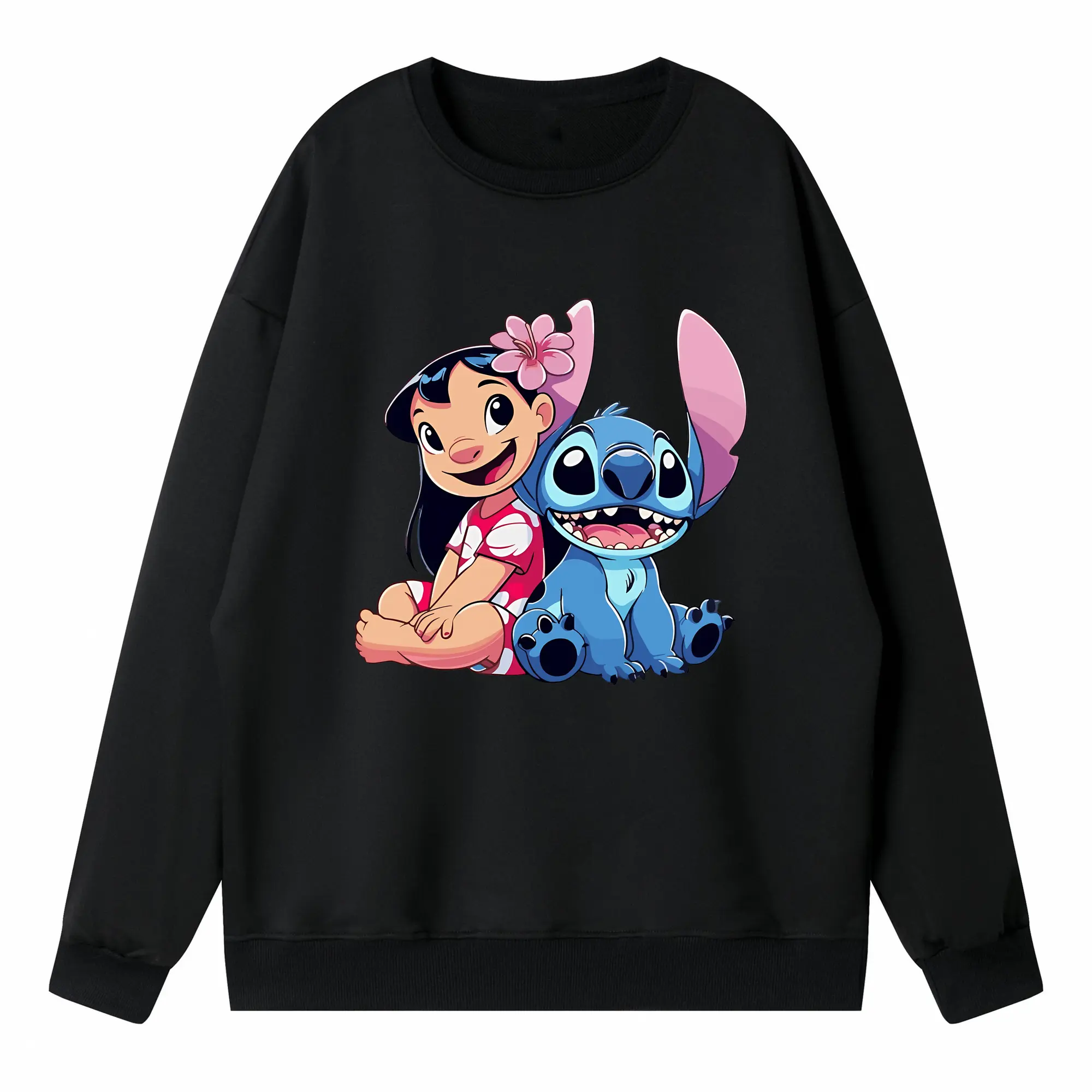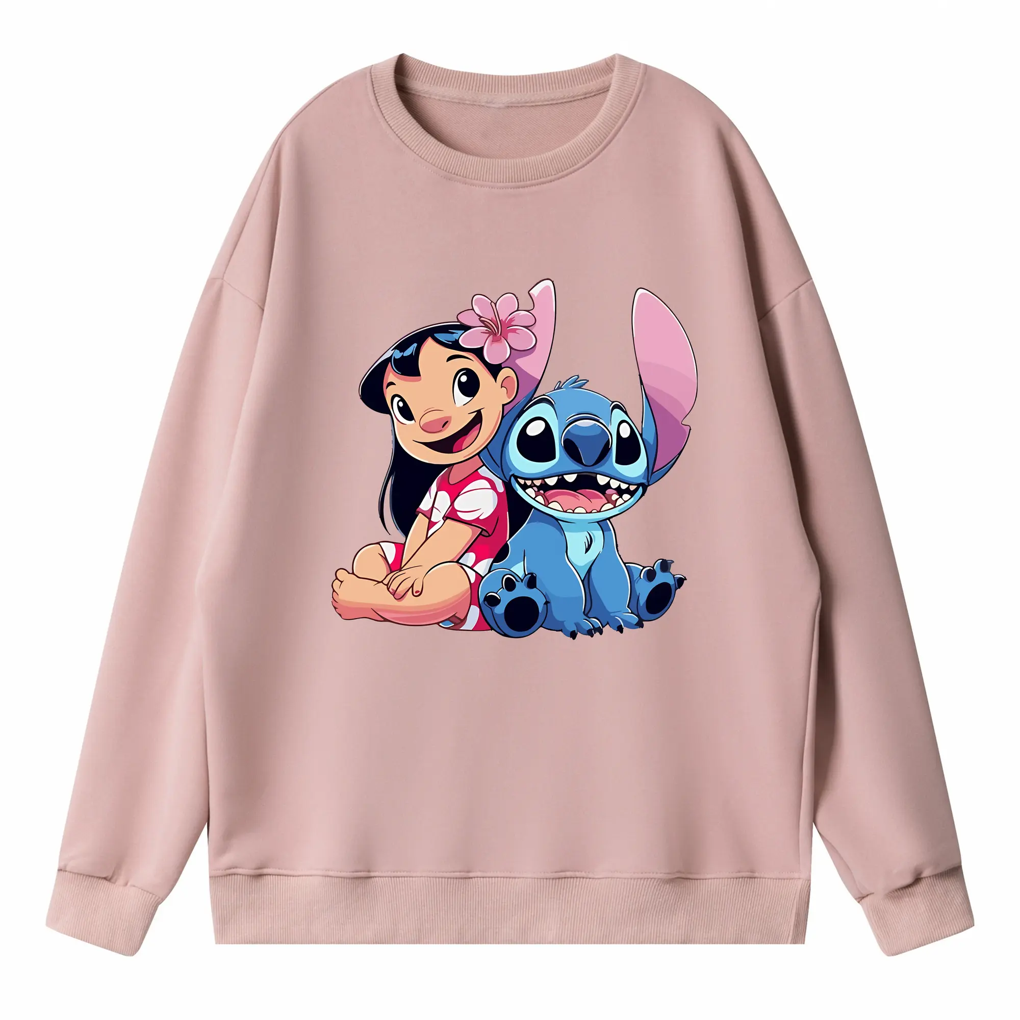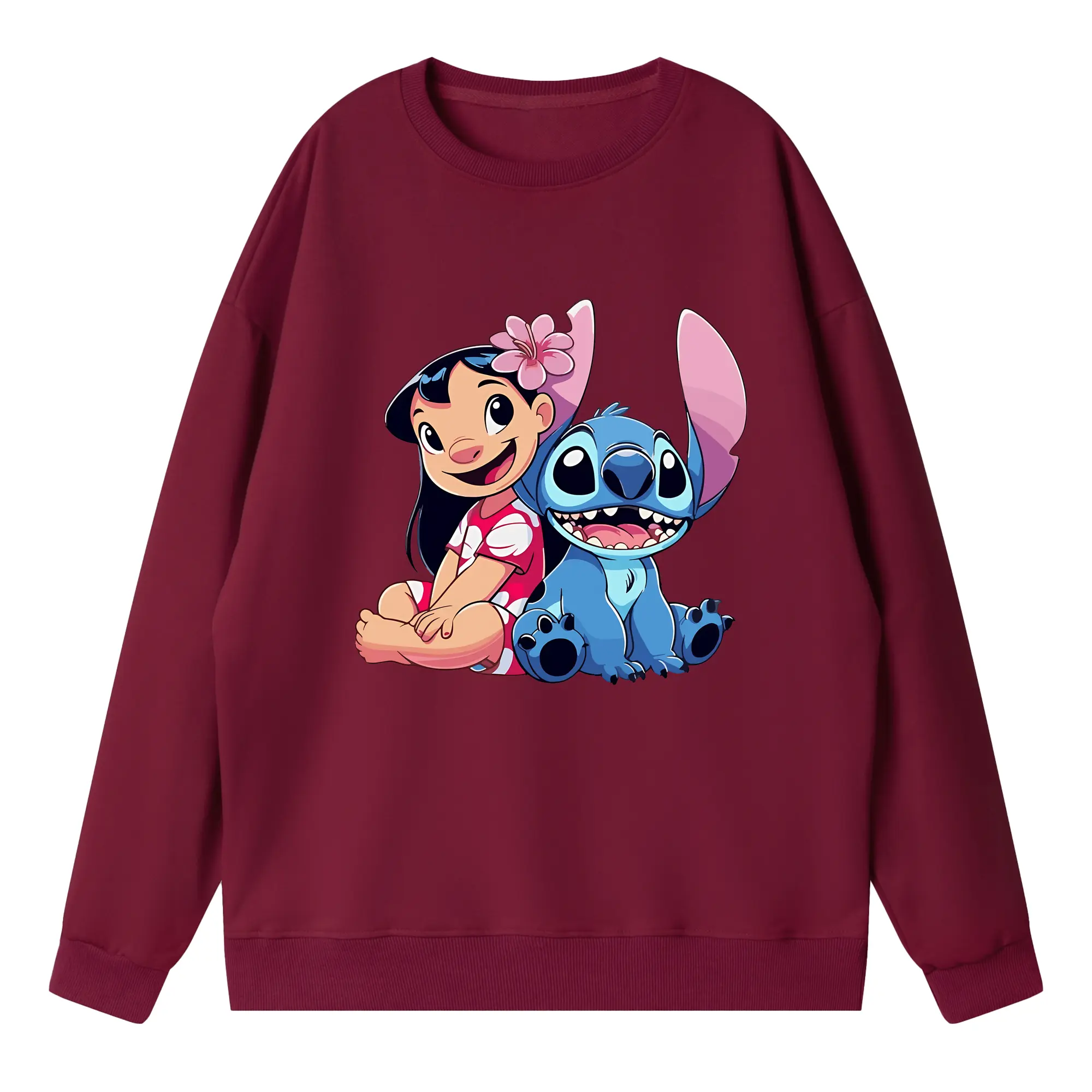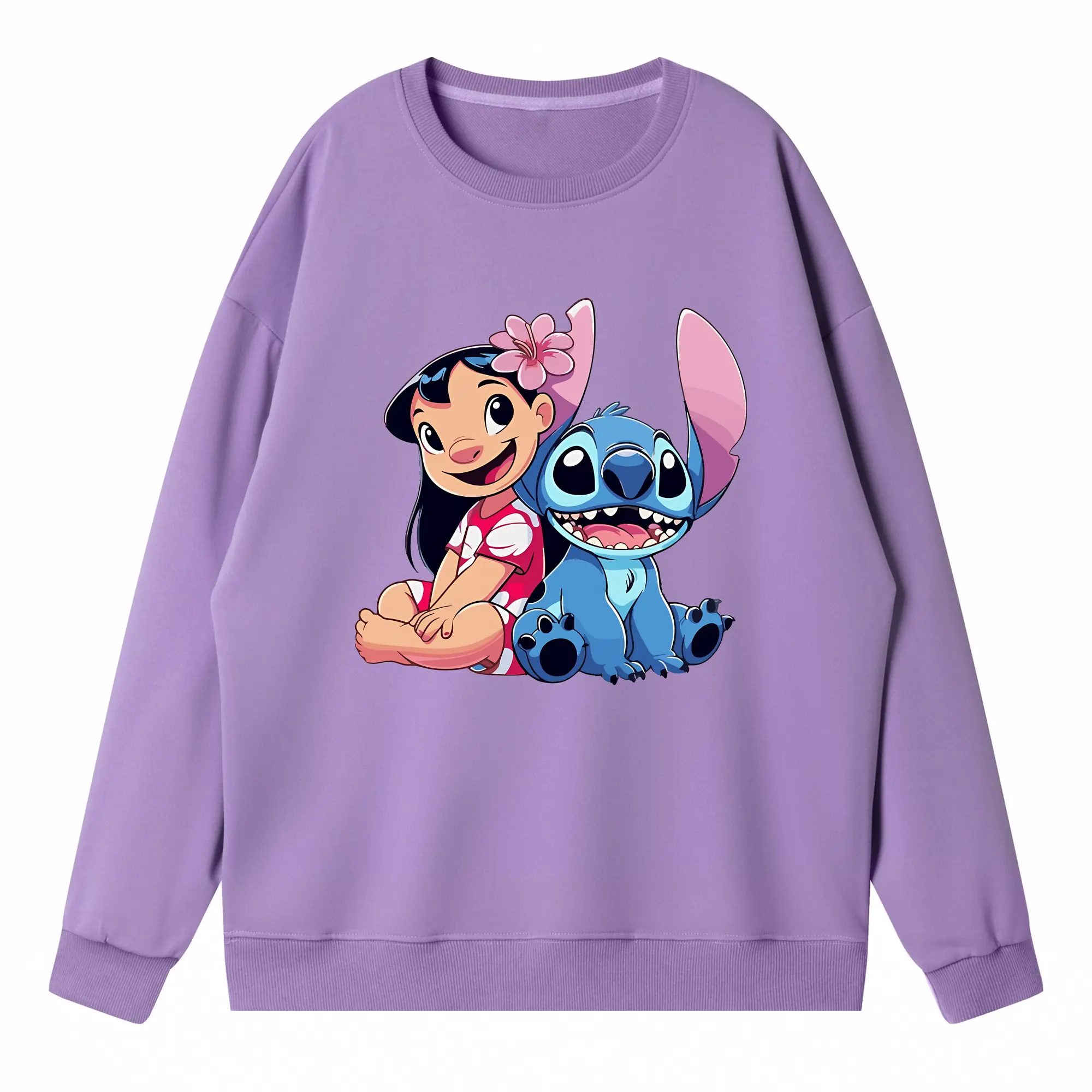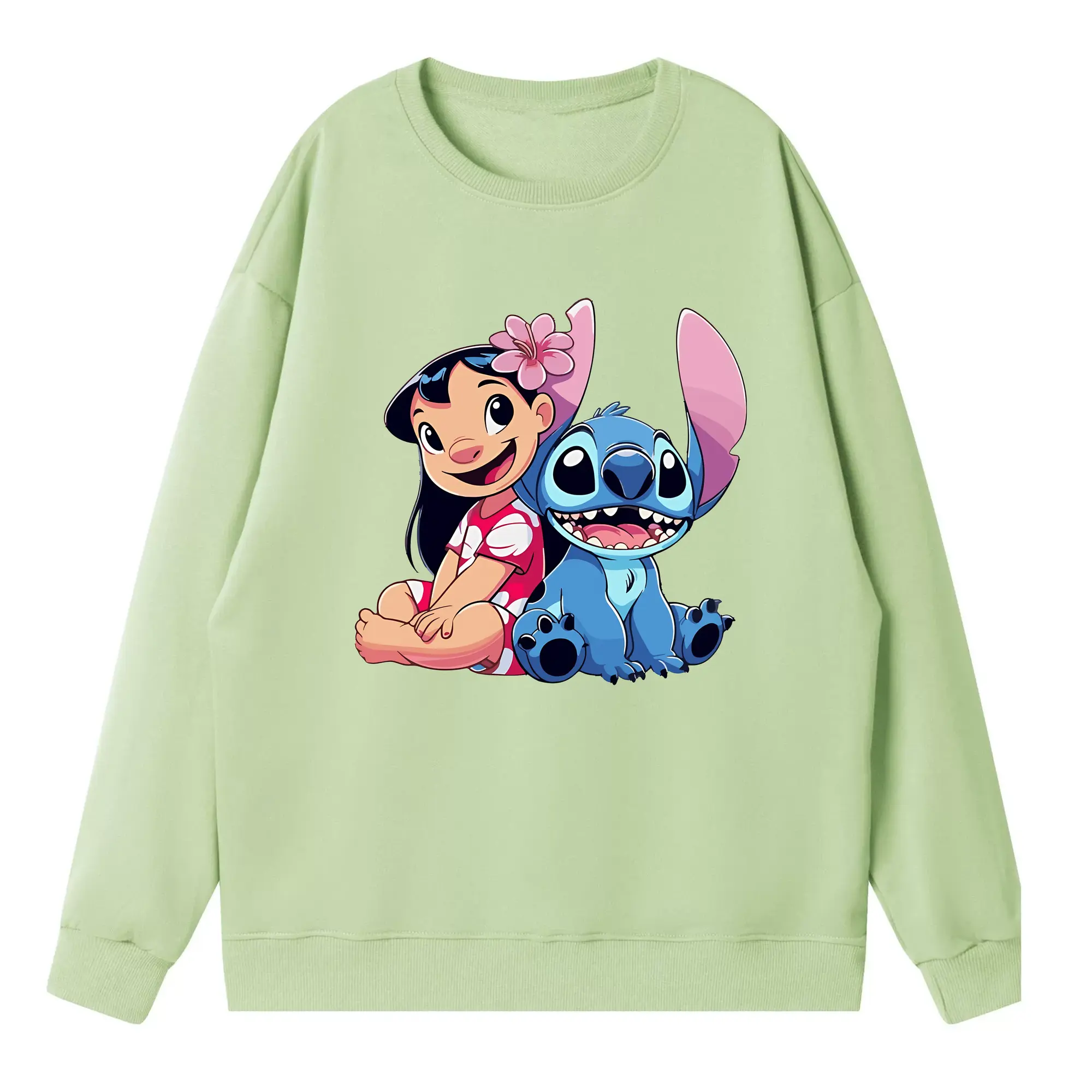 リロ&スティッチ グッズ リロ - 高品質 クルーネック スウェット ・ コットン59% ポリエステル41% ・ ユニセックス 長袖 トレーナー ・ カジュアル デイリー スポーツ 散歩用