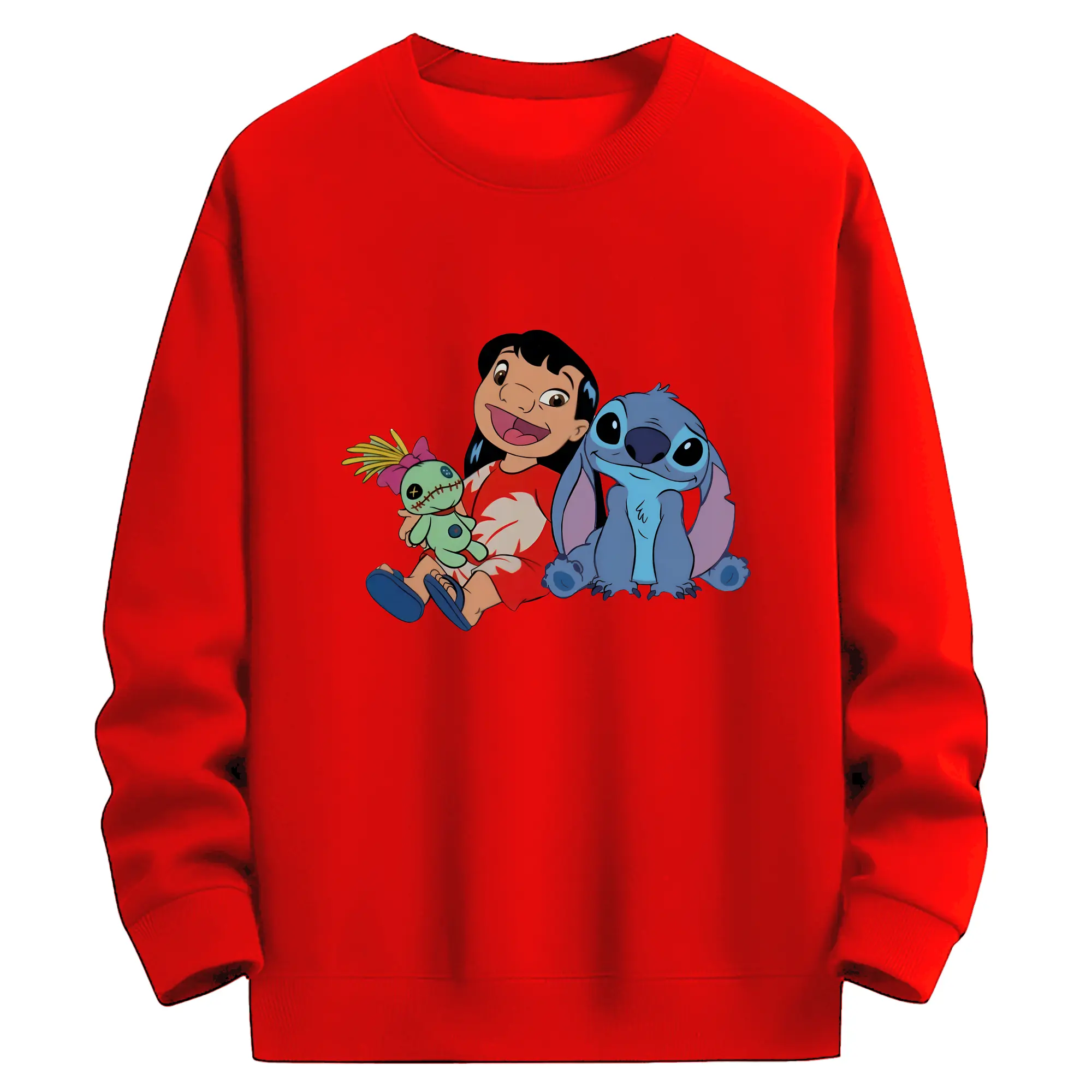 リロ&スティッチ グッズ リロ - 薄手 クルーネック スウェット 裏毛260g · ポリエステル 春秋向け カジュアル 男女兼用 · トレーナー デイリー スポーツ 散歩に最適