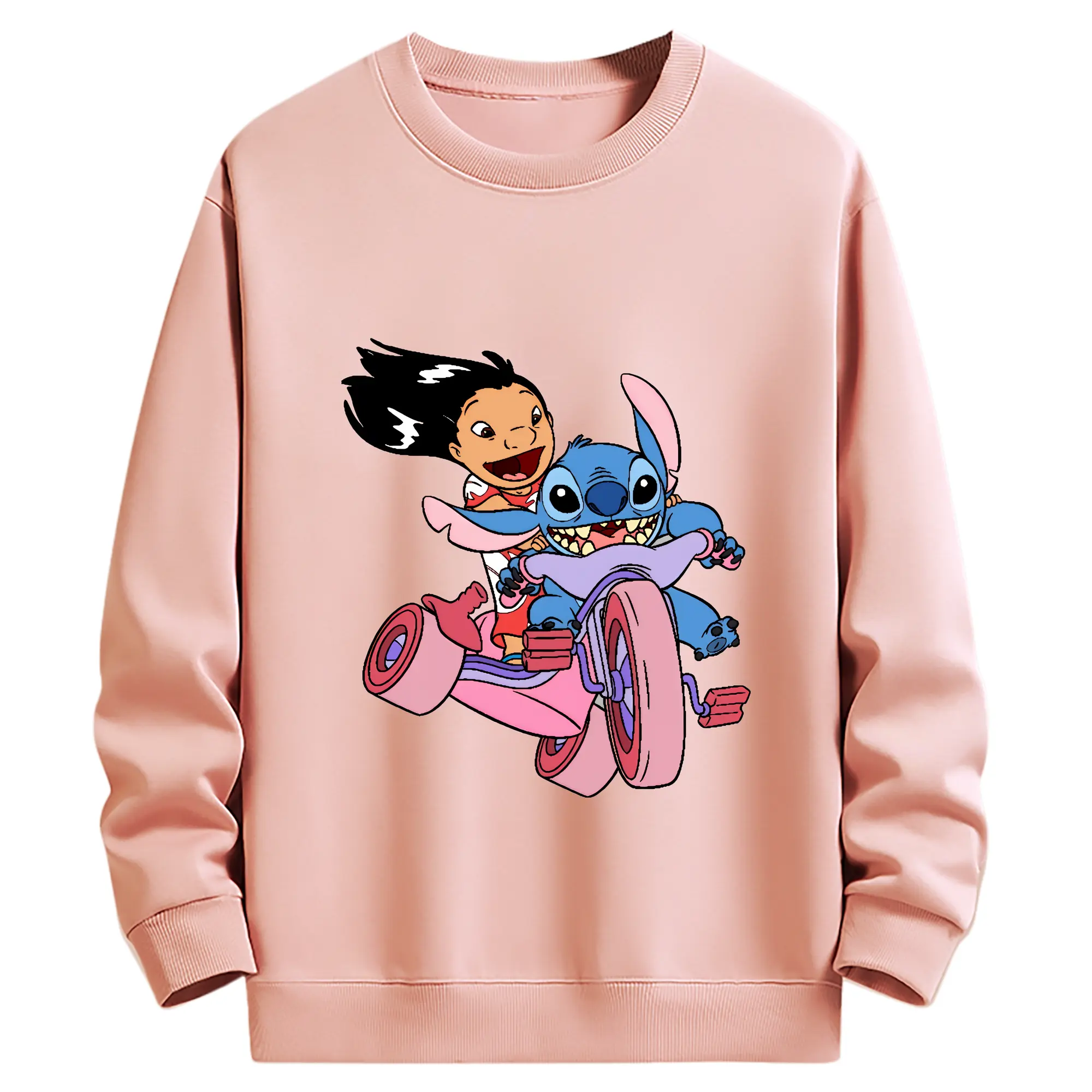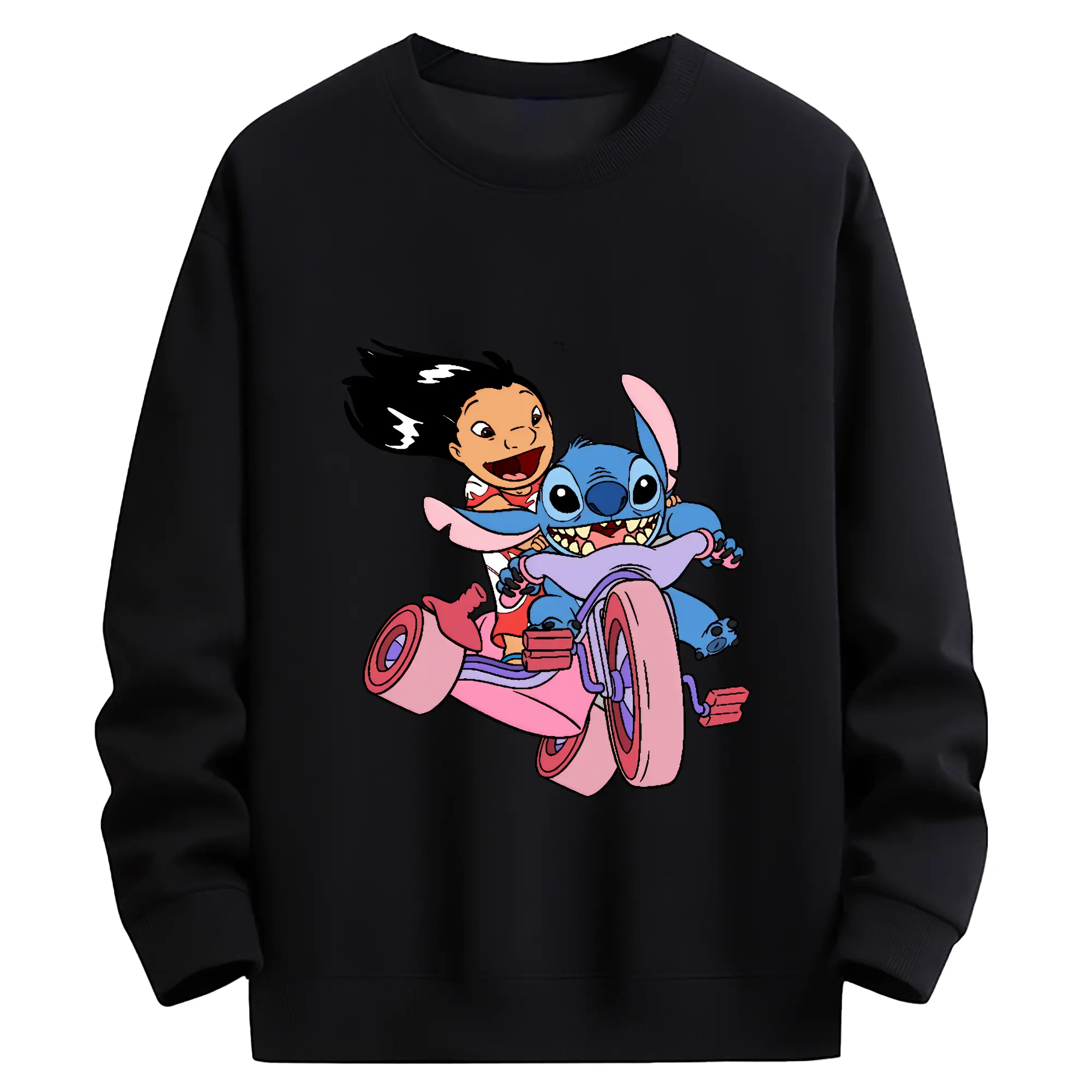 リロ&スティッチ グッズ リロ - 高品質 クルーネック スウェット ・ コットン59% ポリエステル41% ・ ユニセックス 長袖 トレーナー ・ カジュアル デイリー スポーツ 散歩用