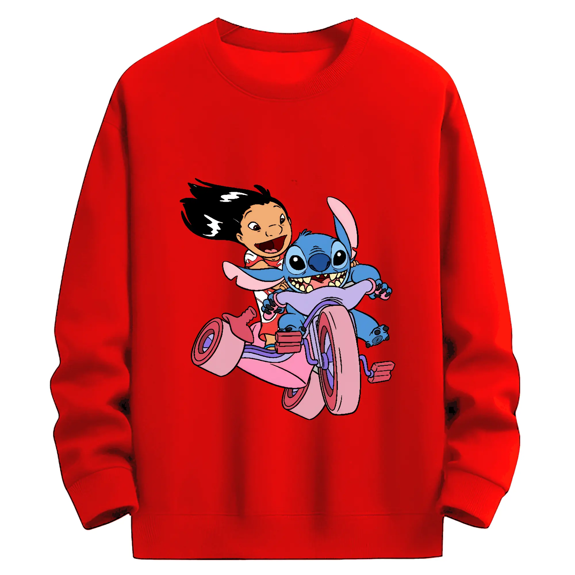 リロ&スティッチ グッズ リロ - 薄手 クルーネック スウェット 裏毛260g · ポリエステル 春秋向け カジュアル 男女兼用 · トレーナー デイリー スポーツ 散歩に最適