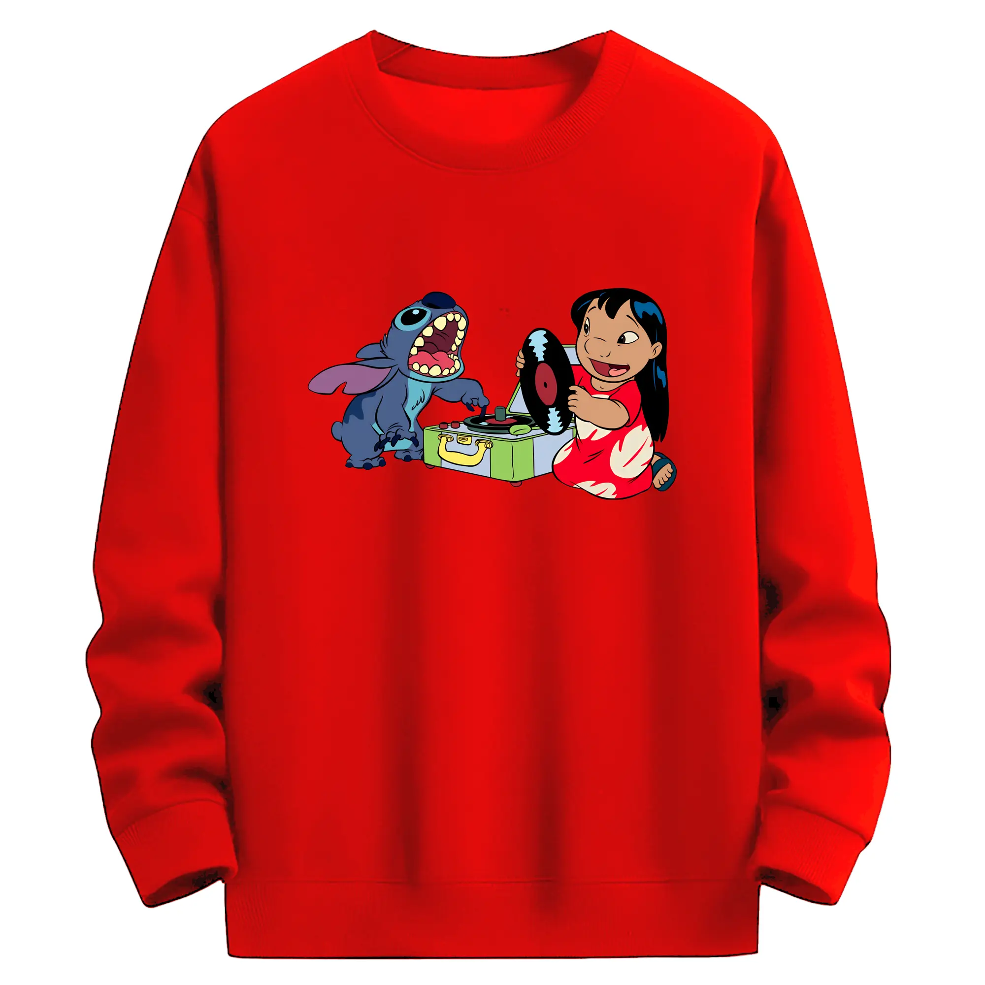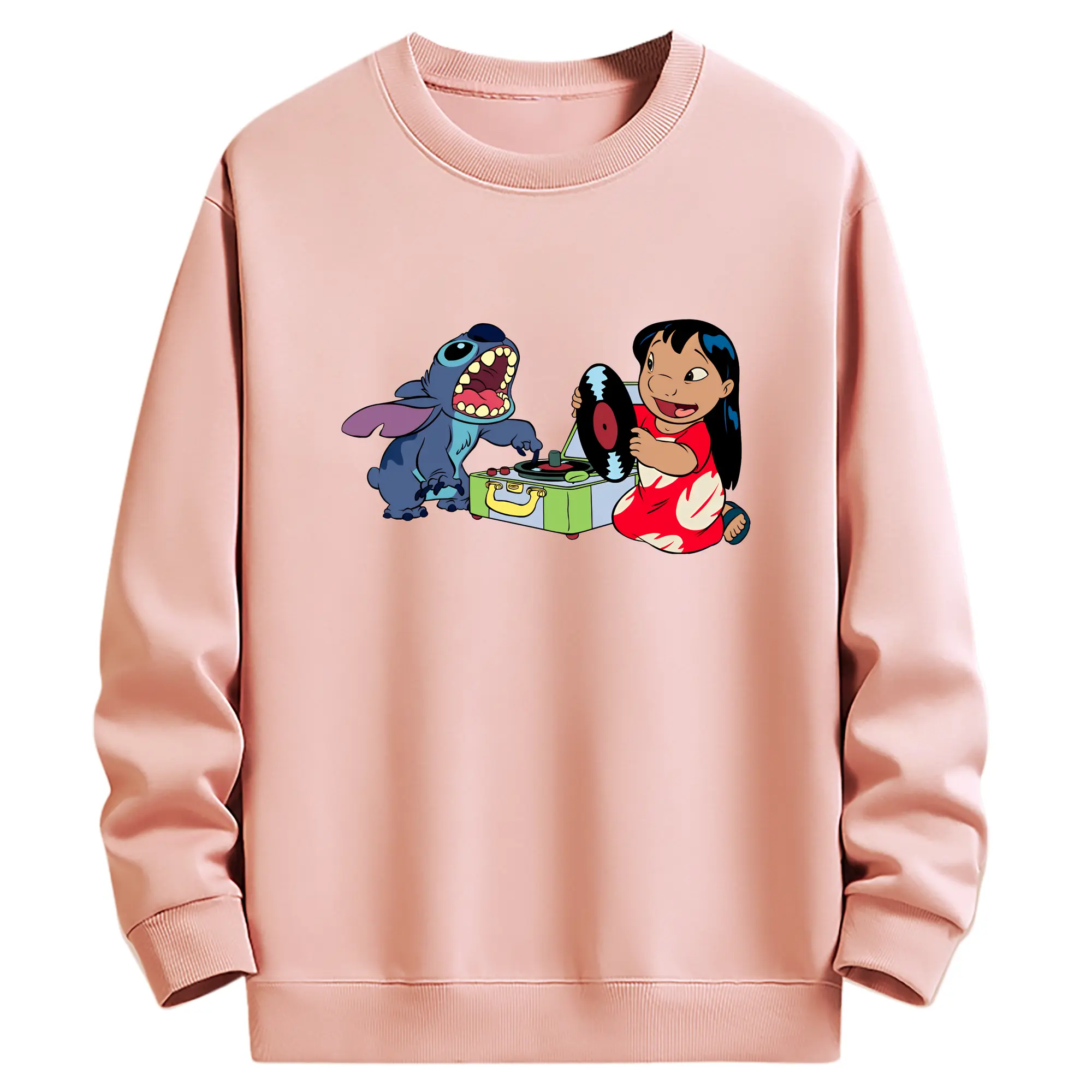 リロ&スティッチ グッズ リロ - 薄手 クルーネック スウェット 裏毛260g · ポリエステル 春秋向け カジュアル 男女兼用 · トレーナー デイリー スポーツ 散歩に最適