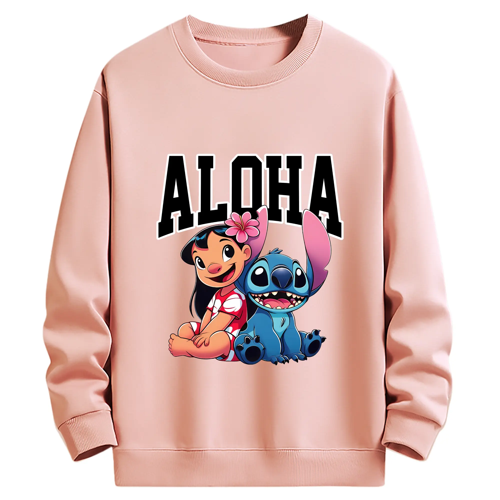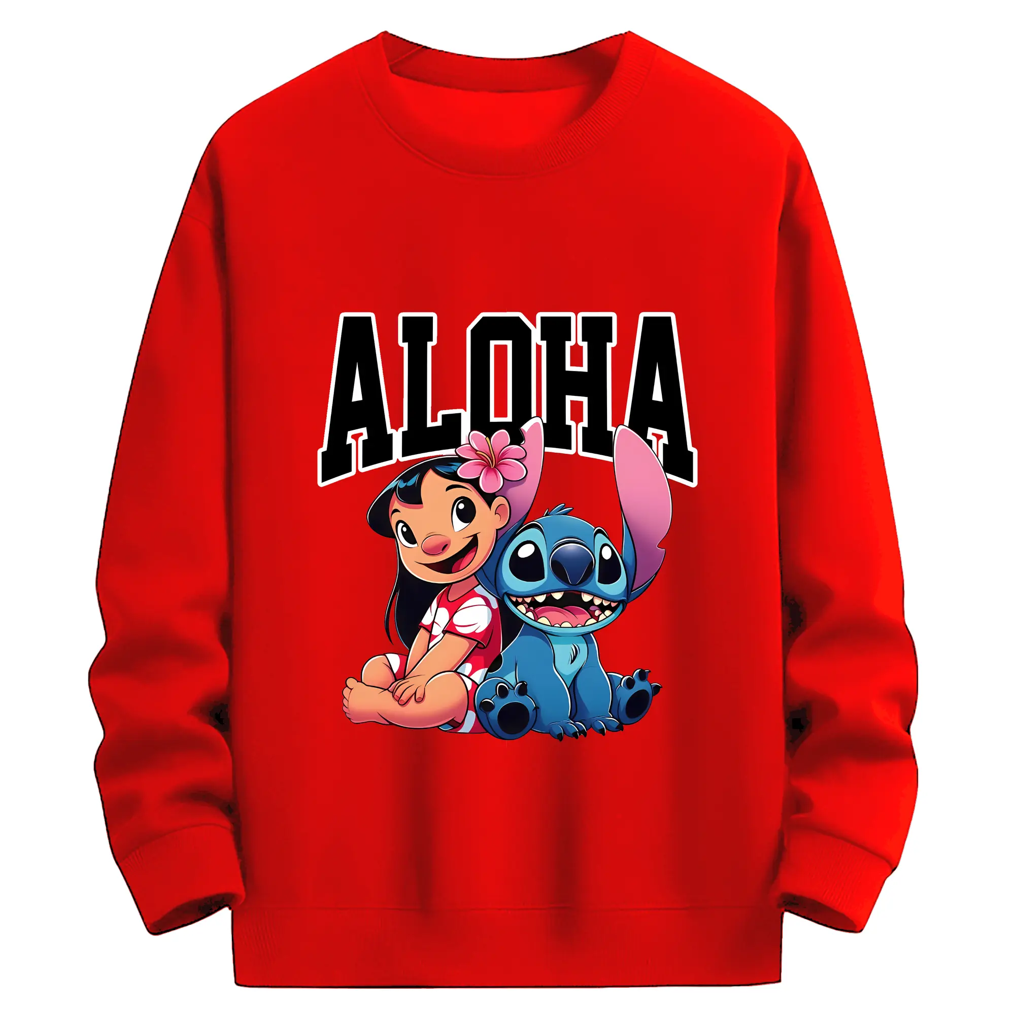 リロ&スティッチ グッズ リロ - 薄手 クルーネック スウェット 裏毛260g · ポリエステル 春秋向け カジュアル 男女兼用 · トレーナー デイリー スポーツ 散歩に最適