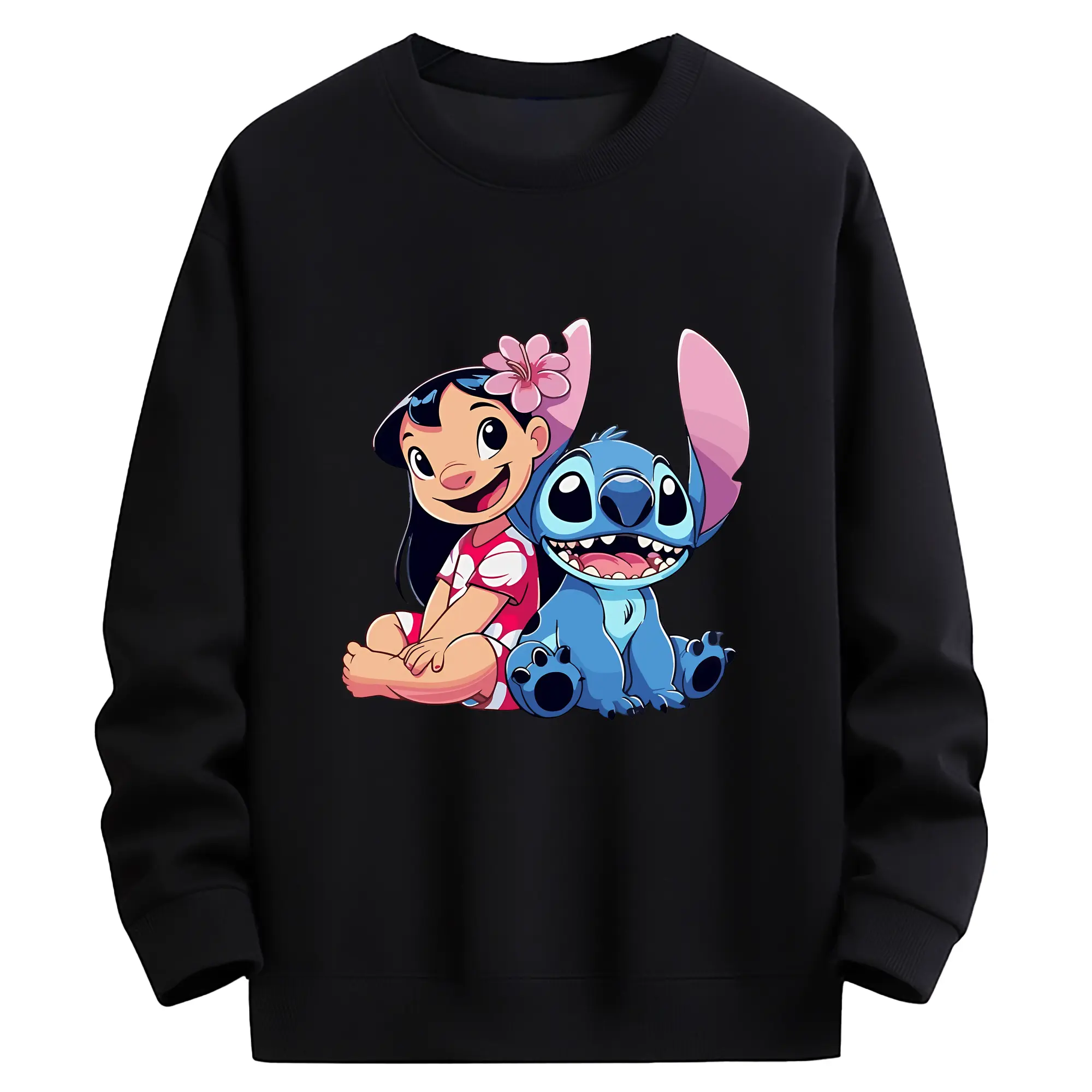 リロ&スティッチ グッズ リロ - 高品質 クルーネック スウェット ・ コットン59% ポリエステル41% ・ ユニセックス 長袖 トレーナー ・ カジュアル デイリー スポーツ 散歩用