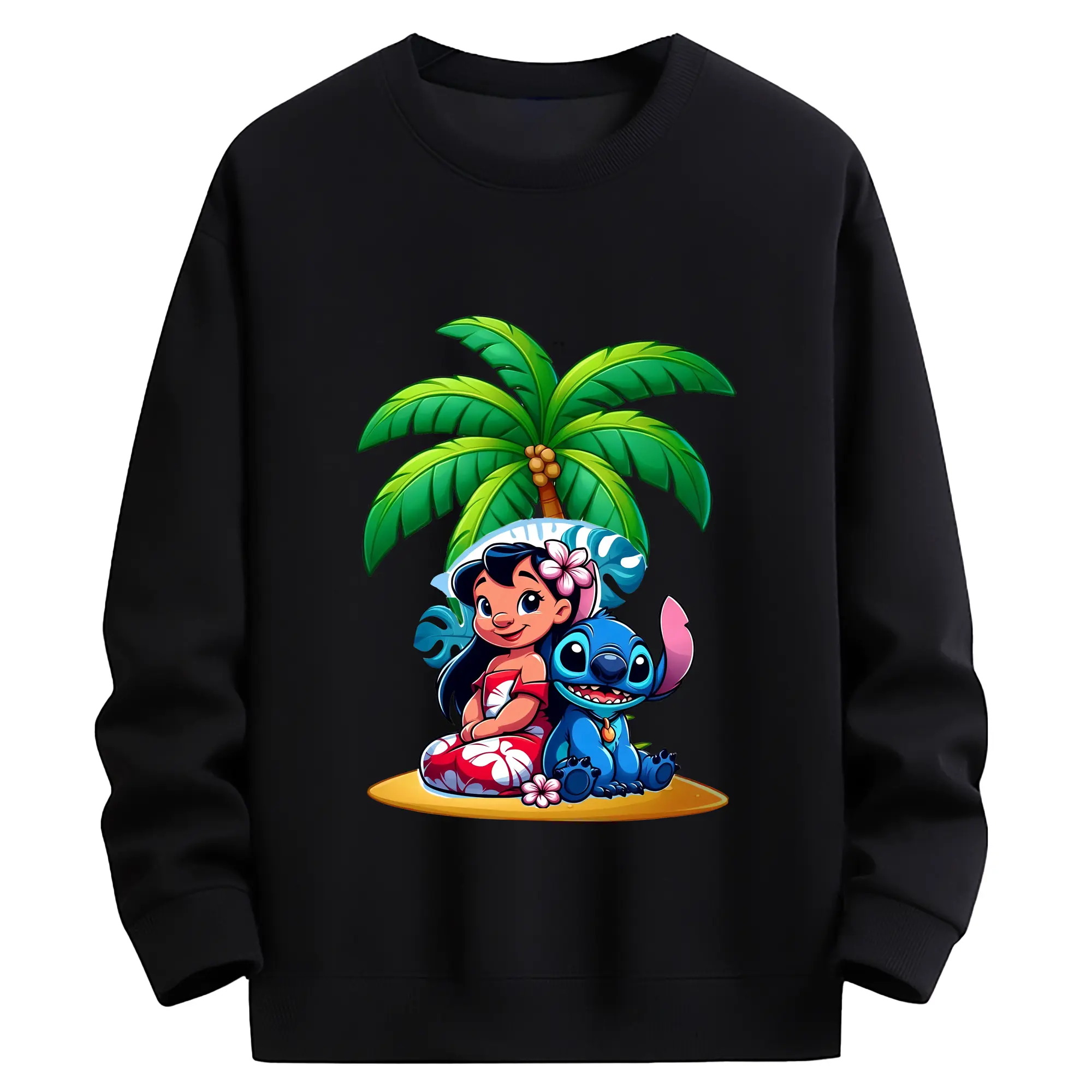 リロ&スティッチ グッズ リロ - 高品質 クルーネック スウェット ・ コットン59% ポリエステル41% ・ ユニセックス 長袖 トレーナー ・ カジュアル デイリー スポーツ 散歩用