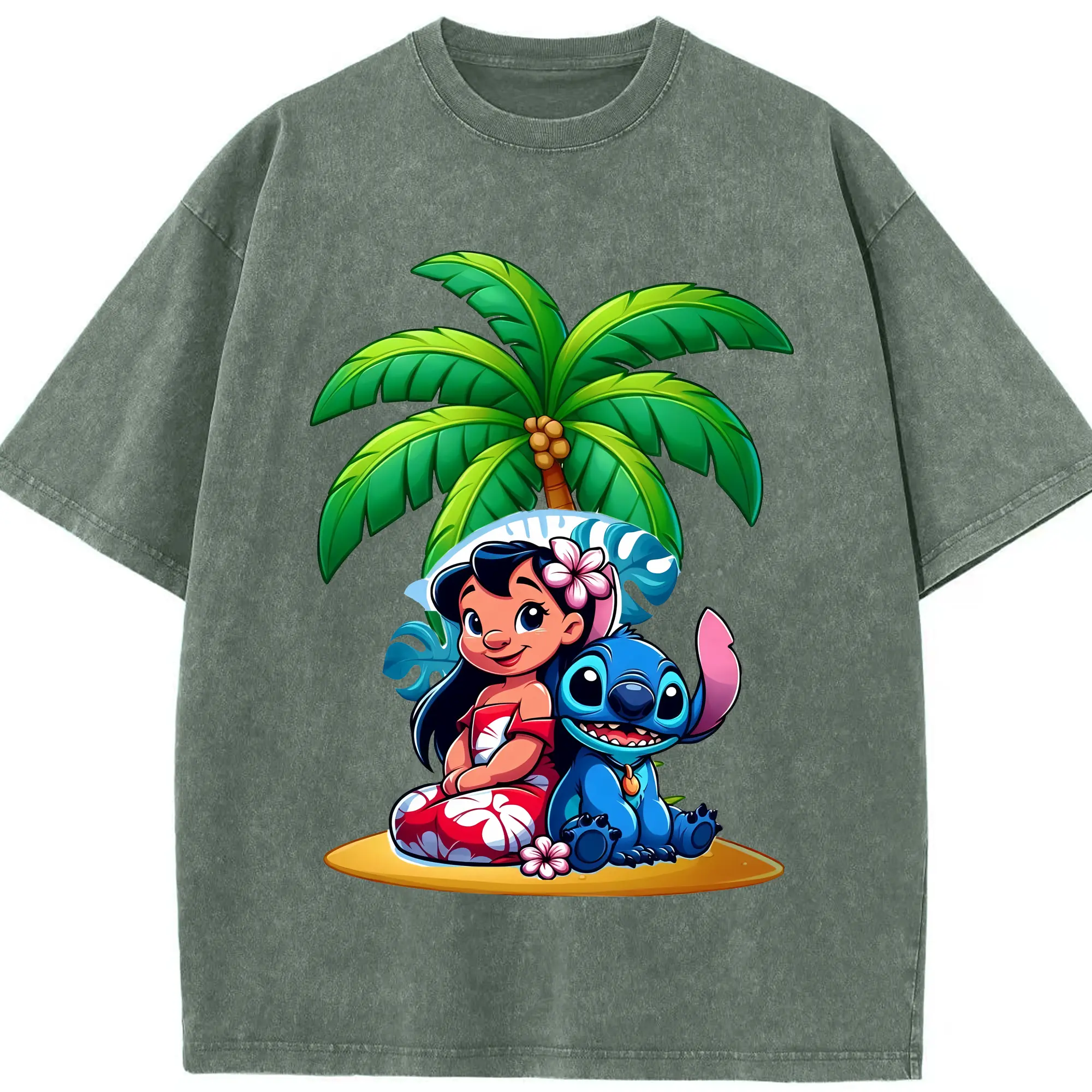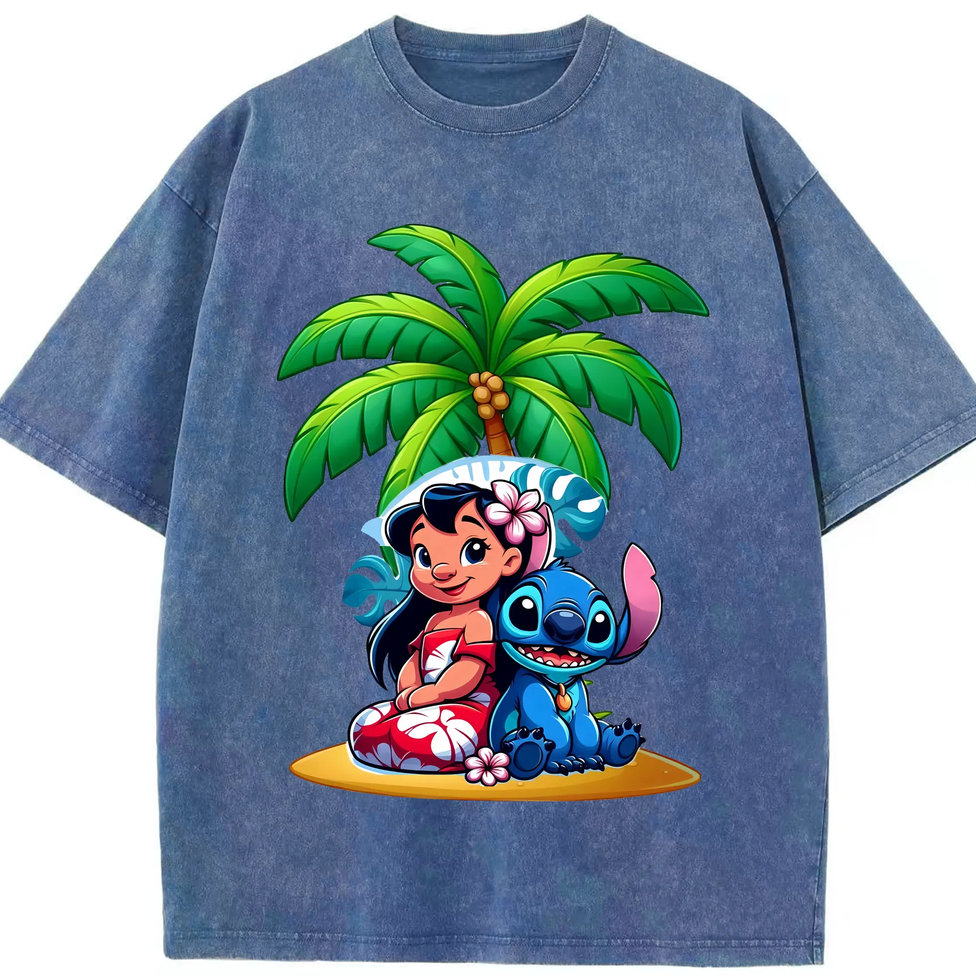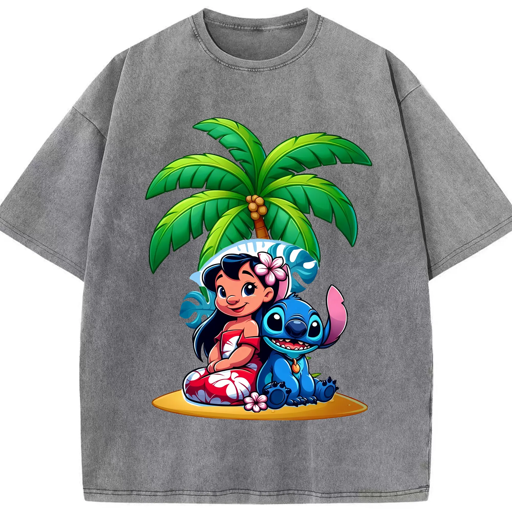 リロ&スティッチ グッズ リロ - 綿100% ヴィンテージ風 半袖Tシャツ ・ 背面プリント ・ 柔らか肌触り ・ 通気性 快適 ・ スポーツ カジュアル 外出用