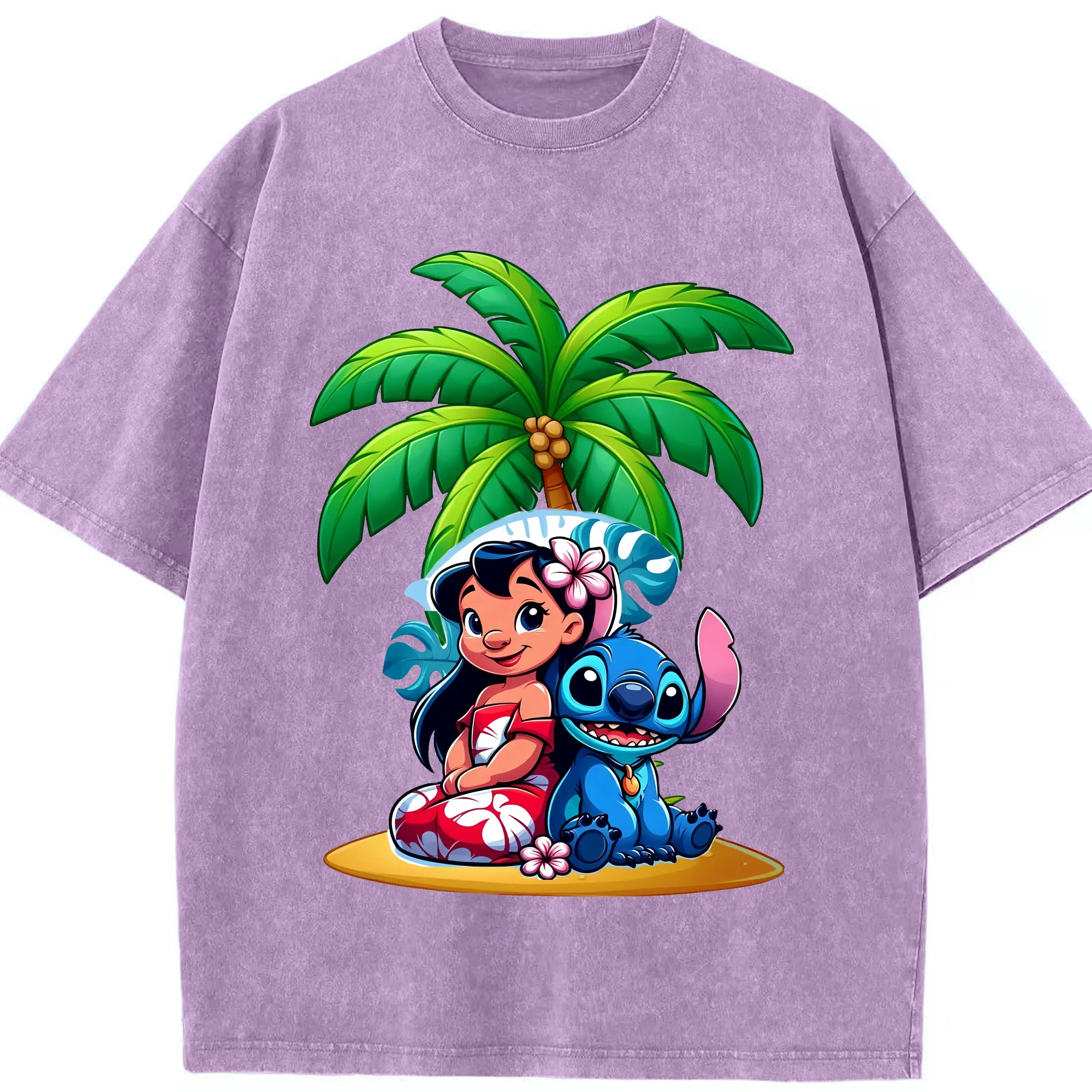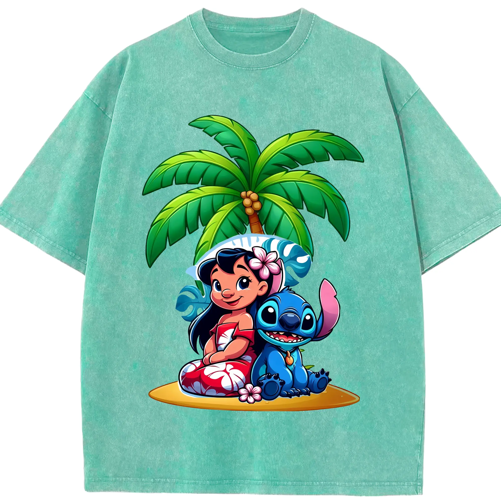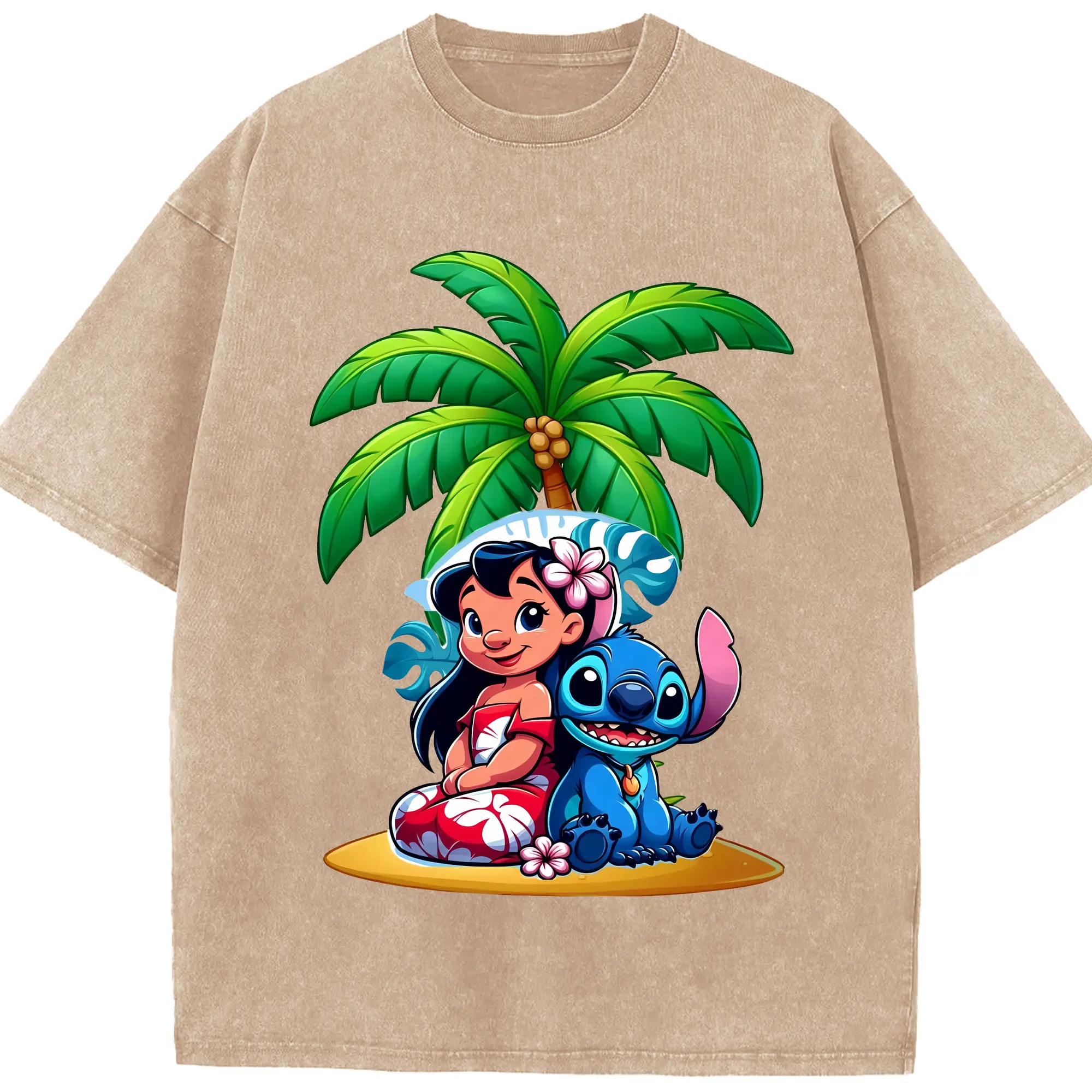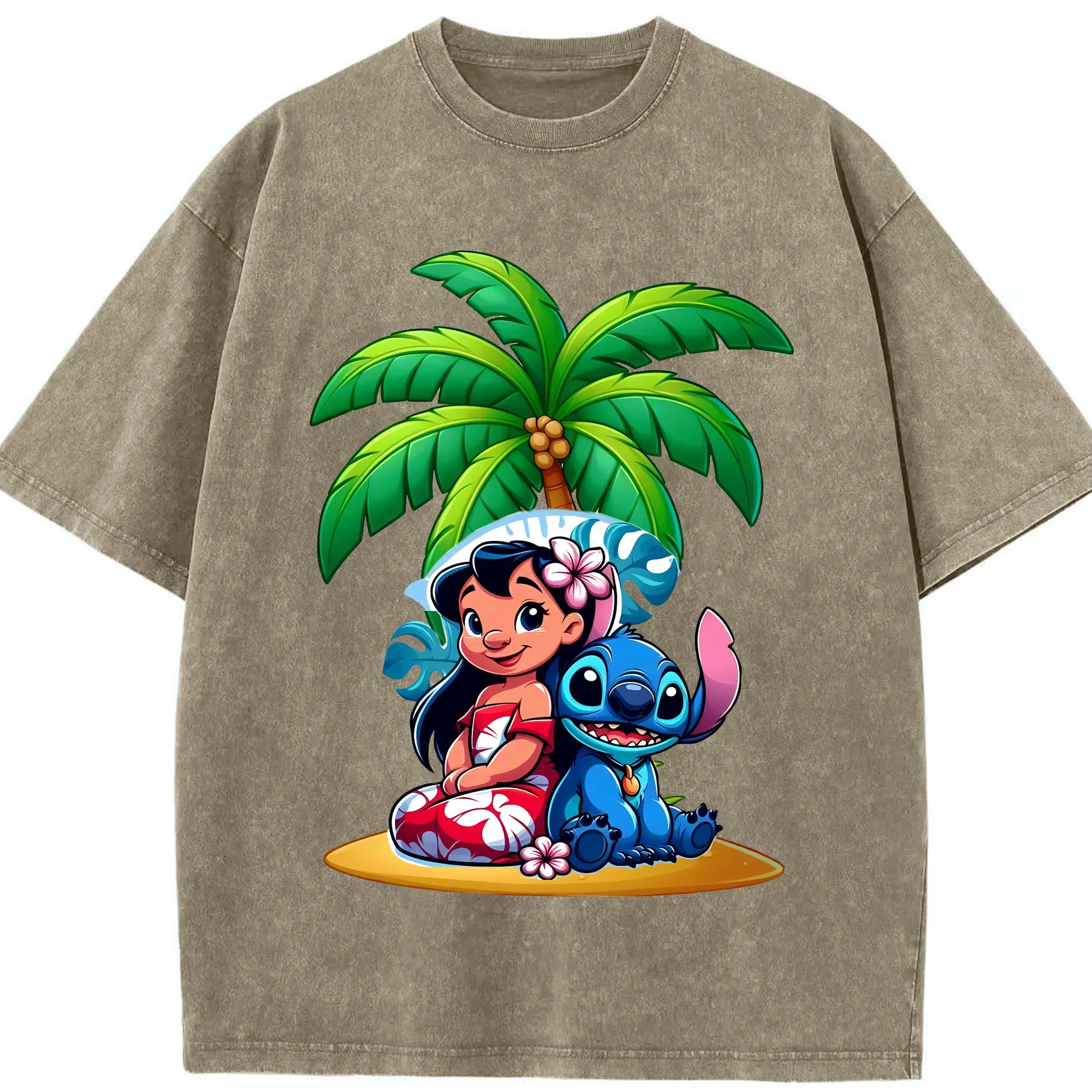リロ&スティッチ グッズ リロ - 綿100% ヴィンテージ風 半袖Tシャツ ・ 背面プリント ・ 柔らか肌触り ・ 通気性 快適 ・ スポーツ カジュアル 外出用