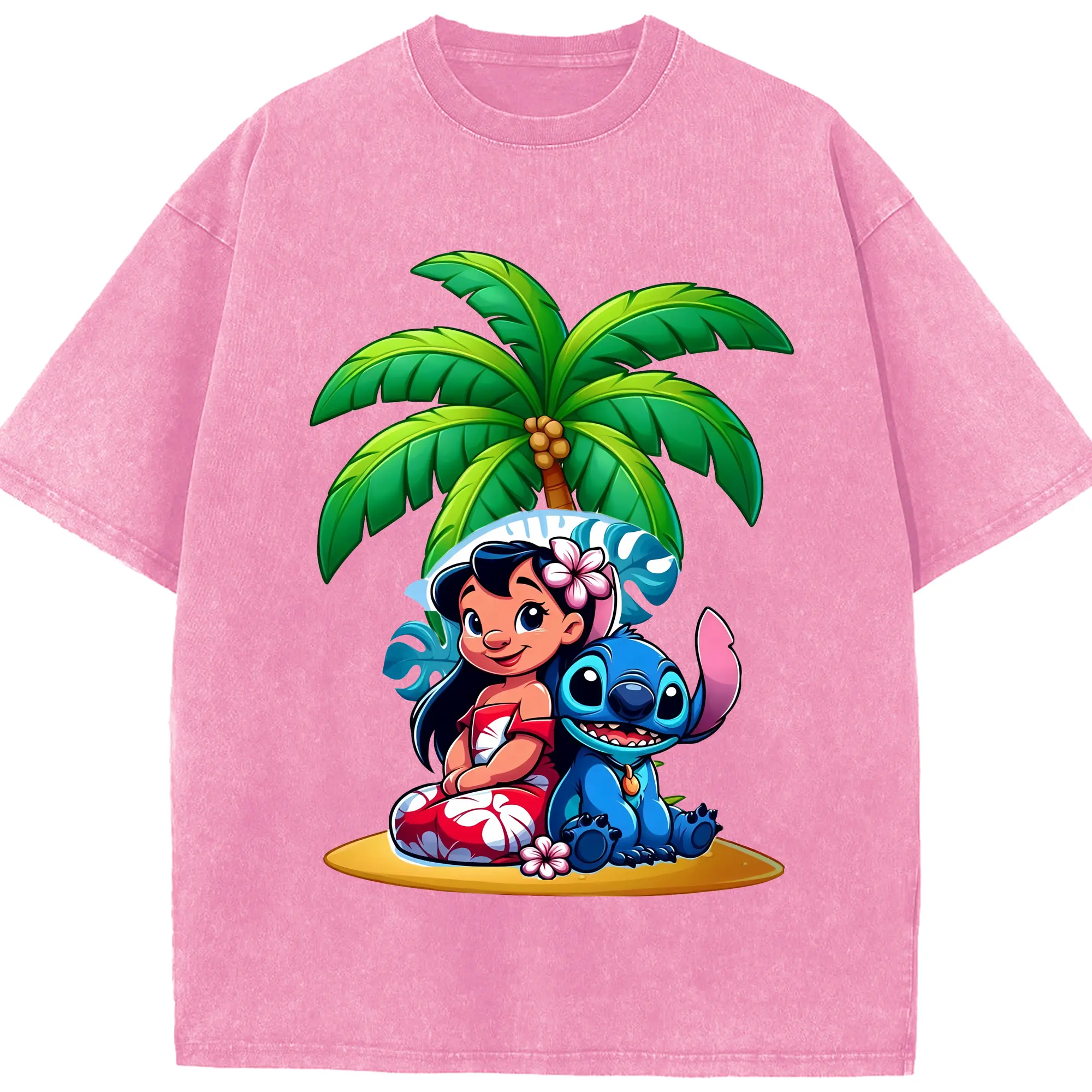 リロ&スティッチ グッズ リロ - 綿100% 半袖Tシャツ ・ バックプリント ・ 快適 通気性 ・ 日常使い 散歩 スポーツ用