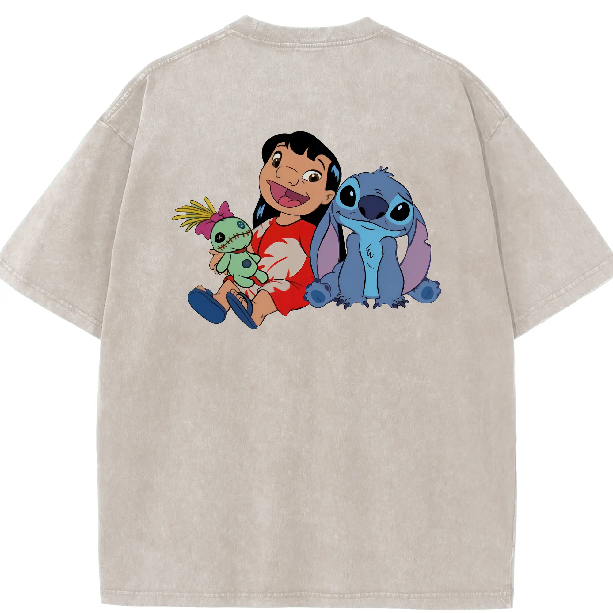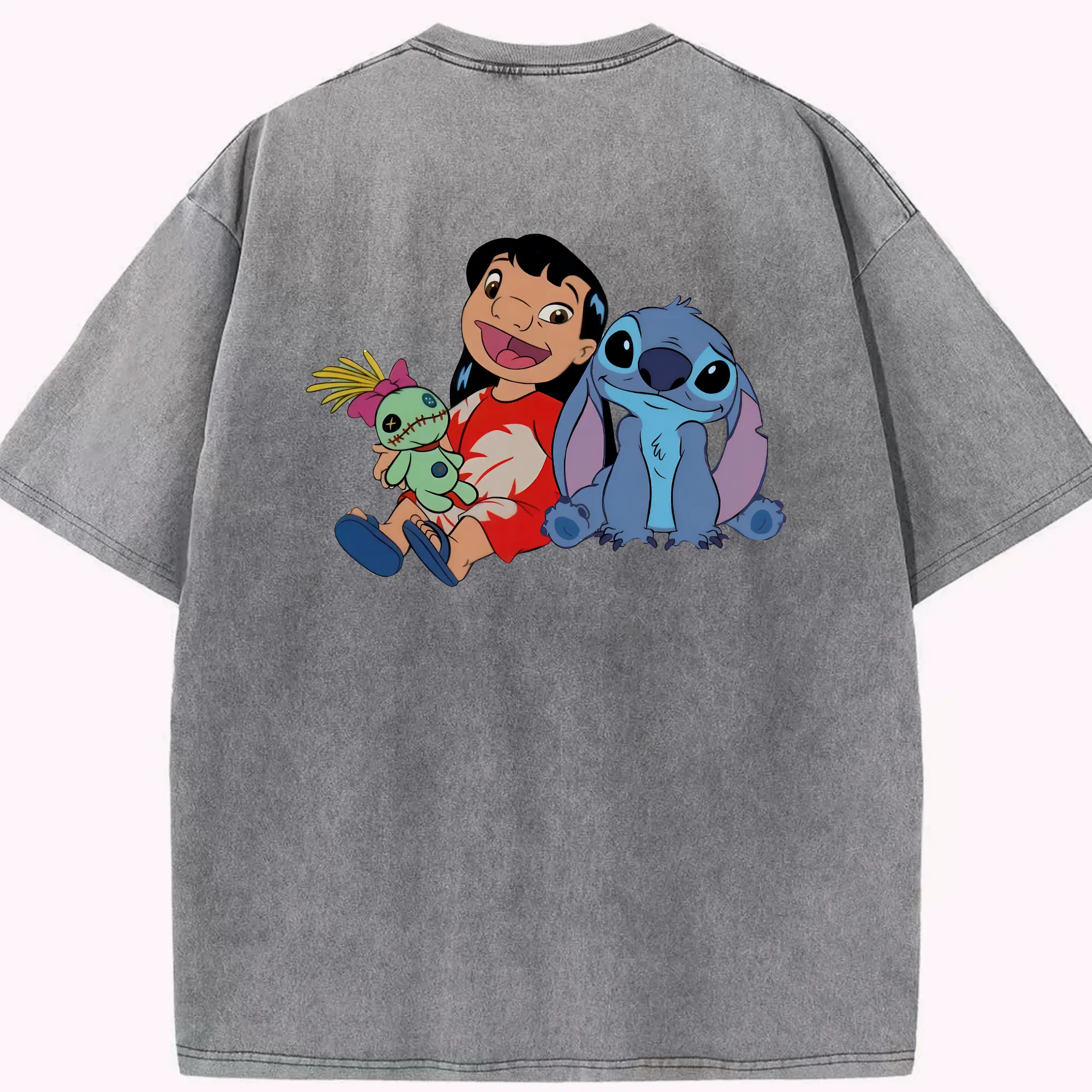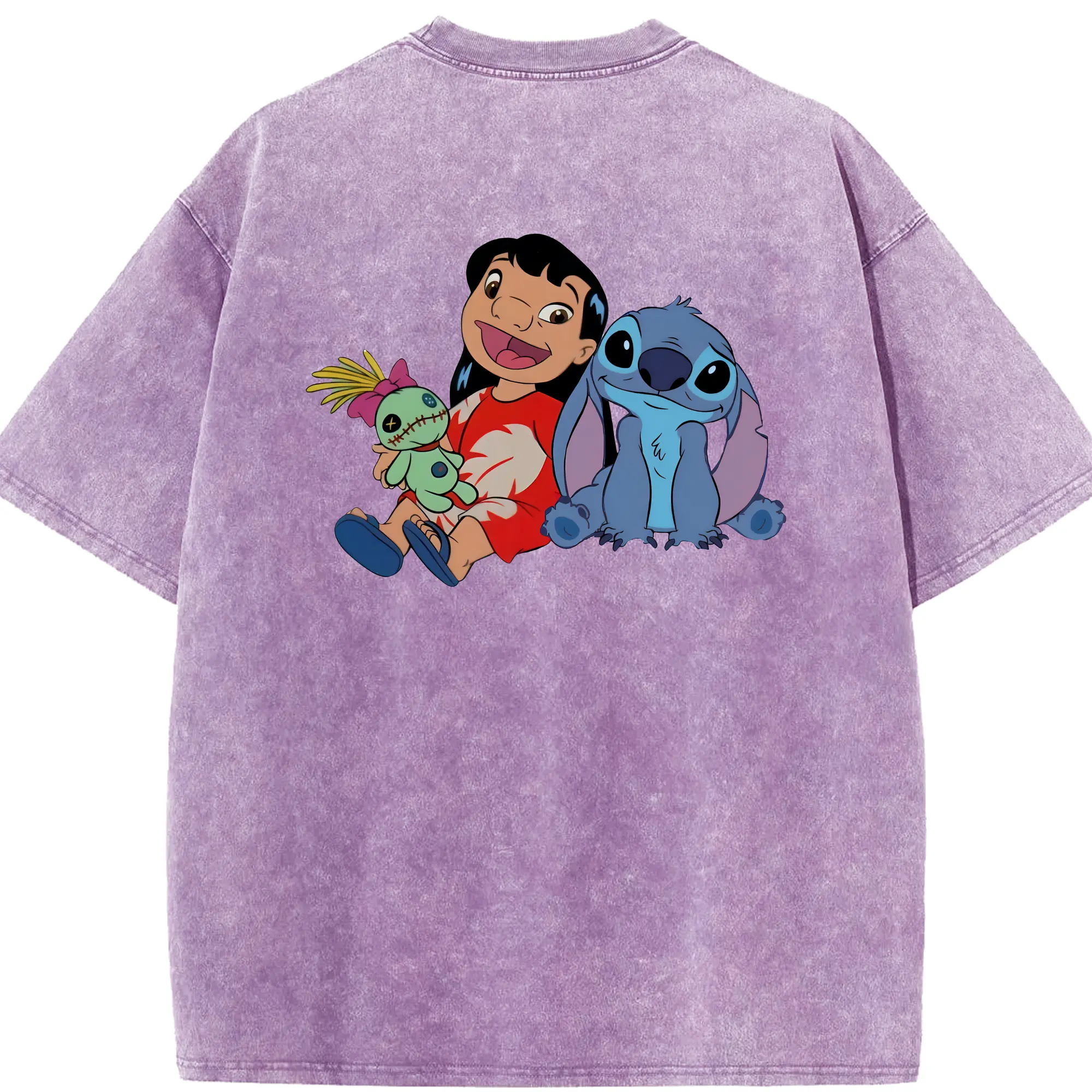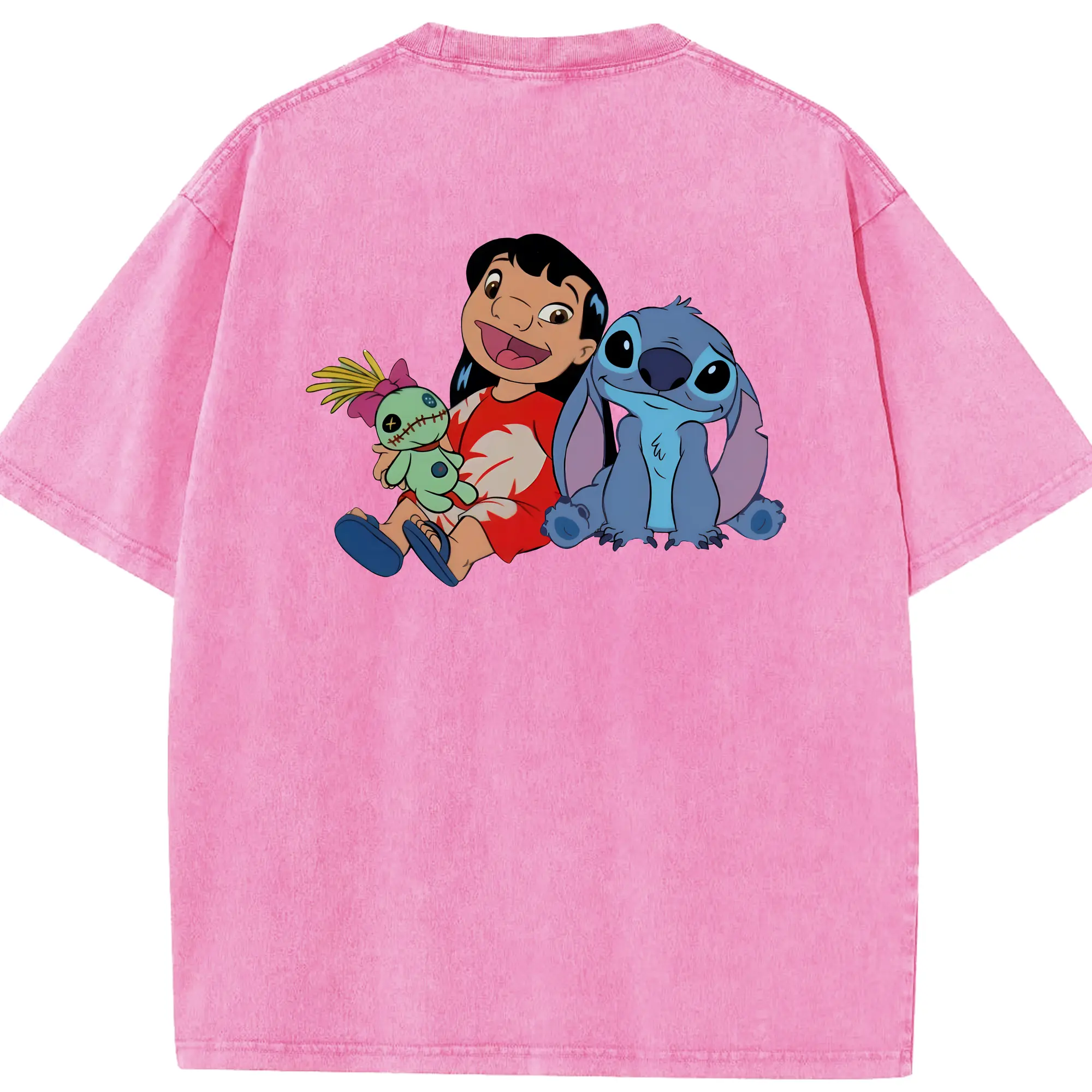 リロ&スティッチ グッズ リロ - 綿100% 半袖Tシャツ ・ バックプリント ・ 快適 通気性 ・ 日常使い 散歩 スポーツ用