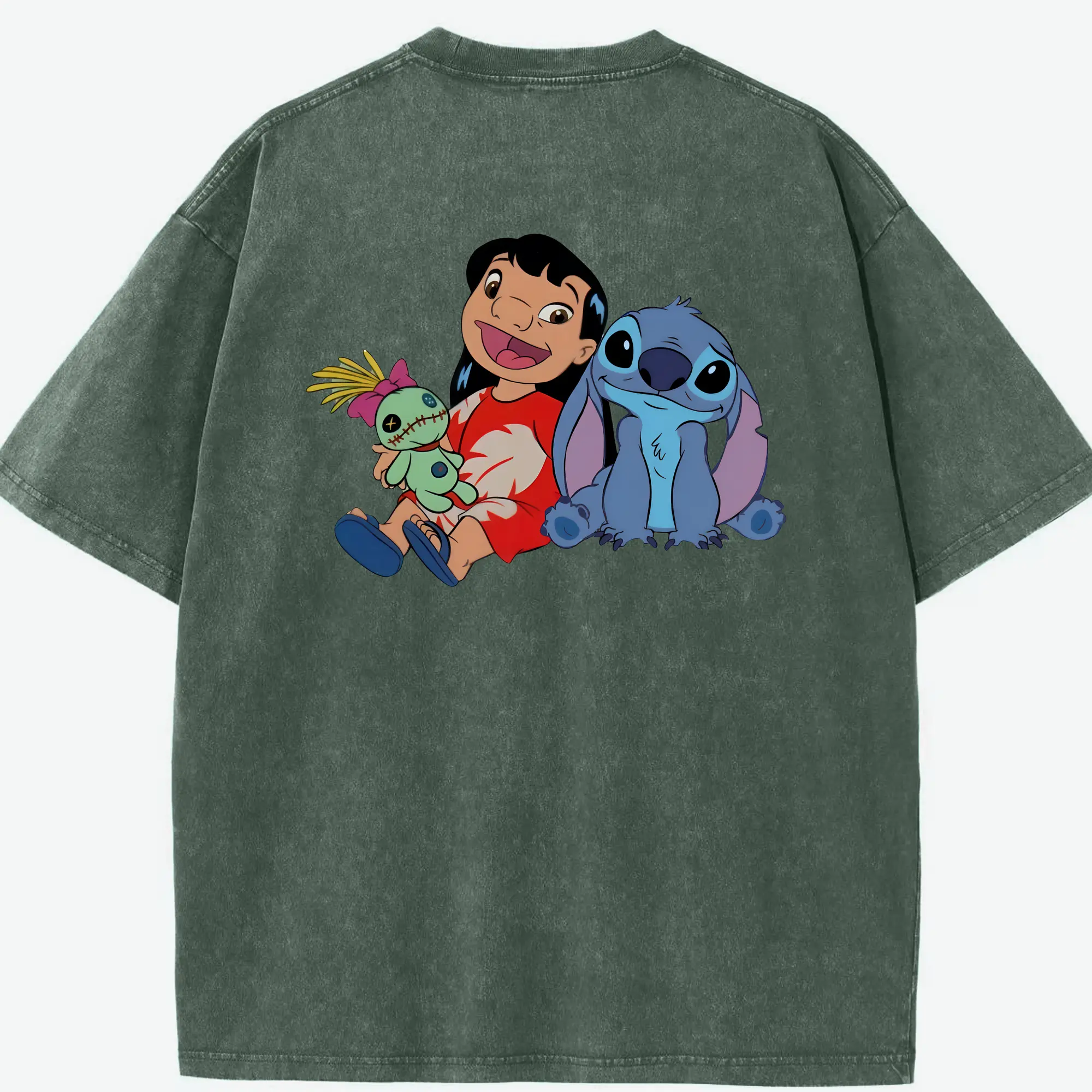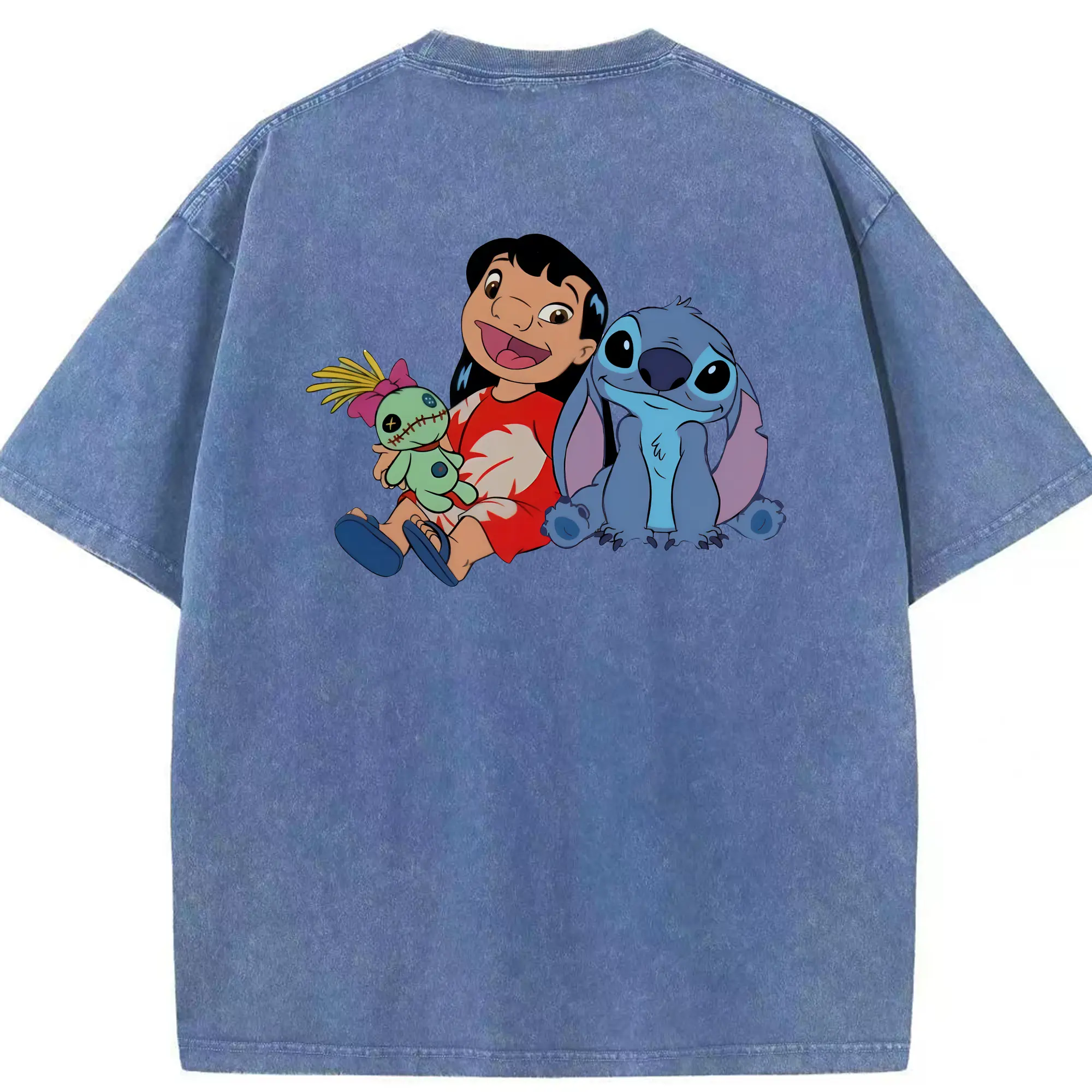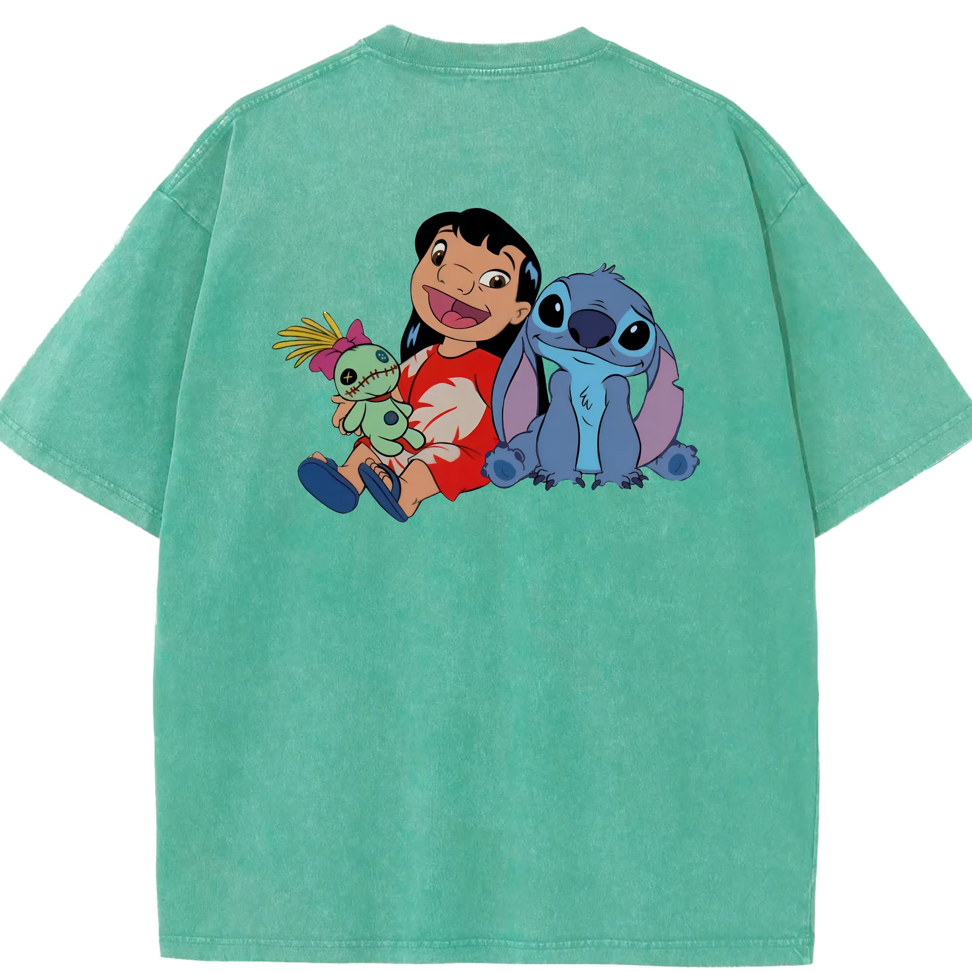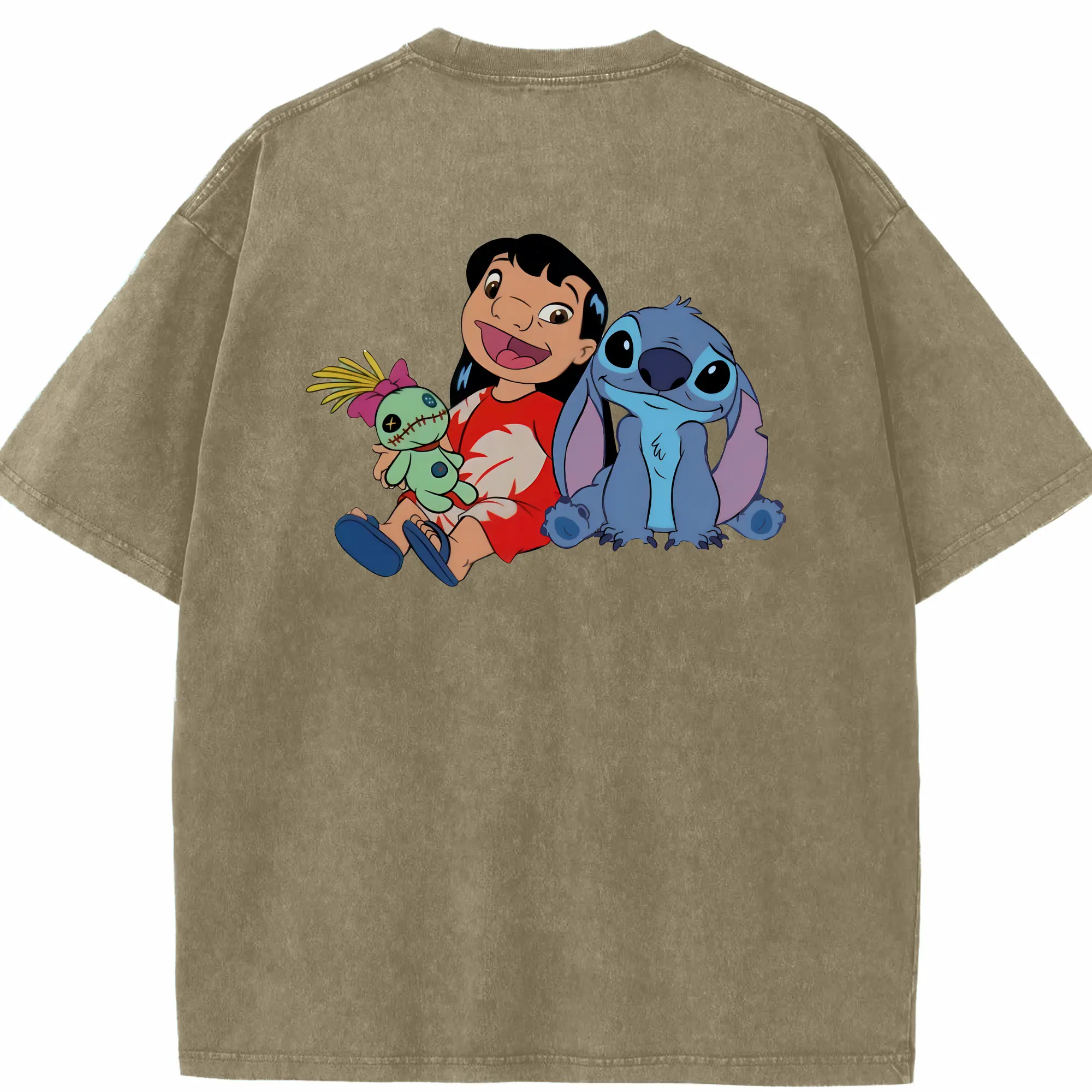 リロ&スティッチ グッズ リロ - 綿100% 半袖Tシャツ ・ バックプリント ・ 快適 通気性 ・ 日常使い 散歩 スポーツ用