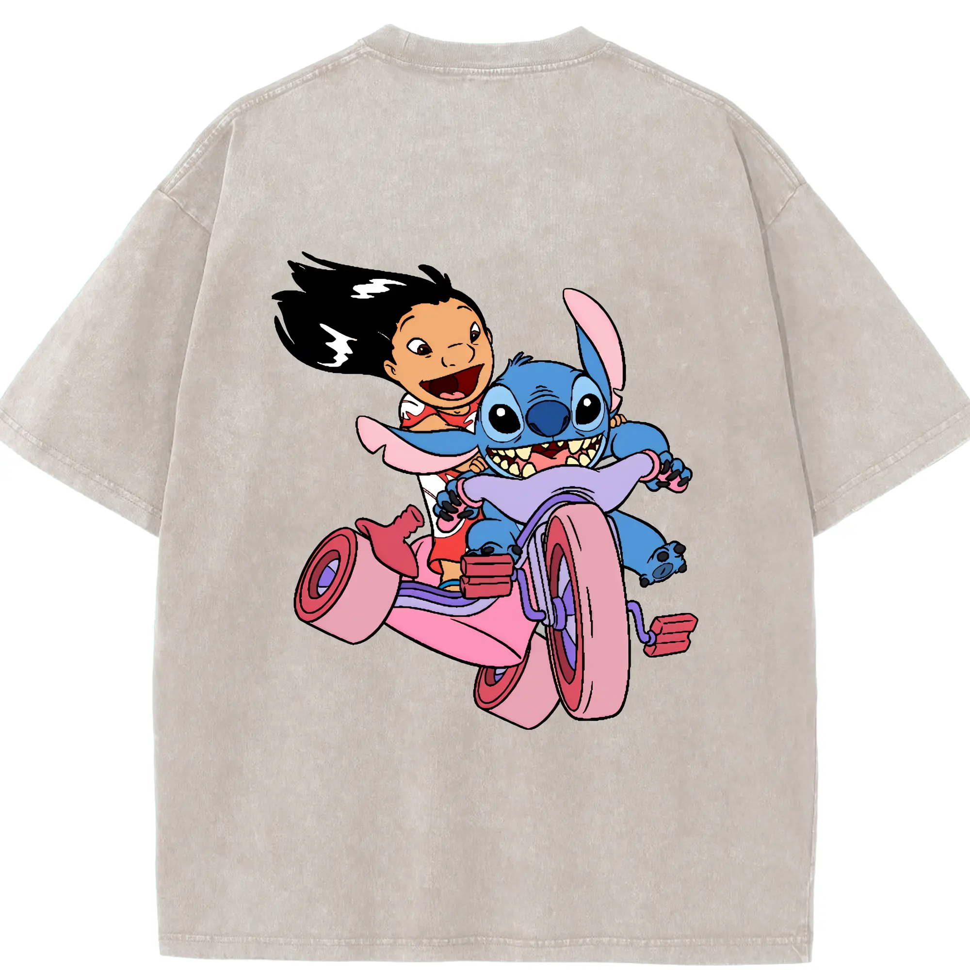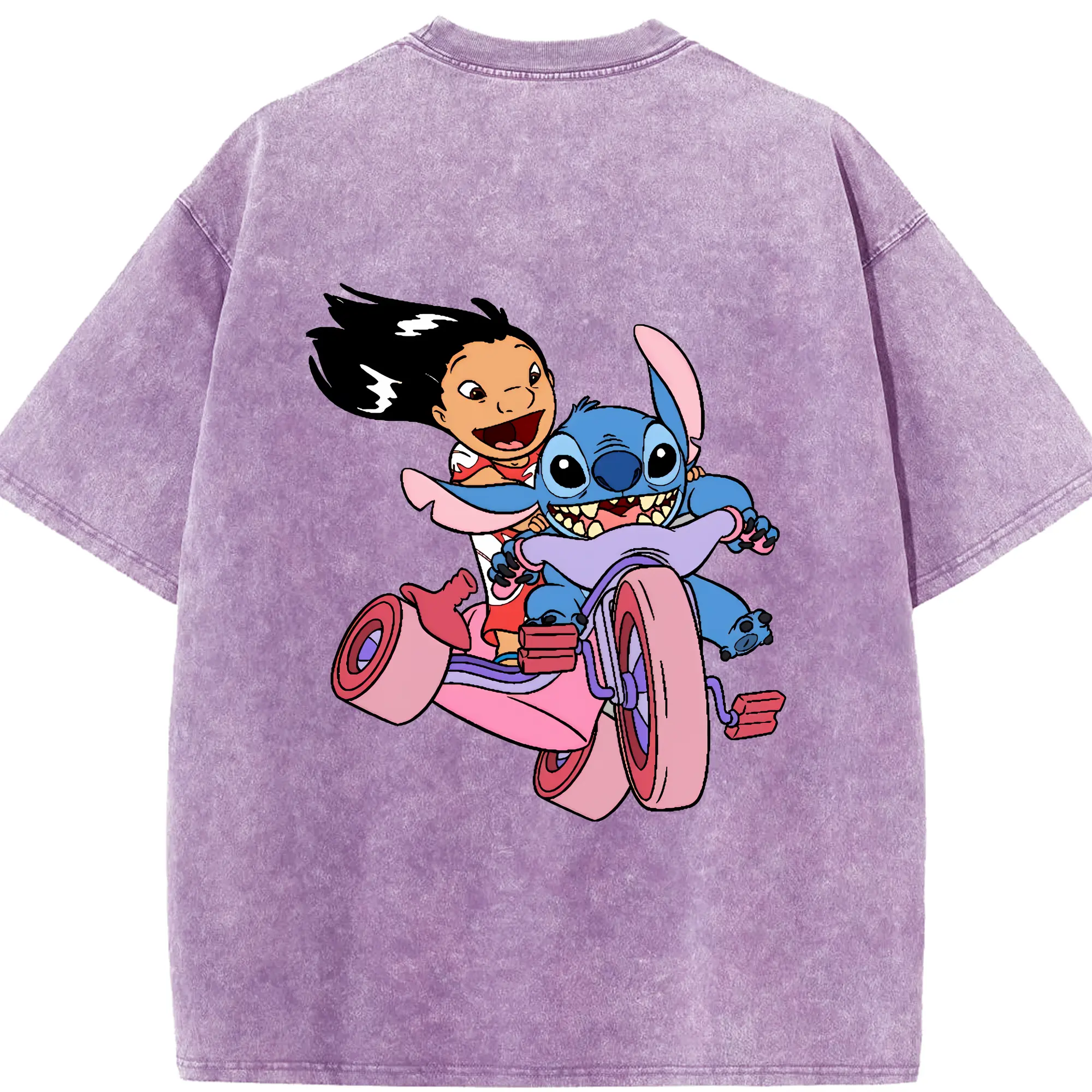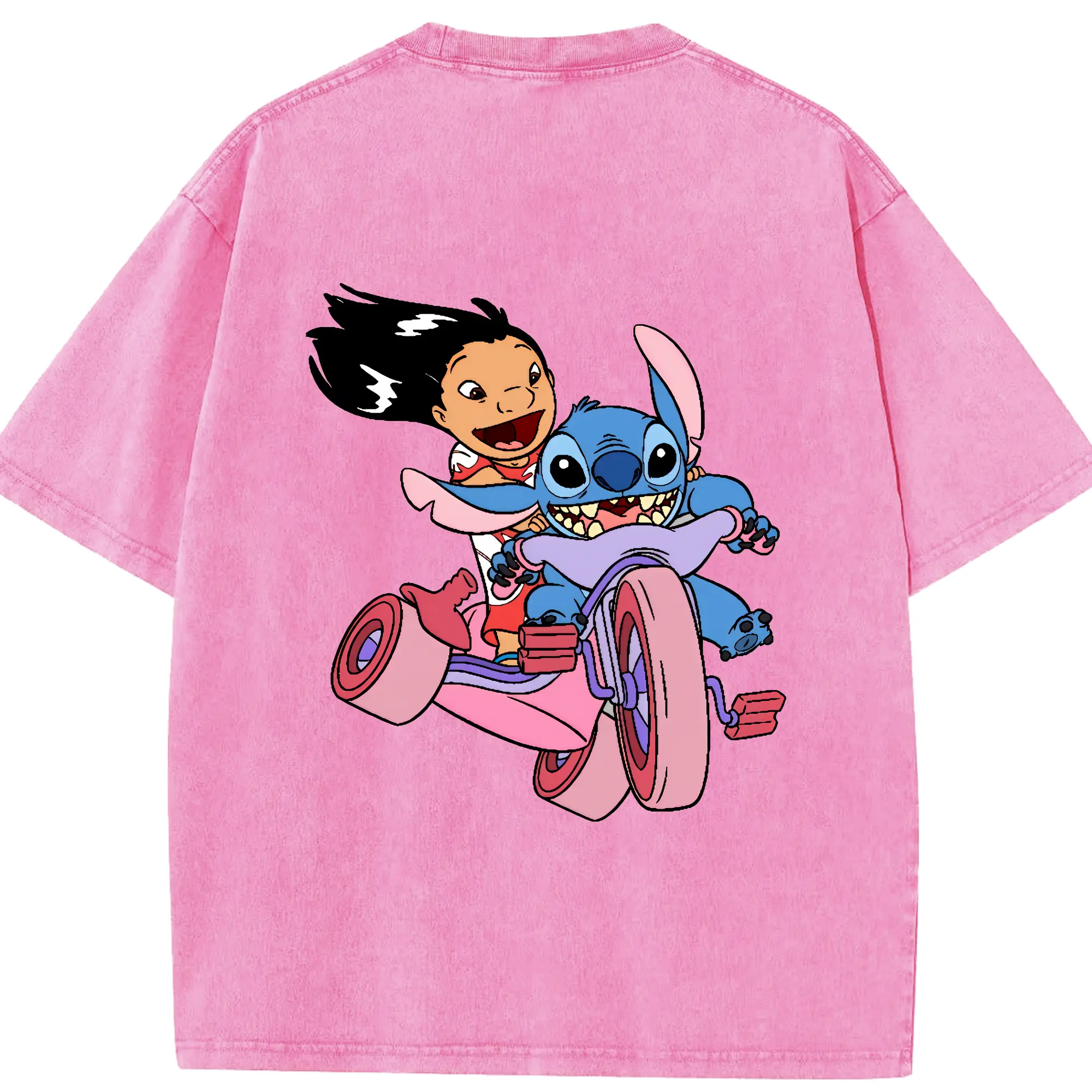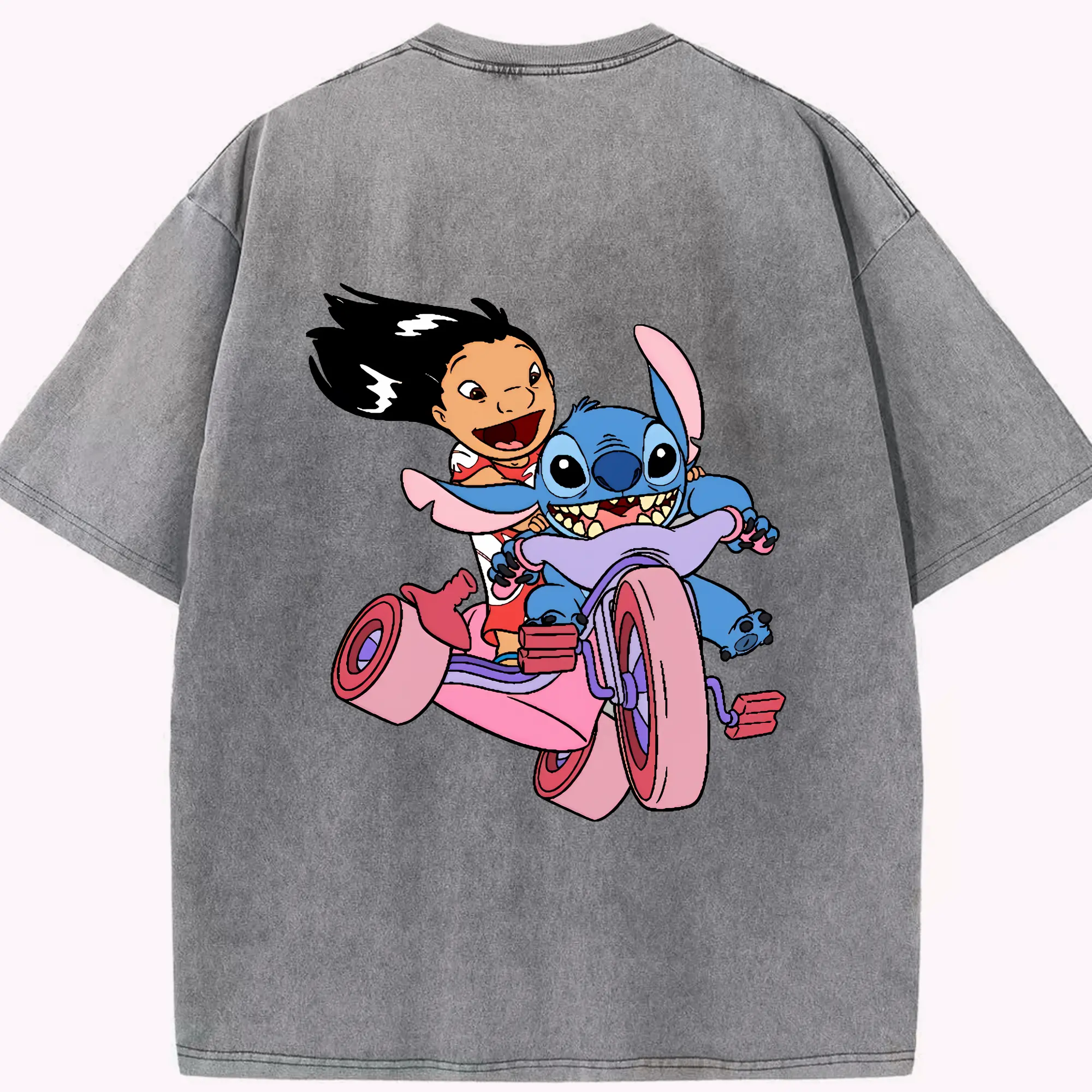 リロ&スティッチ グッズ リロ - 綿100% 半袖Tシャツ ・ バックプリント ・ 快適 通気性 ・ 日常使い 散歩 スポーツ用