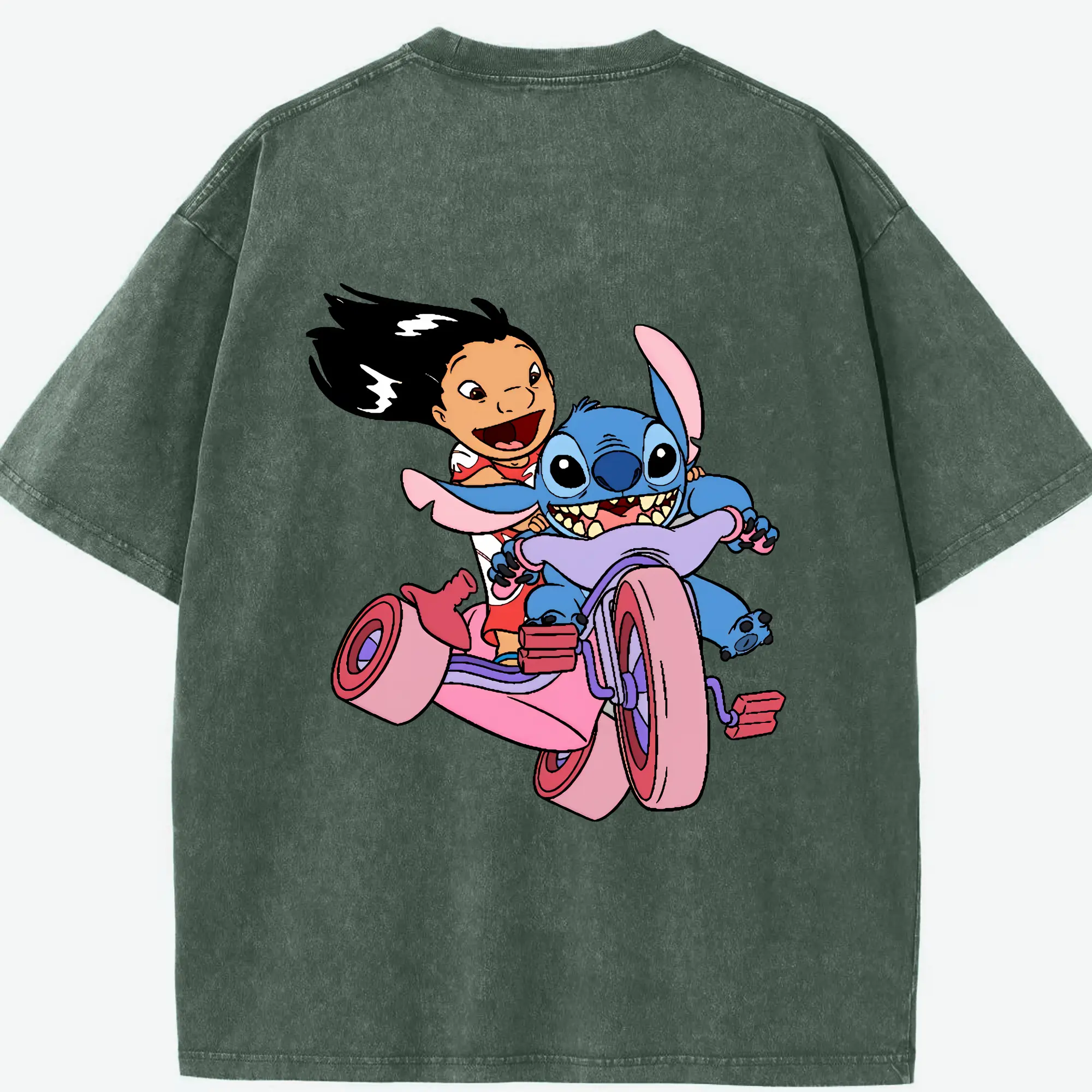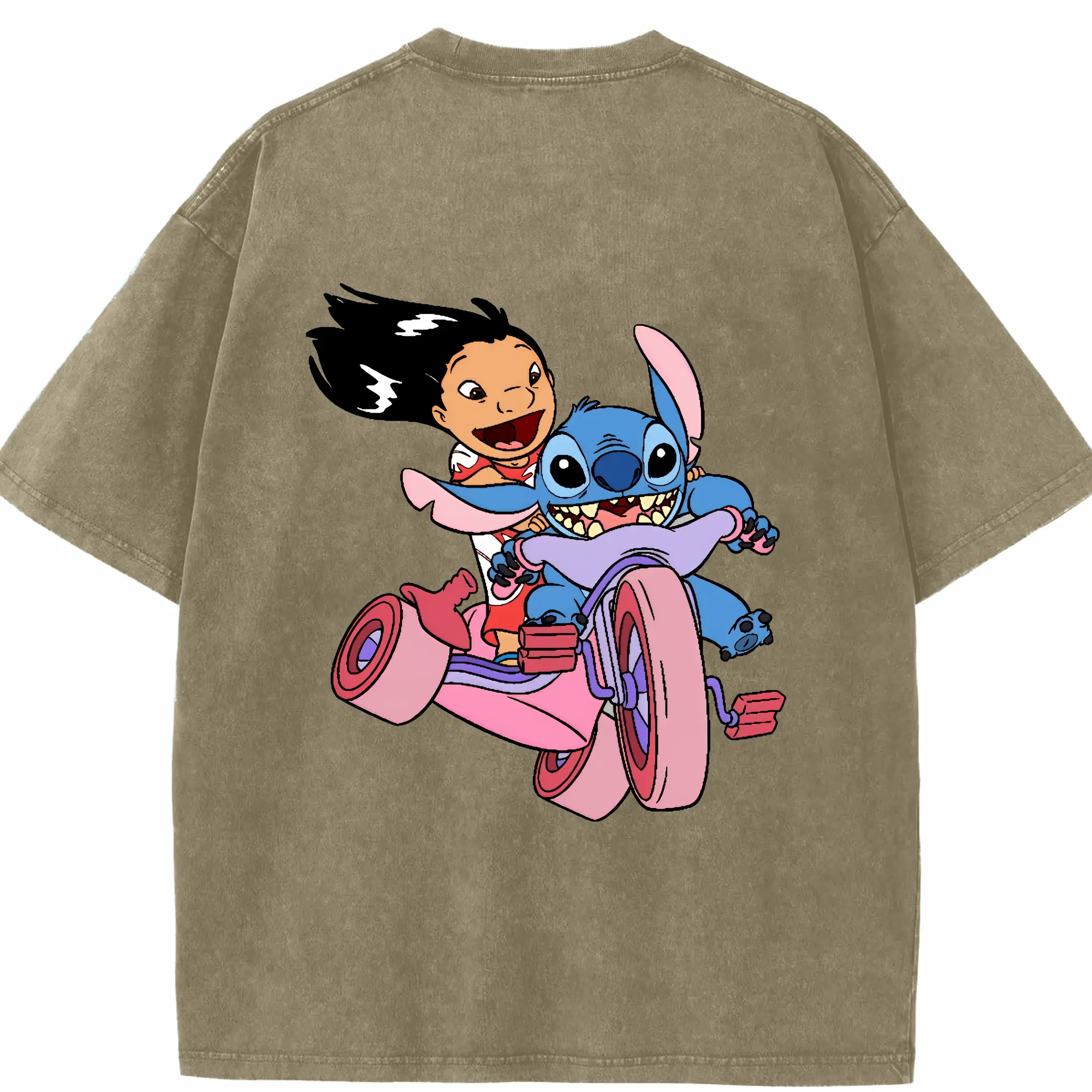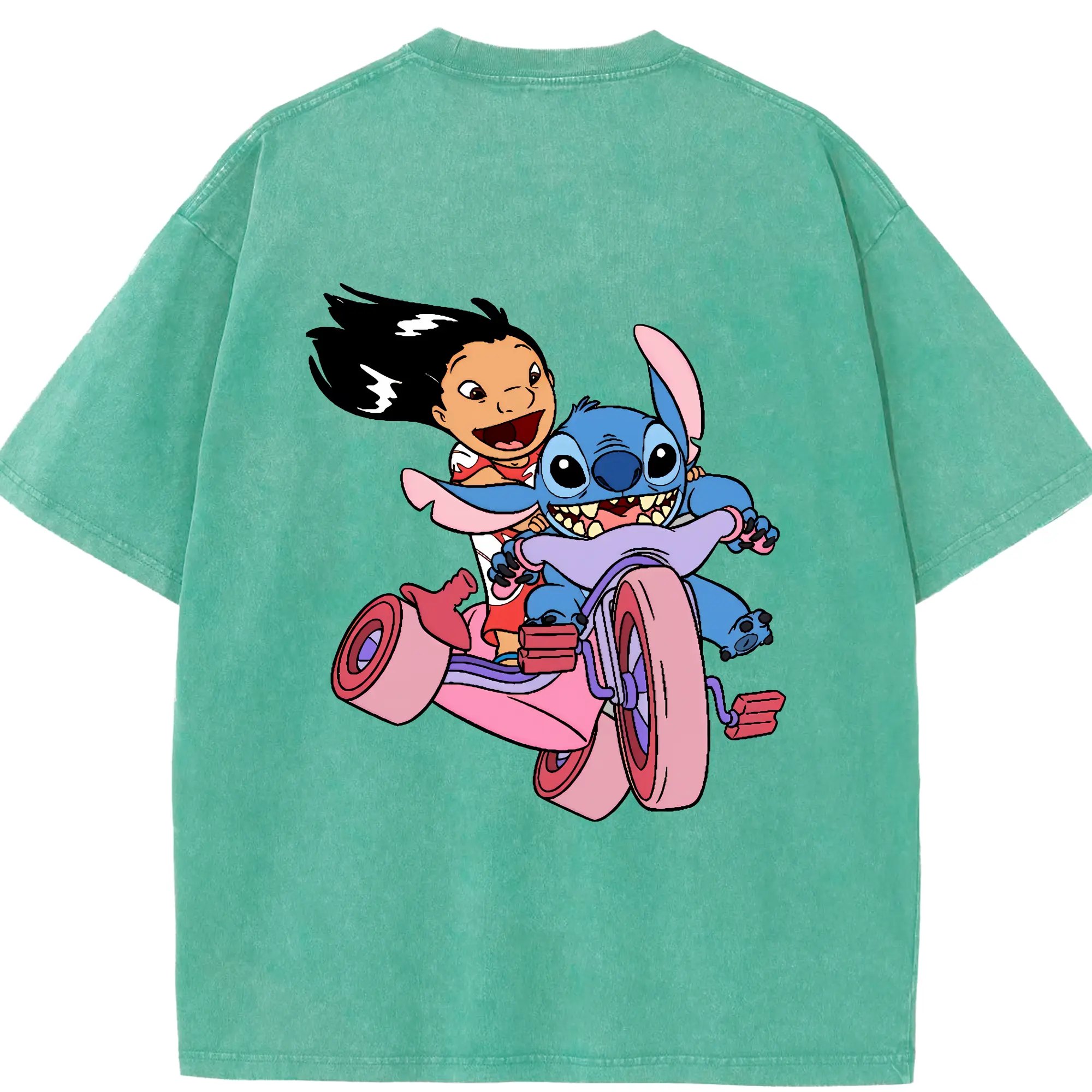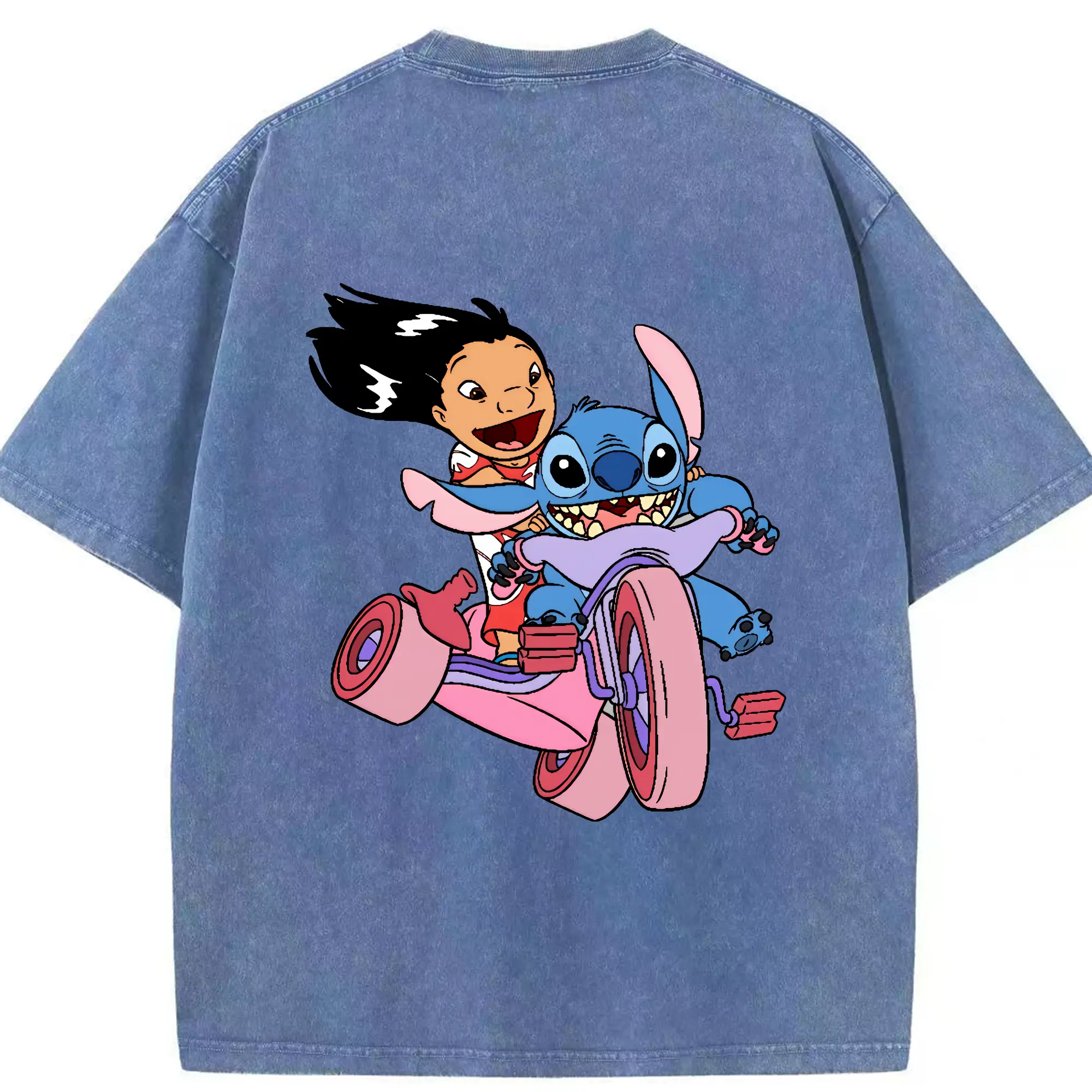 リロ&スティッチ グッズ リロ - 綿100% 半袖Tシャツ ・ バックプリント ・ 快適 通気性 ・ 日常使い 散歩 スポーツ用