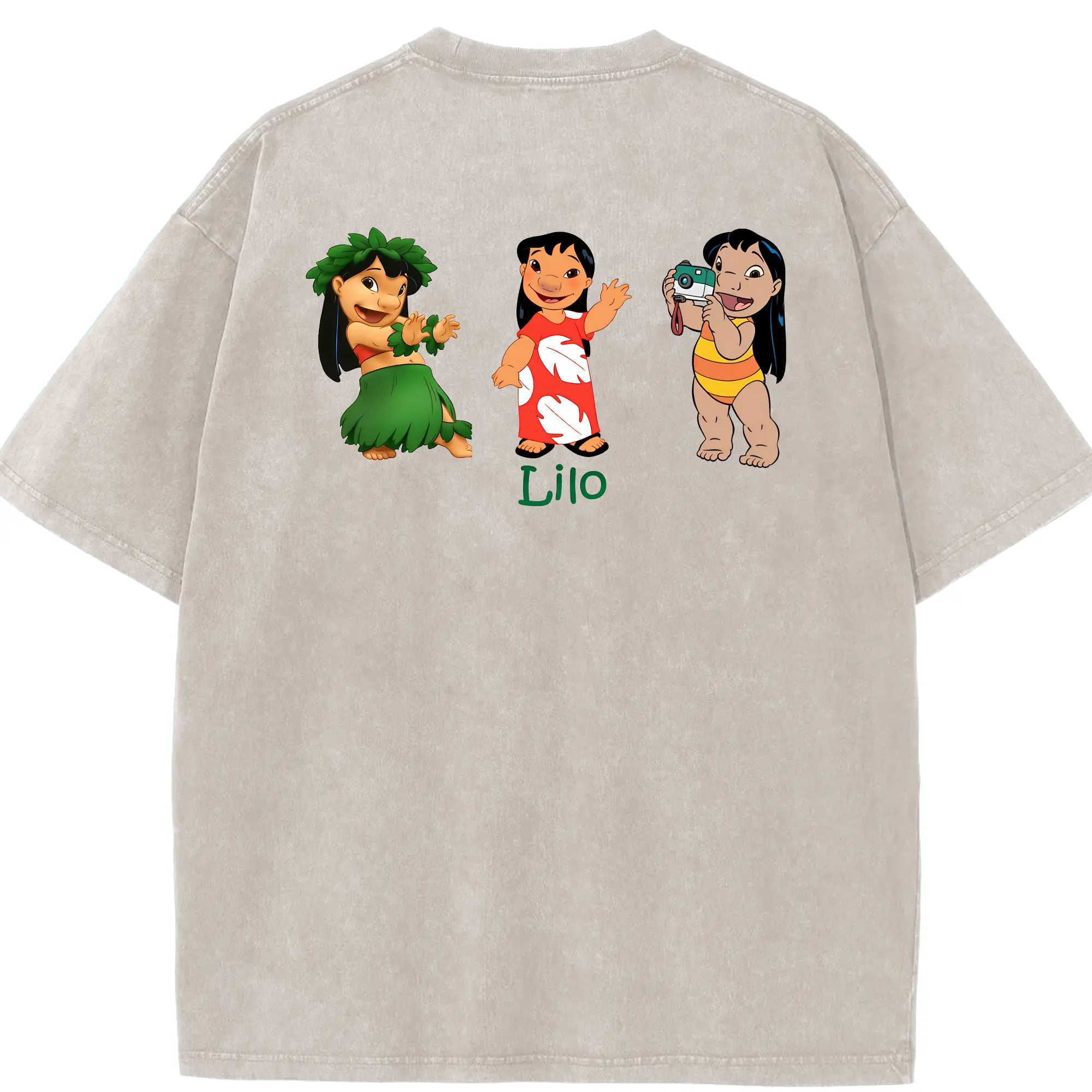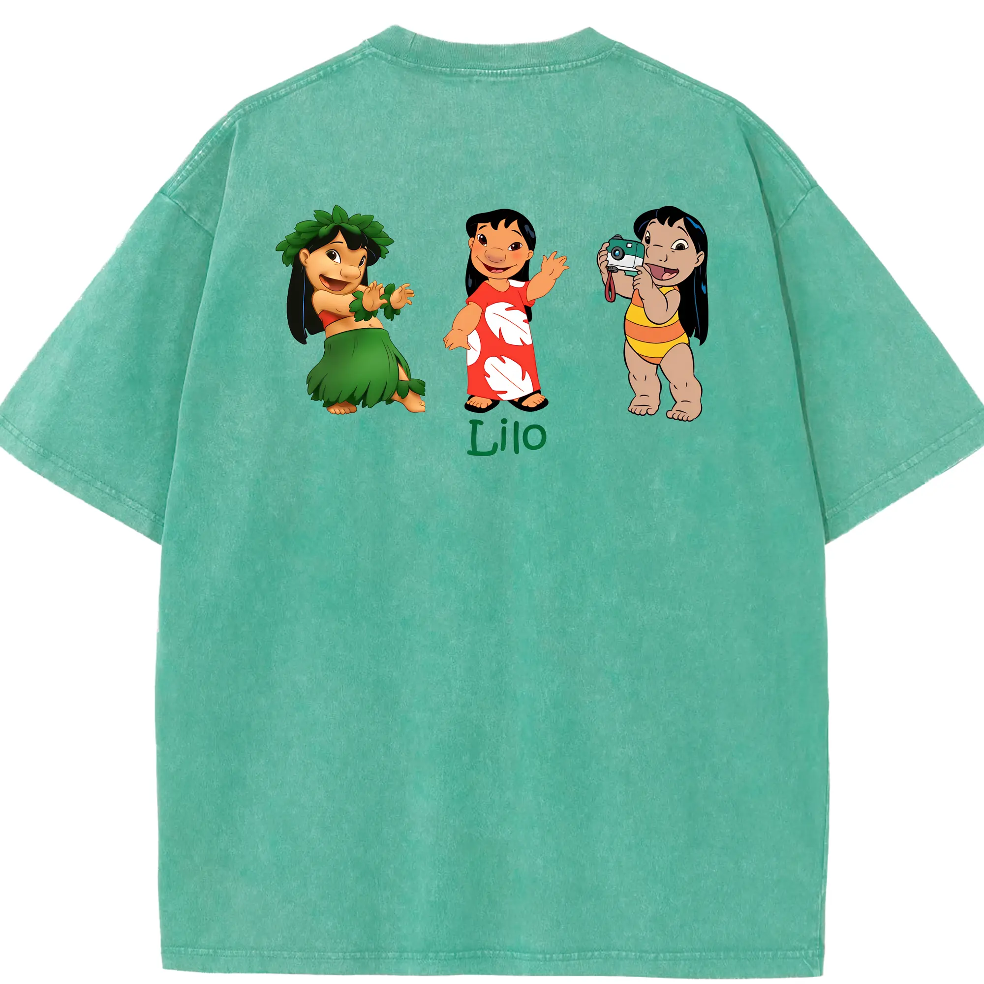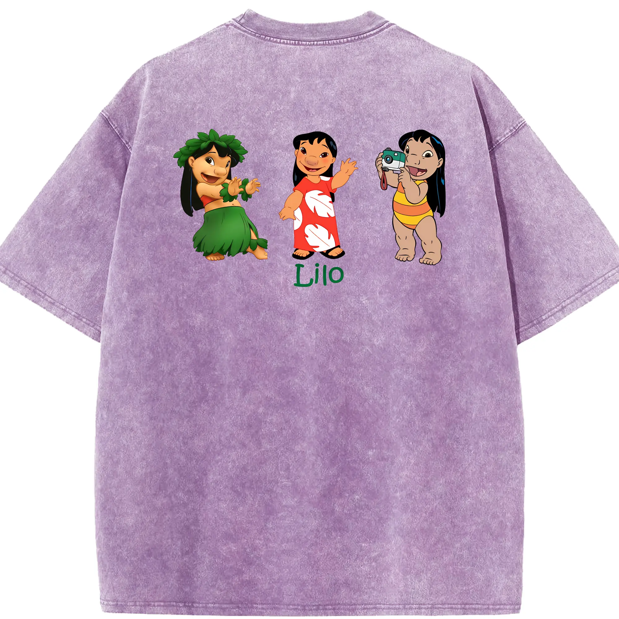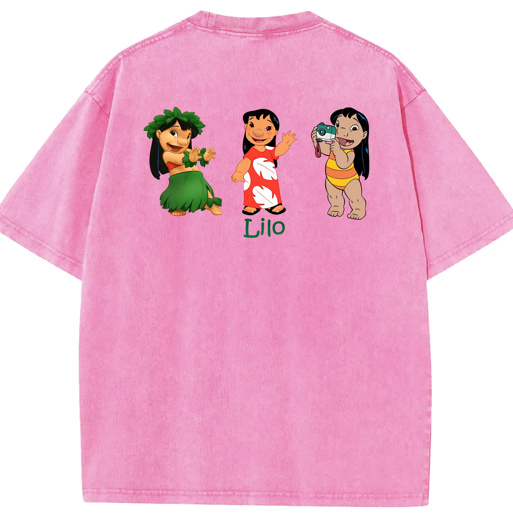 リロ&スティッチ グッズ リロ - 綿100% 半袖Tシャツ ・ バックプリント ・ 快適 通気性 ・ 日常使い 散歩 スポーツ用