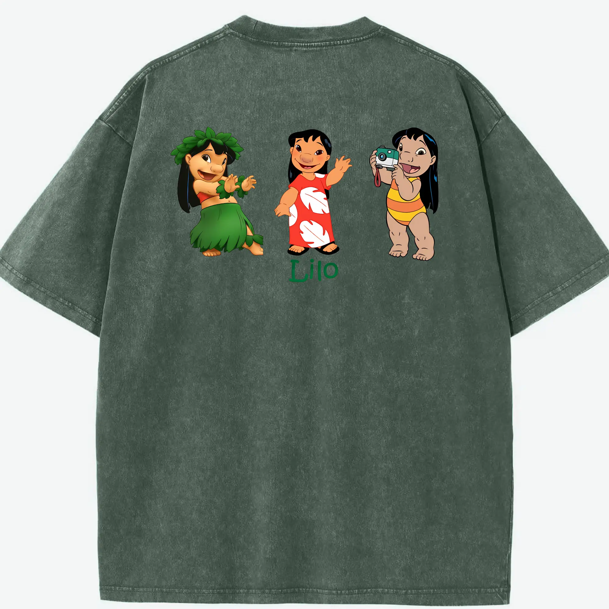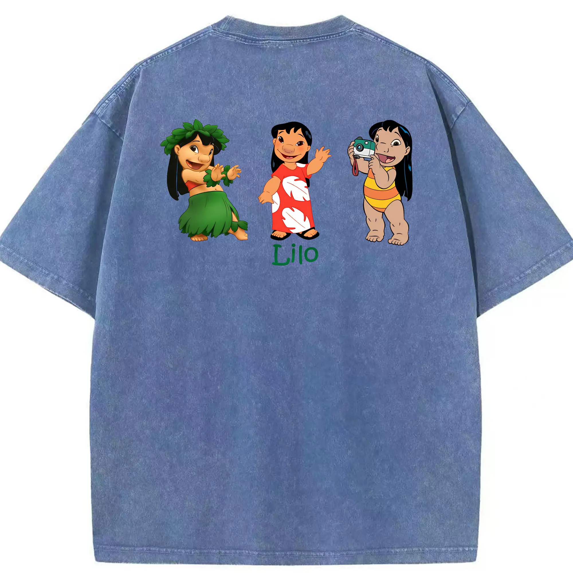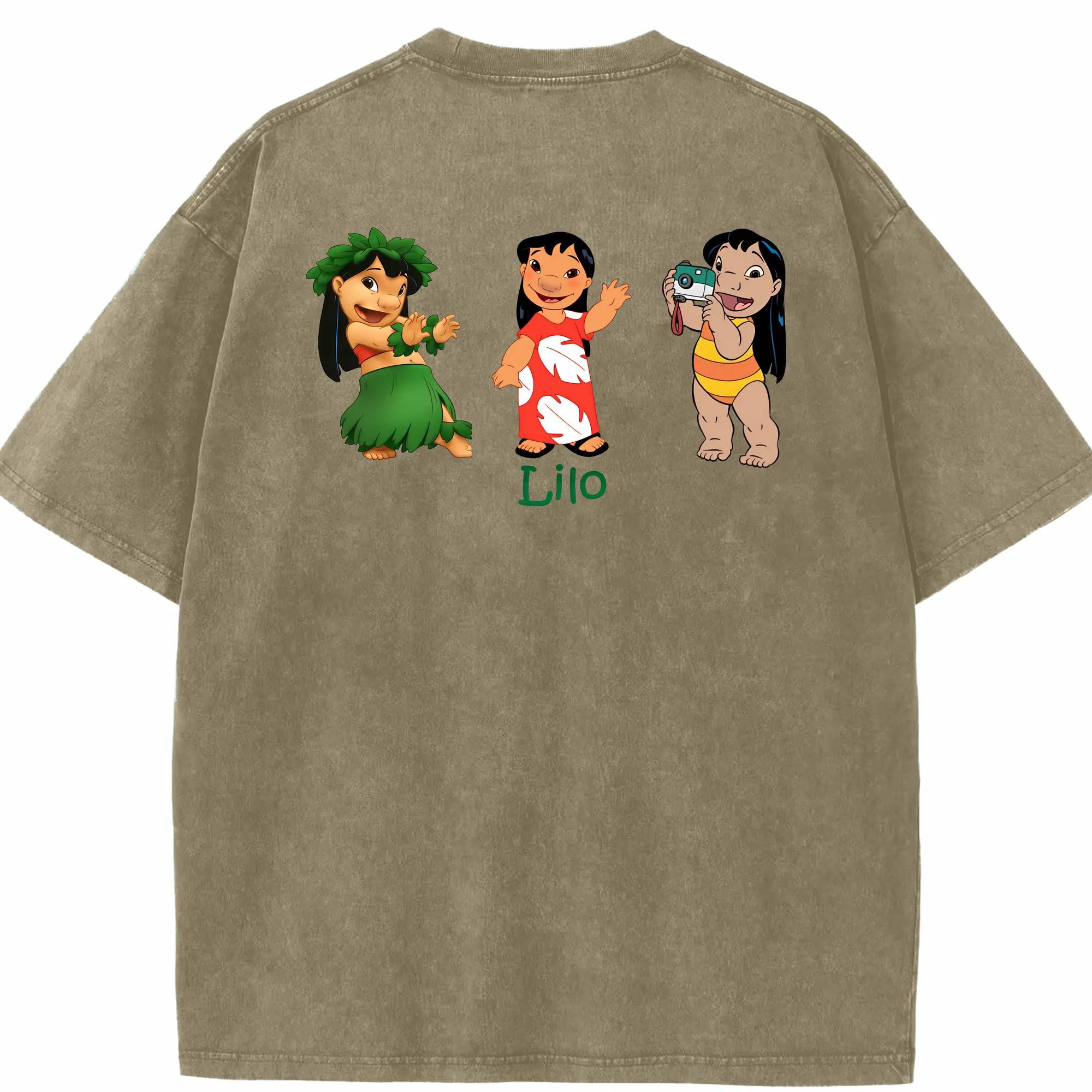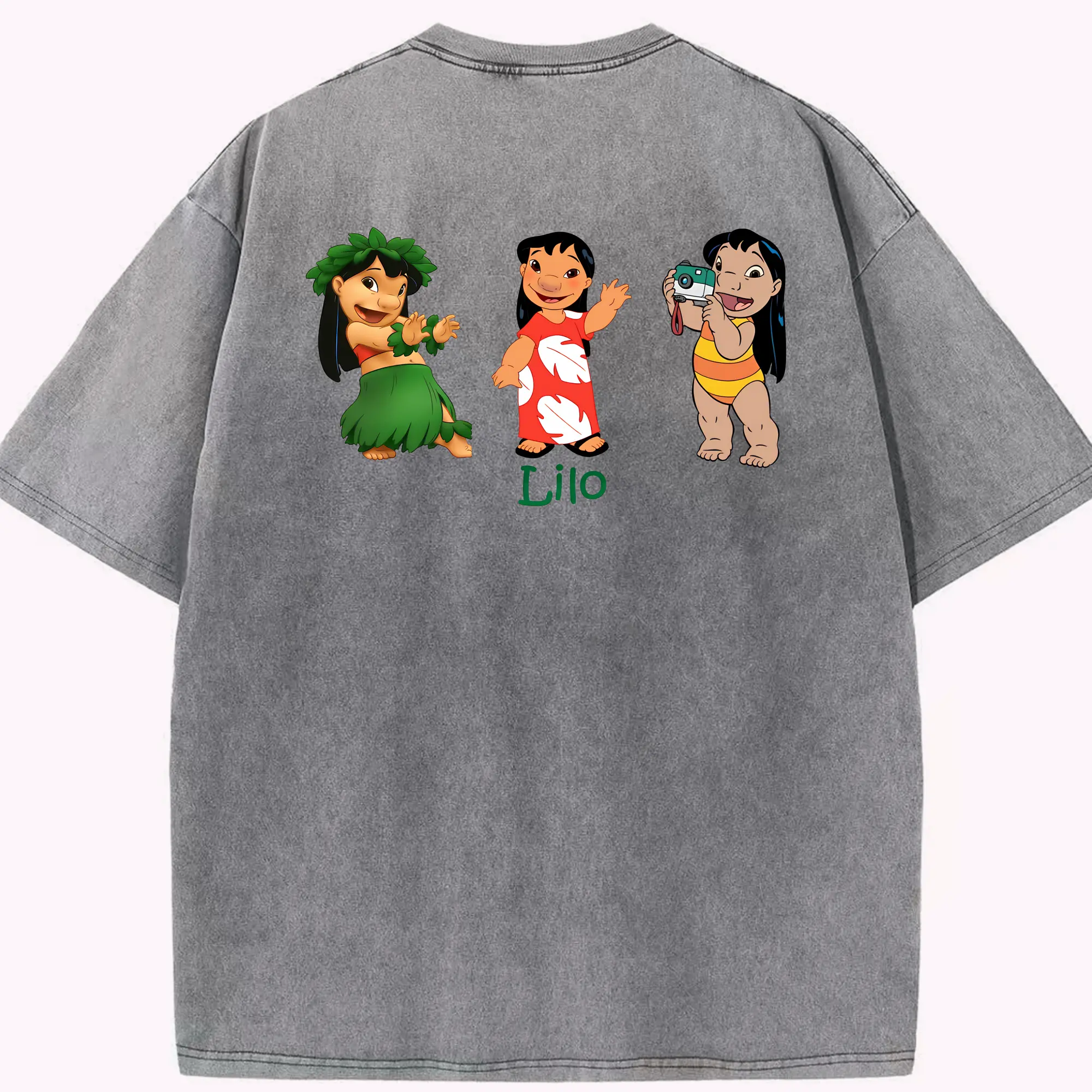 リロ&スティッチ グッズ リロ - 綿100% 半袖Tシャツ ・ バックプリント ・ 快適 通気性 ・ 日常使い 散歩 スポーツ用