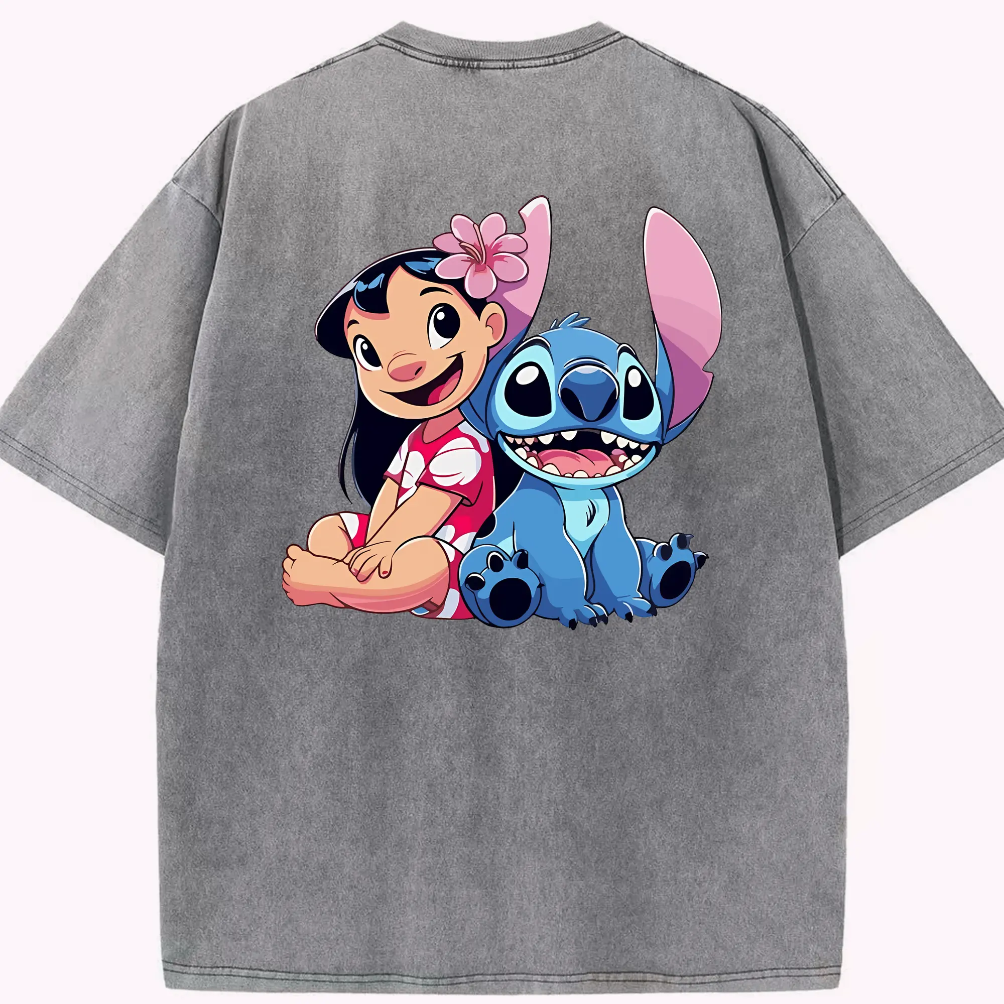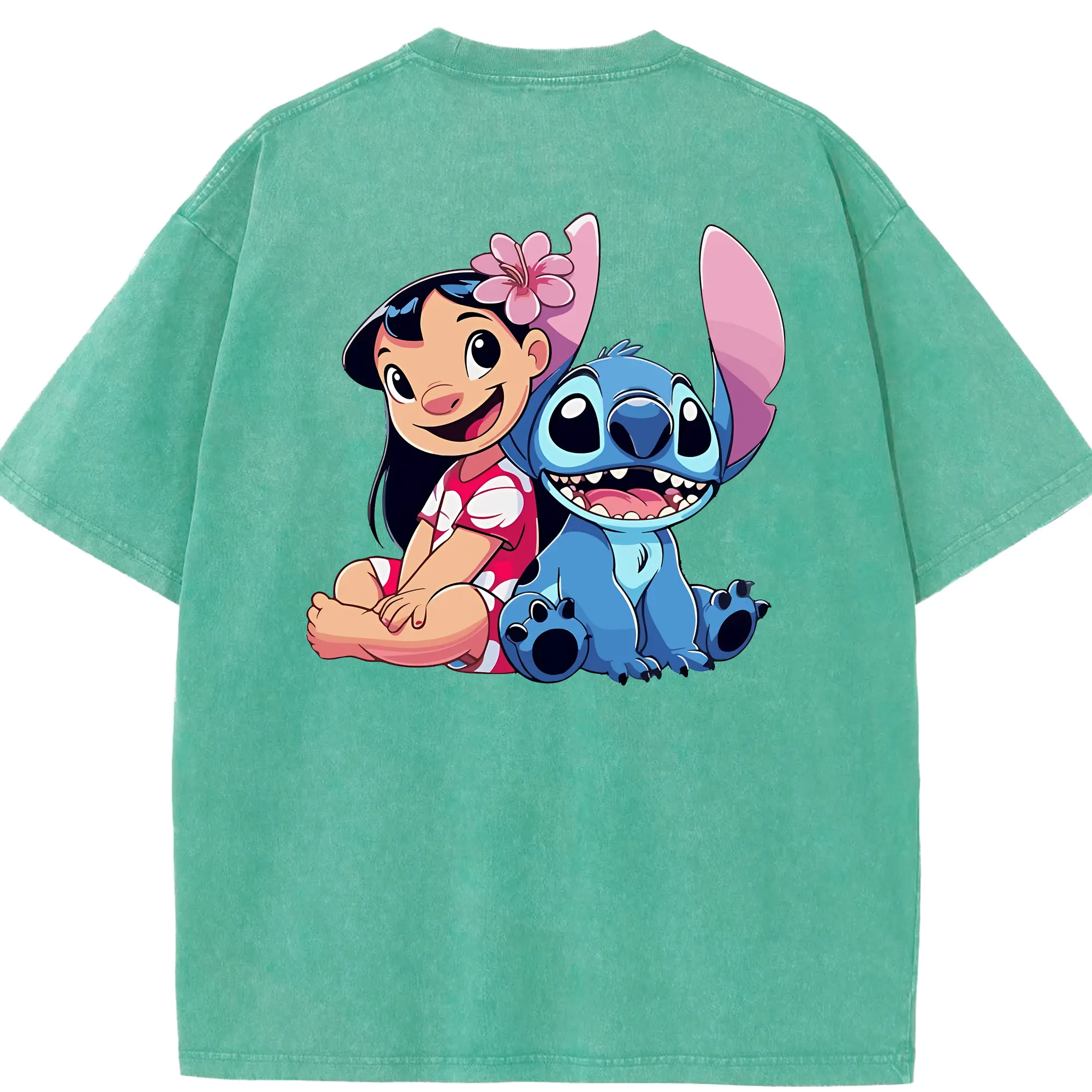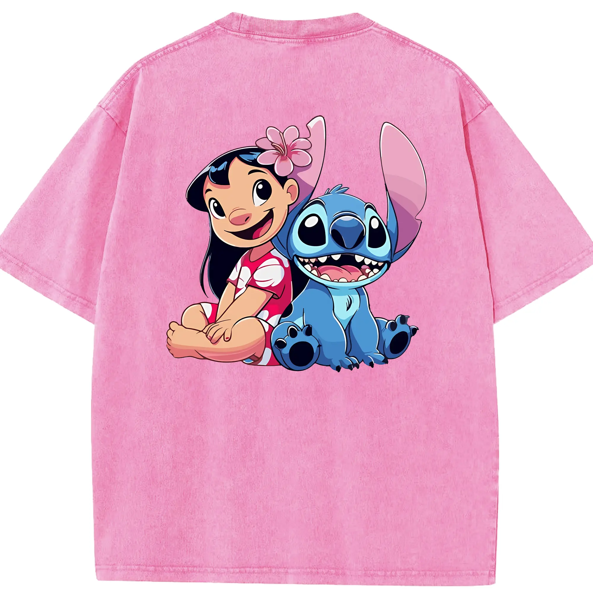 リロ&スティッチ グッズ リロ - 綿100% 半袖Tシャツ ・ バックプリント ・ 快適 通気性 ・ 日常使い 散歩 スポーツ用