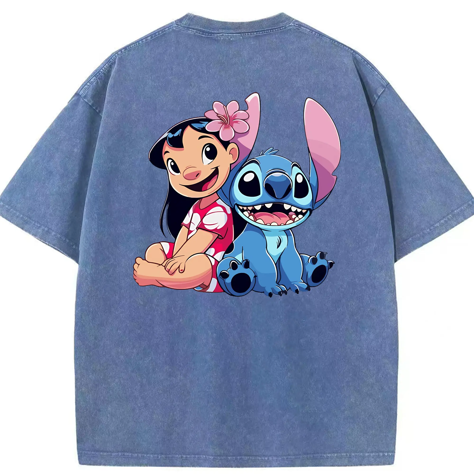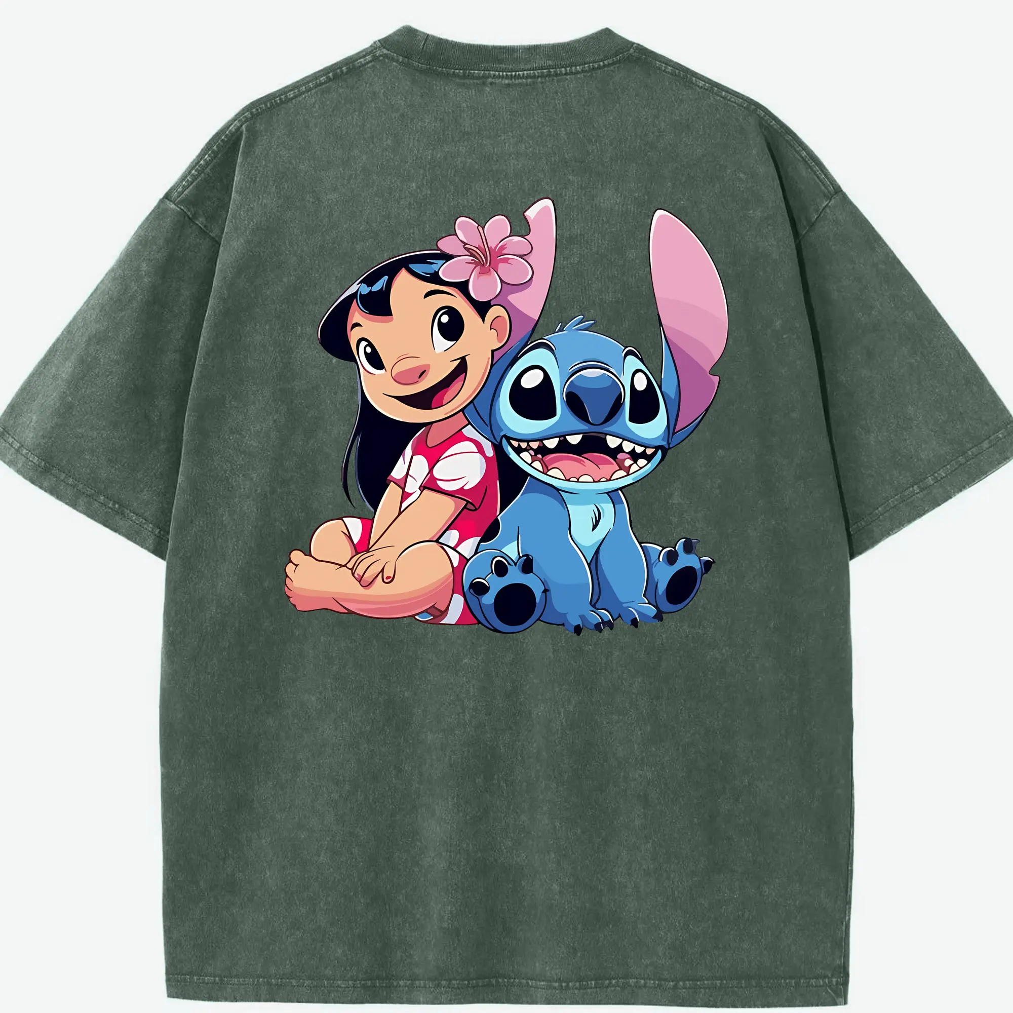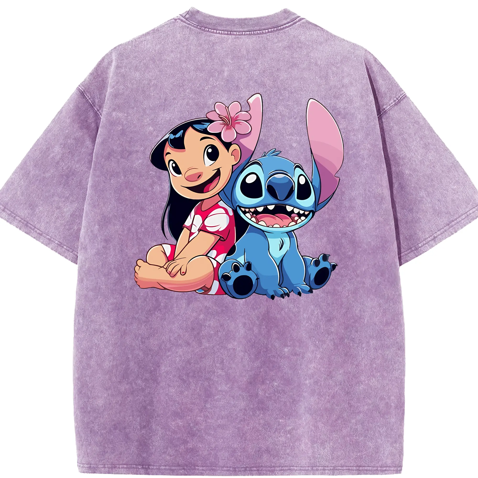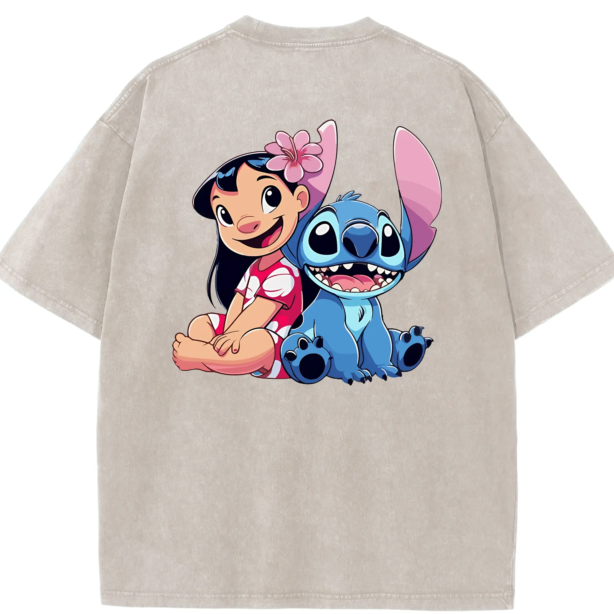 リロ&スティッチ グッズ リロ - 綿100% 半袖Tシャツ ・ バックプリント ・ 快適 通気性 ・ 日常使い 散歩 スポーツ用
